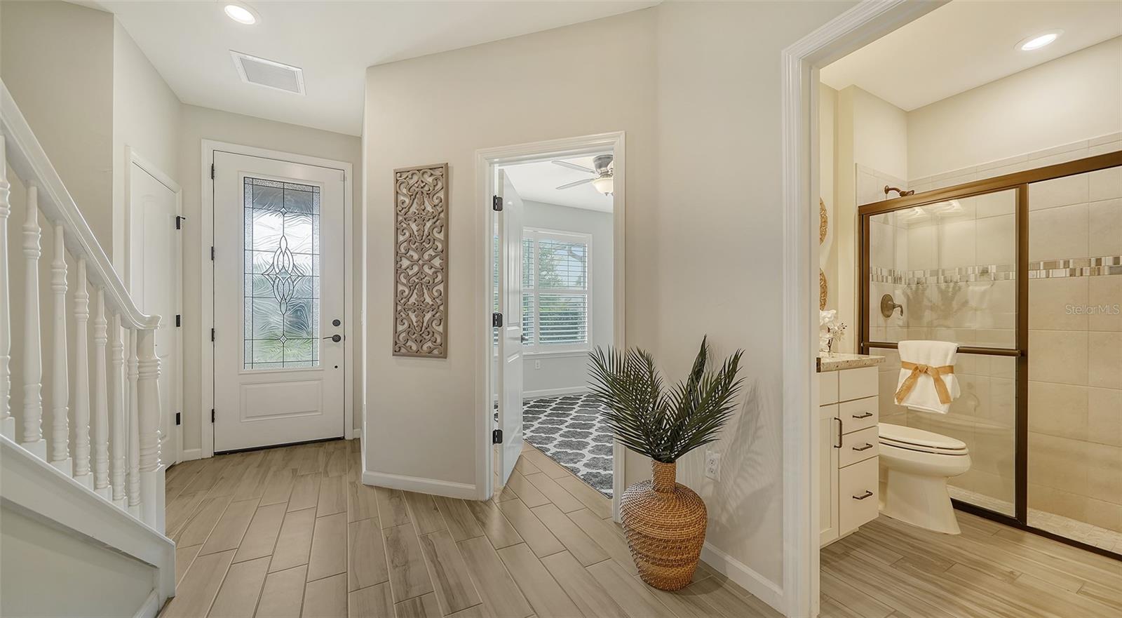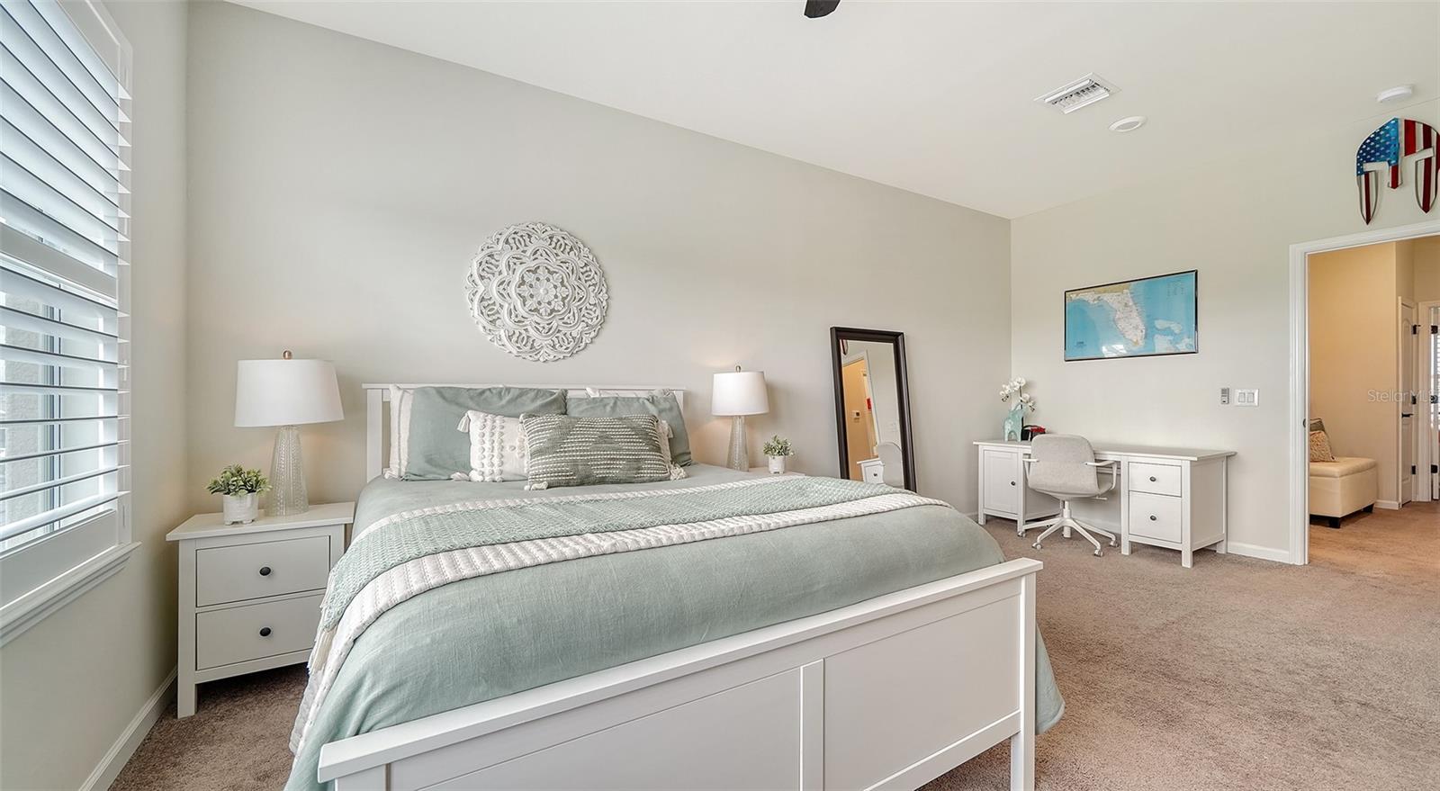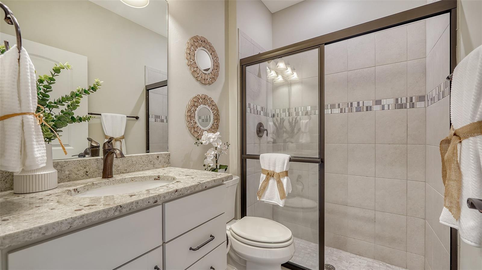 Set in the charming Mallory Park neighborhood, this exceptional townhome presents the sought-after Trailwood floor plan featuring dual primary suites, an additional guest bedroom, and three full bathrooms. Both primary suites feature large en suite bathrooms with dual sink vanities and spacious walk in closets. The third bedroom, conveniently situated on the first floor, can remain a bedroom, or be used as an office or den. The kitchen, open to the living and dining room, is equipped with a spacious breakfast bar, stainless appliances, a gas range, and a generous walk-in pantry. Outside, an inviting courtyard provides a private tranquil space for relaxing outdoors, gardening, or dining al fresco. This courtyard has a convenient covered walkway guiding residents to their private two-car garage. Extras include porcelain Plank flooring in main living areas and guest bedroom, plantation shutters, ceiling fans, granite counters, designer light fixtures, lush landscaping, guest parking and more... Located just steps from the community amenities center, residents have access to a range of recreational activities including a resort pool, fitness center, pickleball and basketball courts, playground, barbecues, and more. Mallory Park features a maintenance-free lifestyle with gated security and is zoned for A-rated schools. Lakewood Ranch is the best-selling multi-generational community in the USA located just minutes from world-class dining, shopping, beaches, and medical facilities.