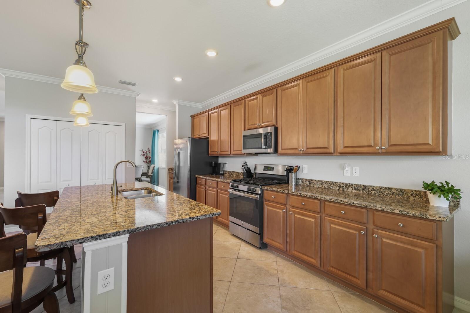 Absolutely STUNNING!! Welcome home to this Sorrento model by Lennar Homes! Located in Lakewood Ranch, this AMAZING, home has 5 bedrooms, 4.5 baths and over 3200 sf that looks out over a large, PRISTINE lake!! As you enter these 3 car-garage home, you are greeted by a gracious staircase to the 2nd level, formal living/flex room and bright, sunny dining room. Coming down the entry hall brings you into view of the huge great room with soaring ceiling, a gourmet kitchen with cozy breakfast nook and a screened lanai with views out over lush green grass and a beautiful lake!! The kitchen has granite counter tops, stainless appliances, large island, solid wood cabinetry and a spacious breakfast bar. The great room has vaulted ceilings up to the loft area and a dramatic, custom accent wall. The first floor is finished off with a powder room and guest room that has an en-suite bath that goes out to the yard! Plenty of room in the yard for a pool! The Primary suite on the 2nd floor is loaded with natural light and the en-suite bath has a luxurious soaking tub, glass stall shower, walk-in closet and double sink vanity!! There are 3 other bedrooms, 2 baths and a generously sized game room/loft area with lots of windows and a big, spacious feel!! Savanna is a fabulous community with pool, clubhouse, fitness center, basketball, play ground, 2 dog parks and lots of activities!! It is also conveniently situated near world-class shopping & dining at UTC, St. Pete & Downtown Sarasota and, boasts an A+ rated school system!! All these great features and close proximity to our FAMOUS Gulf beaches, make this the perfect place to begin your FLORIDA Lifestyle!!