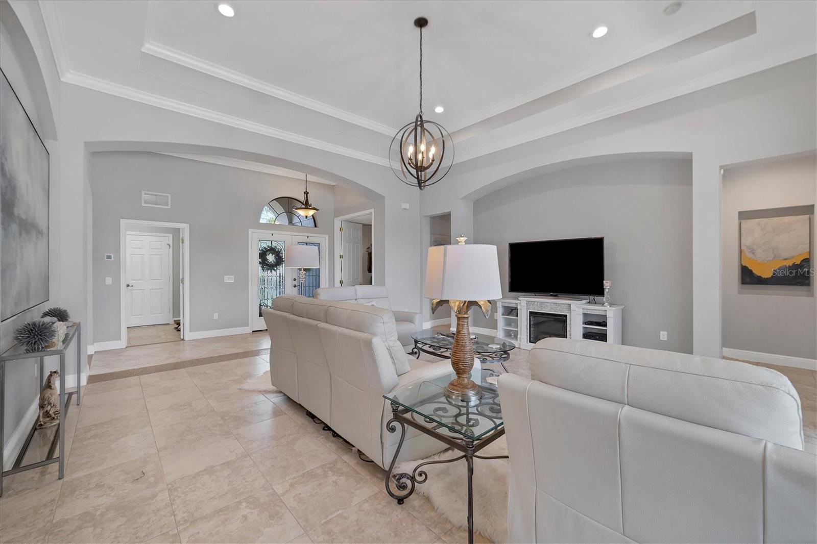 This maintenance-free Neal-built home offers relaxing water views and a prime location only a block away from the Lakewood Ranch Country Club's main clubhouse! Upon approaching the newly painted exterior of the home, you are greeted by well-maintained landscaping and a pavered walkway to the front porch. Step inside and discover a wealth of upgrades and modern amenities! The interior is adorned with new light fixtures, tile, and luxury vinyl floors that exude classic charm. Elegant arches and double glass doors add to the allure while pocketing sliding doors seamlessly connect the indoor and outdoor living spaces. The spacious great room offers plenty of sitting room, pocketing sliders to the lanai, high ceilings adorned with tray detailing, and an abundance of natural light. Right off the great room is a home office with French doors, perfect for working from home. The kitchen is a chef's delight, featuring abundant wood cabinetry, new appliances, and an inviting eat-in breakfast nook. Relax and unwind in your primary suite with French doors leading to the lanai and ensuite bath with double vanities, a garden tub, and a large shower. Two additional bedrooms and a guest bath provide ample space for family and visitors. Outside, a large covered area on the lanai offers the perfect spot for dining or simply soaking in the tranquil ambiance. Take a dip in the saltwater heated pool while admiring the picturesque pond views, creating an oasis of relaxation right in your own backyard. Recent upgrades include newer kitchen appliances, a newer washer and dryer, a recently installed HVAC and water heater, a re-screened lanai, and more! Lakewood Ranch Country Club’s array of extraordinary amenities includes golf, tennis, a fitness/wellness center, pools, pickleball, and several dining and entertainment options. Discover this gem in Lakewood Ranch, one of America’s top best-selling, master-planned multigenerational communities with A-rated schools. This convenient location is only minutes from the UTC shopping area, SRQ Airport, and one exit from downtown Sarasota and beaches! Welcome home to a lifestyle of unparalleled comfort and sophistication!