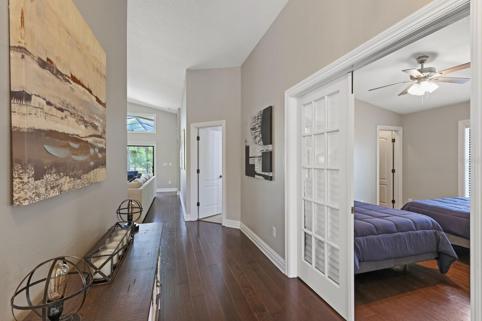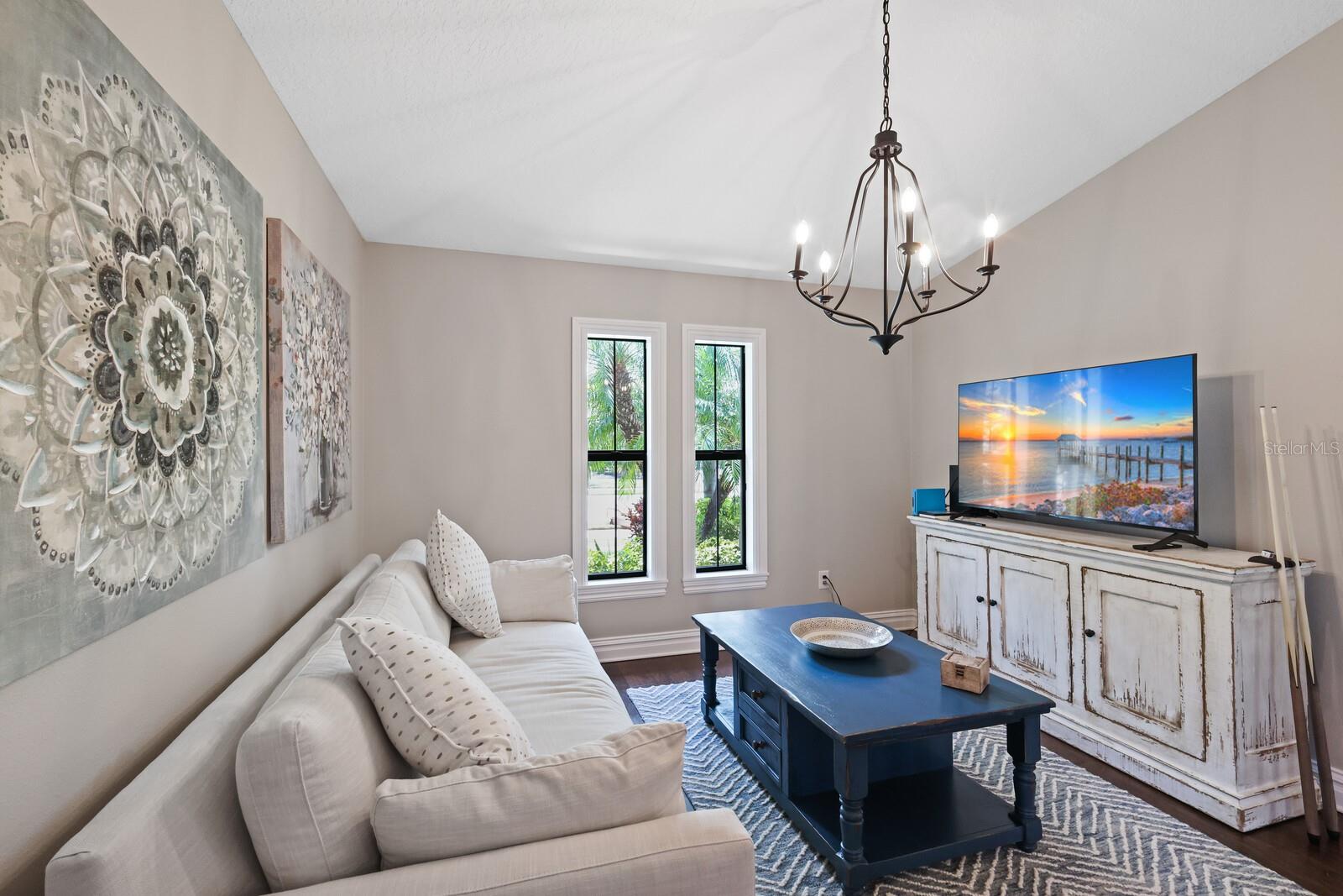 This designer 3 bedroom, 3 bathroom by Cardel Homes offers a remarkable blend of luxury, convenience, and tranquility. With its prime location in the Country Club East community and the array of amenities it boasts, it's clear why this home is an attractive option for both seasonal and year-round living. This unique open concept layout with vaulted ceilings and rich engineered hardwood flooring sets a sophisticated tone throughout the home. The kitchen, equipped with top-tier appliances and a spacious island, is ideal for entertaining or preparing meals with ease. The view from the living area to the pool and serene pond creates a peaceful atmosphere perfect for relaxation. The flexibility of the large office space, currently used as a fourth bedroom, enhances the home's versatility to accommodate various lifestyle needs. A spacious family room is perfect for gatherings with family and friends, a kids retreat, or versatile living space. The owner's suite, complete with a luxurious en-suite bathroom and stunning views, offers a private oasis within the home. This location provides easy access to popular attractions such as the UTC Mall, downtown Lakewood Ranch, and award-winning beaches ensuring residents can enjoy both the convenience of urban amenities and the natural beauty of Gulf Coast living.