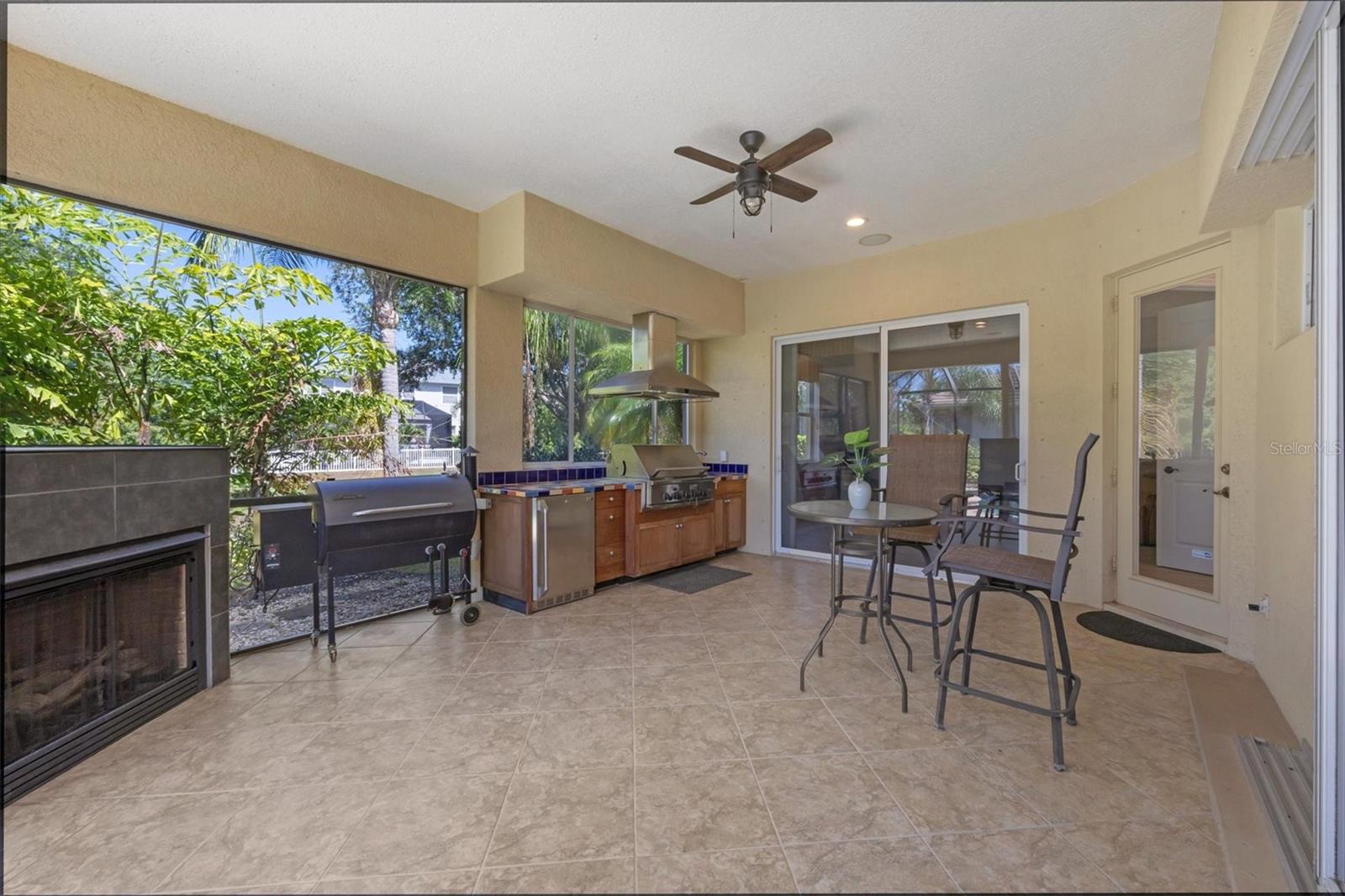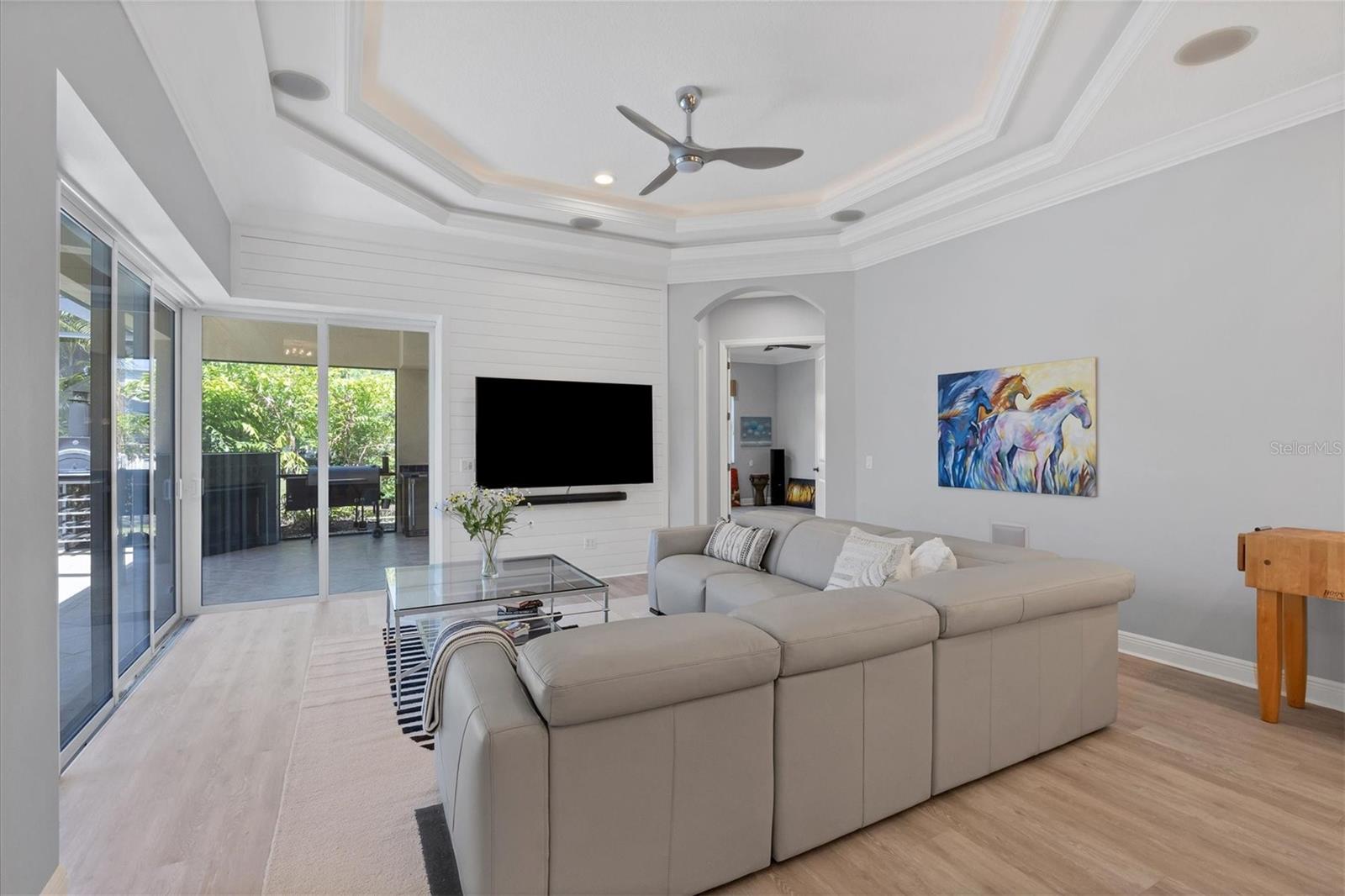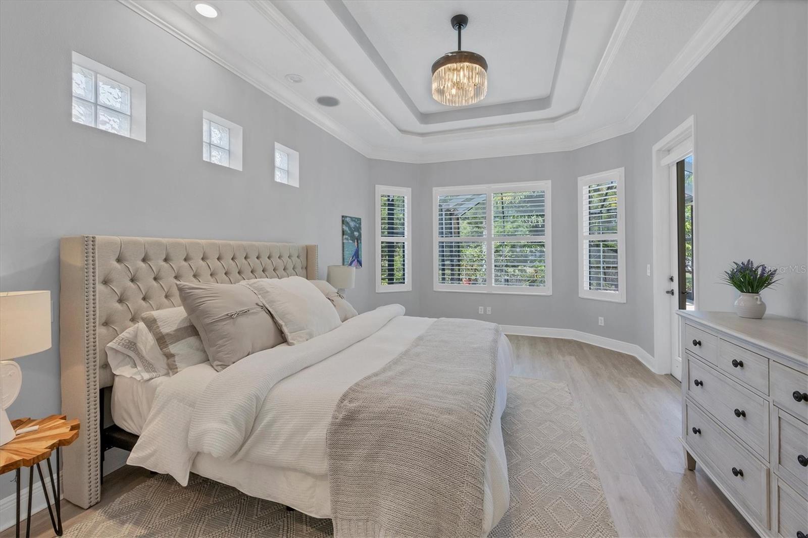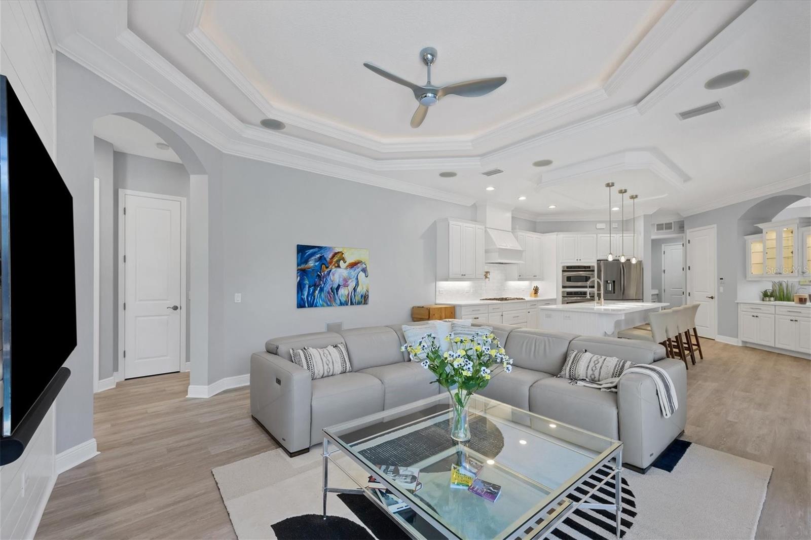 Welcome to 14721 Bowfin Terrace, a beautifully updated Lee Wetherington home in Greenbrook Preserve in Lakewood Ranch. An expansive paver driveway and new landscaping welcome you into the home. Once inside, the open floor plan plan seamlessly brings together the generous living spaces making it perfect for both relaxing and entertaining. Stunning new luxury vinyl plank flooring throughout creates a cohesive palate and draws you towards the expansive pool and lanai area with lake views beyond. Whether you are a chef or aspire to be, the kitchen is as aesthetically captivating as it is functional. Custom cabinetry, quartz countertops, luxury appliances including a gas cooktop with a pot filler, large pantry and convenient bar seating with new lighting are a few of the features. Separate living room and family room spaces as well as casual and formal dining spaces are defined but open to each other creating a casual comfortable feel. The primary suite is an oasis offering a large walk-in closet and bath with free standing tub, large glass enclosed shower and separate vanities. There are two additional bedrooms as well as a bonus room with slider access to the covered outdoor space. Lee Wetherington homes are known for their spectacular outdoor spaces and this home delivers. Enjoy the sparkling pool and spa as well as the significant covered outdoor space complete with a fireplace and summer kitchen. Seeing is believing – the features and updates are numerous and include crown molding, custom ceiling features and built-ins, quartz countertops, new paint, plumbing fixtures, light fixtures and much more. A three-car garage and lush landscaping complete the package. Enjoy Greenbrook Village's two community parks with pavilions, basketball, volleyball, soccer, playgrounds, a dog park and an extensive trail system. All this and close to great schools, shopping, dining and all that living in Lakewood Ranch has to offer.