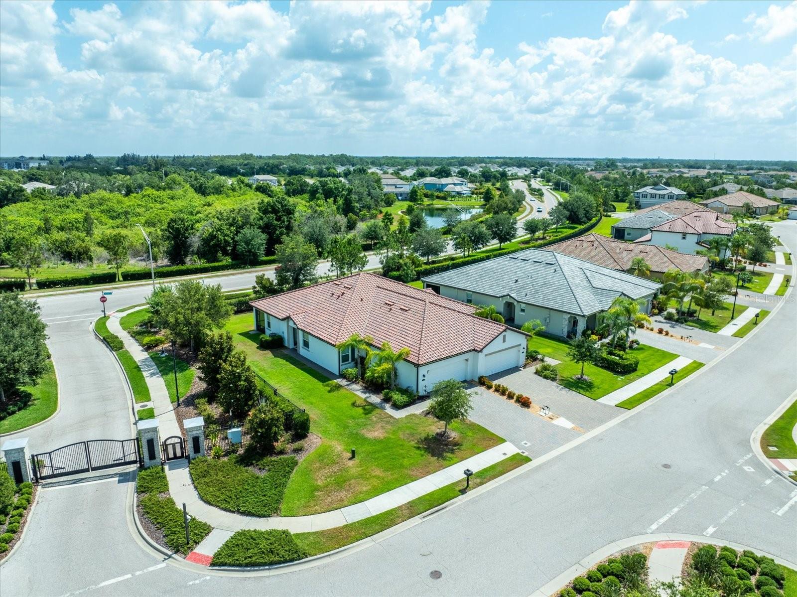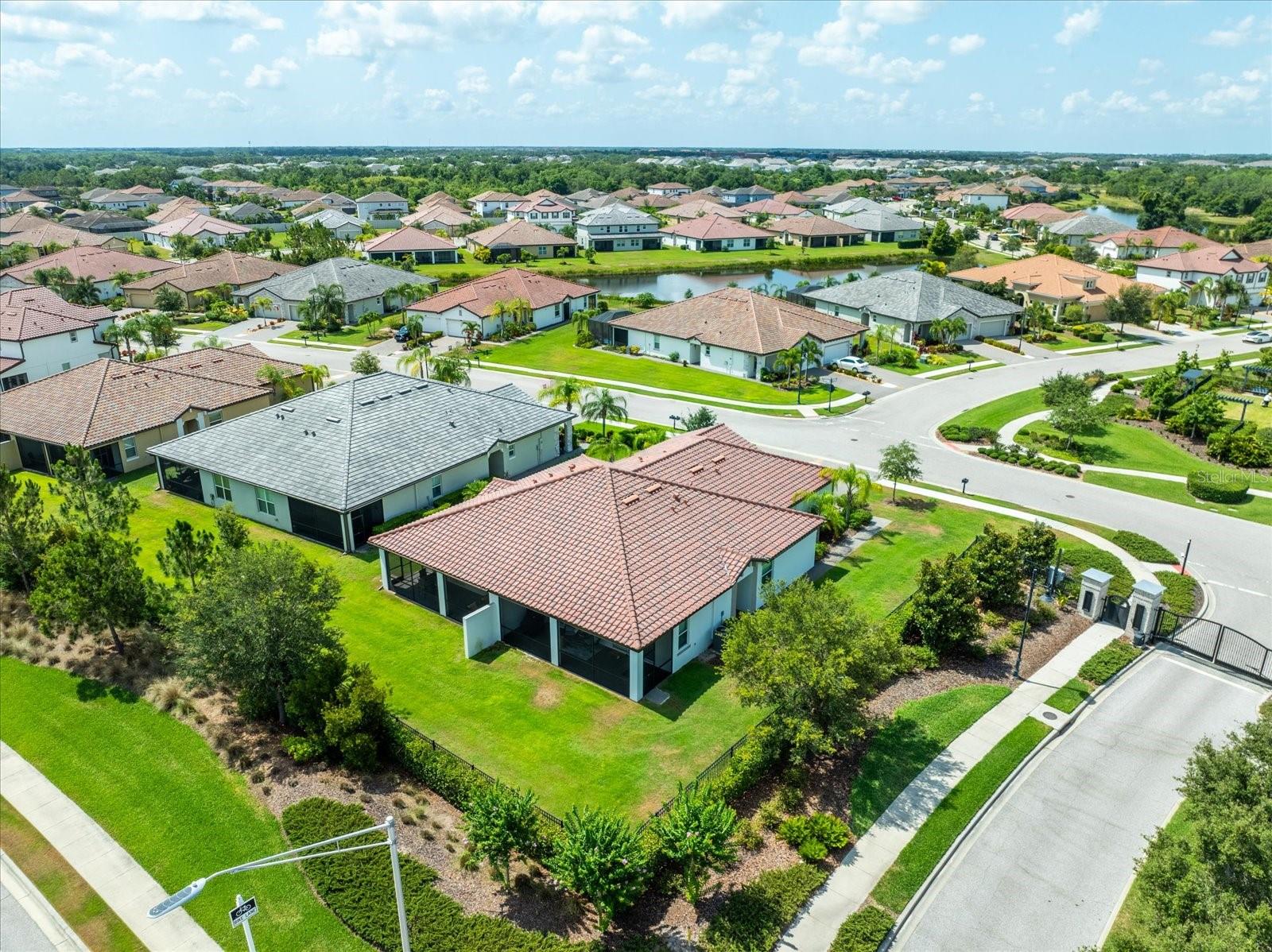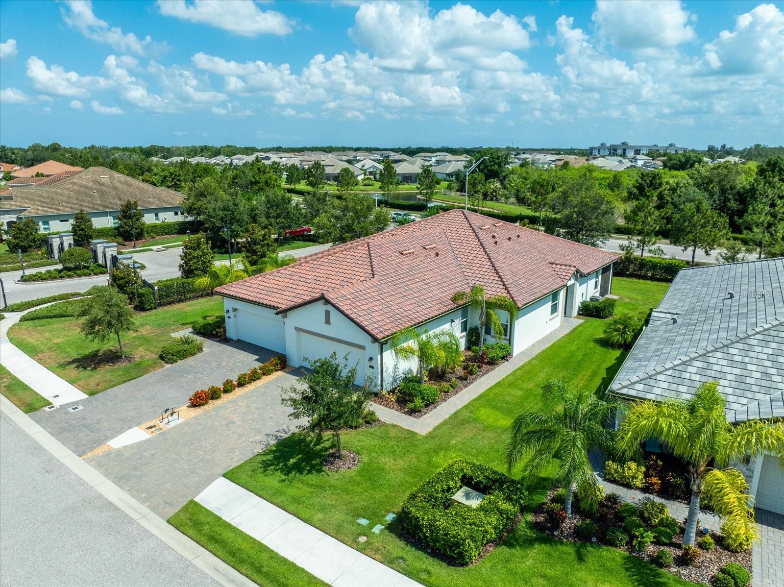 Welcome to this immaculate grand villa in Arbor Grande, located in the country's number 1 fastest growing community of Lakewood Ranch. This modern 3 bedroom/2 bath home boasts an open and bright floor plan, with a pristine kitchen featuring white cabinets, stainless steel appliances, and elegant neutral granite countertops. The third bedroom serves as a versatile office space, complete with charming French doors. Step outside to the oversized 10 x 27 screened lanai, perfect for enjoying the Florida sunshine. The home features neutral tile throughout, a stylish tile roof, and a paver driveway, adding to its overall allure. Arbor Grande offers an array of amenities, including 2 heated pools, a pickleball court, a private dog park, and a relaxing hot tub, making it a haven for leisure and recreation. Onsite management maintains an active calendar of social events, activities, and many interest clubs. This gated enclave showcases attractive architectural designs and color schemes, creating a welcoming and vibrant community. This NEARLY NEW villa was well-cared-for, and perfectly situated in a prime location within much sought after Lakewood Ranch area. Lakewood Ranch offers excellent schools, shopping, recreation and entrertainment. Come watch the sunsets from your new home or from our world famous beaches just a short scenic ride away.