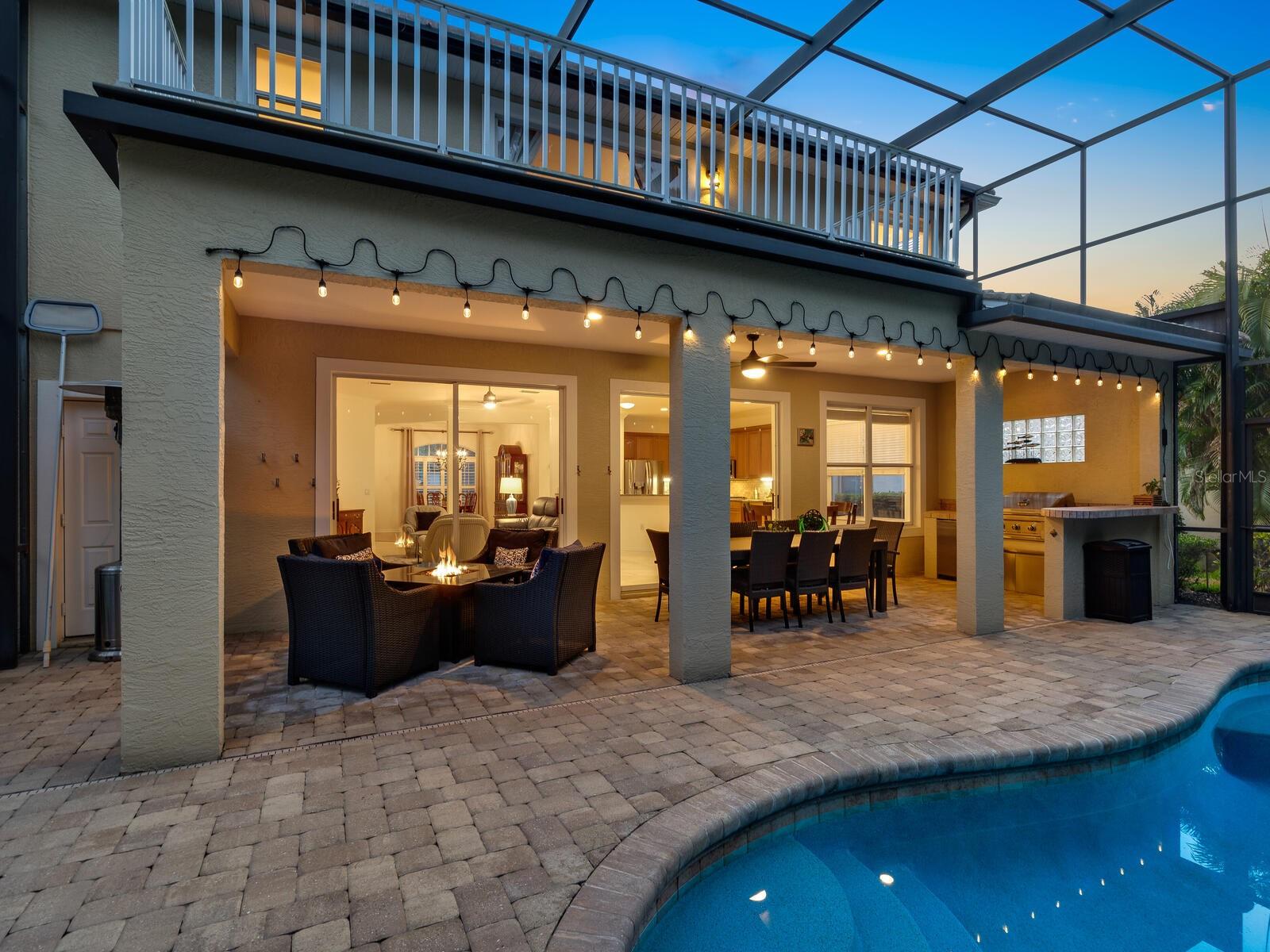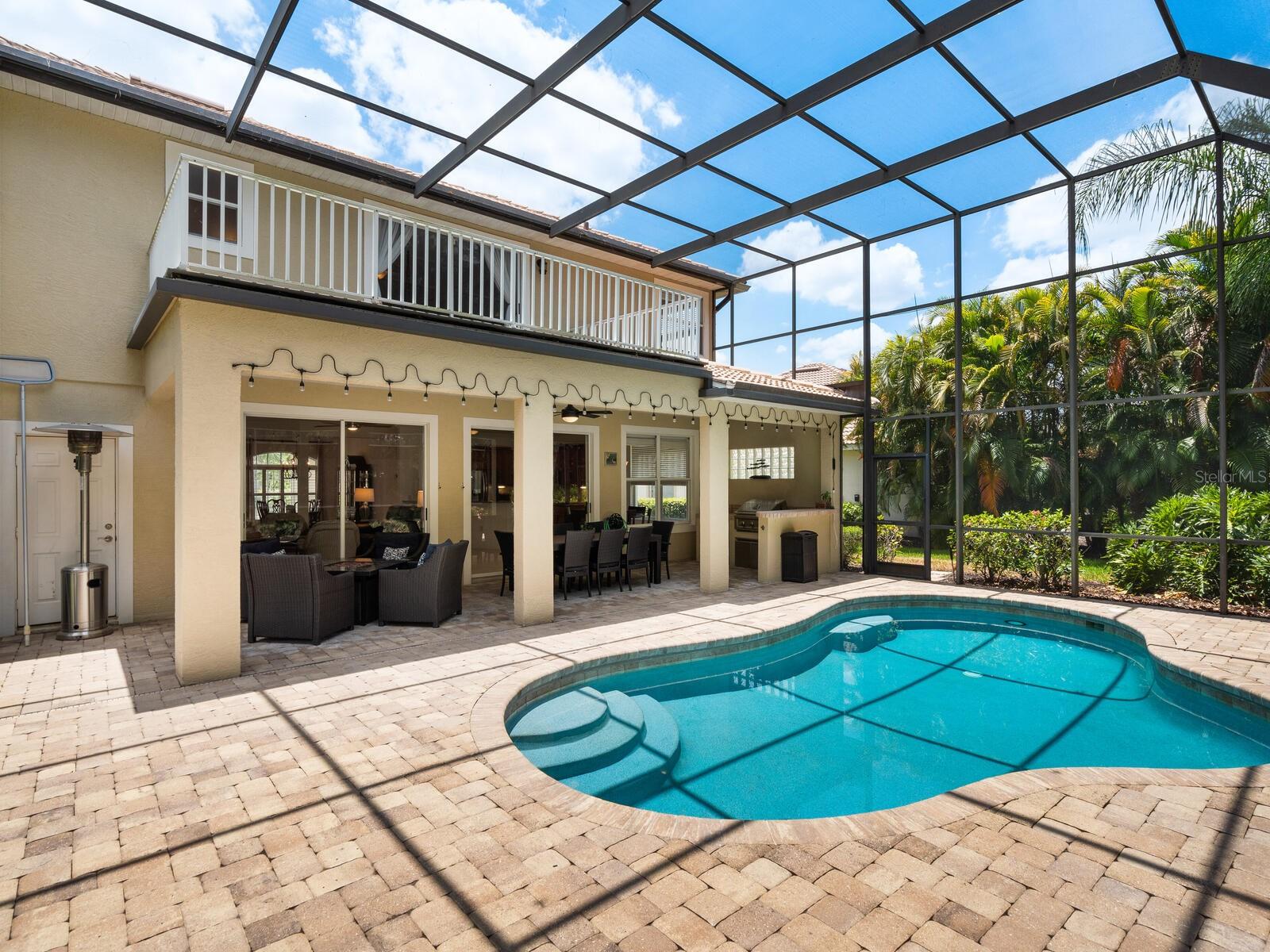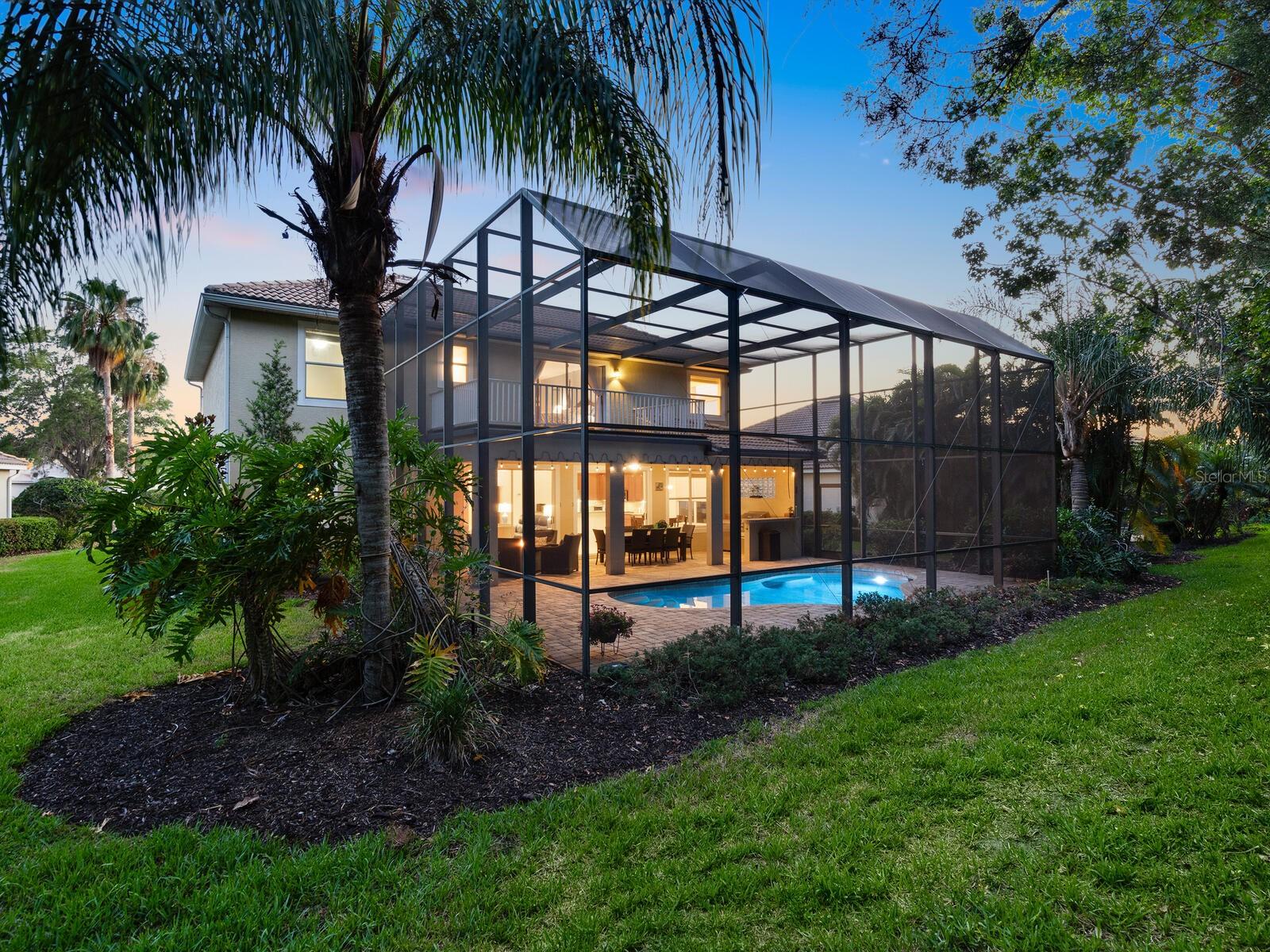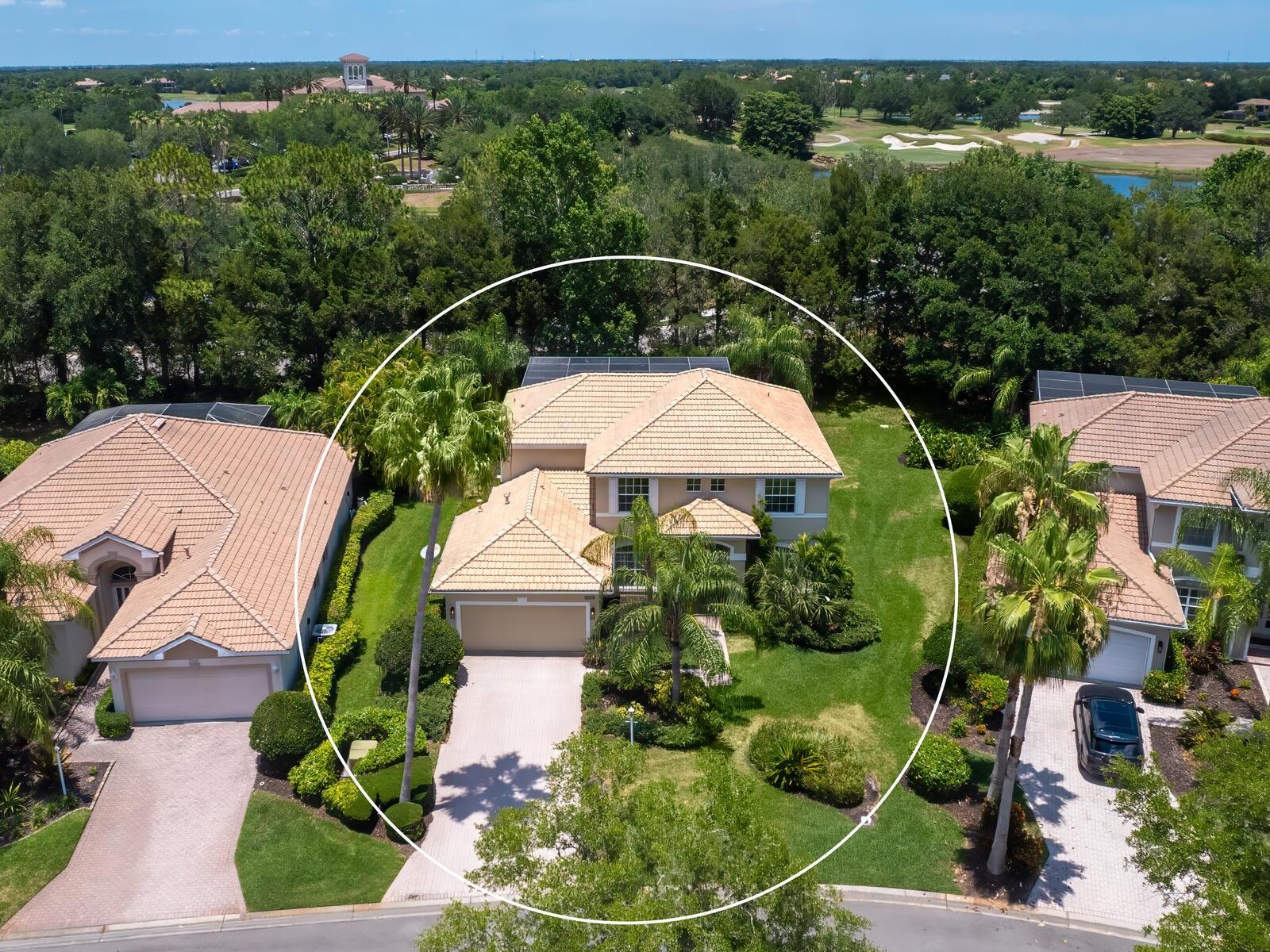 Searching for the perfect buyer for this stunning Neal-built residence located in the highly desirable Lakewood Ranch Country Club! This immaculately kept 2 story residence offers 5 bedrooms, 3 full baths, 2900 square feet of living space for modern living, and is located in an A Rated School District! This is THE choice for the buyer looking for space, privacy and prestige. As you enter, you'll be captivated by the open concept layout seamlessly combining the kitchen, dining and living areas. The Chef’s kitchen is designed with both functionality and style in mind, featuring new LG appliances and a natural gas range, providing top-of-the-line culinary performance. The adjoining breakfast area and living room boast views of the lanai, private wooded landscaping and heated pool, accessible through several sets of sliding glass doors for true indoor/outdoor living. The screened lanai features a spacious covered seating and dining space and fully equipped outdoor kitchen with gas grill, ready for you to enjoy! The main level also includes a full bedroom and bathroom, offering the perfect space for guests or even multi-generational living; as well as a den by the front entry. On the upper level, you’ll discover a secluded and private primary bedroom suite with double entry doors, two walk-in closets, and its own private balcony overlooking the lush surroundings for luxurious and private relaxing. The en-suite bathroom offers dual sinks, a walk-in shower, and soaking tub. Three additional generously sized bedrooms are on the upper level which share a bathroom, and there is plenty of storage throughout! The residence is also finished with high-end touches such as plantation shutters, crown molding, a well-kept paver driveway and entry, and a large laundry room with shelving, cabinetry, and a utility sink. The tile and grout has been meticulously maintained, along with the driveway, landscaping and hardwood flooring. Located in the desirable Gleneagles section, this property offers the added convenience of grounds maintenance included in the monthly fees for a truly low-maintenance lifestyle. With an A-RATED SCHOOL DISTRICT including Willis Elementary and Lakewood Ranch High School, and in one of the most exclusive communities in America’s top-selling Lakewood Ranch, this residence is an amazing value and investment for years to come! The Lakewood Ranch Golf and Country Club is within walking distance (membership is not required). Joining the Club grants you convenient access to the 45,000 sq ft clubhouse, restaurants, 4 private golf courses, social activities, athletic center, tennis and pickleball courts, and more—many of which are easily accessible via golf cart. Located nearby to UTC Mall featuring upscale shopping, dining, and entertainment, close to all that downtown Sarasota offers and access to world-class beaches—this home is waiting for you! Schedule your private tour today.