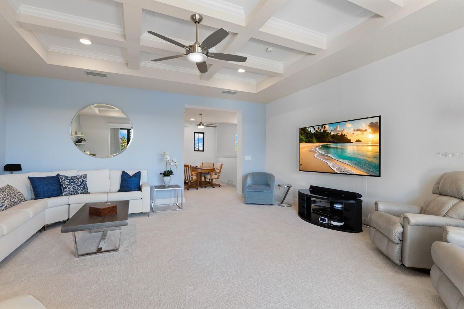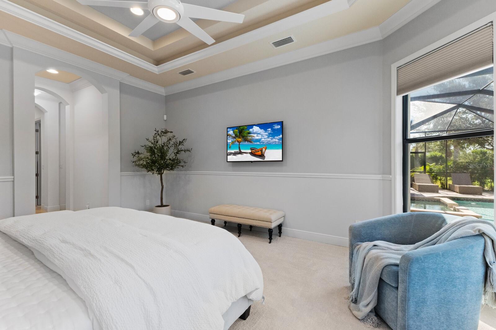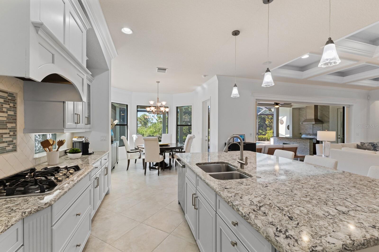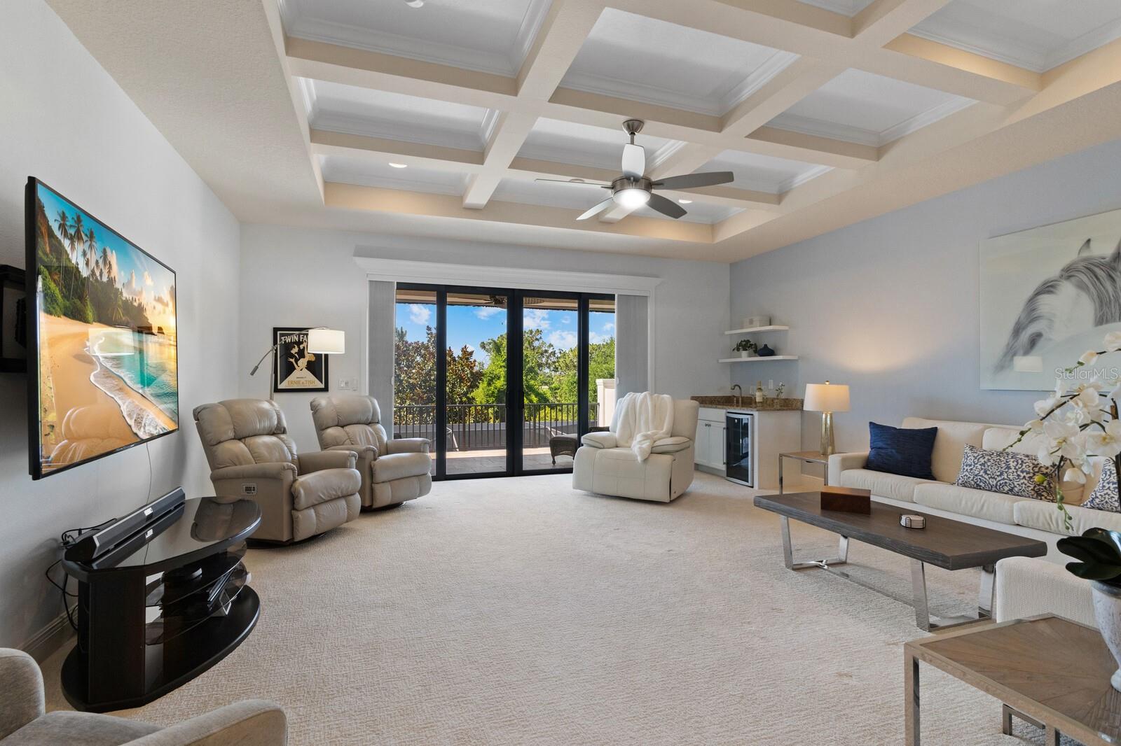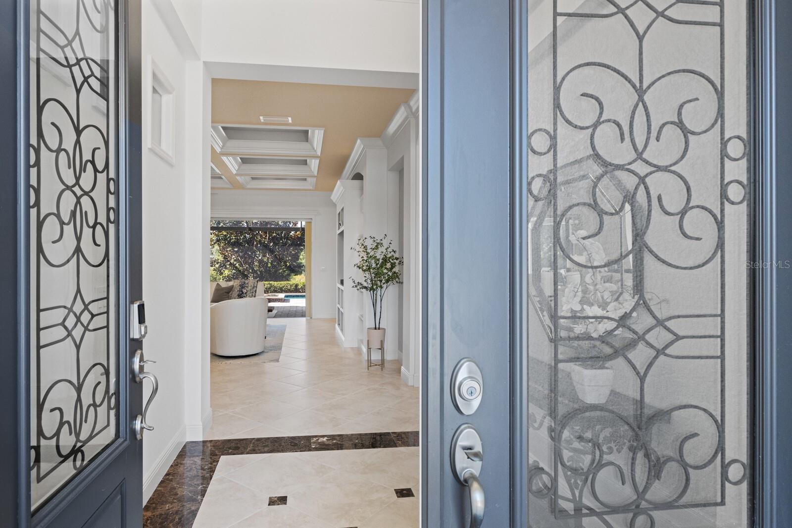 Move-in ready, this gorgeous Lee Wetherington home has been updated and freshly painted inside and out. This home seamlessly blends indoor with outdoor living. Upon entering, you’re immediately drawn to the tranquility and privacy of the natural preserve and lanai through the expansive wall of glass. Step outside to your private oasis, complete with salt-water heated pool/spa and waterfall, outdoor kitchen with new decorative tile, half bath, and a generous covered entertainment area with charming wood accent ceiling, fire-pit and newly installed outside speakers – perfect for year-round enjoyment. The open concept living, dining and kitchen areas exude elegance and sophistication with architectural details including high coffered ceilings and crown molding throughout. The heart of the home is the kitchen featuring a walk-in pantry, large island, stainless steel appliances, wine refrigerator, quartz countertops, and soft-close solid wood cabinets. The main floor has three bedrooms, 3 full baths, half-bath, den/office and updated laundry room. Indulge in the luxurious owner’s suite with tray ceilings, glass shower, jacuzzi, make-up vanity, dual sinks and dual closets. Built for entertainment, the spacious second floor has high coffered ceilings, sliding glass doors, sink, bar refrigerator and full bath. Enjoy your favorite movies/sports with friends/family or relax on the balcony and take in the lovely view of the preserve and/or romantic sunsets. This floor could also function as a mother-in-law/guest suite. Additional features of this exceptional home include impact glass windows, whole house generator, landscape lighting, LED pool cage lanai lights and climate control storage. Recent upgrades include new hurricane-rated garage doors, newly installed outside lanterns, ceiling fans, and carpeting in bedrooms and 2nd floor. The landscaping has been enhanced with lush Areca Palms providing both beauty and privacy. Country Club East offers residents the ultimate in gated community living, with amenities such as three community pools, fitness center, and community clubhouse. This fantastic location is close to everything including world-class shopping, beaches, dining, medical facilities and airports.