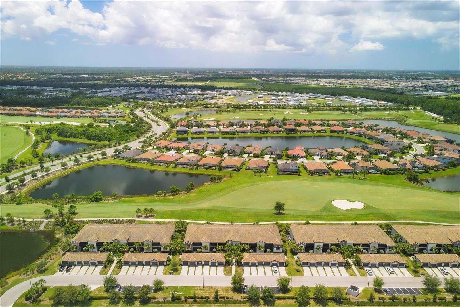 SELLER OFFERING $5000 CREDIT TO BUYER AT CLOSING for any buyer that closes before 12/31/24. This striking and highly sought-after first-floor end unit Arabella is offered turnkey furnished and priced to sell, especially with this NEW INCENTIVE. This property is a VERY SHORT WALK to the AMAZING AMENITIES that Lakewood National Golf Club offers. The Arabella is the largest of the three Veranda floor plans at 1,569 square feet of open living. With two spacious bedrooms plus a den with a Murphy bed, dry bar, a fully stocked spacious eat-in kitchen, two expansive screened-in patios at each end of the unit and a one-car garage, this home is perfect for entertaining or just relaxing after a challenging round of golf. The eat-in kitchen is well-appointed with granite countertops, custom backsplash, stainless steel GE appliances and bar height counter which could accommodate additional seating. Golfers will appreciate this unit which overlooks Hole 1 of the Commander course which was named #1 Golfers Choice and #1 Top Course in FL by Golf Advisor. Offered turnkey furnished, this tastefully decorated unit offers an abundance of natural light due to the extra windows only available in an end unit. This home will appeal to all buyers, so do not wait as this desirable first-floor end unit home will not last. Lakewood National Golf Club offers gated, maintenance-free living with extraordinary amenities that include 36 holes of Arnold Palmer-designed golf courses, a zero-entry heated pool with cascading waterfalls and lap lanes, poolside Tiki bar and café, fitness center with group exercise classes, on-site full-service spa, eight lighted Har-Tru tennis courts, bocce, pickleball, several satellite pools, and a stunning new 28,000 square foot clubhouse which offers fine and casual dining, an expansive bar/lounge, mens and ladies lounges/locker rooms, conference/meeting space, a full-time lifestyle director that keeps the residents’ social life fun and active with Trivia Night, Karaoke Night, live concerts on the green, extravagant holiday parties, wine tasting dinners, and more. Lakewood National Golf Club hosts the annual Korn Ferry Tour’s LECOM Suncoast Classic. Lakewood National Golf Club is the destination of choice. Lakewood Ranch, Florida, is ranked the No. 1 community in the U.S., which encompasses 50 square miles filled with dining, arts, entertainment, shopping, nature and recreation, as well as some of the most beautiful home choices for all ages and lifestyles. A-rated schools, easy access to I-75 and downtown Bradenton, Sarasota and Tampa and conveniently located to world-class beaches, spectacular shopping, great restaurants and everything you need within a few short miles. Book your private tour of this beautiful home and community today!