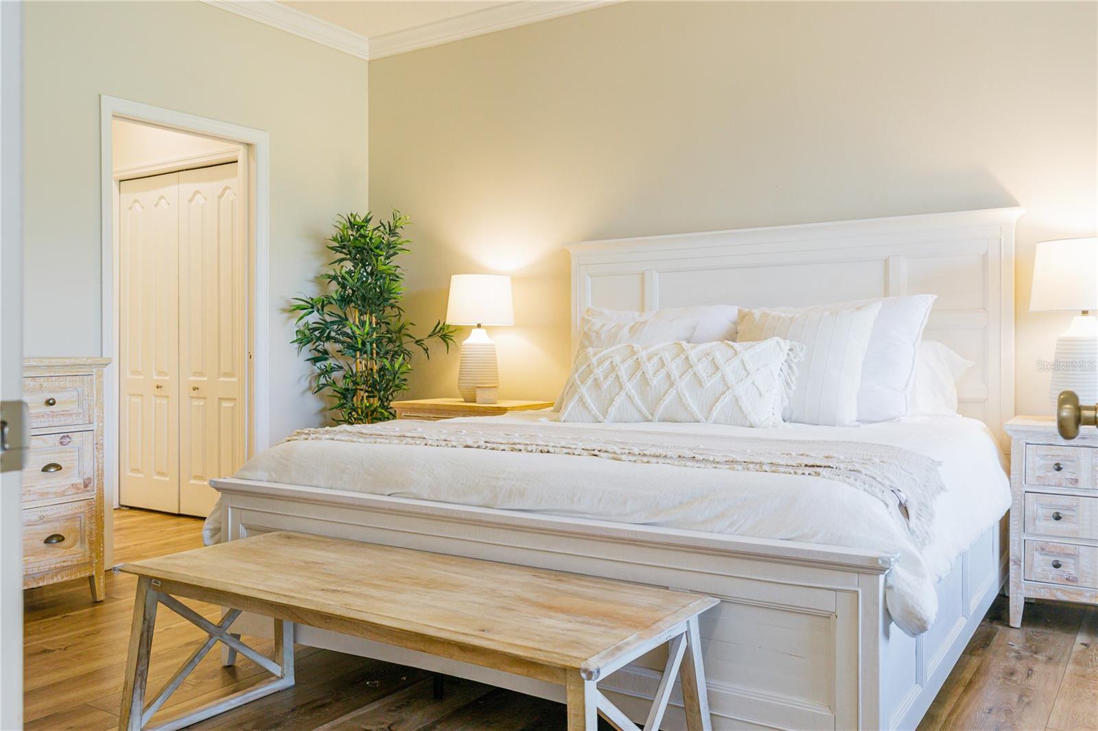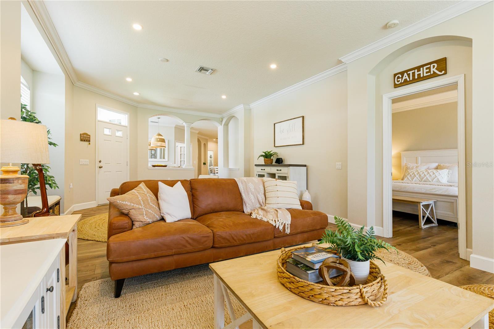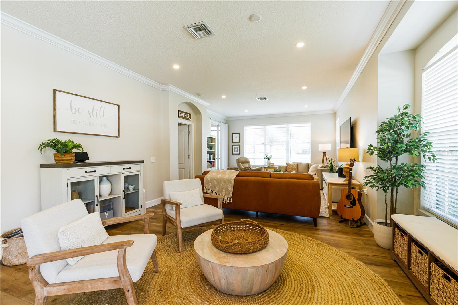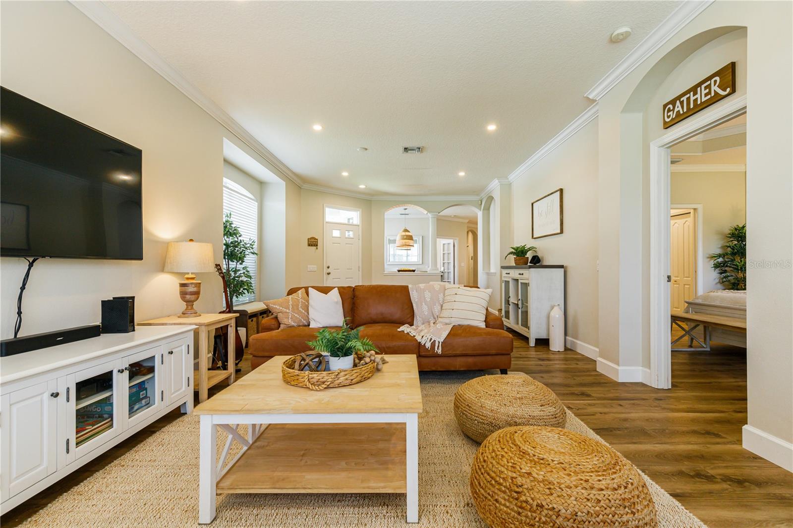 STUNNING HOME IN AMAZING LOCATION - WESTON IN LAKEWOOD RANCH COUNTRY CLUB! As you enter this tranquil, light-filled home you will be greeted with volume ceilings, a spacious great room with flex space which could be used for a lovely dining room. Gorgeous high-end finishes tastefully done! New luxury wood plank vinyl flooring and 5" baseboards throughout the entire home along with LED recessed lighting for energy efficiency. Sleek new custom cook's kitchen completely redesigned includes island/breakfast bar with pendant lighting, solid wood cabinetry, subway tile backsplash with distressed finish, natural stone quartzite countertops and stainless steel appliances. Separate dining room located off of the eat-in kitchen is a cozy gathering place. The spacious master en suite with tray ceiling is located in the rear of the home and has a beautiful view of the Legacy Golf Course and access to the enclosed lanai. It features his and her's closets with built-ins (one walk-in). Master bath is complete with double sinks, garden soaking tub and new seamless glass shower door. The enclosed lanai is a cozy outdoor room with views of the 8th hole on the golf course and has beautiful plantings for privacy. A perfect place to enjoy your morning coffee. Enjoy the sitting area and have an outdoor barbeque with family and friends! Guest wing is in the front of the home and is spacious, full of light and has its own hall bath. Office/den with closet, french doors and black-out shades doubles as a 3rd bedroom. Indoor laundry room is conveniently located off of the kitchen. Owner replaced the washer and dryer and added amazing space saving organizers to make this one efficient space to work in! This jewel of a home is located just steps from the heated pool, spa and fitness center. Lakewood Ranch is an amazing community and offers golf courses, tennis, fitness, restaurants, shopping, a movie theater and many other activities held on Main St. The hospital is just 10 minutes away, 20 minutes to the airport and 30 minutes to beaches and downtown Sarasota. Run, don't walk to this amazing opportunity and value in beautiful Lakewood Ranch!