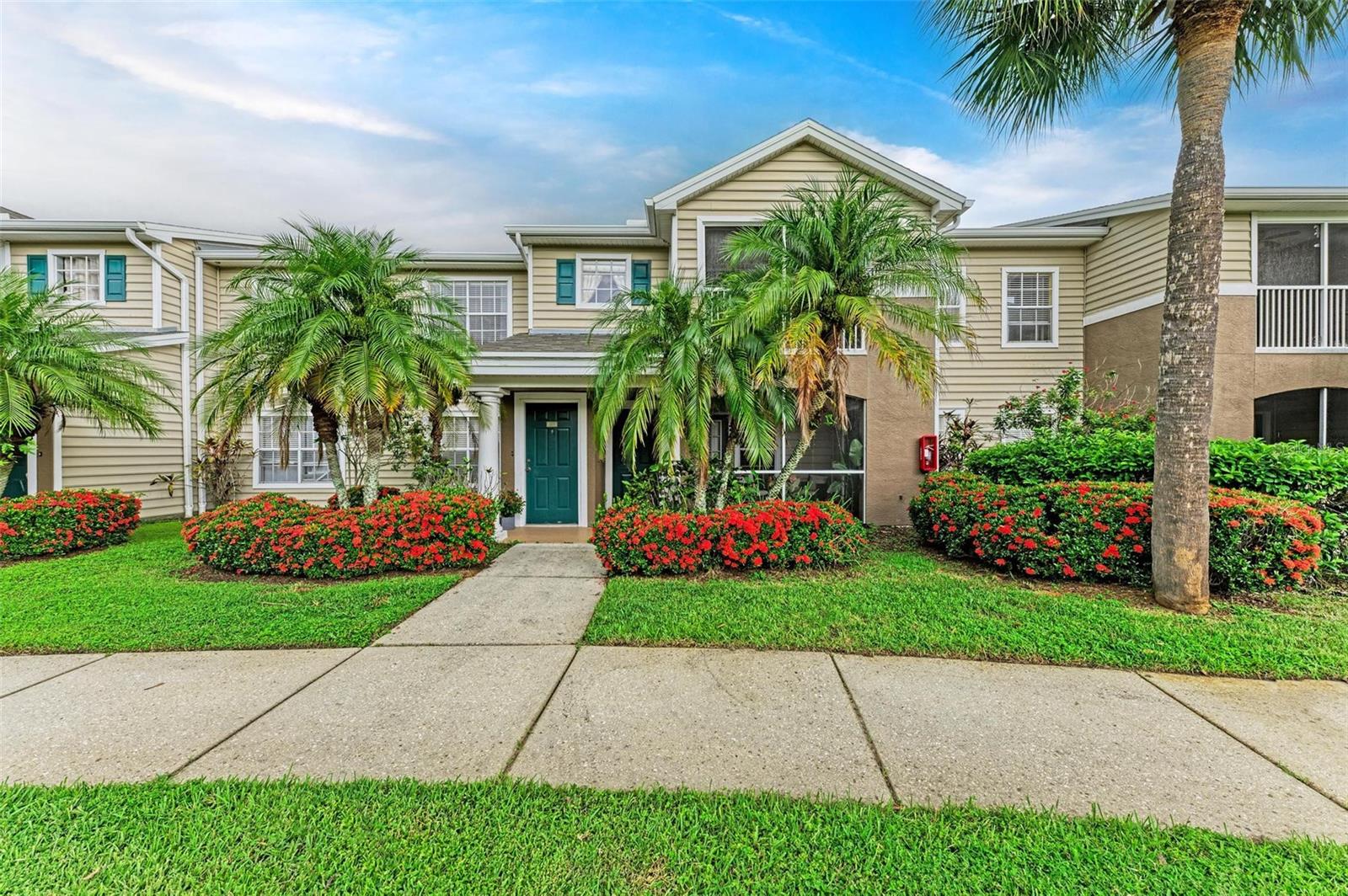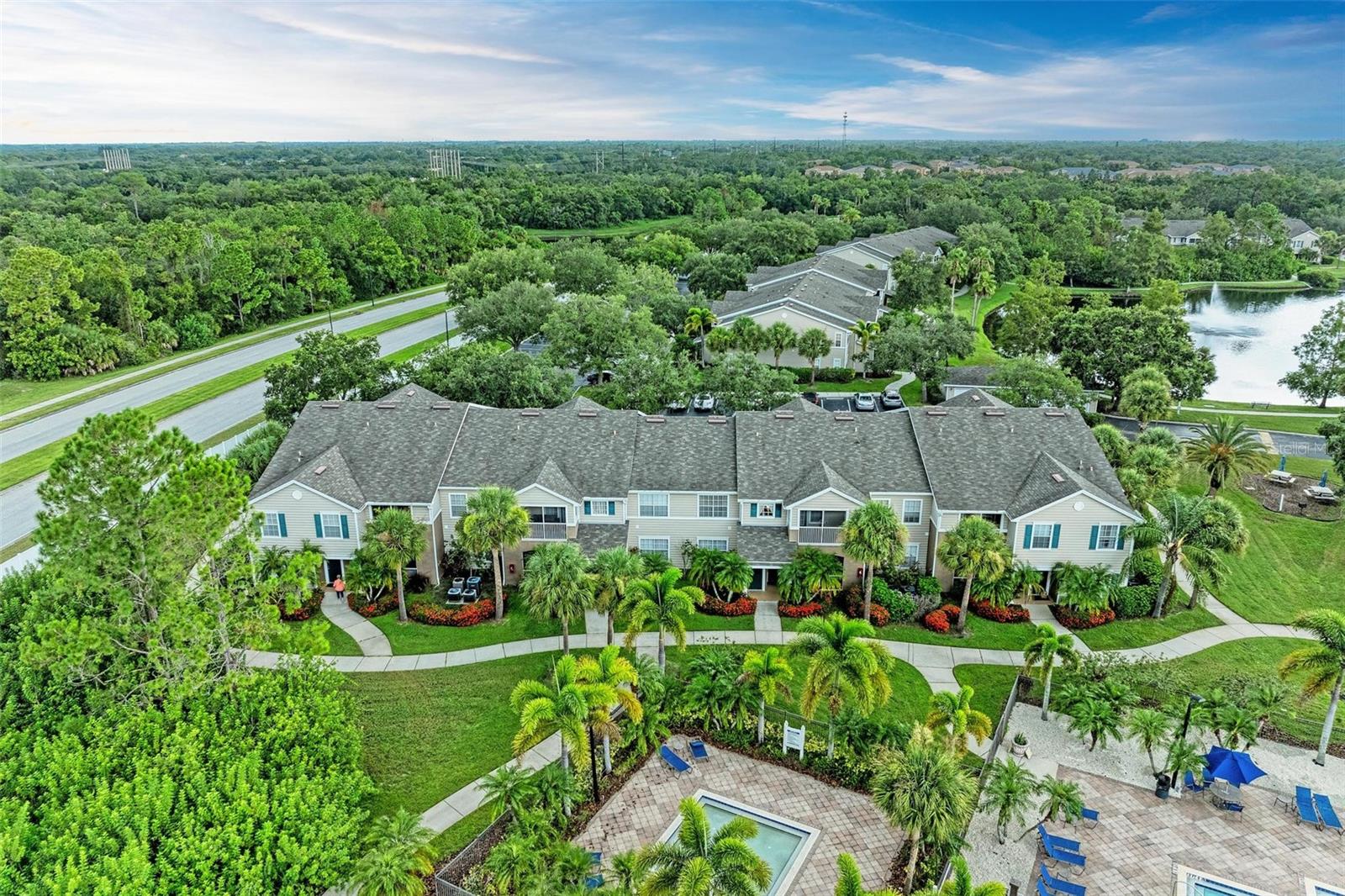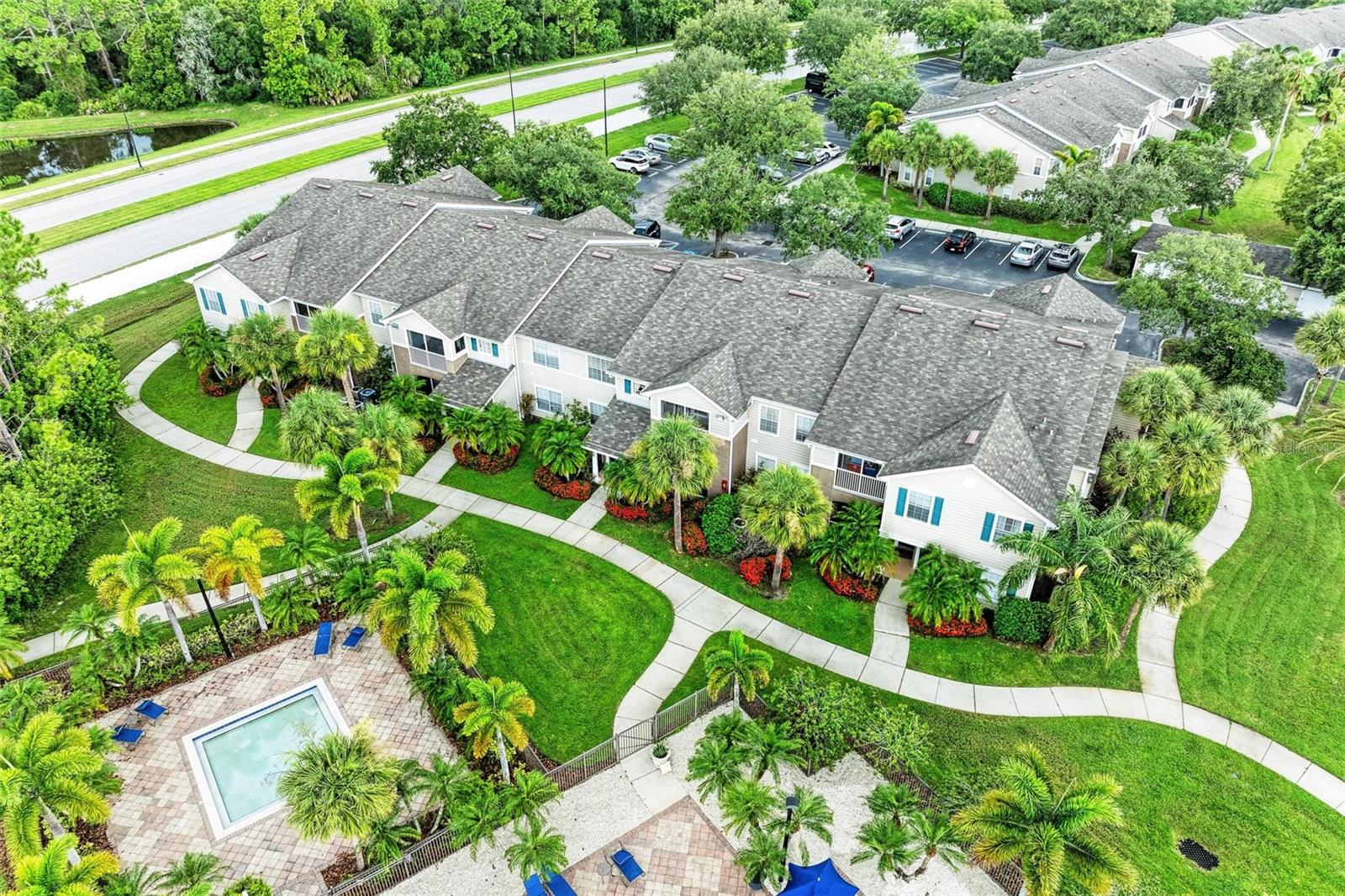 If location near dining, shopping and all the action is your goal, this home is for you! In Lakewood Ranch, right off of University Parkway, close to I-75, UTC Mall, Waterside Place and Downtown Lakewood Ranch yet a serene and quiet location. Also a great Investment Opportunity as Short Term leases are allowed. A beautifully landscaped community with walking trails, (which you can take all the way to coffee shop and Publix) ponds, a community pool, fitness center, volleyball court and playground. A well maintained split floor plan 2 bedroom, 2 bath home on second floor with an open kitchen, dining room and vaulted ceiling living room great for entertaining and everyday life. A screened in balcony overlooking the pool, great for coffee of or late afternoon relaxation. Washer and Dryer conveniently located behind closed doors in hallway to guest room. Home is offered fully furnished. No Milestone Inspections required. New AC in 2020, New Microwave and Dishwasher in 2023.