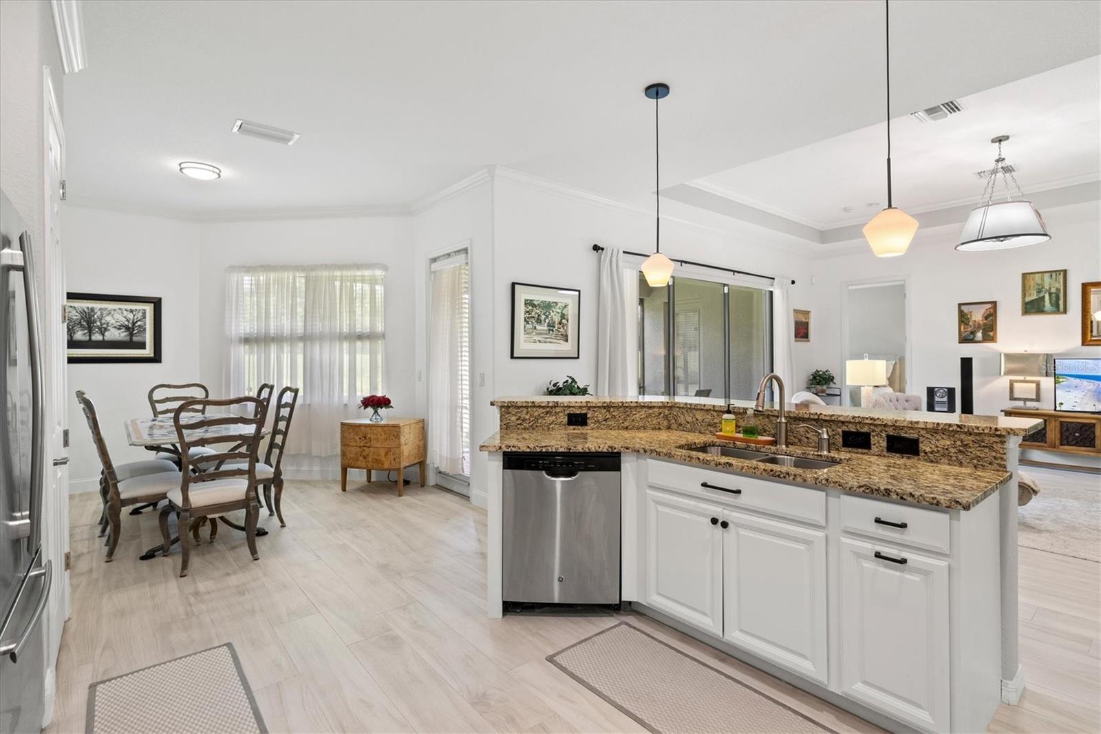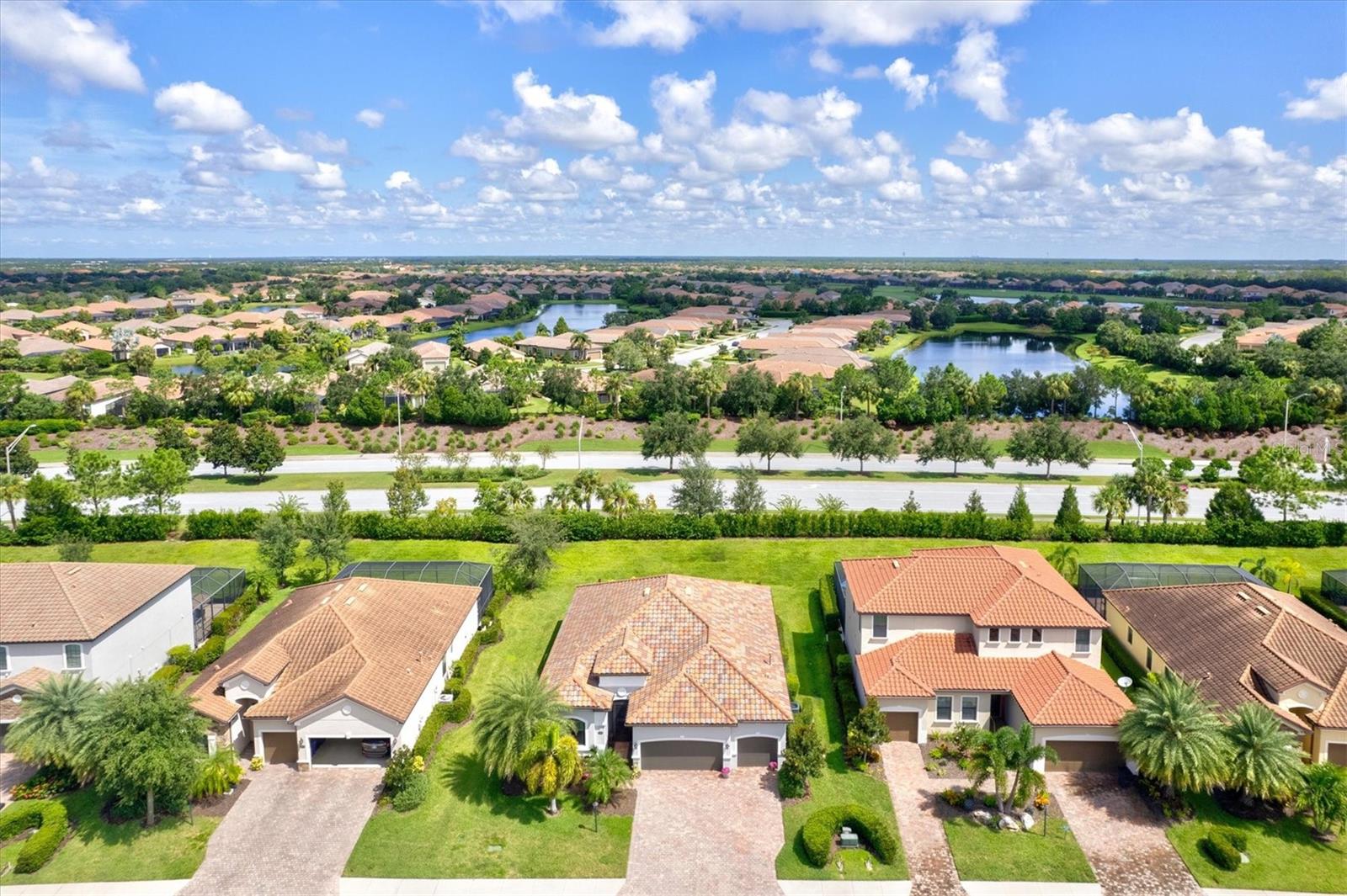 NON EVACUATION ZONE AND NO DAMAGE AND NO POWER LOST DURING HURRICANE! This is a move in ready four bedroom, two bath, unlike any other Princeton model home in the Bridgewater community. Before you even enter this home, you can see the alluring curb appeal, spacious three-car garage, and a paved driveway leading to a new lovely screened in entrance way. This home has been newly painted, roof has been meticulously cared for, and driveway sealed. Also, new full house gutters, extended drainage and new sod in the backyard for the Florida rainy season and a new full home surge protector for the Florida lightening. This home features many updates including a new HVAC system with heat-pump and transferrable warranty, new porcelain floors throughout, recently painted interior as well as tray ceilings, and new 5' molding throughout. Enjoy peace of mind with newly installed hurricane impact windows, a new ADT security system, and a new remote security Lanni screen. Also, included is a new beautiful interior linen Lanni shade for privacy. The kitchen features boasting granite countertops, a breakfast bar, and new Jenn-Air stainless steel appliances. It flows effortlessly into an eat-in dining area and imagine the formal dining room as a cozy library, offering versatility. The great room is perfect for unwinding after a busy day. Each bedroom is generously sized, ensuring retreat, if you so desire. Imagine again, a beautiful sunny home office making remote work a breeze and a convenient storage room. Closets are also newly updated. Both bathrooms have been newly updated with modern stand-up showers, glass enclosures, and new quartz vanity countertops. The new luxurious master spa ensuite features a soaking tub and walk in shower. The large backyard is ideal for your four-legged family member's or provides ample space to install the pool of your dreams. Bridgewater community is one of the most sought-after neighborhoods in Lakewood Ranch. Minutes to the I-75 corridor, UTC Mall, and Sarasota-Bradenton Airport. Don't miss your chance to make this stunning home yours!