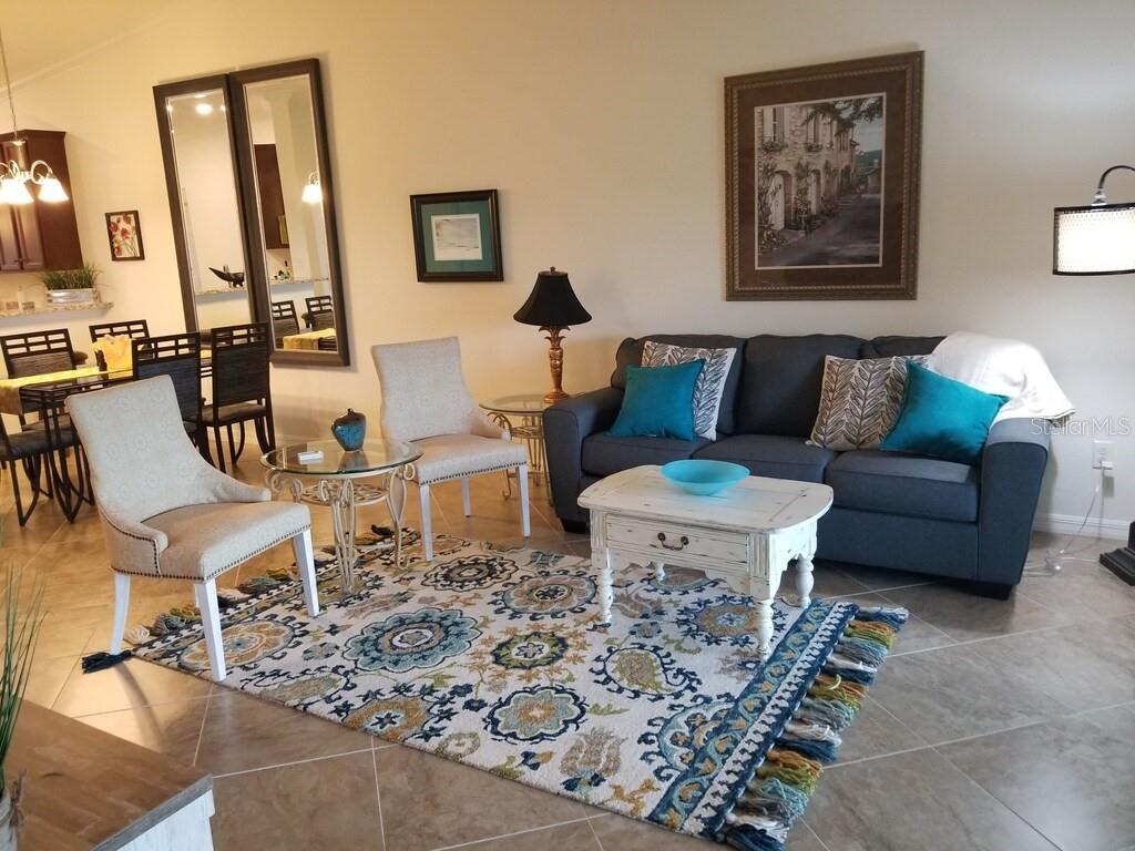 TURNKEY FURNISHED END UNIT! Welcome to this lush sought after resort community and live a maintenance free lifestyle on WORLD CLASS 36 HOLES, 2 COURSES, ARNOLD PALMER DEISGNED COURSES! Unobstructed golf course views in this bright and vibrant end unit features more windows, catherdral ceilings, 2 lanias and just a short walk to the main amenity center, no parking issues! The