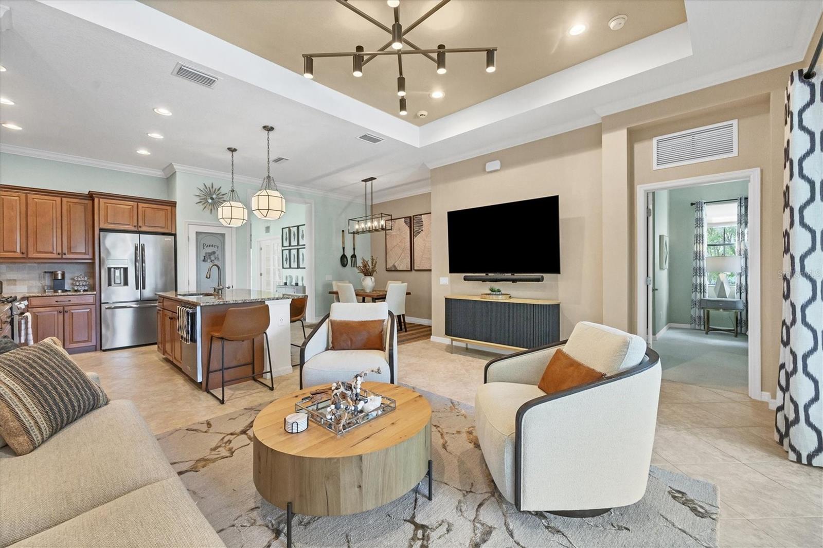 Situated in a private park-like setting of the gated Belleisle enclave in Country Club East at Lakewood Ranch, this elegant pool home offers 1,784 SF of open concept living space with 3-bedrooms, 2-bathrooms and a den/office. Enjoy the luxury of maintenance-free landscaping in this community, on lush tropical grounds with a peaceful preserve view. The exterior of the home blends modern design seamlessly with a classical aesthetic of tasteful elements such as the brick paver drive and walkway, tile roof, and Corinthian columns with striking archways at the entry. The updated interior space boasts thoughtful finishes throughout such as high ceilings, a neutral paint palette, recessed and designer light fixtures, crown molding, custom trim work in the foyer, and a tray ceiling in the living room. The options are endless with a versatile bonus space just off the foyer, perfect as a home office, den, or formal dining room. The gourmet kitchen is open, yet warm and inviting, with a spacious island that offers seating, maple cabinetry with plenty of storage, granite counters, and stainless steel appliances - including a gas range for the chef, and a walk-in pantry with new frosted glass door and lighting. An ideal layout for entertaining, off the kitchen is the open dining room and spacious living room that flow to the outdoors through sliding glass doors to the private, covered lanai and screened pool with a new pool heater. The primary bedroom is truly a delightful owner’s retreat overlooking the preserve, with two walk-in closets and a luxurious en suite bath with dual vanities, and walk-in shower. Two additional bedrooms offer comfort and flexibility, with ample space for guests. The outdoor space is the ultimate refuge of relaxation, with the sparkling pool surrounded by the natural conservation views adding privacy. Whether swimming, sunbathing, or hosting movie nights on the lanai, this space was designed to embrace the Florida lifestyle. The residence is being sold unfurnished, however, some or all of the furnishings may be purchased separately. Previous upgrades include newer HVAC unit, hot water heater, pool pump, laundry room cabinets and more. In addition to maintenance-free landscaping, the scenic Belleisle community offers a resort-style Residents Club with 2,100 sq. ft. pool, spa, clubhouse with full kitchen, indoor/outdoor fireplace and outdoor grill. In addition, the exclusive Country Club setting also offers a variety of optional memberships, from social, fitness, aquatics, tennis and golf, the choice is yours. This great location is convenient to top-rated schools, parks, shops, restaurants, Lakewood Ranch Medical Center, Main Street, and Waterside. Located just minutes to I-75, University Town Center Mall, and in close proximity to SRQ Airport, downtown Sarasota cultural venues, and our gorgeous Gulf Coast Beaches!