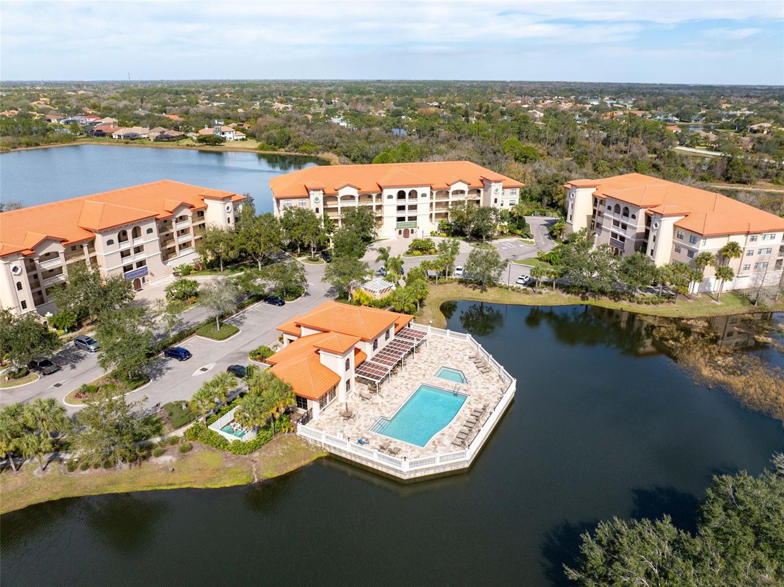 Incredible Price Drop! Enjoy the beauty and serenity of waterside living from this 3 bedroom, 2.5 bath top floor condo in the gated community of Lake Vista. An expansive foyer greets you as you enter the free flowing floor plan. Your eyes will lead you to the beautiful lake views where the owners catch dazzling sunsets, or simply enjoy tranquil water and wildlife views with their morning coffee. The living and dining rooms have a trayed ceiling, and luxury vinyl flooring. The kitchen is well equipped with stainless steel appliances, granite appliances, pantry, and breakfast bar. The sensuous primary bedroom has a 8 sided polygonal ceiling with lighting that creates a warm ambiance. Sliding glass doors lead out to the screened porch, which also has an entrance into the living room. The other two bedrooms are located on the opposite side of the condo for ideal privacy for everyone. This condo has two deeded park spots in the garage on the first floor, plus an additional storage closet. Added pluses are impact windows and slider, AC 2018, new roof in 2022, and a fob security system for peace of mind. Enjoy the many social activities in the clubhouse, plus large pool, spa, and fitness center. The community is pet friendly allowing 2 pets, no weight limit. This location is ideal with only a 10 minute walk to LWR Main St. where there are shops, restaurants, a movie theater, and music and art events. LWR hospital is a short 2 minute drive.