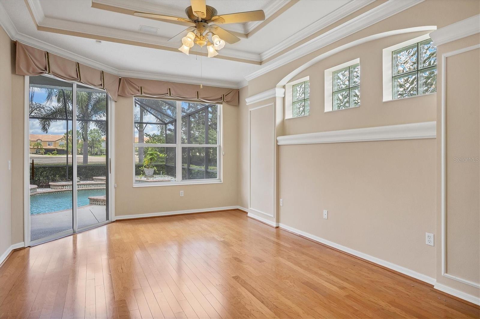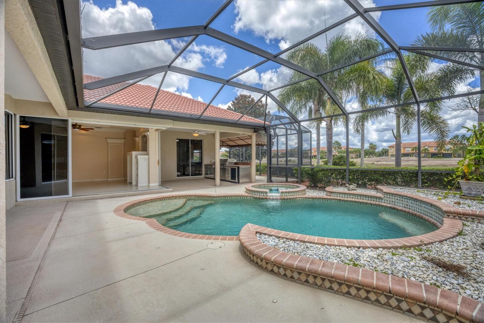 Welcome to this luxurious pool home in The Country Club at Lakewood Ranch, situated on the fairway of the fifth hole of the Legacy Golf Club. As you approach this beautiful Wetherington-built property, you'll be impressed by the mature yet well-manicured landscape leading up to the double-door entry. Inside, you'll find a stunning living space with an open concept design. The formal dining room and living room/sitting room flow seamlessly into the family room, creating a perfect blend of formality and casual relaxation. The impressive kitchen overlooks the pool area, complete with a Corner Pocket slider for easy indoor/outdoor entertaining. This spacious home features three bedrooms and a bonus room, including a privately located master suite with a walk-in closet and en-suite baths. Two additional bedrooms are situated on the opposite side of the home, each with its own full bath access for added convenience . Natural light pours in through the abundance of windows and sliders, highlighting the beautifully designed interior spaces. Crown molding, tray ceilings, and coffered ceiling effects add a touch of elegance throughout. The outdoor living space is just as impressive, with a spacious pool area featuring a covered patio and outdoor kitchen/bar. The rear landscape and golf course view create a serene and peaceful atmosphere. Additional features include a double car garage with custom cabinet storage and a finished bonus area with air conditioning. This exceptional home offers something for everyone, from its prime location to its beautifully designed interior spaces and exterior living areas. Contact Lakewood Ranch Country Club for optional membership availability . Legacy Golf Club is currently undergoing an exciting multi-million-dollar renovation. They anticipate reopening in the fourth quarter of this year. Don't miss this opportunity to make this home yours!