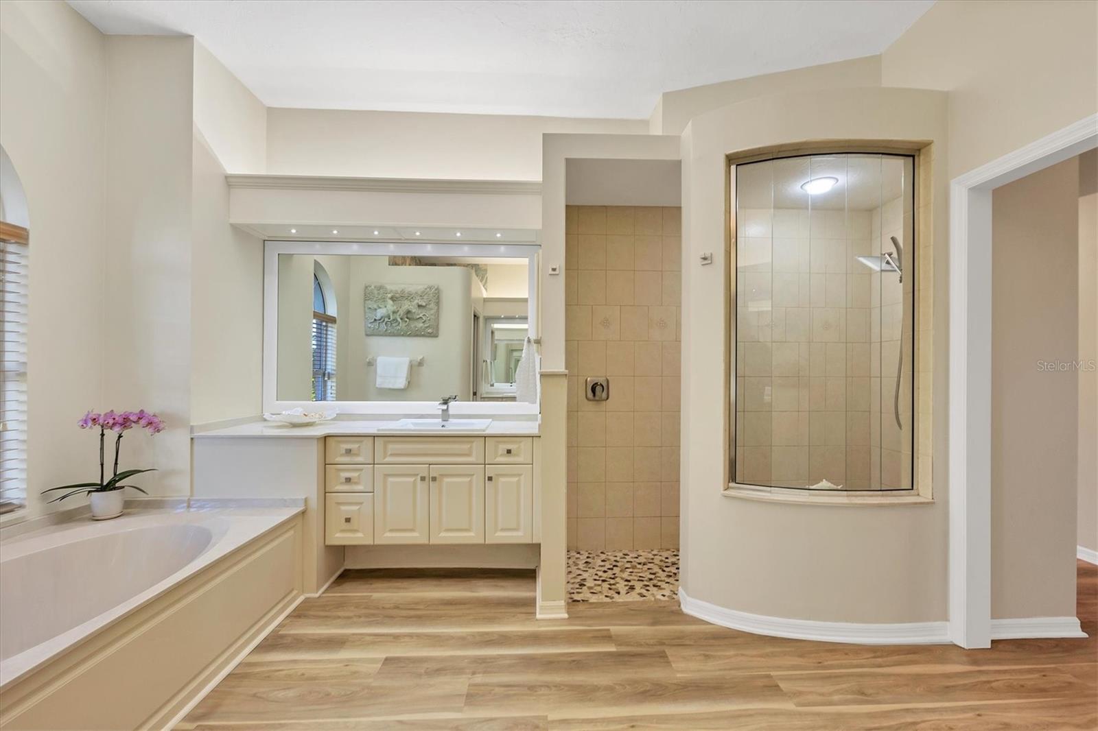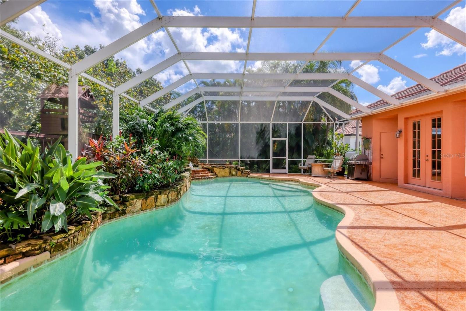 This breathtaking custom-built Todd Johnson residence, featuring four bedrooms, a den, and a spacious bonus room, is gracefully positioned on a premium, over one-acre homesite, against the tranquil preserve. With the brand new roof completed in March 2024, one can step into this exceptional property with peace of mind. From the moment you enter, you’ll be drawn to the refined ambiance, highlighted by an elegant natural gas fireplace, new designer lighting, fresh interior paint, and luxurious vinyl plank flooring. Expansive sliding glass doors seamlessly pocket, revealing the enchanting lagoon-style pool beyond. The kitchen, a culinary masterpiece, showcases newly painted white cabinetry, a stunning backsplash, a gas cooktop, a walk-in pantry, a separate island and stainless steel appliances, creating an environment for the aspiring chef. The primary suite is a sanctuary, offering an extended sitting area, a custom-designed oversized closet and a spa-like bath complete with dual sinks, a walk-in shower and a soaking tub for ultimate relaxation. The office, positioned at the rear of the home with an elegant wood floor, affords serene views and direct outdoor access, allowing one to revel in the beauty of the surroundings. Ascend the stairs to discover an expansive bonus room, complete with a private balcony that offers captivating views. Two additional guest suites complete the upper level, providing ample space for family or visitors. Outside, the exquisite resort-style saltwater lap pool, stretching over 35 feet and surrounded by lush landscaping and natural stone, exudes sophistication and tranquility. Solar heating ensures the pool remains inviting throughout the year. The outdoor spaces evoke the feeling of a private park, with vibrant gardens and meandering paths offering something new to discover at every turn. At the end of a peaceful cul-de-sac, this home epitomizes privacy and serenity. River Club, a desired golf course community where membership is optional, HOA’s are low and there is no CDD, this residence offers an ideal location between Bradenton’s SR70 and Sarasota’s University Parkway, is just minutes from Interstate 75, is in close proximity to Lakewood Ranch Main Street, University Town Center, top-rated schools, downtown Sarasota, and the pristine, award-winning beaches of Siesta Key. This residence offers an unparalleled lifestyle on every level.
