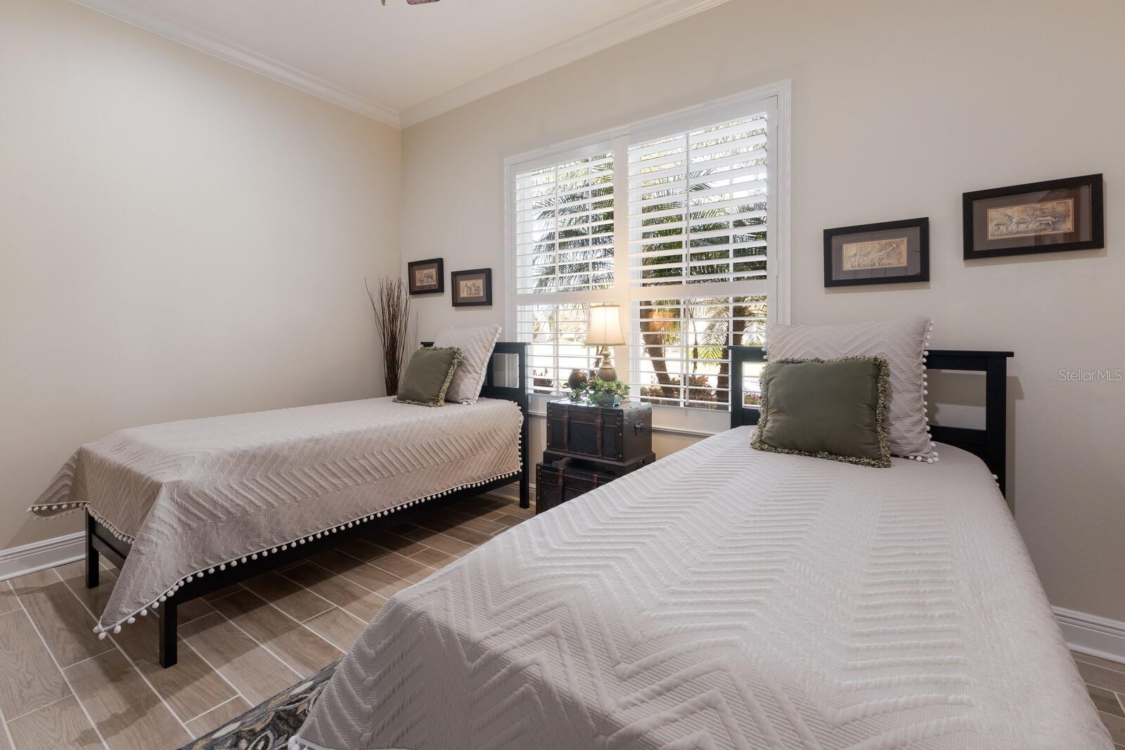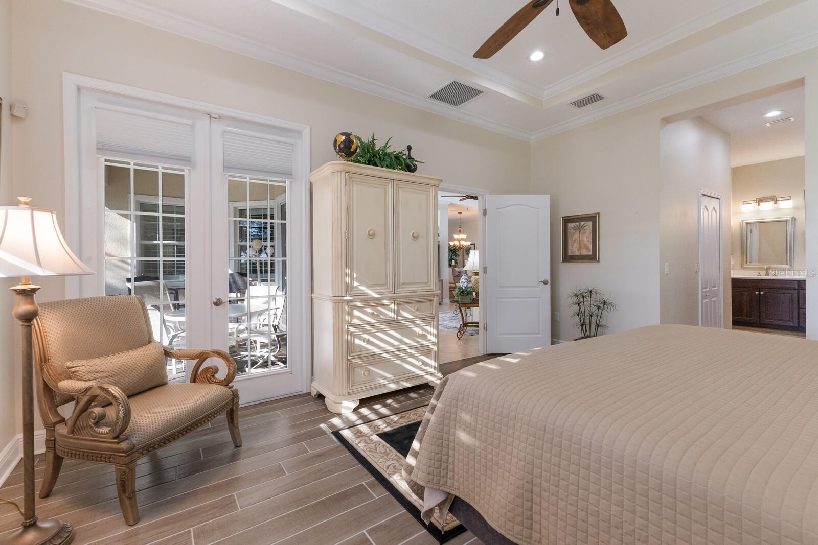 Discover the charm of Country Club East at 14508 Stirling Drive, a hidden gem nestled within the prestigious Lakewood Ranch community. This stunning residence, framed by the serene beauty of the fifth green on the renowned Royal Lakes course, invites you into a world of luxury and comfort. As you step through the elegant leaded glass front door, you’re greeted by a stylish foyer adorned with exquisite tile insets and decorative columns that set the tone for this meticulously designed home. The spacious open-concept family room boasts soaring tray ceilings, crown molding, and custom niches, creating an inviting atmosphere perfect for both relaxation and entertaining. The heart of the home is the bright and airy kitchen, featuring rich wood cabinetry, glass-front upper cabinets, and sleek granite countertops complemented by a tasteful tiled backsplash. Stainless-steel appliances ensure that cooking is both a pleasure and a breeze. Imagine hosting gatherings in the outdoor entertaining area, complete with a heated pool and spa, where lazy afternoons and sunset views become your everyday reality. This versatile three-bedroom, two-bathroom home also includes a den that can easily adapt to your lifestyle—whether it’s a productive home office or a peaceful reading nook. With 20-inch porcelain tiles flowing through the main living spaces and stylish wood-look tiles in the bedrooms, elegance is evident at every turn. An oversized two-car garage provides ample storage. The Belleisle community enhances your lifestyle with its own pool, spa, grill area, and clubhouse. For even more leisure, enjoy access to The Retreat—complete with a resort-style pool, fitness center, game room, and park. With optional membership to the Lakewood Ranch Country Club, you can indulge in the exclusive offerings of The Lodge for dining and social events. Don’t miss your chance to experience this exceptional home—schedule your private showing today and embrace the lifestyle you've always dreamed of!