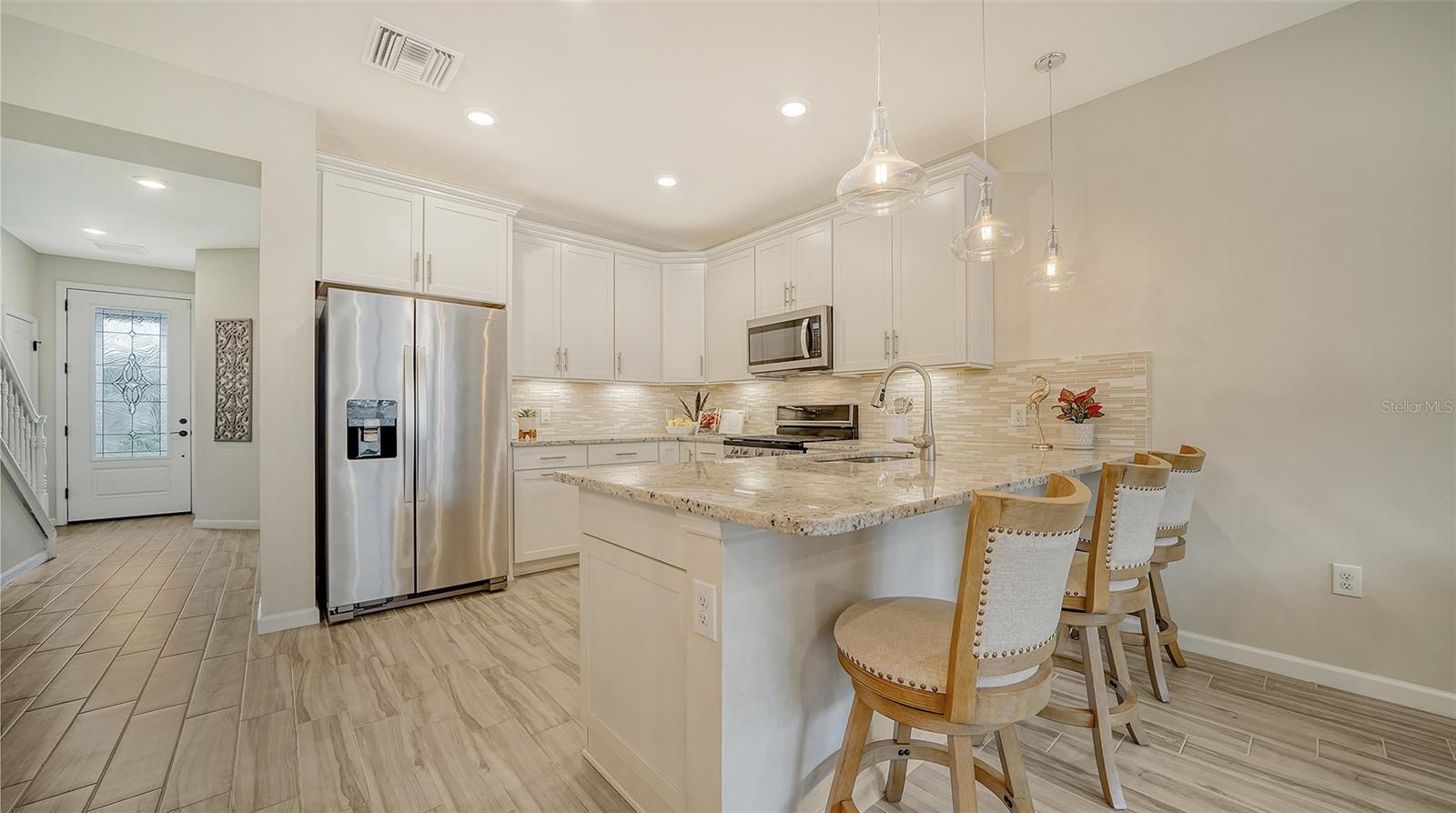 Situated in the highly desirable Mallory Park neighborhood, this outstanding townhome showcases the coveted Trailwood floor plan, offering dual primary suites, a guest bedroom, and three full bathrooms. Each primary suite boasts expansive en suite bathrooms with dual sink vanities and large walk-in closets. The third bedroom, conveniently located on the first floor, provides versatile space that can serve as a bedroom, office, or den. The kitchen, open to the living and dining areas, features a spacious breakfast bar, stainless steel appliances, a gas range, and a generous walk-in pantry. Outdoors, a private courtyard offers a peaceful retreat for relaxation, gardening, or al fresco dining, with a covered walkway leading to a private two-car garage. Additional highlights include porcelain plank flooring in the main living areas and guest bedroom, plantation shutters, ceiling fans, granite countertops, designer light fixtures, lush landscaping, and guest parking. Just steps from the community’s amenities center, residents can enjoy a resort pool, fitness center, pickleball and basketball courts, playground, barbecues, and more. Mallory Park offers a maintenance-free lifestyle with gated security and is zoned for top-rated schools. Lakewood Ranch, the nation’s best-selling multi-generational community, is conveniently located minutes from premier dining, shopping, beaches, and medical facilities.