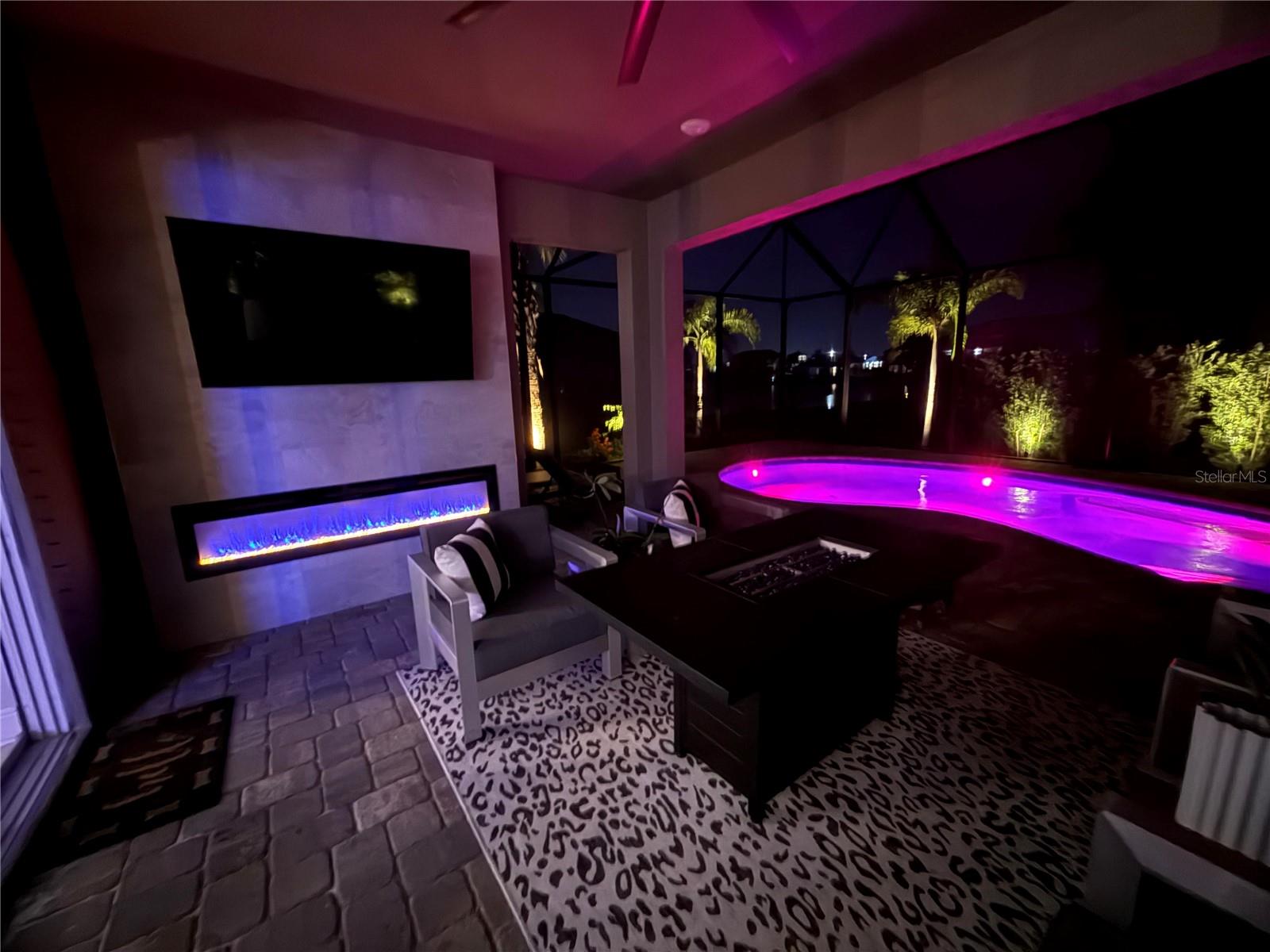 Welcome to this home with an exceptional blend of sophistication, comfort, and serene Florida living, nestled within the gated enclave of Sweetwater at Lakewood Ranch. This elegantly appointed single-story -bedroom, 2-bath salt water pool residence is defined by its thoughtfully curated upgrades and tranquil pond views. Step through a custom waterdrop-design glass front door into a sunlit interior adorned with luxury vinyl plank flooring, 8-foot doors, and a tray ceiling package that lends architectural grace. The open-concept great room flows seamlessly to the outdoors, where a screened, covered lanai awaits—featuring a cozy fireplace, built-in TV wall, and a sparkling saltwater pool with six integrated hot tub jets, all overlooking a peaceful pond. The gourmet kitchen is a striking centerpiece, boasting quartz countertops, LED under-cabinet lighting, Uttermost designer pendants, an upgraded GE Profile gas range, and a sleek upgraded faucet and a walk-in pantry. Notice the 3" plantation shutters, custom chandeliers, and 72” fans with lights in every room and on the lanai which add layers of ambiance and style. Retreat to the primary suite, where a custom John Louis closet system enhances organization with refined craftsmanship. Both bathrooms offer comfort-height toilets and framed designer mirrors, echoing the home’s elevated aesthetic. The laundry room is equally impressive, outfitted with 42" upper cabinetry accented in gold, a statement gold chandelier, a large stainless steel sink, and a waterfall-edge granite surface that elegantly spans the Samsung front-load washer and dryer. Marble windowsills and a floor outlet in the great room complete the home’s subtle, smart luxuries. Residents of Sweetwater enjoy access to resort-style amenities, including pickleball, a state-of-the-art fitness center, sports courts, a playground, and a calendar of engaging social events. YARD CAN BE FENCED.
