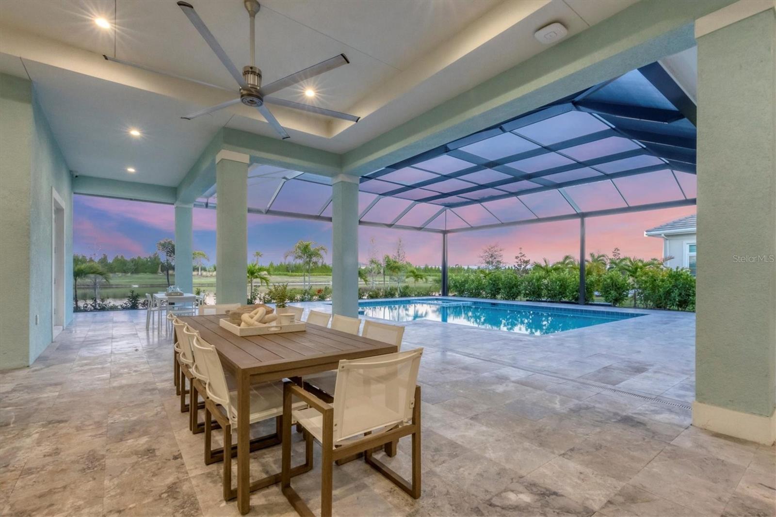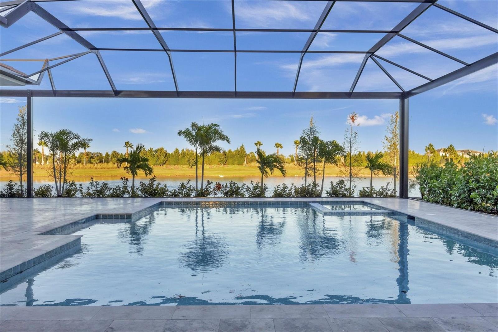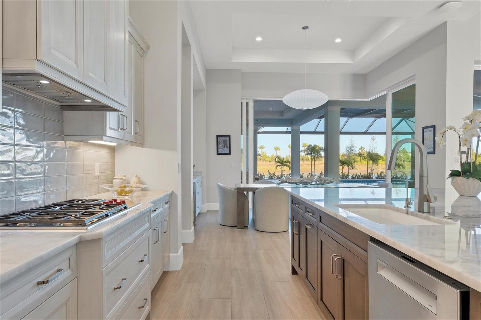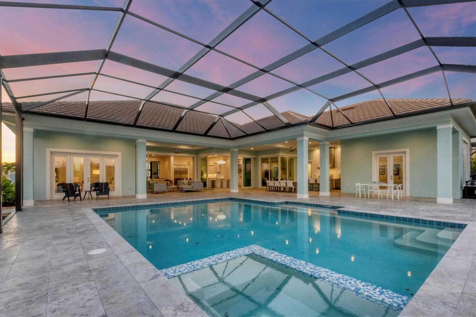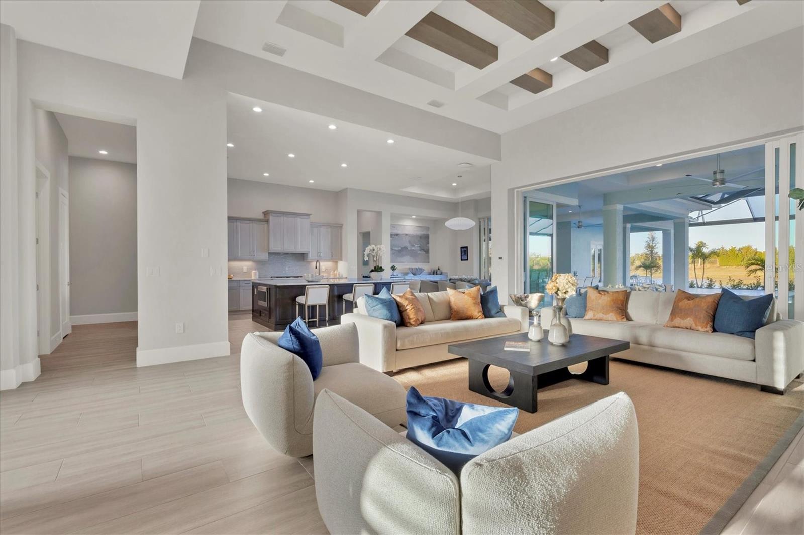 Indulge in the ultimate blend of luxury and contemporary comfort in this impeccably designed estate, nestled within the prestigious Lake Club of Lakewood Ranch. Spanning an impressive 4,193 square feet, this exceptional residence showcases extraordinary craftsmanship and the finest high-end finishes also offers an optional furniture package available for additional purchase making moving in effortless—simply bring your personal belongings and come home. With four generously sized bedrooms, three sumptuous guest suites—including a private entrance casita—five and a half luxurious baths, a versatile bonus room, and an elegant den, this home perfectly encapsulates the elite Florida lifestyle. Upon entering through the 10-foot iron door with impact glass, you are welcomed into a breathtaking foyer adorned with a soaring 14-foot ceiling and intricate detailing that sets the tone for the entire home. Inside, the property boasts beautiful Bella Legno porcelain plank flooring, soaring 12-foot ceilings throughout, and elevated 14-foot ceilings in select areas, lending an air of grandeur. The gourmet kitchen is a chef's dream, outfitted with top-tier Sub-Zero and Wolf appliances, a stunning quartzite island, a farmhouse sink, and dual pantries for ample storage. The adjacent dining area is equipped with a wine refrigerator and custom-built cabinetry, adding both functionality and sophistication. The expansive great room, highlighted by an exquisite feature ceiling, offers an ideal space for both relaxation and entertaining guests. The luxurious primary bedroom is a serene retreat, leading to a spa-inspired bath complete with a walk-in shower, designer tiles, custom closets, and a rejuvenating spa tub. The spacious bonus room, complete with a walk-in closet, provides the perfect venue for additional entertainment or a private haven. The three elegant guest suites, each with its own en-suite bath, promise ultimate comfort and privacy, while the casita, featuring its own entrance, wet bar, and bespoke finishes, offers an intimate escape. Step outside to the extraordinary outdoor living area, where you’ll find a vast lanai featuring travertine tile, a gas hookup for a fireplace, and panoramic screening to enhance your outdoor enjoyment. A brand-new stainless-steel pool cage, installed in 2024, surrounds the expansive saltwater pool and spa. The state-of-the-art outdoor kitchen includes a Wolf gas grill, refrigerator, dishwasher, ice maker, and a reverse osmosis water filtration system. Designed with cutting-edge technology for ultimate convenience, this home features hurricane-impact windows, an advanced security system with eight cameras, Wi-Fi extenders, in-ceiling speakers, and smart home capabilities, including IC View cameras, Lutron lighting, and Sonos sound systems. The expanded garage boasts epoxy resin flooring, air-conditioning units, custom cabinetry, and an electric vehicle charging station. Located within the exclusive Lake Club community, residents enjoy access to world-class amenities, including a luxurious clubhouse, a state-of-the-art fitness center, a rejuvenating spa, tennis courts, and a resort-style pool. Offering the perfect balance of privacy, luxury, and convenience, this home is ideally situated near top-rated schools and the stunning Gulf Coast beaches, making it a truly exceptional offering in Lakewood Ranch.