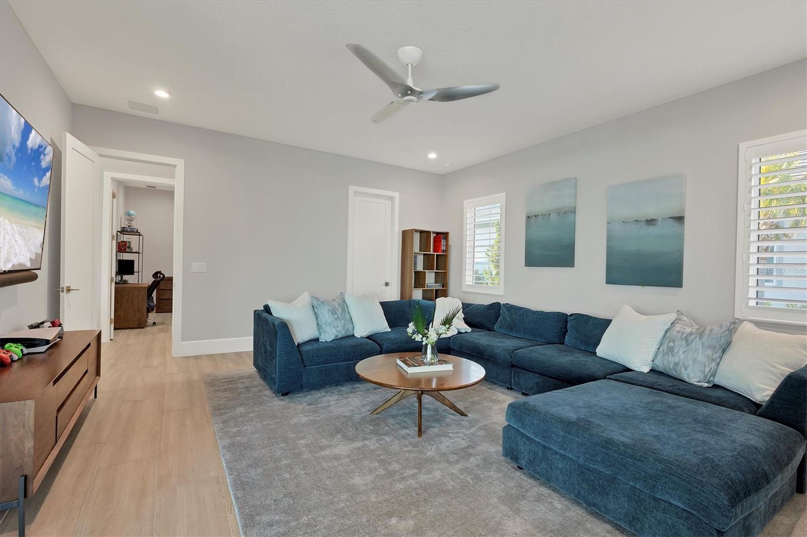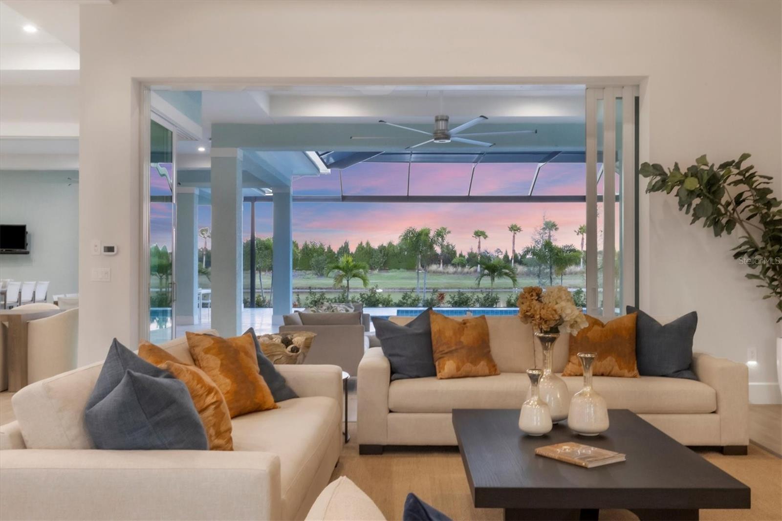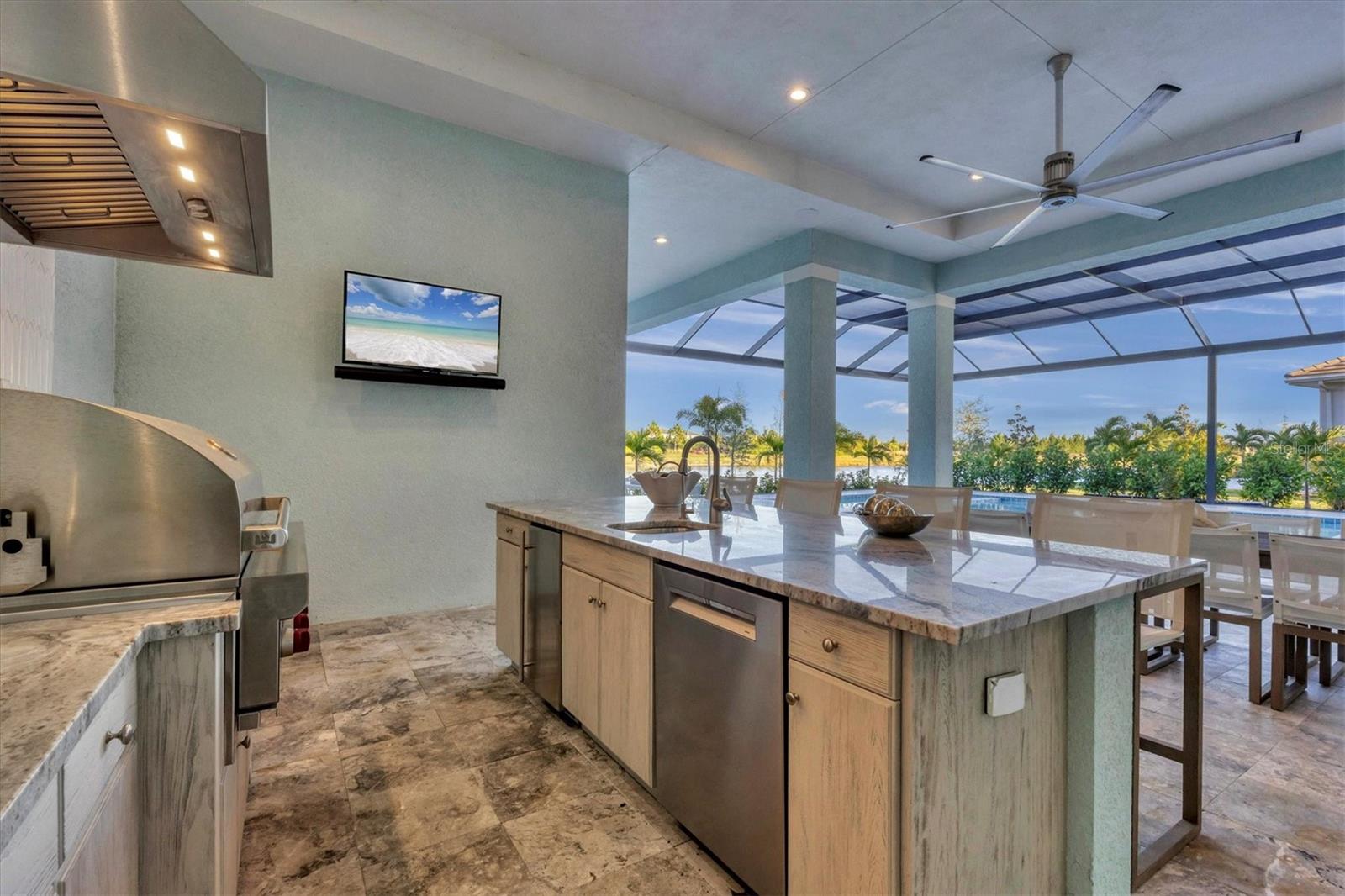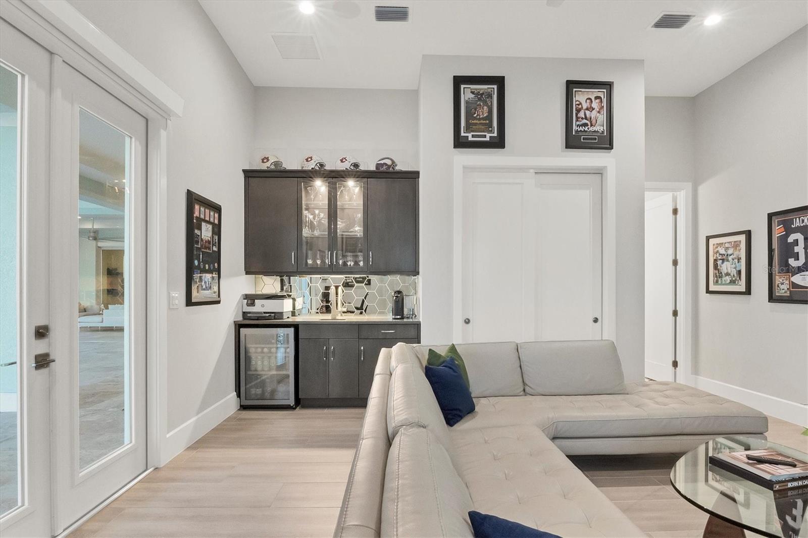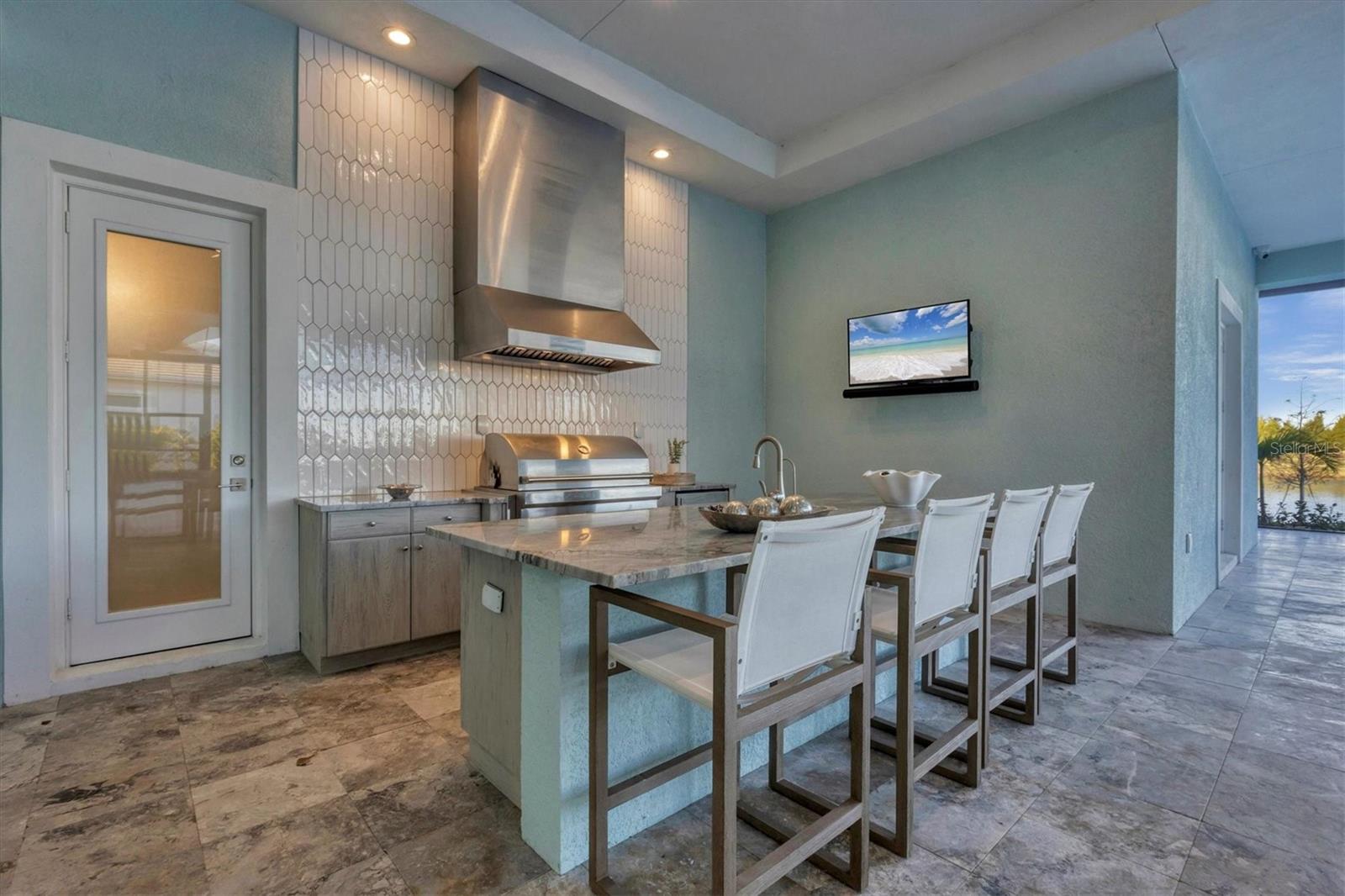Indulge in the ultimate blend of luxury and contemporary comfort in this impeccably designed estate, nestled within the prestigious Lake Club of Lakewood Ranch. Spanning an impressive 4,193 square feet, this exceptional residence showcases extraordinary craftsmanship and the finest high-end finishes also offers an optional furniture package available for additional purchase making moving in effortless—simply bring your personal belongings and come home. With four generously sized bedrooms, three sumptuous guest suites—including a private entrance casita—five and a half luxurious baths, a versatile bonus room, and an elegant den, this home perfectly encapsulates the elite Florida lifestyle. Upon entering through the 10-foot iron door with impact glass, you are welcomed into a breathtaking foyer adorned with a soaring 14-foot ceiling and intricate detailing that sets the tone for the entire home. Inside, the property boasts beautiful Bella Legno porcelain plank flooring, soaring 12-foot ceilings throughout, and elevated 14-foot ceilings in select areas, lending an air of grandeur. The gourmet kitchen is a chef's dream, outfitted with top-tier Sub-Zero and Wolf appliances, a stunning quartzite island, a farmhouse sink, and dual pantries for ample storage. The adjacent dining area is equipped with a wine refrigerator and custom-built cabinetry, adding both functionality and sophistication. The expansive great room, highlighted by an exquisite feature ceiling, offers an ideal space for both relaxation and entertaining guests. The luxurious primary bedroom is a serene retreat, leading to a spa-inspired bath complete with a walk-in shower, designer tiles, custom closets, and a rejuvenating spa tub. The spacious bonus room, complete with a walk-in closet, provides the perfect venue for additional entertainment or a private haven. The three elegant guest suites, each with its own en-suite bath, promise ultimate comfort and privacy, while the casita, featuring its own entrance, wet bar, and bespoke finishes, offers an intimate escape. Step outside to the extraordinary outdoor living area, where you’ll find a vast lanai featuring travertine tile, a gas hookup for a fireplace, and panoramic screening to enhance your outdoor enjoyment. A brand-new stainless-steel pool cage, installed in 2024, surrounds the expansive saltwater pool and spa. The state-of-the-art outdoor kitchen includes a Wolf gas grill, refrigerator, dishwasher, ice maker, and a reverse osmosis water filtration system. Designed with cutting-edge technology for ultimate convenience, this home features hurricane-impact windows, an advanced security system with eight cameras, Wi-Fi extenders, in-ceiling speakers, and smart home capabilities, including IC View cameras, Lutron lighting, and Sonos sound systems. The expanded garage boasts epoxy resin flooring, air-conditioning units, custom cabinetry, and an electric vehicle charging station. Located within the exclusive Lake Club community, residents enjoy access to world-class amenities, including a luxurious clubhouse, a state-of-the-art fitness center, a rejuvenating spa, tennis courts, and a resort-style pool. Offering the perfect balance of privacy, luxury, and convenience, this home is ideally situated near top-rated schools and the stunning Gulf Coast beaches, making it a truly exceptional offering in Lakewood Ranch.