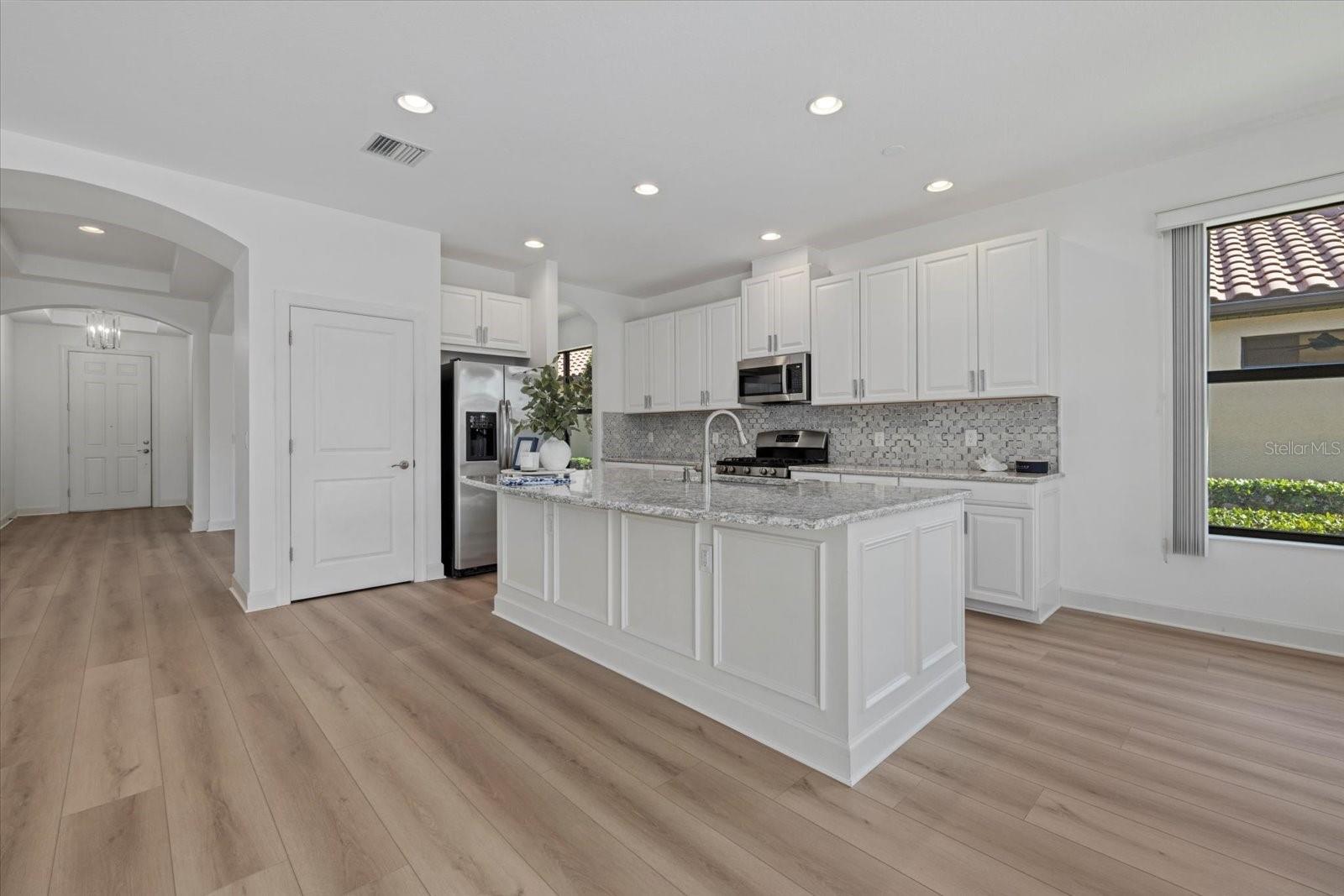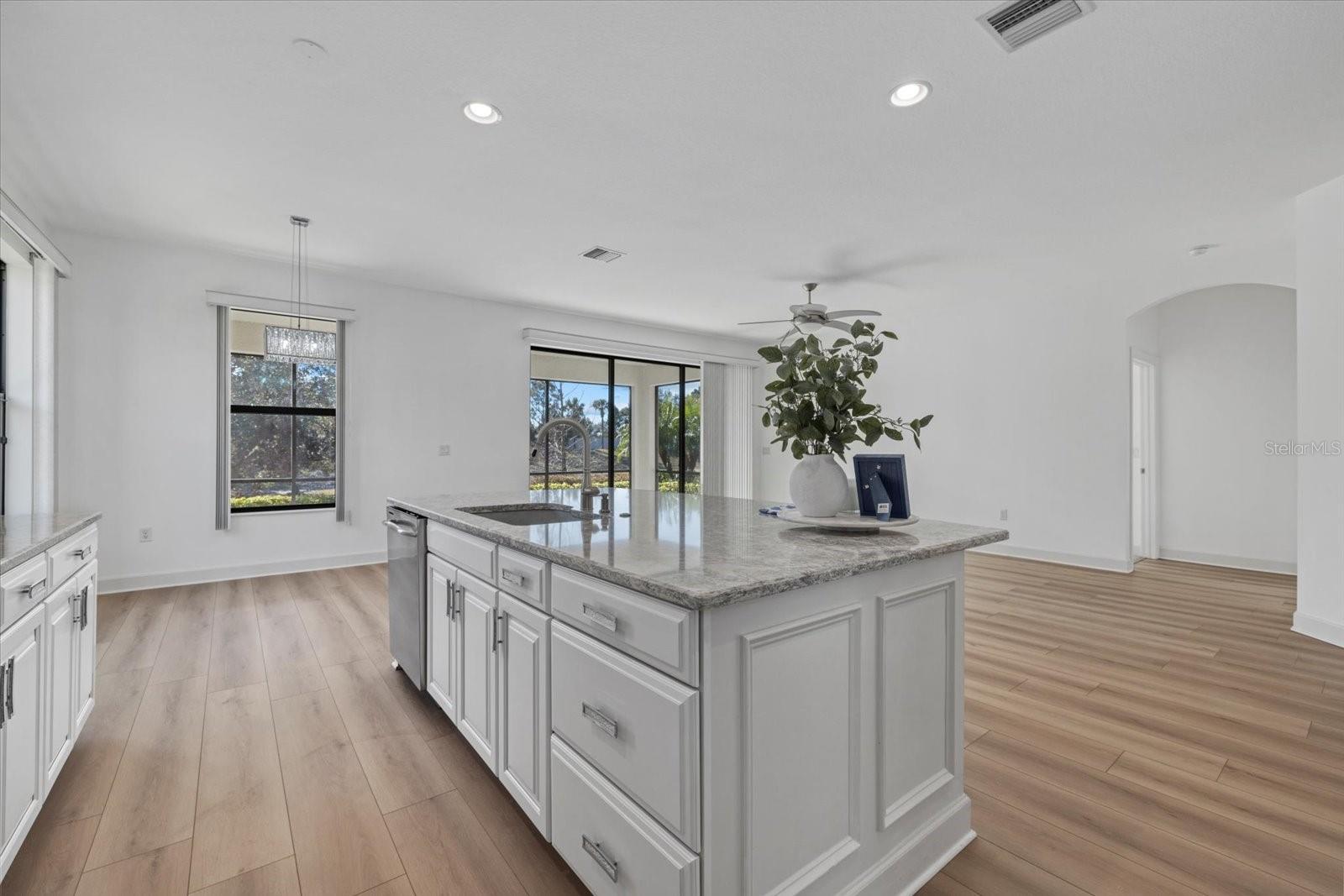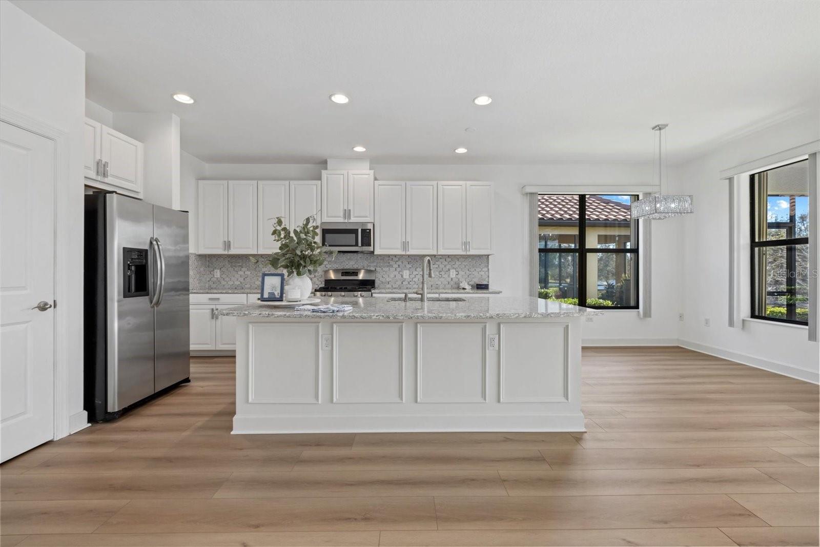 **NEW YEAR, NEW PRICE, NEW CABINET DOORS, NEW FLOORS, NEW PAINT SO ALL IT NEEDS IS A NEW OWNER!!** Welcome to luxury living in the highly sought-after Esplanade Golf and Country Club at Lakewood Ranch! Nestled on a premium western-facing private lot, this exquisite 3-bedroom home and 2.5 bathrooms offers the epitome of comfort and elegance. As you step inside, you'll be greeted by an open-concept layout, seamlessly blending the living room, breakfast nook, and stunning bright kitchen. Adorned with gorgeous floors, stone countertops, and custom backsplash, this home exudes sophistication at every turn. Tall ceilings enhance the spaciousness, while the split bedroom setup ensures privacy and convenience. Entertain guests in the dedicated dining room or relax in the large covered lanai, boasting sunset views, mature landscaping, and tranquil water vistas. The large 2-car garage features epoxy floors for added durability, while stainless steel appliances elevate both style and functionality. The primary bedroom offers a luxurious retreat with its 5-piece en suite, providing the ultimate in relaxation and comfort. Meanwhile, Esplanade Golf and Country Club presents a wealth of amenities, including a golf course, two clubhouses with resort-style pools, a culinary center, and a tiki bar and grill. Enjoy lap lanes, spa services, fitness classes, and a variety of recreational activities such as tennis, pickleball, and bocce ball. With its own resident chef, weekly specials, and dedicated activity director, Esplanade ensures a vibrant and engaging community experience. Plus, its prime location offers close proximity to Lakewood Ranch Main Street, Waterside, University Town Center, and Downtown Sarasota. And when it's time to explore beyond the neighborhood, quick drives to the world famous sugar sand beaches of the Gulf Coast, as well as Tampa, Saint Petersburg, and Orlando, await. Don't miss out on this unparalleled opportunity to live the luxury lifestyle you deserve!