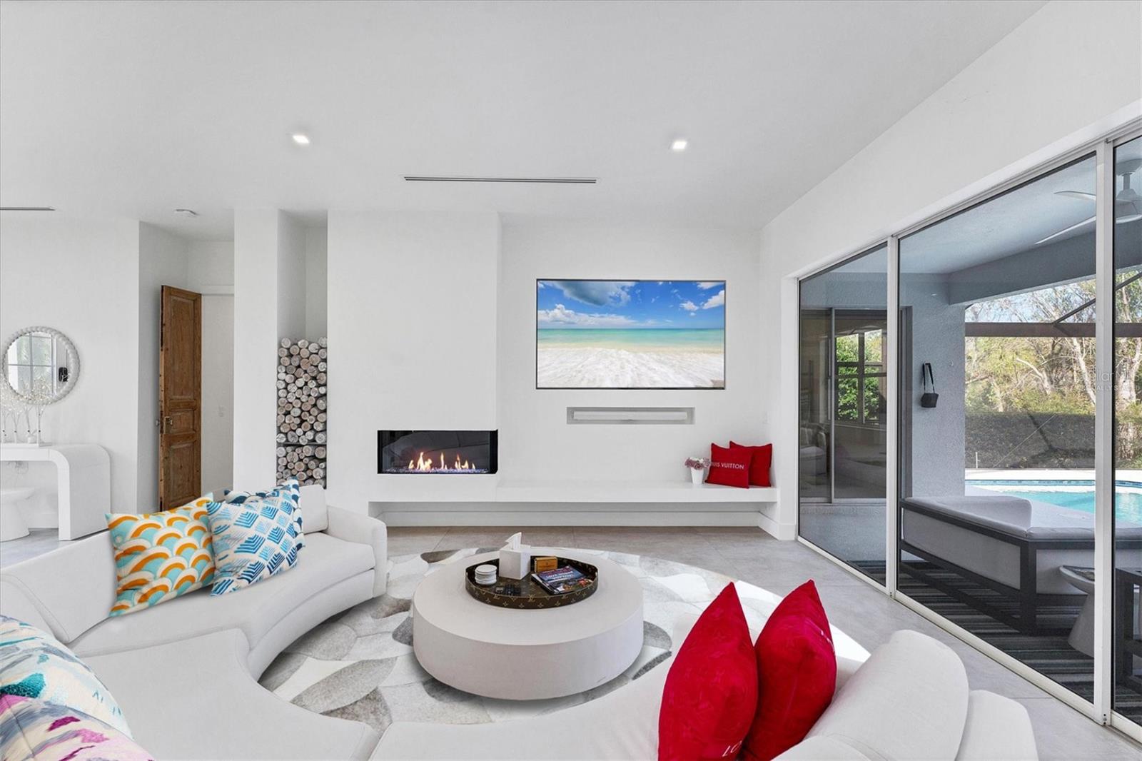 One or more photo(s) has been virtually staged. Welcome to 6669 Windjammer Place! Originally built by Lee Wetherington and completely renovated in 2022. Thoughtfully curated with high-end finishes and impeccable craftsmanship, the home seamlessly blends luxury with effortless living. Step through the grand double doors and take in breathtaking views of the natural preserve, framed by expansive panoramic pool screens. This private, serene setting is surrounded by lush greenery and tranquil wildlife, creating a true retreat. At the heart of the home is a stunning gourmet kitchen featuring a 15-foot waterfall-edge quartz island, top-of-the-line Thermador appliances, a fully integrated refrigerator and dishwasher, a gas range, and a plumbed Miele espresso machine. The great room offers a modern feature wall with a contemporary fireplace and an elegant wine room, striking the perfect balance of style and function. Pocketing sliding doors blur the lines between indoor and outdoor living, leading to a covered lanai and a magnificent saltwater pool with a cascading waterfall, glass-gunite finish, and smart LED lighting. A fully equipped summer kitchen, complete with a built-in gas grill, stone countertops, refrigeration, and a double beer tap, makes entertaining effortless. Behind 200-year-old French doors, the private primary suite features a spacious sitting area, custom closets, and a spa-like ensuite with marble finishes, a soaking tub, a Toto bidet toilet, and Axor rainfall shower with body sprays. The south wing hosts two elegantly appointed guest bedrooms with automatic shades and bespoke lighting, along with a beautifully designed bathroom. A flexible additional room can serve as a fourth bedroom, home office, or creative studio. Additional highlights include a three-car garage with a Level 2 EV charging station and a whole-house water filtration system. If you're looking for home that is move-in ready with all the bells and whistles, your search is over! Schedule your private tour today!