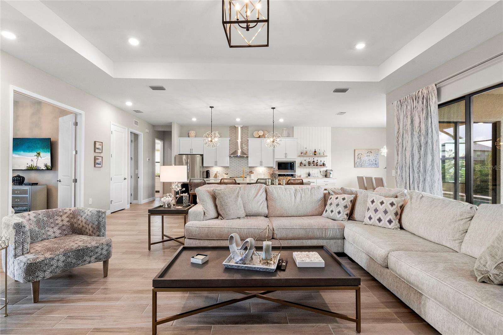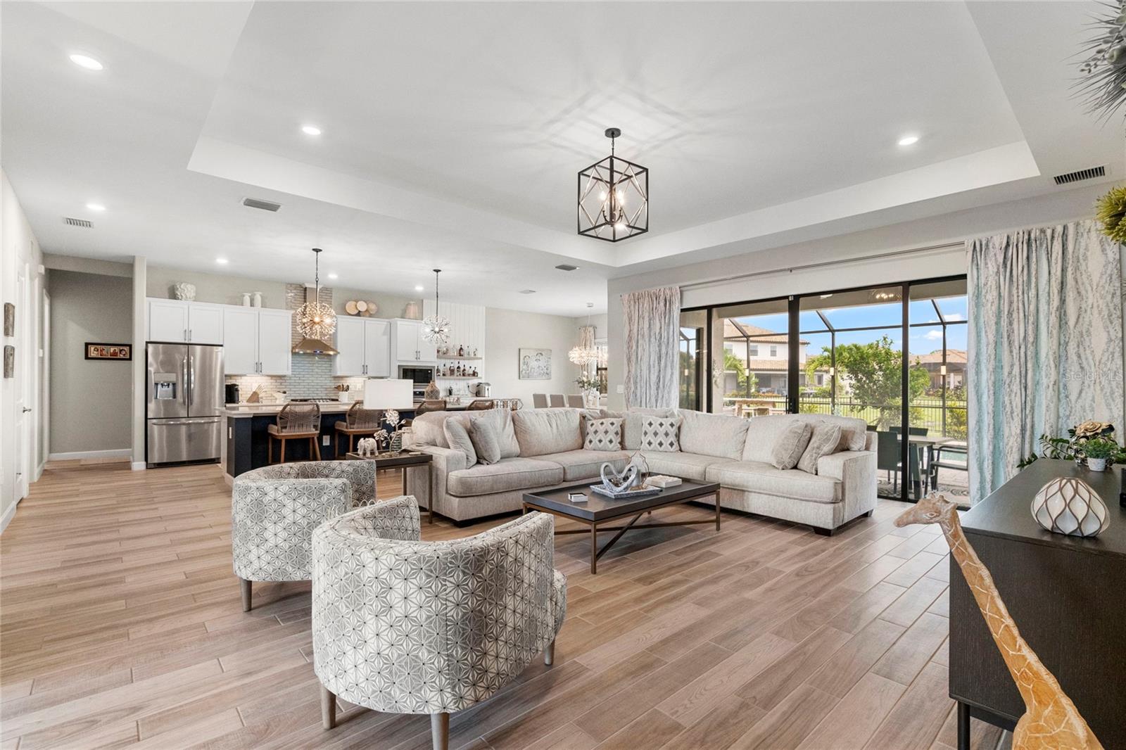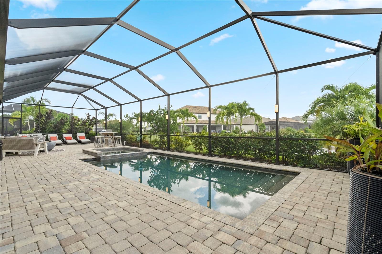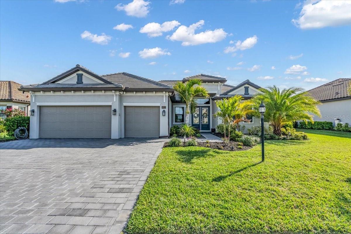 Awesome upgrades and lot on this one! 4813 Sparkling Sea Lane features one of the BEST lot premium water views in the highly sought after Lorraine Lakes Community!!! This popular SUNSET model boasts many awesome custom upgrades. As you enter you are greeted by the impressive 12ft tall foyer with double glass front doors. Making your way into the heart of the home, you will find the great room features an insulated designer shiplap accent wall and added recessed lighting. The impressive kitchen has been improved with high end designer brushed gold hardware and faucet, custom range hood, tile backsplash and added bank of cabinets with floating shelves. The dedicated den/office in this home is being used as a 4th bedroom for guest, a closet can be easily added to make in an official 4th bedroom if desired. The primary suite features a tray ceiling with additional recessed lights and custom cabinets in one of the primary closets, while the other has been cleverly reserved to be used as a home office/flex space. The primary bathroom is fantastic with its designer upgrades that include matte black hardware and faucets, wood planked wall, and upgraded lighting. Florida living is all about the outdoor space and having a peaceful scenic backyard with Eastern exposure is probably one of the most important factors you must consider. This home has exactly what you want. Upgraded saltwater pool and spa overlooking a sparkling water view. The spacious lanai offers plenty of room to entertain or just relax and enjoy your peaceful surrounding. Added electrical for a future outdoor kitchen is already in place. Additional highlights include a new Samsung washer and dryer, planked walls in laundry room for both aesthetics and sound proofing, 240V line in garage for your Electric vehicles, 3 large hanging garage shelving units, and professional landscaping with landscape lighting. Lorraine Lakes was designed to provide its residents with a true resort and vacation experience. The low HOA includes your 24-hour gated and manned security, internet, cable, and lawn and irrigation maintenance so you can enjoy life and the extensive amenities this community provides. You will be amazed by the 25,000 square foot clubhouse with a coffee lounge, restaurant and bar, aerobic center, basketball court, arcade, and fitness center with a child’s play area. Outside you will find two pools, a splash pad, a pool side bar, tennis and pickleball courts, a putting green, volleyball, bocce ball, and a playground. Don’t miss the opportunity to own this home located in the heart of Lakewood Ranch conveniently located to shopping, restaurants, A-rated schools, championship golf courses, and a short drive to the famous beaches of the Gulf coast