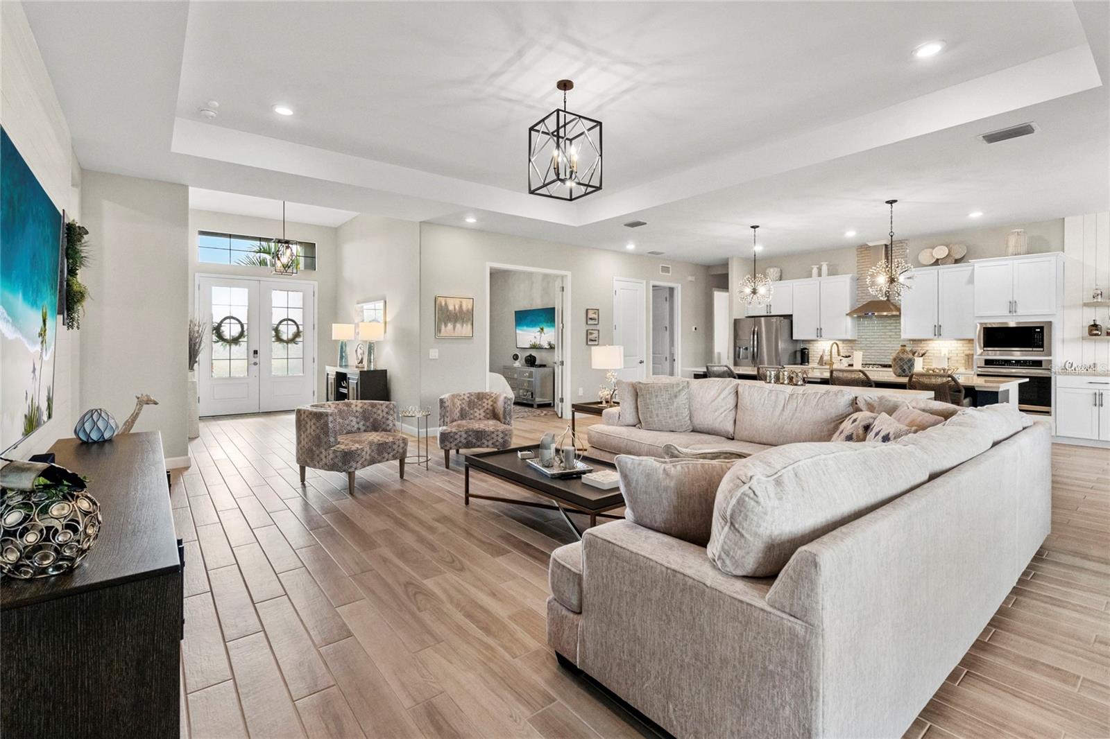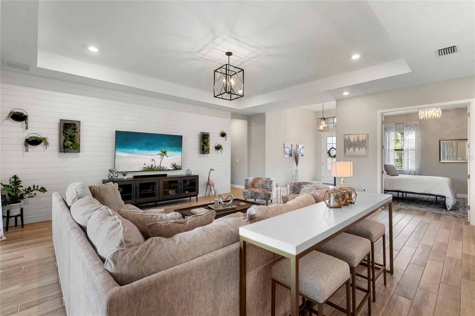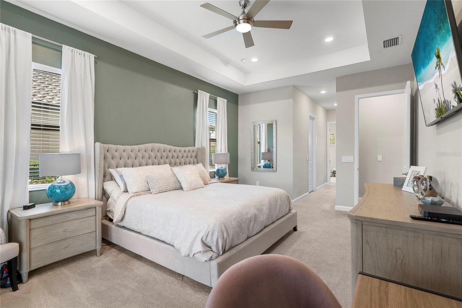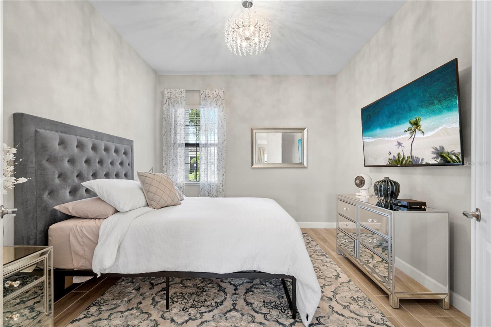 Awesome upgrades and lot on this one! 4813 Sparkling Sea Lane features one of the BEST lot premium water views in the highly sought after Lorraine Lakes Community!!! This popular SUNSET model boasts many awesome custom upgrades. As you enter you are greeted by the impressive 12ft tall foyer with double glass front doors. Making your way into the heart of the home, you will find the great room features an insulated designer shiplap accent wall and added recessed lighting. The impressive kitchen has been improved with high end designer brushed gold hardware and faucet, custom range hood, tile backsplash and added bank of cabinets with floating shelves. The dedicated den/office in this home is being used as a 4th bedroom for guest, a closet can be easily added to make in an official 4th bedroom if desired. The primary suite features a tray ceiling with additional recessed lights and custom cabinets in one of the primary closets, while the other has been cleverly reserved to be used as a home office/flex space. The primary bathroom is fantastic with its designer upgrades that include matte black hardware and faucets, wood planked wall, and upgraded lighting. Florida living is all about the outdoor space and having a peaceful scenic backyard with Eastern exposure is probably one of the most important factors you must consider. This home has exactly what you want. Upgraded saltwater pool and spa overlooking a sparkling water view. The spacious lanai offers plenty of room to entertain or just relax and enjoy your peaceful surrounding. Added electrical for a future outdoor kitchen is already in place. Additional highlights include a new Samsung washer and dryer, planked walls in laundry room for both aesthetics and sound proofing, 240V line in garage for your Electric vehicles, 3 large hanging garage shelving units, and professional landscaping with landscape lighting. Lorraine Lakes was designed to provide its residents with a true resort and vacation experience. The low HOA includes your 24-hour gated and manned security, internet, cable, and lawn and irrigation maintenance so you can enjoy life and the extensive amenities this community provides. You will be amazed by the 25,000 square foot clubhouse with a coffee lounge, restaurant and bar, aerobic center, basketball court, arcade, and fitness center with a child’s play area. Outside you will find two pools, a splash pad, a pool side bar, tennis and pickleball courts, a putting green, volleyball, bocce ball, and a playground. Don’t miss the opportunity to own this home located in the heart of Lakewood Ranch conveniently located to shopping, restaurants, A-rated schools, championship golf courses, and a short drive to the famous beaches of the Gulf coast