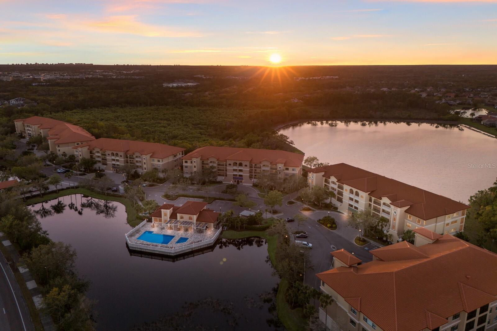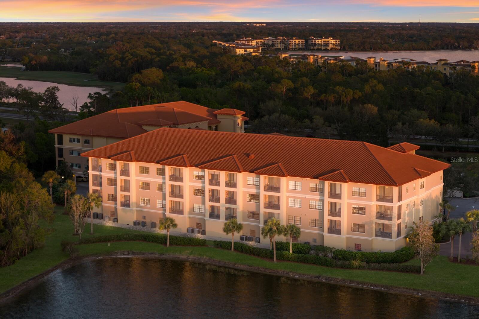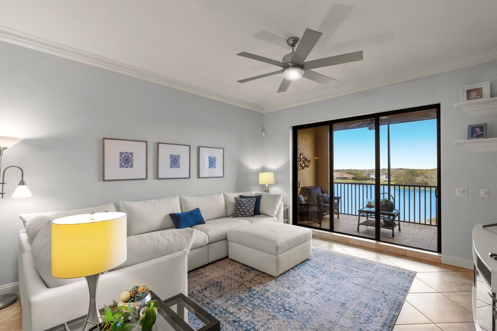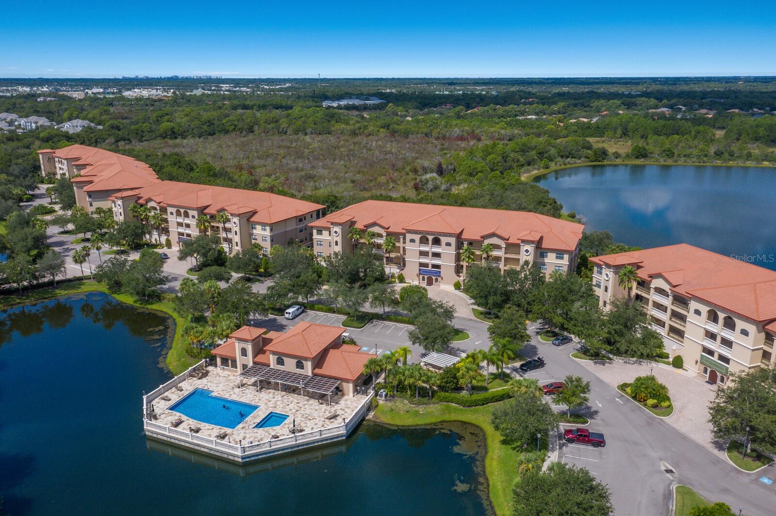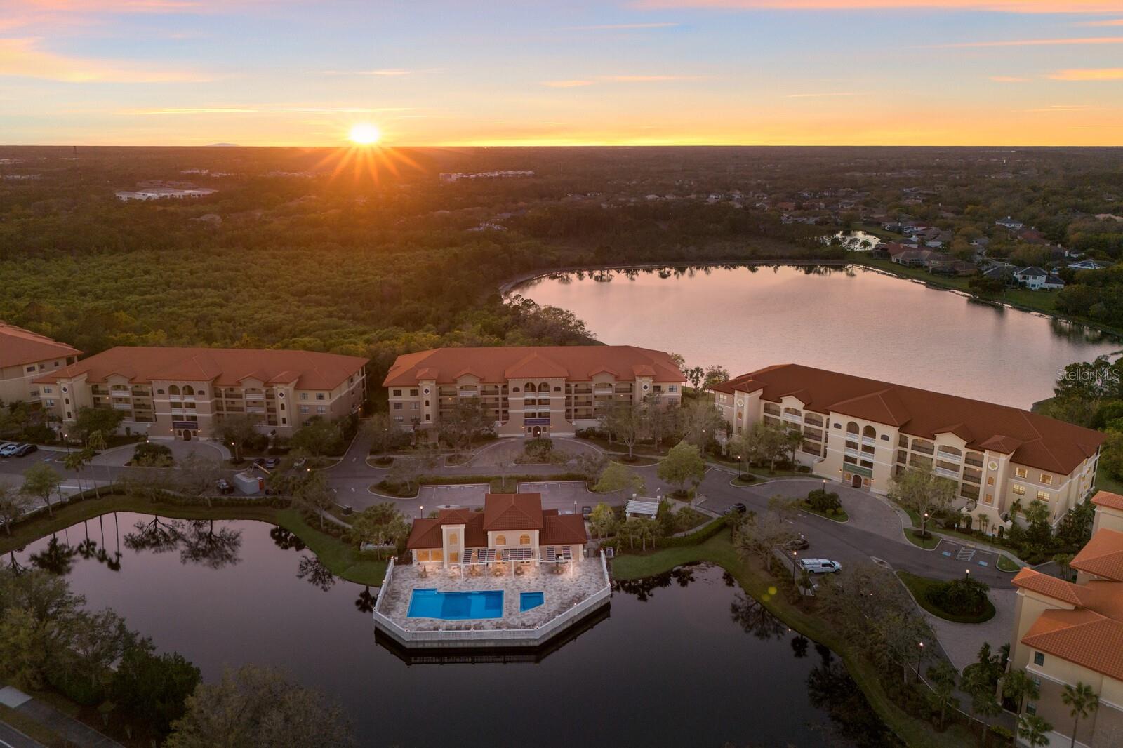 Discover luxury living in this top-floor condo with breathtaking lake and private preserve views, located in the gated community of Lake Vista Residences in the heart of Lakewood Ranch. This beautifully maintained and thoughtfully updated home is move-in ready, offering an inviting blend of elegance and comfort. Nestled in a picturesque, park-like setting with stately entrances and circle drives, the community exudes charm and sophistication. Inside, the bright and open floor plan is enhanced by 10-foot ceilings, tile flooring, enhanced baseboards, crown molding, and tray ceilings. The spacious kitchen is a chef’s dream, featuring granite countertops, stainless steel appliances, a center island, a breakfast bar, and a walk-in pantry. Just off the kitchen, the dining and great room areas seamlessly extend to a lovely screened balcony with impact sliders, where you can enjoy peaceful views of Florida wildlife and stunning sunsets over the shimmering lake. The primary suite is a serene retreat, boasting a wall of windows that allow for incredible views, engineered large-plank wood flooring, tray ceilings with ambient lighting, and a custom walk-in closet. The en-suite bathroom offers a spa-like experience with a soaking tub, dual granite vanities, and a walk-in shower. The split floor plan ensures privacy for guests, with a second bedroom featuring engineered hardwood floors and its own en-suite bath. A spacious den with custom built-ins provides the perfect space for a home office or additional living area. The well-appointed laundry room includes a front-loading washer and dryer, utility sink, folding area, and a storage closet for added convenience. Situated just across from the community’s amenity center, residents can enjoy a variety of social events throughout the year. The clubhouse offers a fitness center, heated pool and spa, catering kitchen, grilling area, and onsite management. Recent community updates include new roofs in 2022, exterior repainting in 2025, and upcoming new exterior doors beginning in March 2025, providing residents with peace of mind. This unit also includes two deeded parking spaces and a private storage unit. Lake Vista Residences offers an unbeatable location, just minutes from Lakewood Ranch Main Street, Waterside Place, and the new CenterPoint development, where you’ll find boutique shopping, upscale dining, and entertainment year-round. Enjoy Sunday farmers markets, polo matches, and nearby parks and trails. With top-rated schools, excellent healthcare, UTC shopping, and award-winning Gulf Coast beaches just a short drive away, this home offers the perfect combination of convenience, luxury, and natural beauty. Don’t miss the opportunity to make this exceptional condo your own!