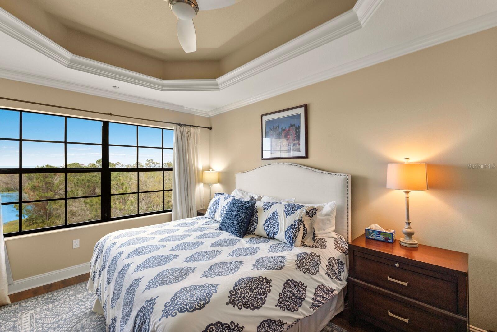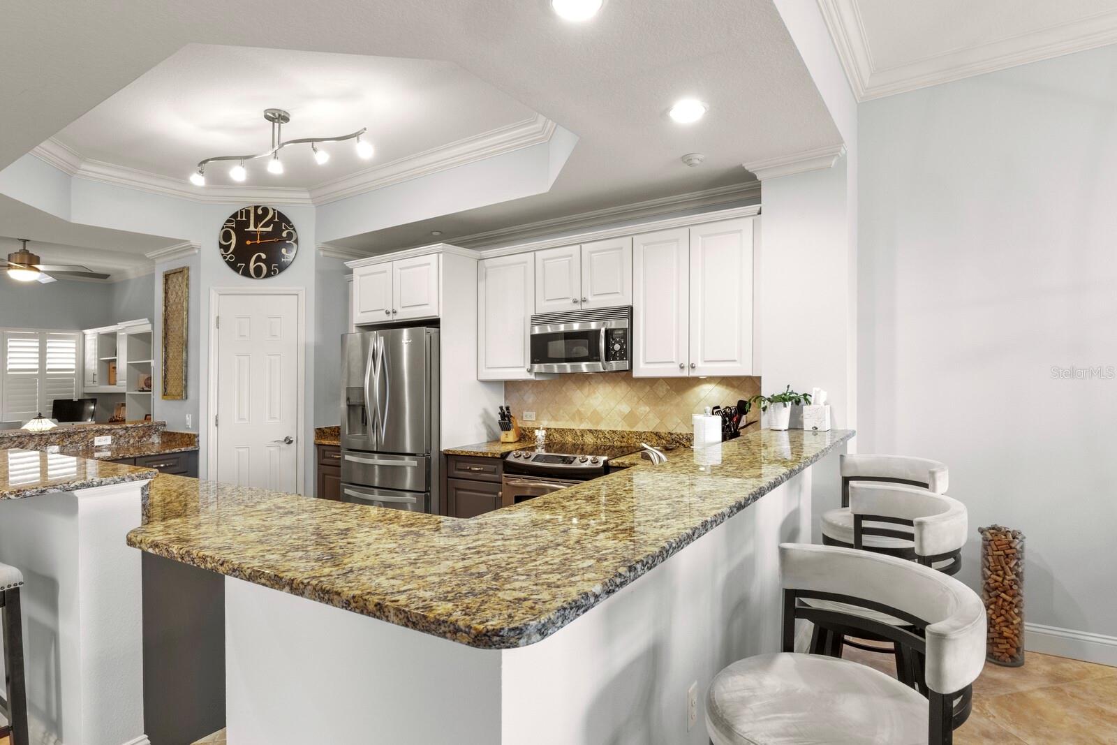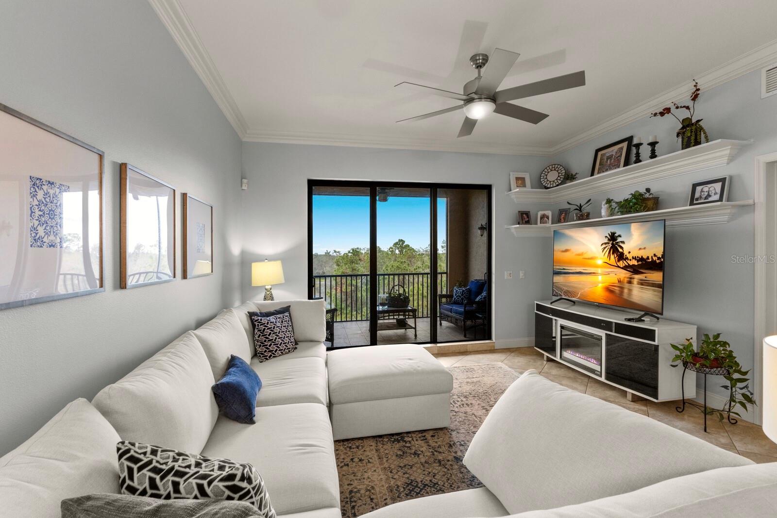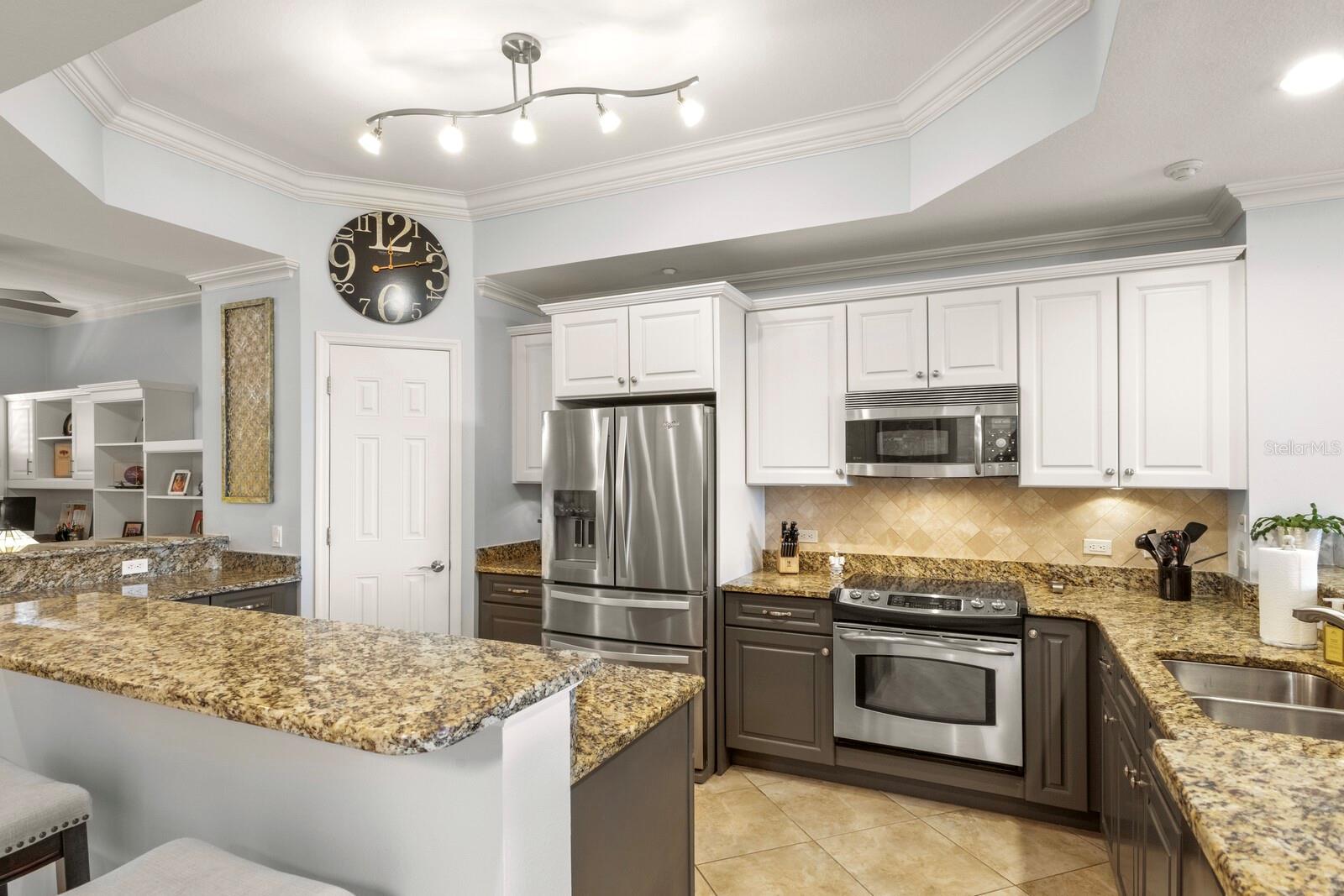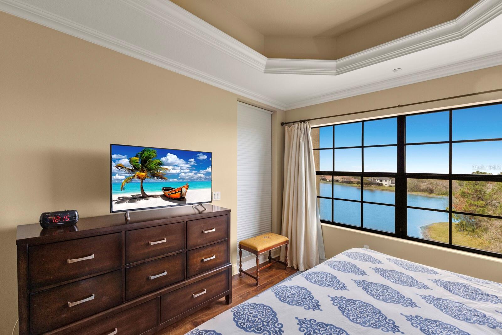 Discover luxury living in this top-floor condo with breathtaking lake and private preserve views, located in the gated community of Lake Vista Residences in the heart of Lakewood Ranch. This beautifully maintained and thoughtfully updated home is move-in ready, offering an inviting blend of elegance and comfort. Nestled in a picturesque, park-like setting with stately entrances and circle drives, the community exudes charm and sophistication. Inside, the bright and open floor plan is enhanced by 10-foot ceilings, tile flooring, enhanced baseboards, crown molding, and tray ceilings. The spacious kitchen is a chef’s dream, featuring granite countertops, stainless steel appliances, a center island, a breakfast bar, and a walk-in pantry. Just off the kitchen, the dining and great room areas seamlessly extend to a lovely screened balcony with impact sliders, where you can enjoy peaceful views of Florida wildlife and stunning sunsets over the shimmering lake. The primary suite is a serene retreat, boasting a wall of windows that allow for incredible views, engineered large-plank wood flooring, tray ceilings with ambient lighting, and a custom walk-in closet. The en-suite bathroom offers a spa-like experience with a soaking tub, dual granite vanities, and a walk-in shower. The split floor plan ensures privacy for guests, with a second bedroom featuring engineered hardwood floors and its own en-suite bath. A spacious den with custom built-ins provides the perfect space for a home office or additional living area. The well-appointed laundry room includes a front-loading washer and dryer, utility sink, folding area, and a storage closet for added convenience. Situated just across from the community’s amenity center, residents can enjoy a variety of social events throughout the year. The clubhouse offers a fitness center, heated pool and spa, catering kitchen, grilling area, and onsite management. Recent community updates include new roofs in 2022, exterior repainting in 2025, and upcoming new exterior doors beginning in March 2025, providing residents with peace of mind. This unit also includes two deeded parking spaces and a private storage unit. Lake Vista Residences offers an unbeatable location, just minutes from Lakewood Ranch Main Street, Waterside Place, and the new CenterPoint development, where you’ll find boutique shopping, upscale dining, and entertainment year-round. Enjoy Sunday farmers markets, polo matches, and nearby parks and trails. With top-rated schools, excellent healthcare, UTC shopping, and award-winning Gulf Coast beaches just a short drive away, this home offers the perfect combination of convenience, luxury, and natural beauty. Don’t miss the opportunity to make this exceptional condo your own!