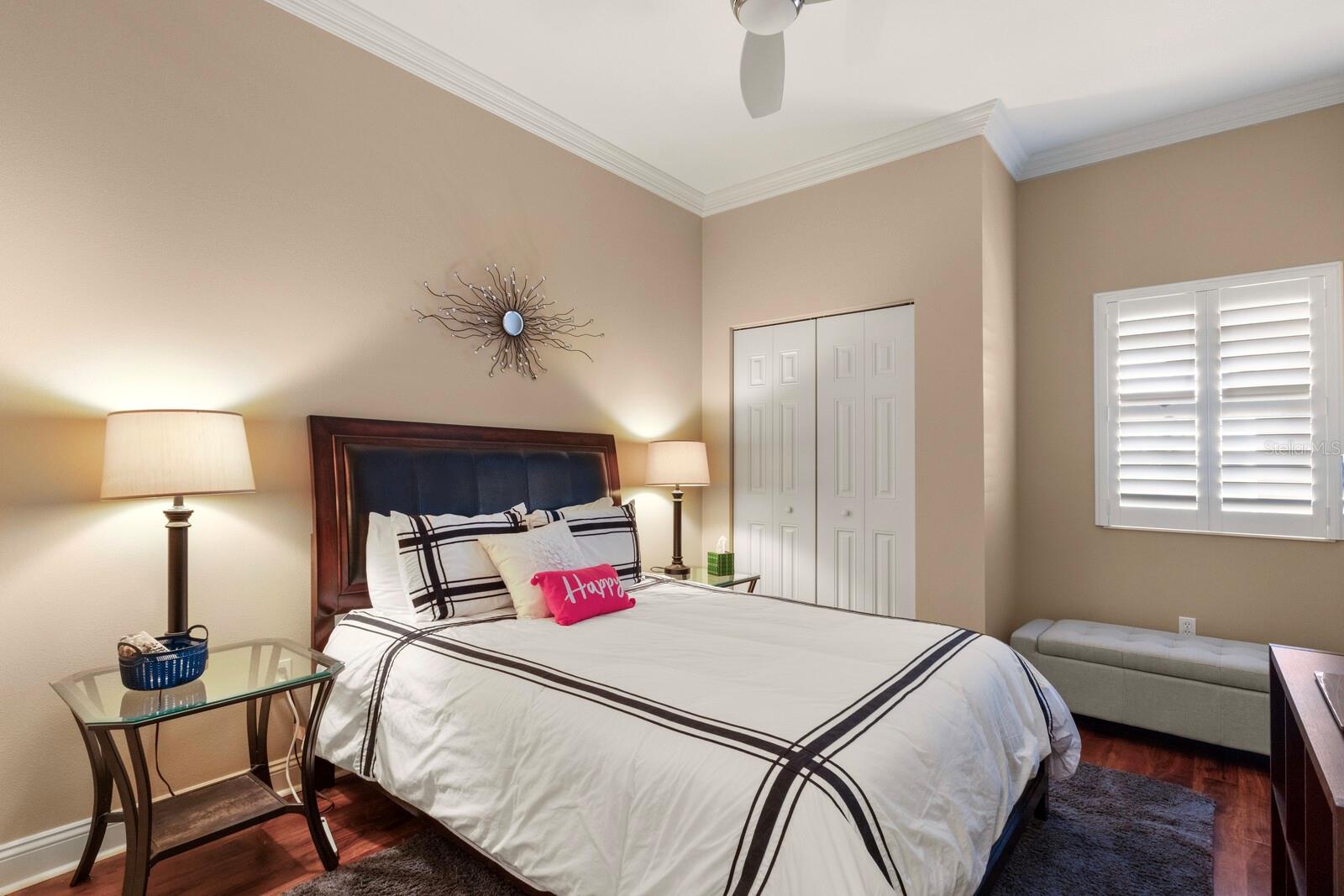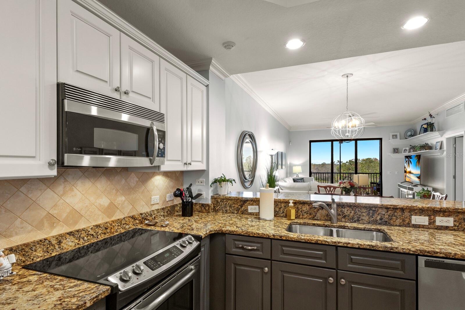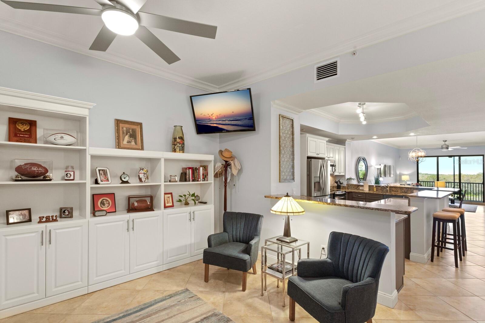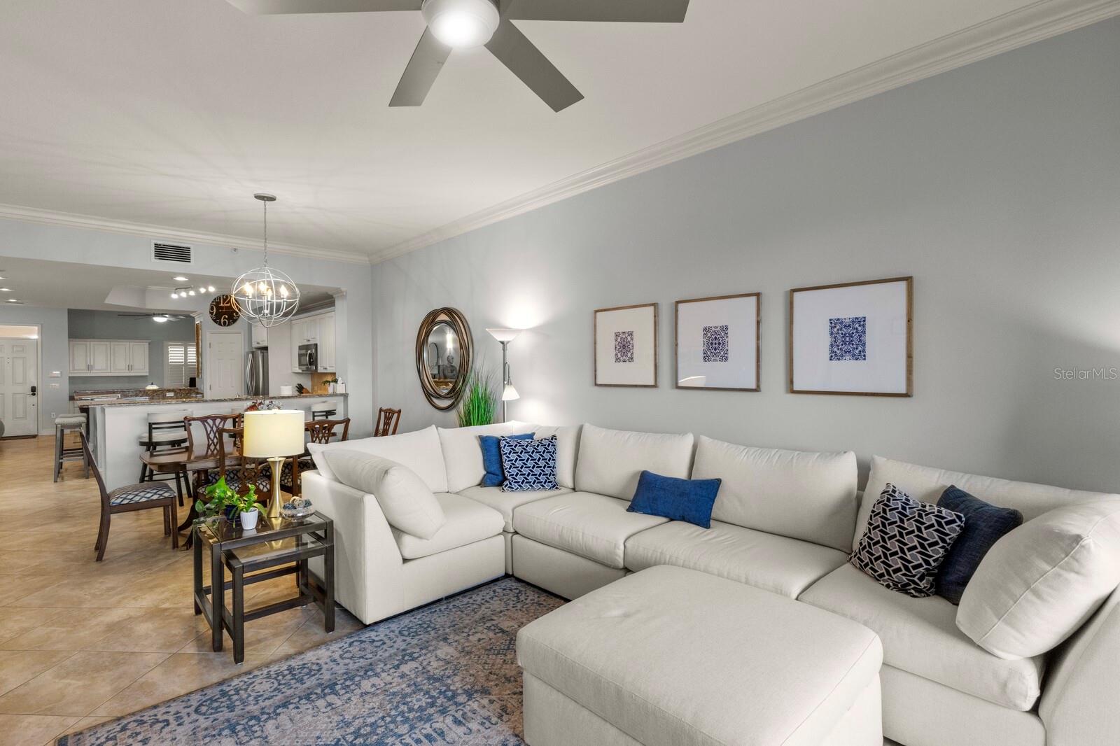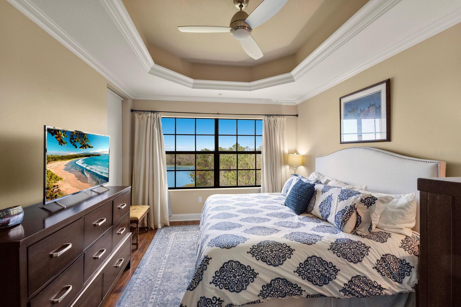 Discover luxury living in this top-floor condo with breathtaking lake and private preserve views, located in the gated community of Lake Vista Residences in the heart of Lakewood Ranch. This beautifully maintained and thoughtfully updated home is move-in ready, offering an inviting blend of elegance and comfort. Nestled in a picturesque, park-like setting with stately entrances and circle drives, the community exudes charm and sophistication. Inside, the bright and open floor plan is enhanced by 10-foot ceilings, tile flooring, enhanced baseboards, crown molding, and tray ceilings. The spacious kitchen is a chef’s dream, featuring granite countertops, stainless steel appliances, a center island, a breakfast bar, and a walk-in pantry. Just off the kitchen, the dining and great room areas seamlessly extend to a lovely screened balcony with impact sliders, where you can enjoy peaceful views of Florida wildlife and stunning sunsets over the shimmering lake. The primary suite is a serene retreat, boasting a wall of windows that allow for incredible views, engineered large-plank wood flooring, tray ceilings with ambient lighting, and a custom walk-in closet. The en-suite bathroom offers a spa-like experience with a soaking tub, dual granite vanities, and a walk-in shower. The split floor plan ensures privacy for guests, with a second bedroom featuring engineered hardwood floors and its own en-suite bath. A spacious den with custom built-ins provides the perfect space for a home office or additional living area. The well-appointed laundry room includes a front-loading washer and dryer, utility sink, folding area, and a storage closet for added convenience. Situated just across from the community’s amenity center, residents can enjoy a variety of social events throughout the year. The clubhouse offers a fitness center, heated pool and spa, catering kitchen, grilling area, and onsite management. Recent community updates include new roofs in 2022, exterior repainting in 2025, and upcoming new exterior doors beginning in March 2025, providing residents with peace of mind. This unit also includes two deeded parking spaces and a private storage unit. Lake Vista Residences offers an unbeatable location, just minutes from Lakewood Ranch Main Street, Waterside Place, and the new CenterPoint development, where you’ll find boutique shopping, upscale dining, and entertainment year-round. Enjoy Sunday farmers markets, polo matches, and nearby parks and trails. With top-rated schools, excellent healthcare, UTC shopping, and award-winning Gulf Coast beaches just a short drive away, this home offers the perfect combination of convenience, luxury, and natural beauty. Don’t miss the opportunity to make this exceptional condo your own!
