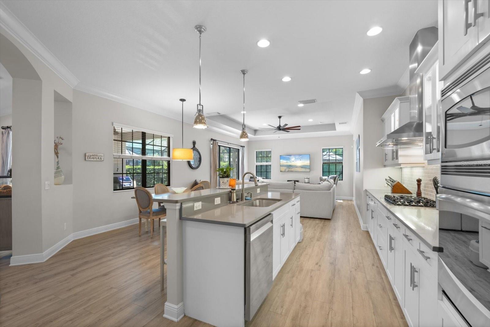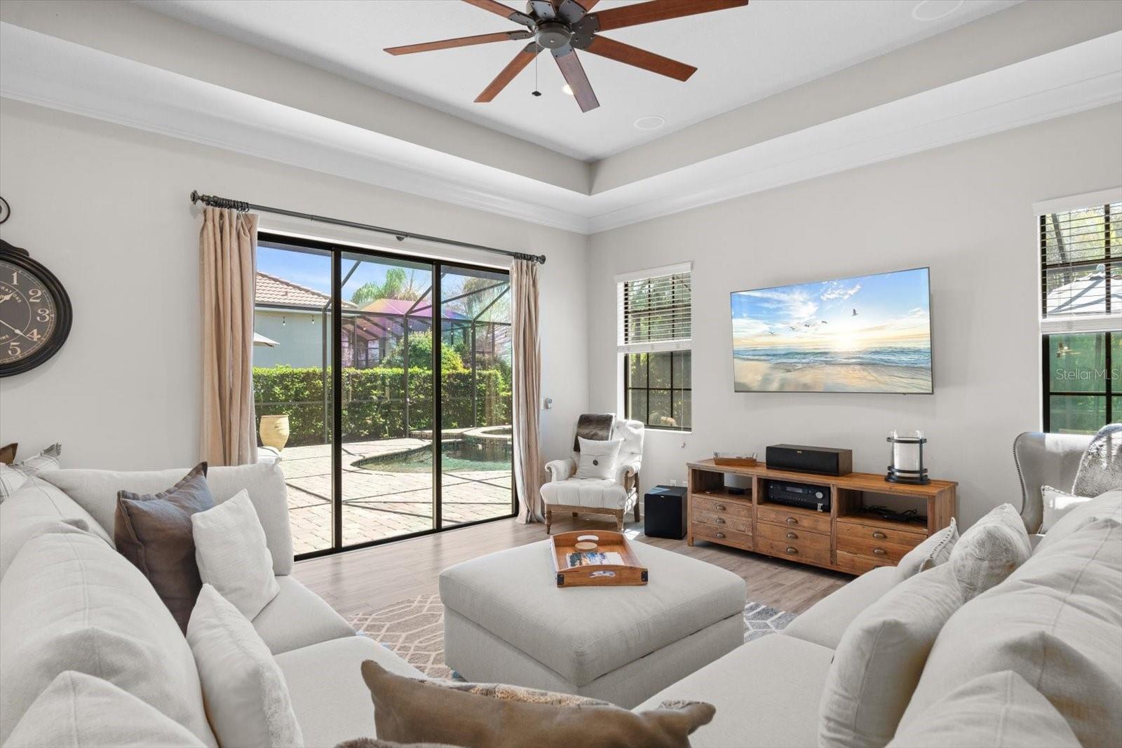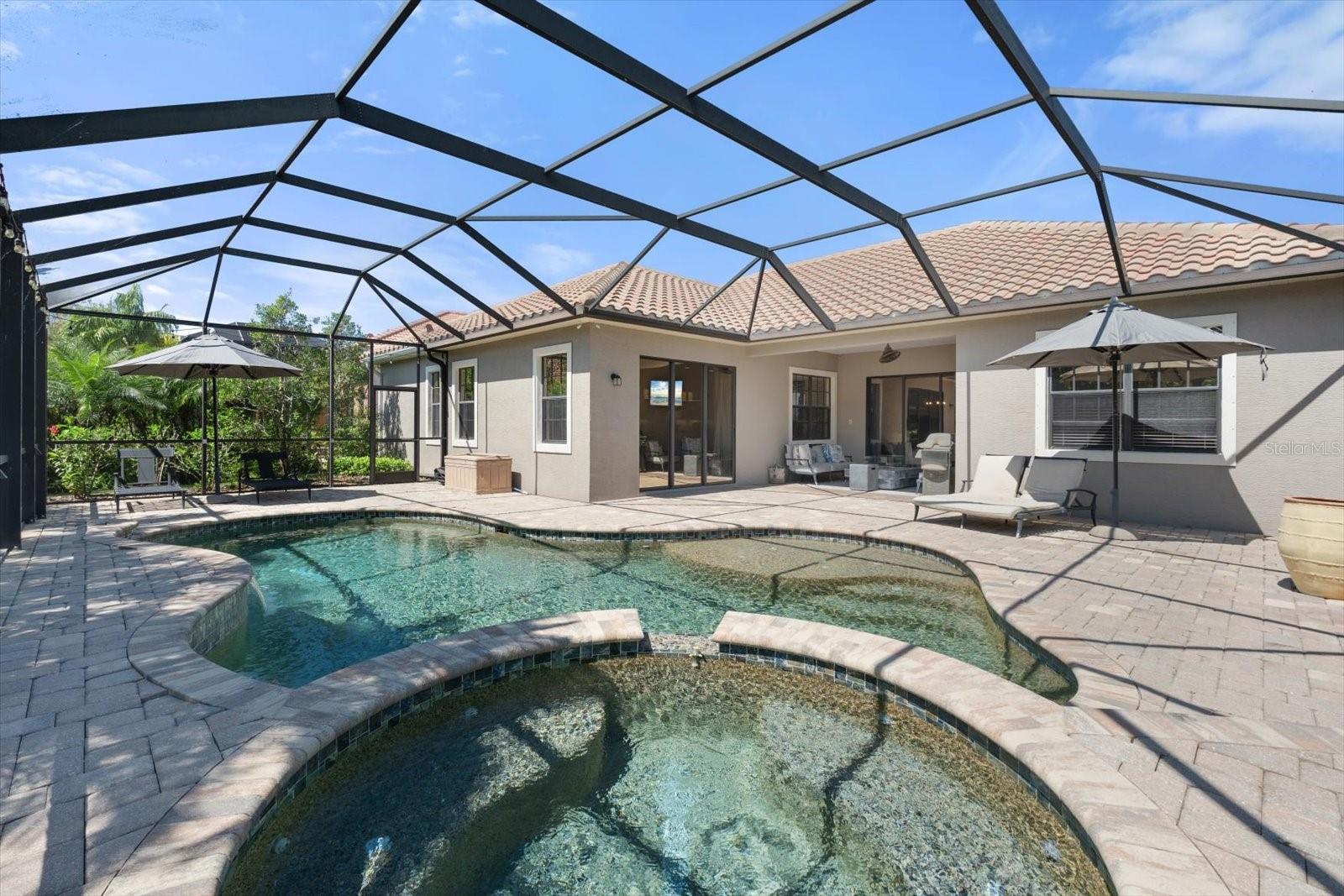 Situated in the desirable Country Club East of Lakewood Ranch, this exquisite 4-bedroom, 3-bath Neal Signature home offers an unparalleled lifestyle with prime location. Showcasing an open-concept design, this home effortlessly integrates the main living spaces, with the gorgeous kitchen serving as the focal point. Showcasing elegant cabinetry, a beautifully tiled backsplash, stainless steel appliances, and a gas cooktop for the ultimate cooking experience. Adding to the home’s exceptional design is a luxurious primary suite, a functional office/den, 2,900 square feet of beautifully crafted living space and a 3 car garage. Step out back and experience the ultimate Florida lifestyle in your stunning screened-in lanai, complete with a saltwater pool and spa, serene tree-lined privacy, and easy access to breathtaking pond and golf course views. Within the gates of County Club East, you are granted access to a host of exceptional amenities, including trails, parks and social gatherings. With it centrally positioned in Lakewood Ranch, this home ensures easy access to Main Street, Waterside Place, and countless local attractions. Paired with an A-rated school system, it’s an opportunity hard to beat. Upgrades in the home include Water Heater(2024), HVAC(2022), Pool Heater(2021), and Pool Pump(2024).