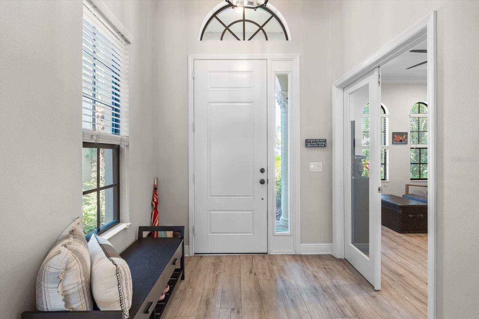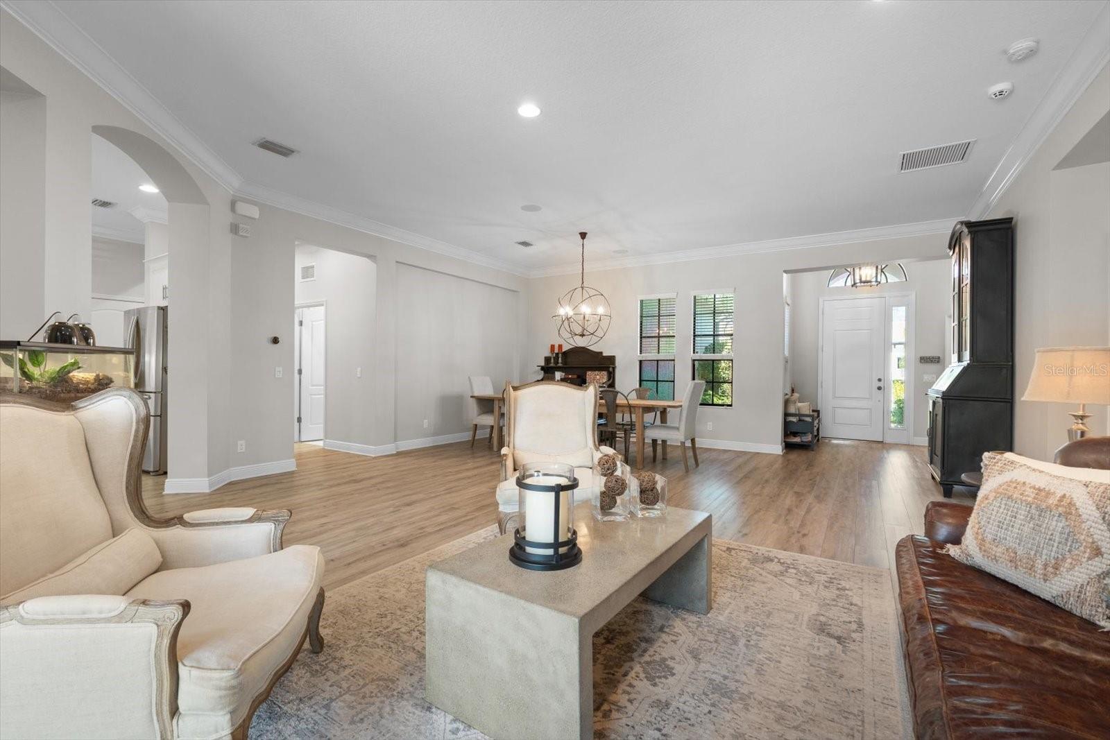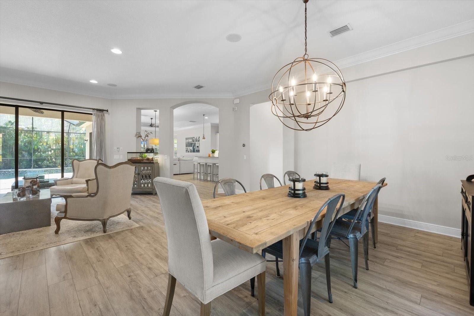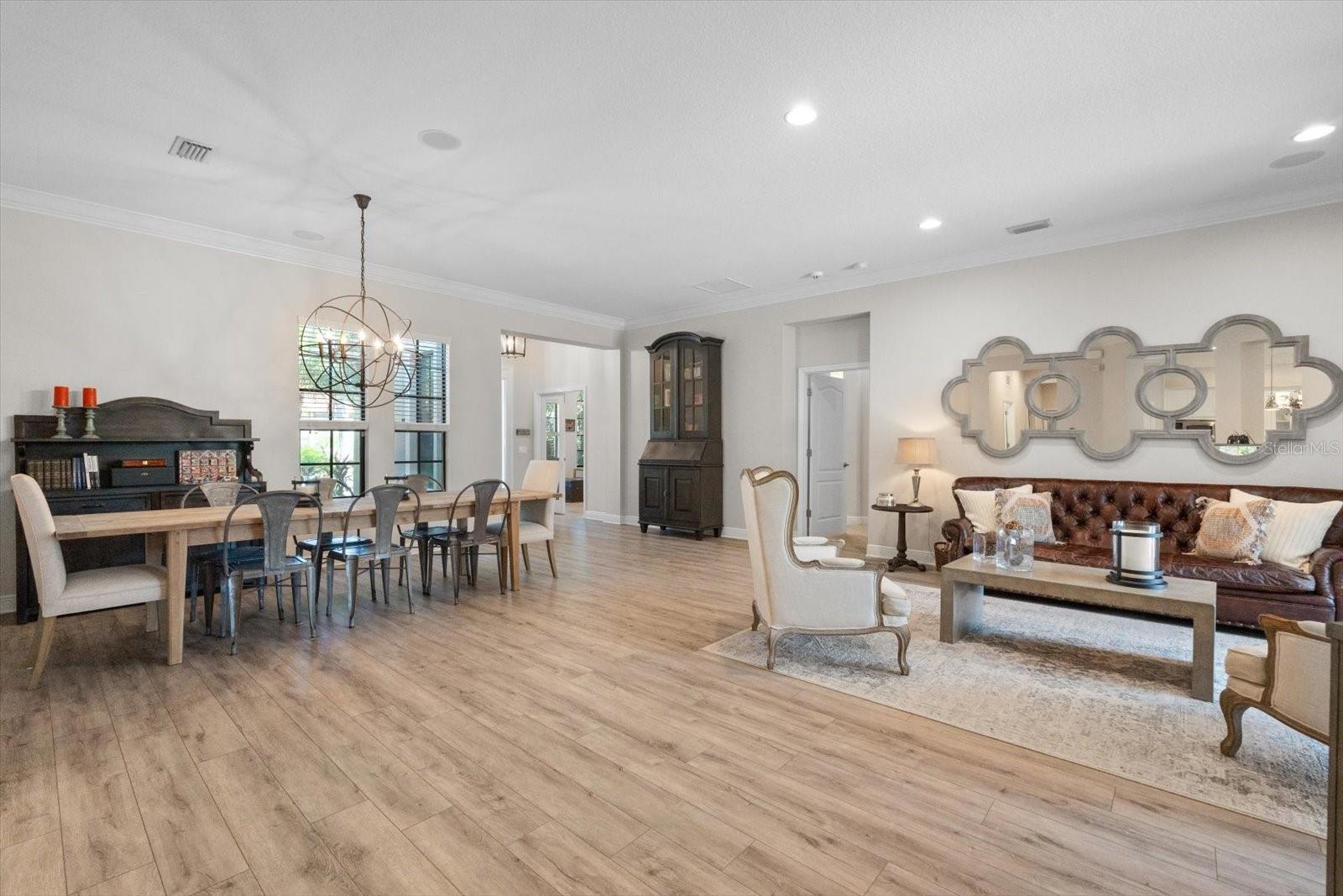 Situated in the desirable Country Club East of Lakewood Ranch, this exquisite 4-bedroom, 3-bath Neal Signature home offers an unparalleled lifestyle with prime location. Showcasing an open-concept design, this home effortlessly integrates the main living spaces, with the gorgeous kitchen serving as the focal point. Showcasing elegant cabinetry, a beautifully tiled backsplash, stainless steel appliances, and a gas cooktop for the ultimate cooking experience. Adding to the home’s exceptional design is a luxurious primary suite, a functional office/den, 2,900 square feet of beautifully crafted living space and a 3 car garage. Step out back and experience the ultimate Florida lifestyle in your stunning screened-in lanai, complete with a saltwater pool and spa, serene tree-lined privacy, and easy access to breathtaking pond and golf course views. Within the gates of County Club East, you are granted access to a host of exceptional amenities, including trails, parks and social gatherings. With it centrally positioned in Lakewood Ranch, this home ensures easy access to Main Street, Waterside Place, and countless local attractions. Paired with an A-rated school system, it’s an opportunity hard to beat. Upgrades in the home include Water Heater(2024), HVAC(2022), Pool Heater(2021), and Pool Pump(2024).