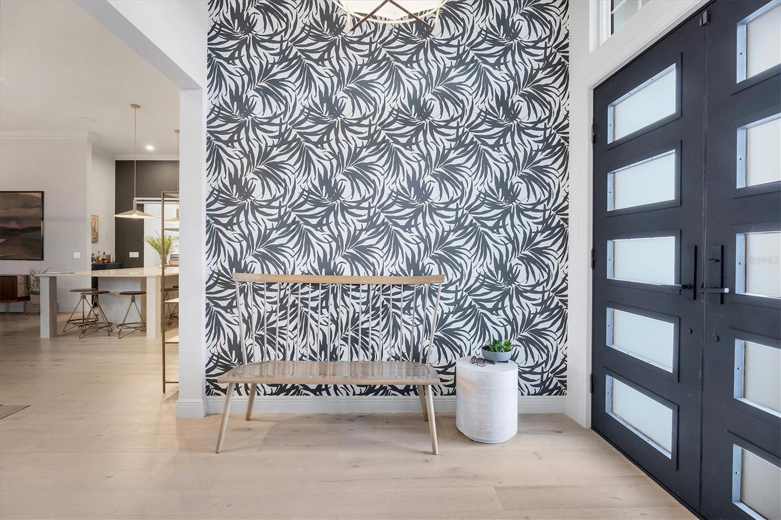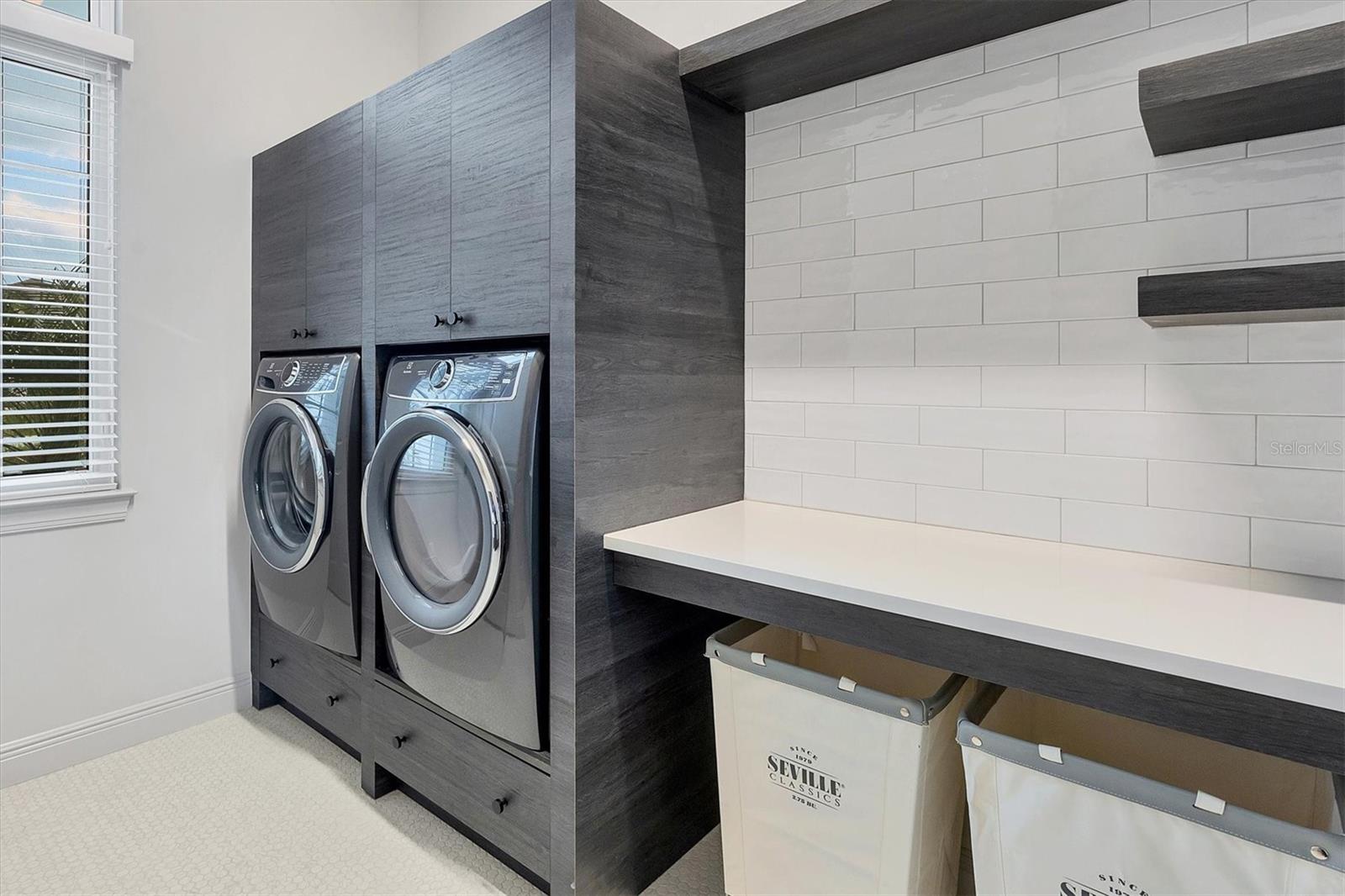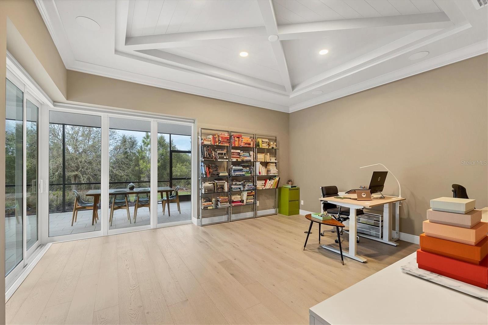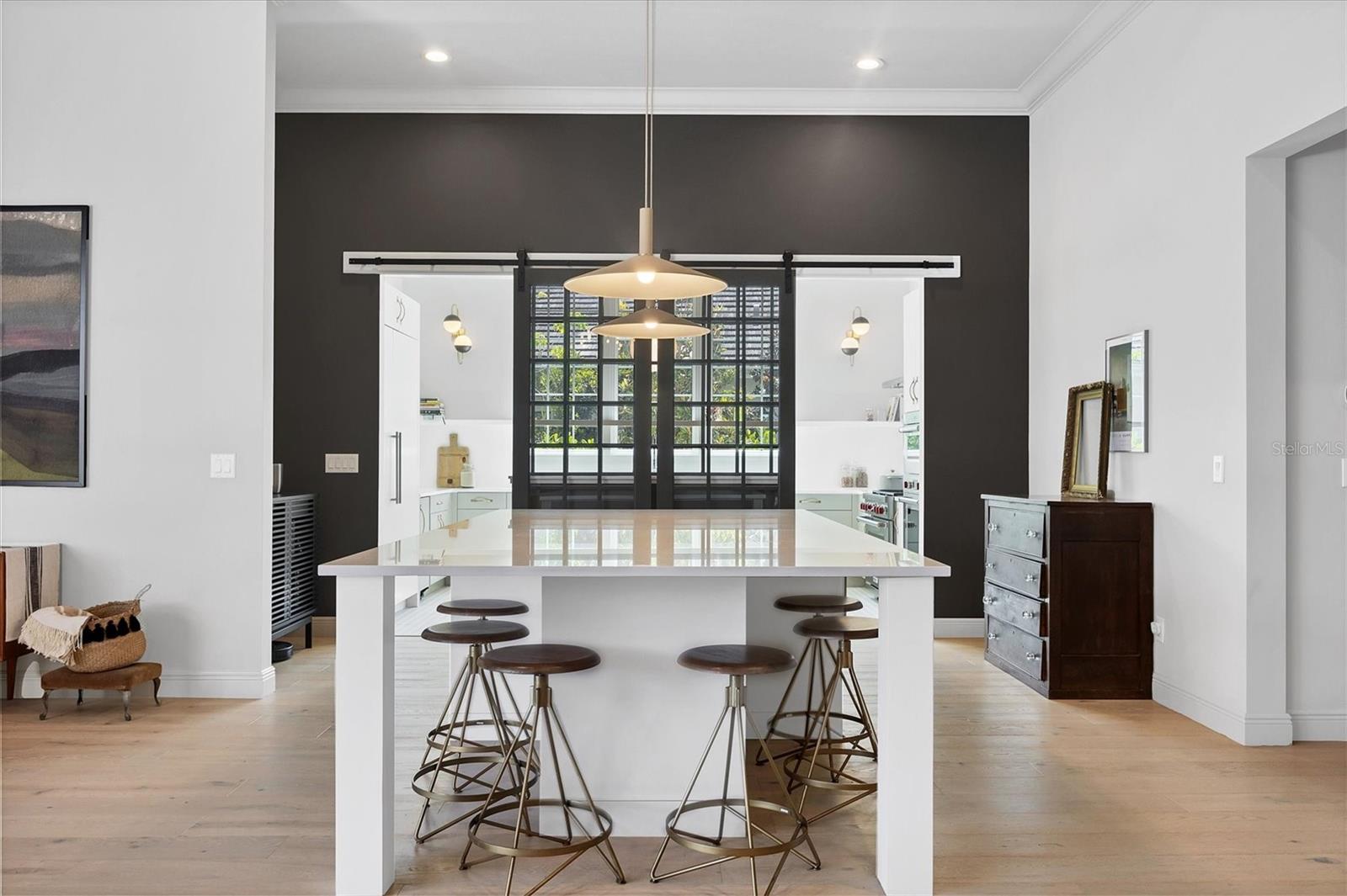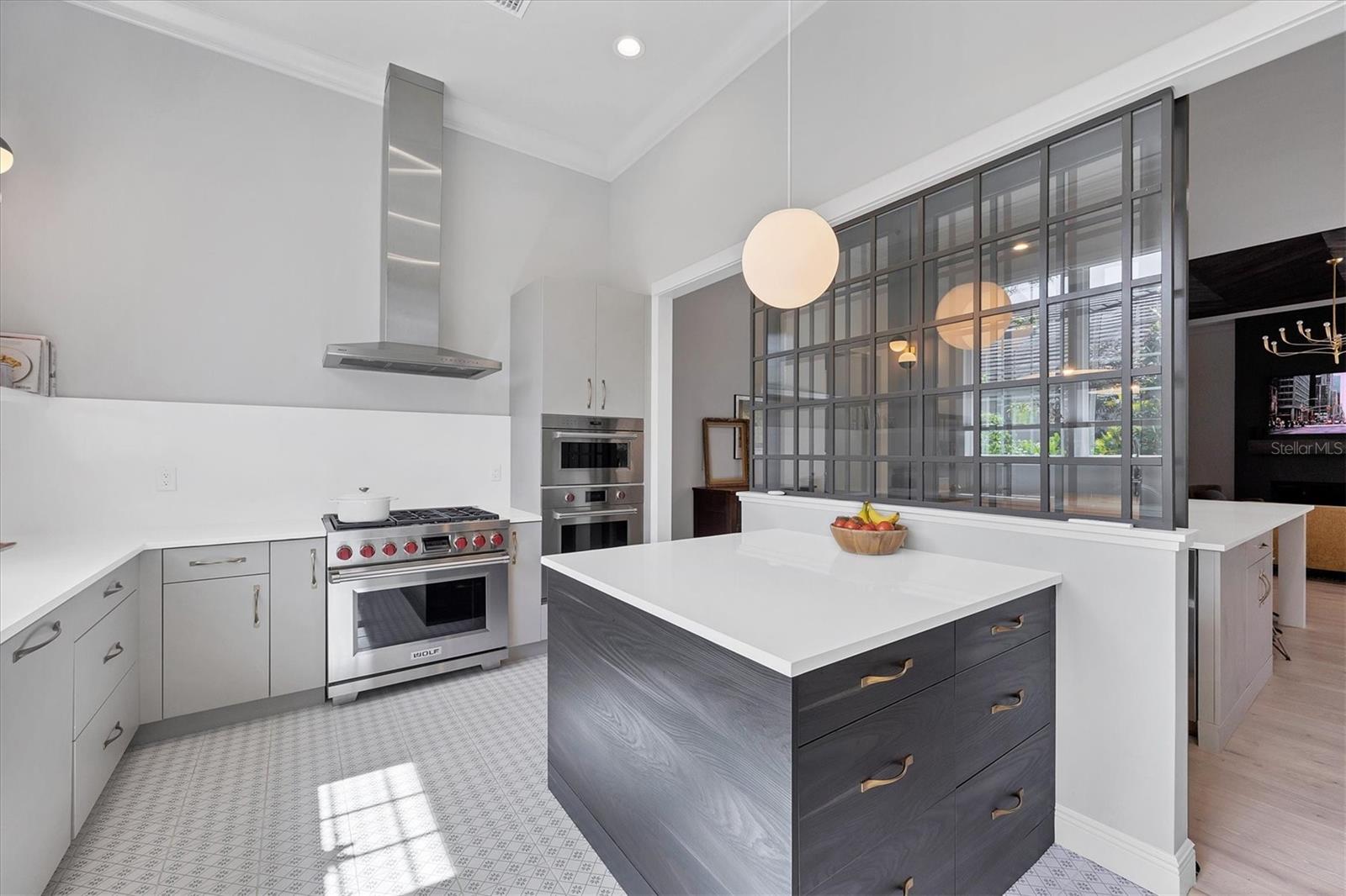 Perfectly situated on a quiet preserve in the exclusive gated enclave of Country Club East, this exceptional John Cannon residence showcases refined craftsmanship, modern luxury, and seamless indoor-outdoor living. Designed for both comfort and impact, the home features impact-rated windows and doors, a full-house generator, and an open layout that’s as functional as it is beautiful. Step through 10-foot iron and glass double doors into a dramatic great room with whitewashed European oak flooring, soaring 13-foot ceilings with chevron wood detail, and a striking natural gas fireplace framed by Basalt volcanic tile and reclaimed wood mantle. A custom Whisperkool wine wall holds up to 130 bottles, accented by a chevron Stickwood backdrop. The main foyer features a hidden closet for bags and shoes. The chef’s kitchen boasts Sub-Zero and Wolf appliances, a 6-burner range, built-in oven and microwave, quartz countertops, a prep island outfitted with pull-out drawers—two for spices—, a farmhouse sink and a standalone ice maker. A entertaining-sized island outside the kitchen features, Uline beverage and wine coolers, an additional microwave, and ample hidden storage. A spacious walk-in pantry is steps away and includes a built-in tall closet. The great room’s 10-foot sliders fold back into a disappearing corner and lead to the expansive lanai with a PebbleTec infinity-edge heated saltwater pool and spa, panoramic screen enclosure, Shell Lock pavers, and a fully outfitted summer kitchen with Alfresco grill, Trailwinds hood, True ice machine, Uline fridge, and Blanco sink. The private owner’s wing includes two walk-in closets, tray ceiling with crown molding, lanai access, and a spa-style bath with radiant heated floors and a steam shower. Two guest suites are positioned in separate wings—each with its own full bath and walk-in closet—one with a private entrance and drop zone, the other with pool bath access. Additional living spaces include a bonus room with 10-foot sliders as a second disappearing corner as well as a study/exercise room with 15-foot ceilings. The laundry room features abundant cabinet storage, designer tile, sink, and an additional 60 square feet of dedicated storage carved out behind two double doors. Adding even more value, the home is equipped with a whole-house water filtration system, designer lighting, automatic blinds, and an oversized 3-car garage. Every detail of this home has been thoughtfully curated for elevated living in one of Lakewood Ranch’s most prestigious communities.