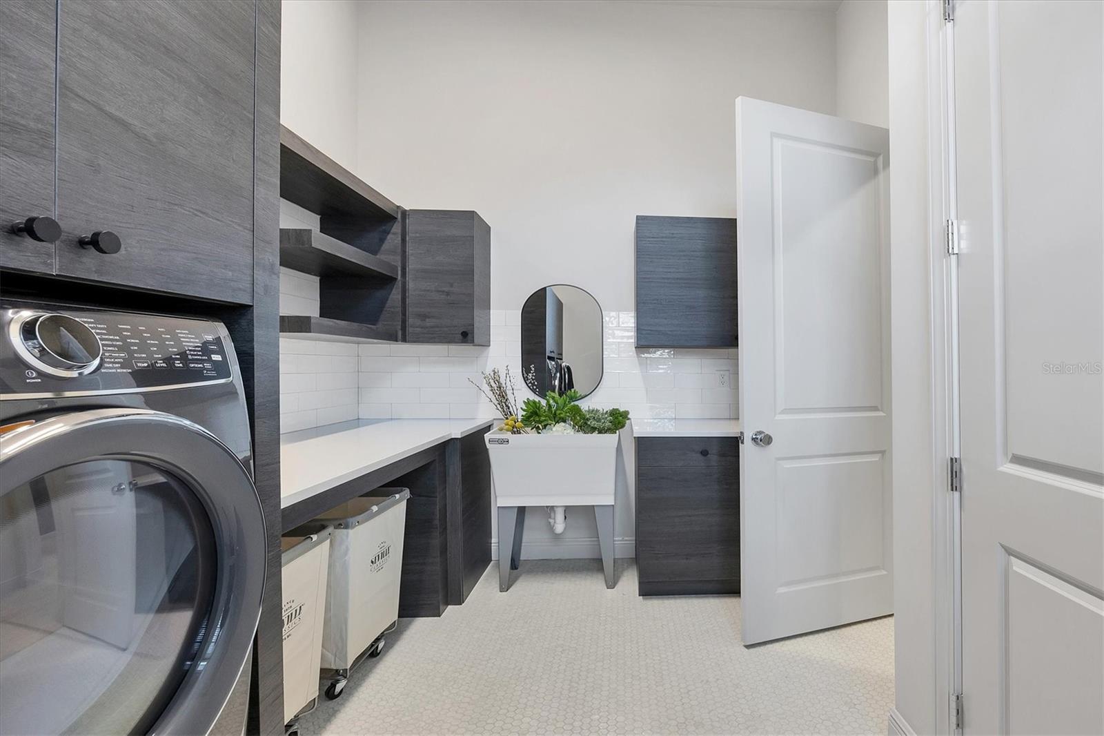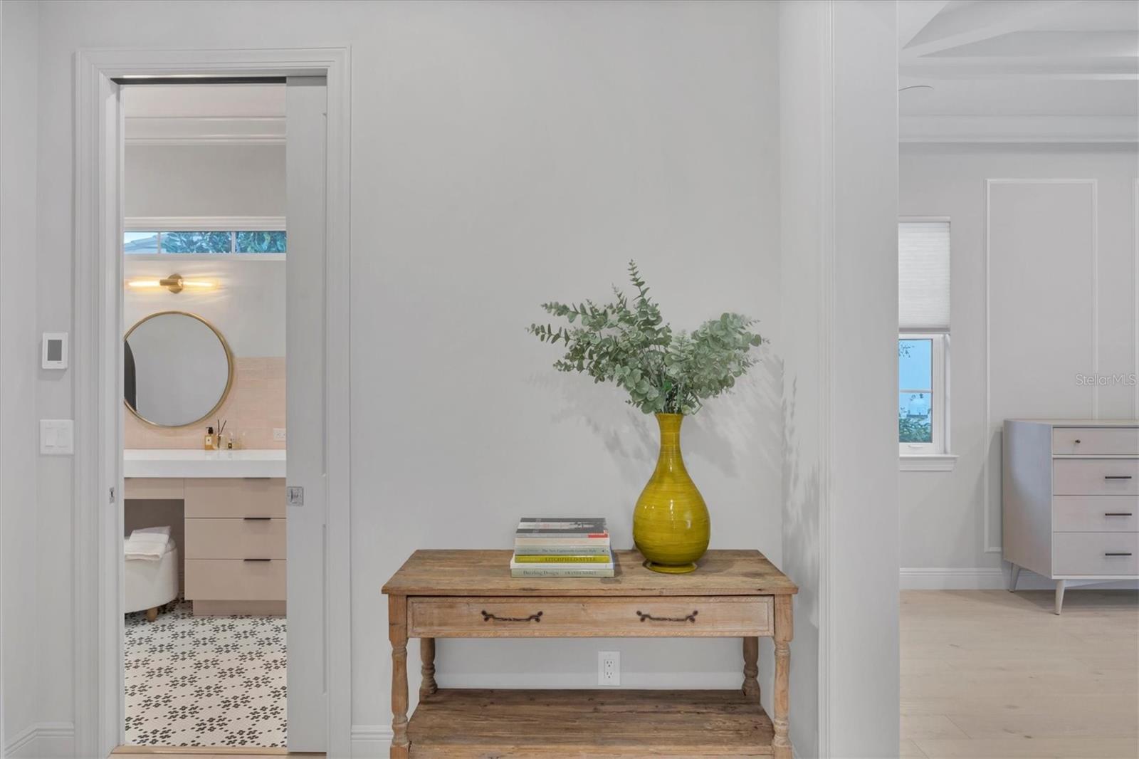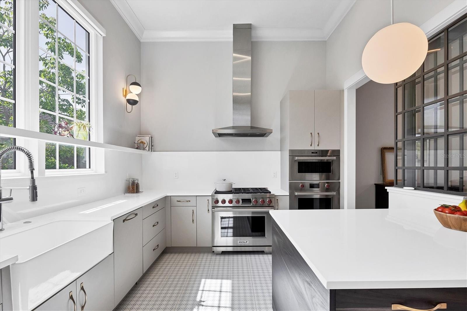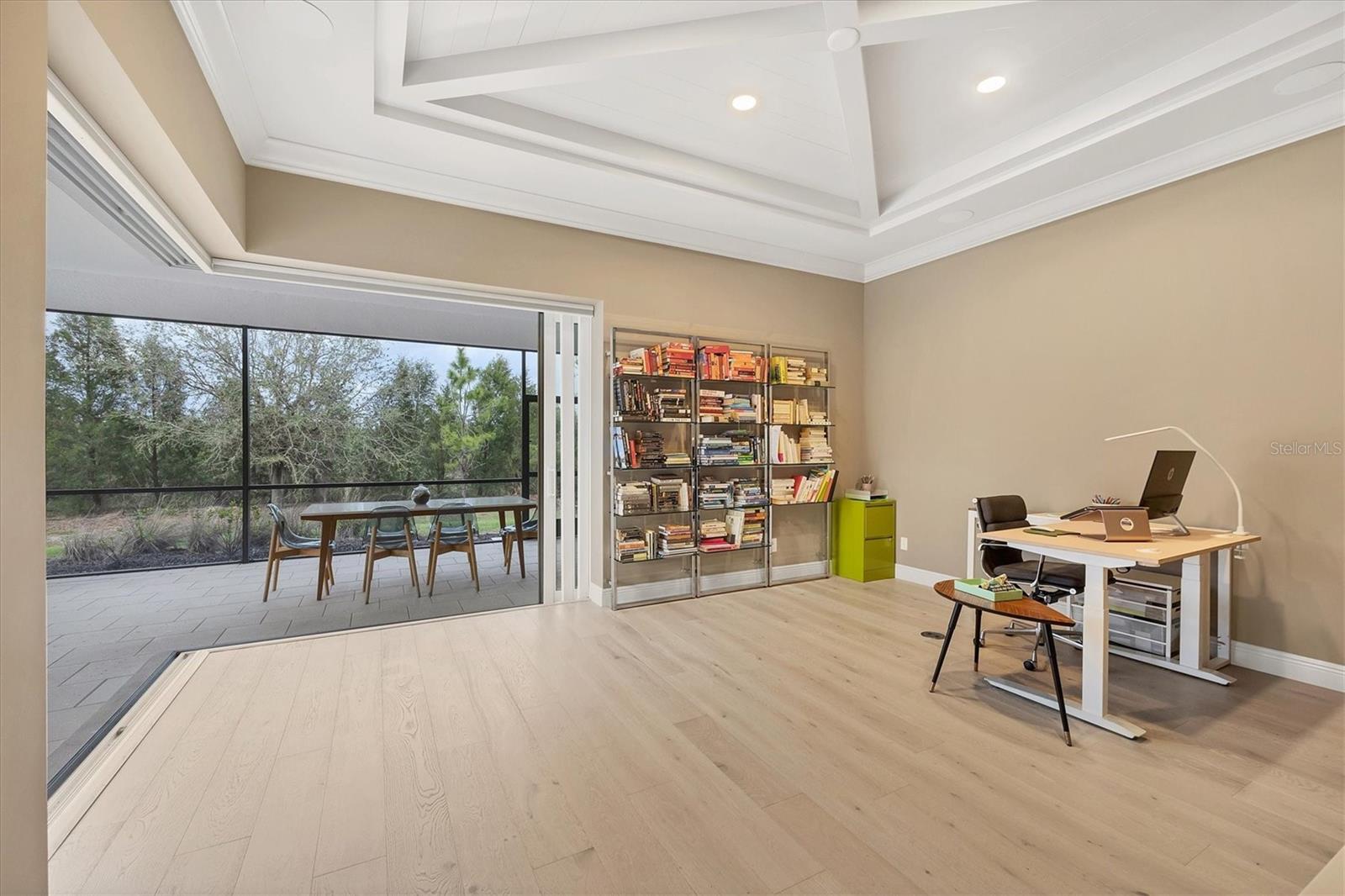 Perfectly situated on a quiet preserve in the exclusive gated enclave of Country Club East, this exceptional John Cannon residence showcases refined craftsmanship, modern luxury, and seamless indoor-outdoor living. Designed for both comfort and impact, the home features impact-rated windows and doors, a full-house generator, and an open layout that’s as functional as it is beautiful. Step through 10-foot iron and glass double doors into a dramatic great room with whitewashed European oak flooring, soaring 13-foot ceilings with chevron wood detail, and a striking natural gas fireplace framed by Basalt volcanic tile and reclaimed wood mantle. A custom Whisperkool wine wall holds up to 130 bottles, accented by a chevron Stickwood backdrop. The main foyer features a hidden closet for bags and shoes. The chef’s kitchen boasts Sub-Zero and Wolf appliances, a 6-burner range, built-in oven and microwave, quartz countertops, a prep island outfitted with pull-out drawers—two for spices—, a farmhouse sink and a standalone ice maker. A entertaining-sized island outside the kitchen features, Uline beverage and wine coolers, an additional microwave, and ample hidden storage. A spacious walk-in pantry is steps away and includes a built-in tall closet. The great room’s 10-foot sliders fold back into a disappearing corner and lead to the expansive lanai with a PebbleTec infinity-edge heated saltwater pool and spa, panoramic screen enclosure, Shell Lock pavers, and a fully outfitted summer kitchen with Alfresco grill, Trailwinds hood, True ice machine, Uline fridge, and Blanco sink. The private owner’s wing includes two walk-in closets, tray ceiling with crown molding, lanai access, and a spa-style bath with radiant heated floors and a steam shower. Two guest suites are positioned in separate wings—each with its own full bath and walk-in closet—one with a private entrance and drop zone, the other with pool bath access. Additional living spaces include a bonus room with 10-foot sliders as a second disappearing corner as well as a study/exercise room with 15-foot ceilings. The laundry room features abundant cabinet storage, designer tile, sink, and an additional 60 square feet of dedicated storage carved out behind two double doors. Adding even more value, the home is equipped with a whole-house water filtration system, designer lighting, automatic blinds, and an oversized 3-car garage. Every detail of this home has been thoughtfully curated for elevated living in one of Lakewood Ranch’s most prestigious communities.