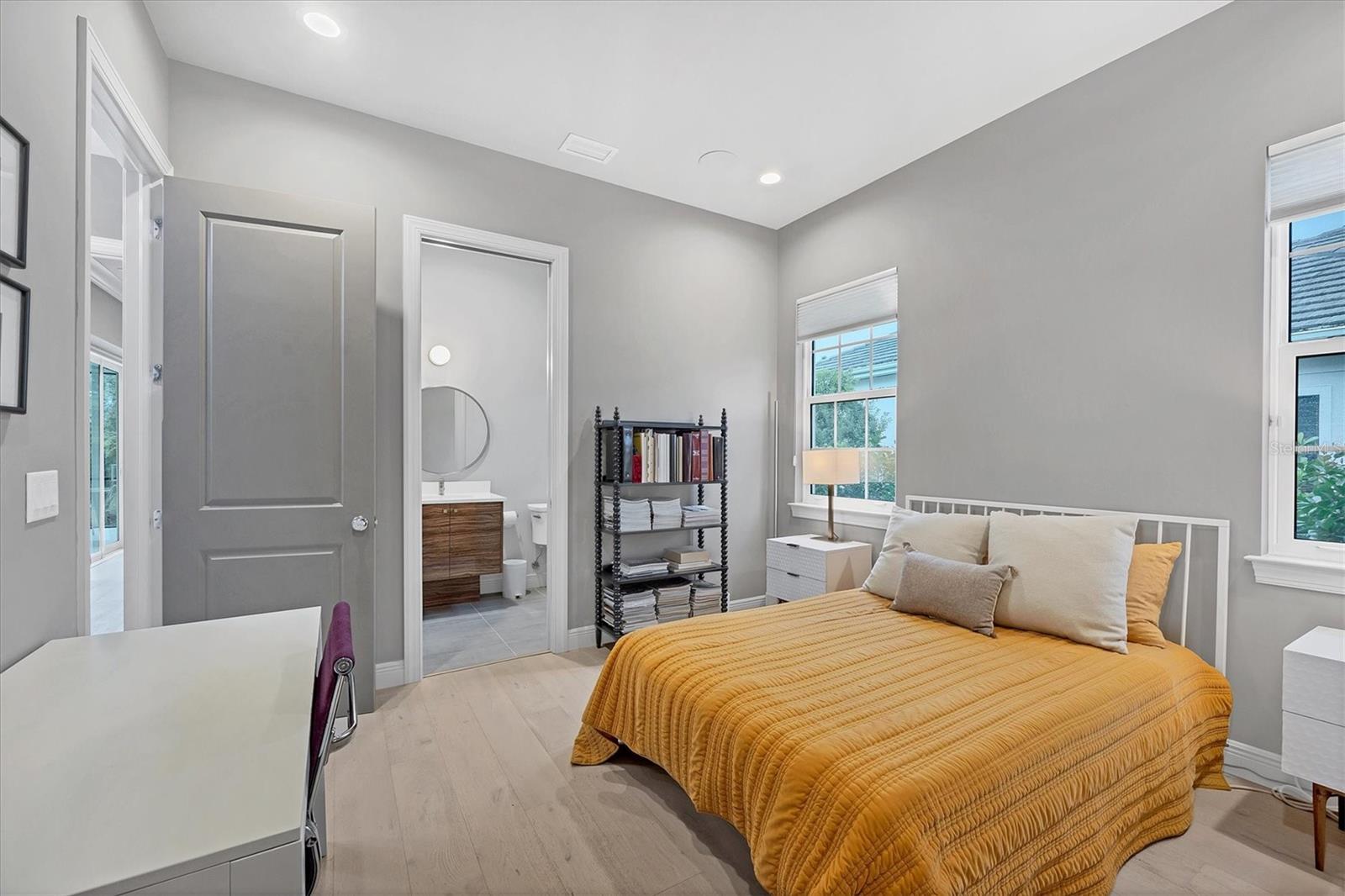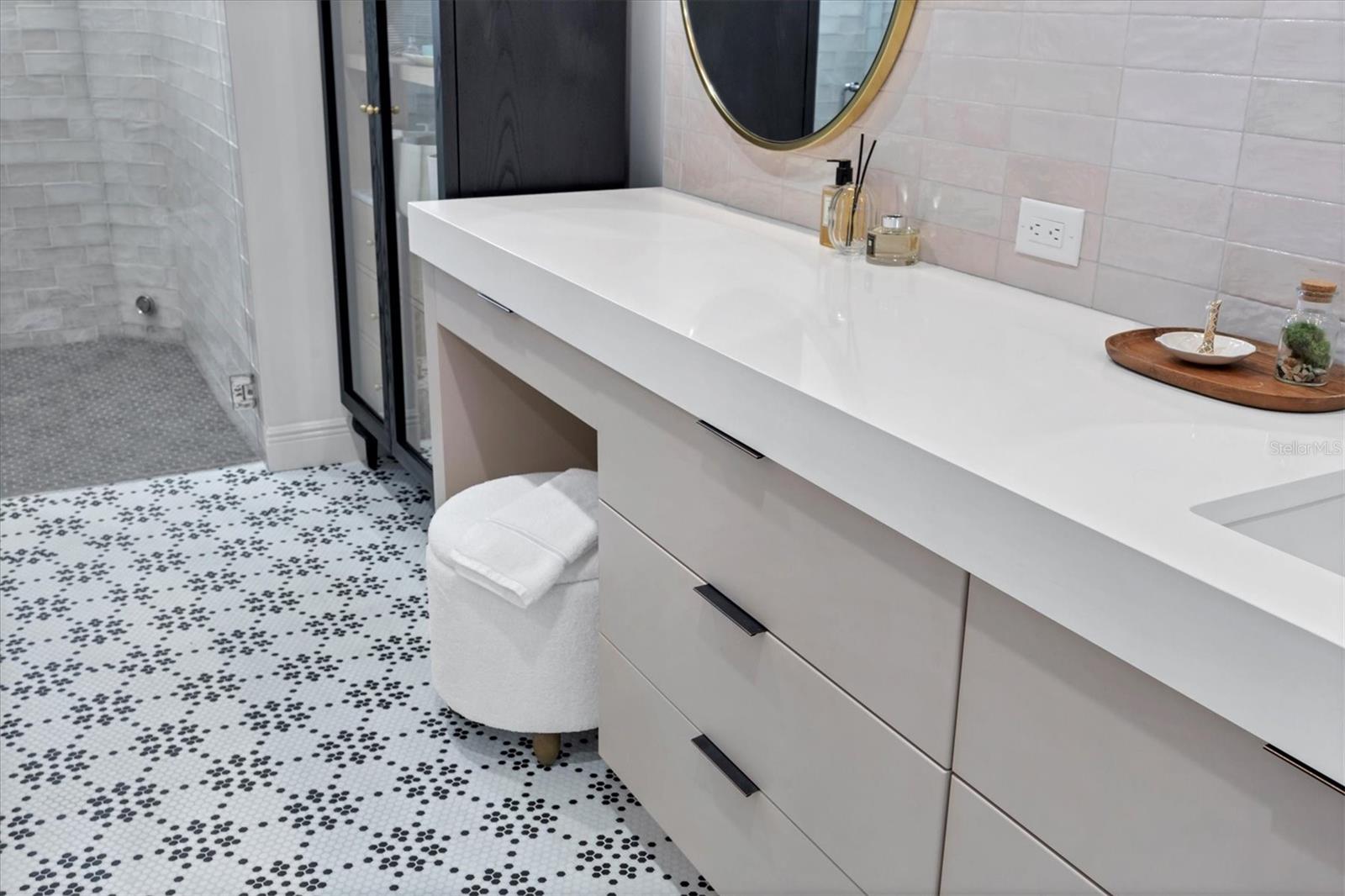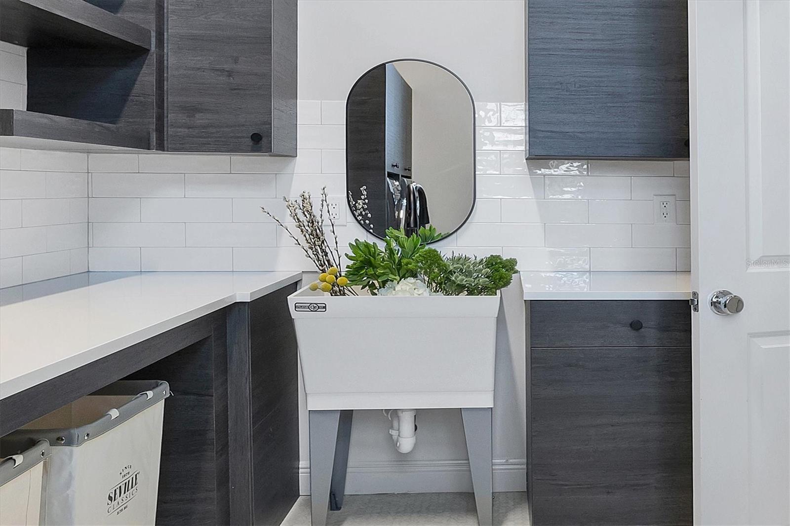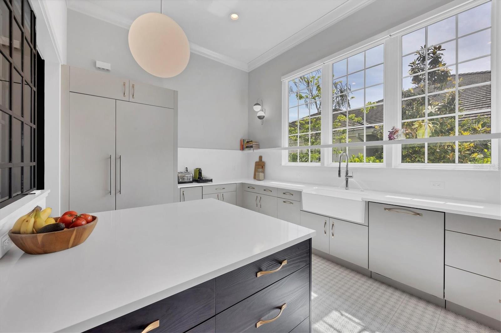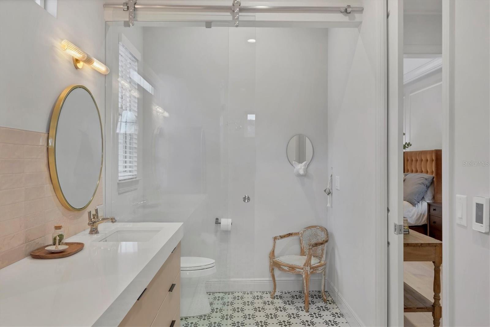 Perfectly situated on a quiet preserve in the exclusive gated enclave of Country Club East, this exceptional John Cannon residence showcases refined craftsmanship, modern luxury, and seamless indoor-outdoor living. Designed for both comfort and impact, the home features impact-rated windows and doors, a full-house generator, and an open layout that’s as functional as it is beautiful. Step through 10-foot iron and glass double doors into a dramatic great room with whitewashed European oak flooring, soaring 13-foot ceilings with chevron wood detail, and a striking natural gas fireplace framed by Basalt volcanic tile and reclaimed wood mantle. A custom Whisperkool wine wall holds up to 130 bottles, accented by a chevron Stickwood backdrop. The main foyer features a hidden closet for bags and shoes. The chef’s kitchen boasts Sub-Zero and Wolf appliances, a 6-burner range, built-in oven and microwave, quartz countertops, a prep island outfitted with pull-out drawers—two for spices—, a farmhouse sink and a standalone ice maker. A entertaining-sized island outside the kitchen features, Uline beverage and wine coolers, an additional microwave, and ample hidden storage. A spacious walk-in pantry is steps away and includes a built-in tall closet. The great room’s 10-foot sliders fold back into a disappearing corner and lead to the expansive lanai with a PebbleTec infinity-edge heated saltwater pool and spa, panoramic screen enclosure, Shell Lock pavers, and a fully outfitted summer kitchen with Alfresco grill, Trailwinds hood, True ice machine, Uline fridge, and Blanco sink. The private owner’s wing includes two walk-in closets, tray ceiling with crown molding, lanai access, and a spa-style bath with radiant heated floors and a steam shower. Two guest suites are positioned in separate wings—each with its own full bath and walk-in closet—one with a private entrance and drop zone, the other with pool bath access. Additional living spaces include a bonus room with 10-foot sliders as a second disappearing corner as well as a study/exercise room with 15-foot ceilings. The laundry room features abundant cabinet storage, designer tile, sink, and an additional 60 square feet of dedicated storage carved out behind two double doors. Adding even more value, the home is equipped with a whole-house water filtration system, designer lighting, automatic blinds, and an oversized 3-car garage. Every detail of this home has been thoughtfully curated for elevated living in one of Lakewood Ranch’s most prestigious communities.