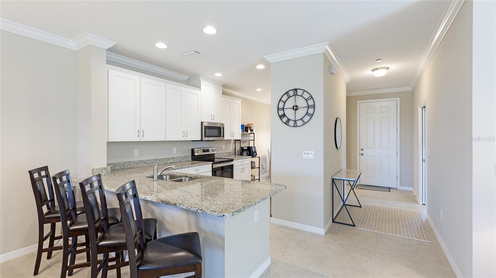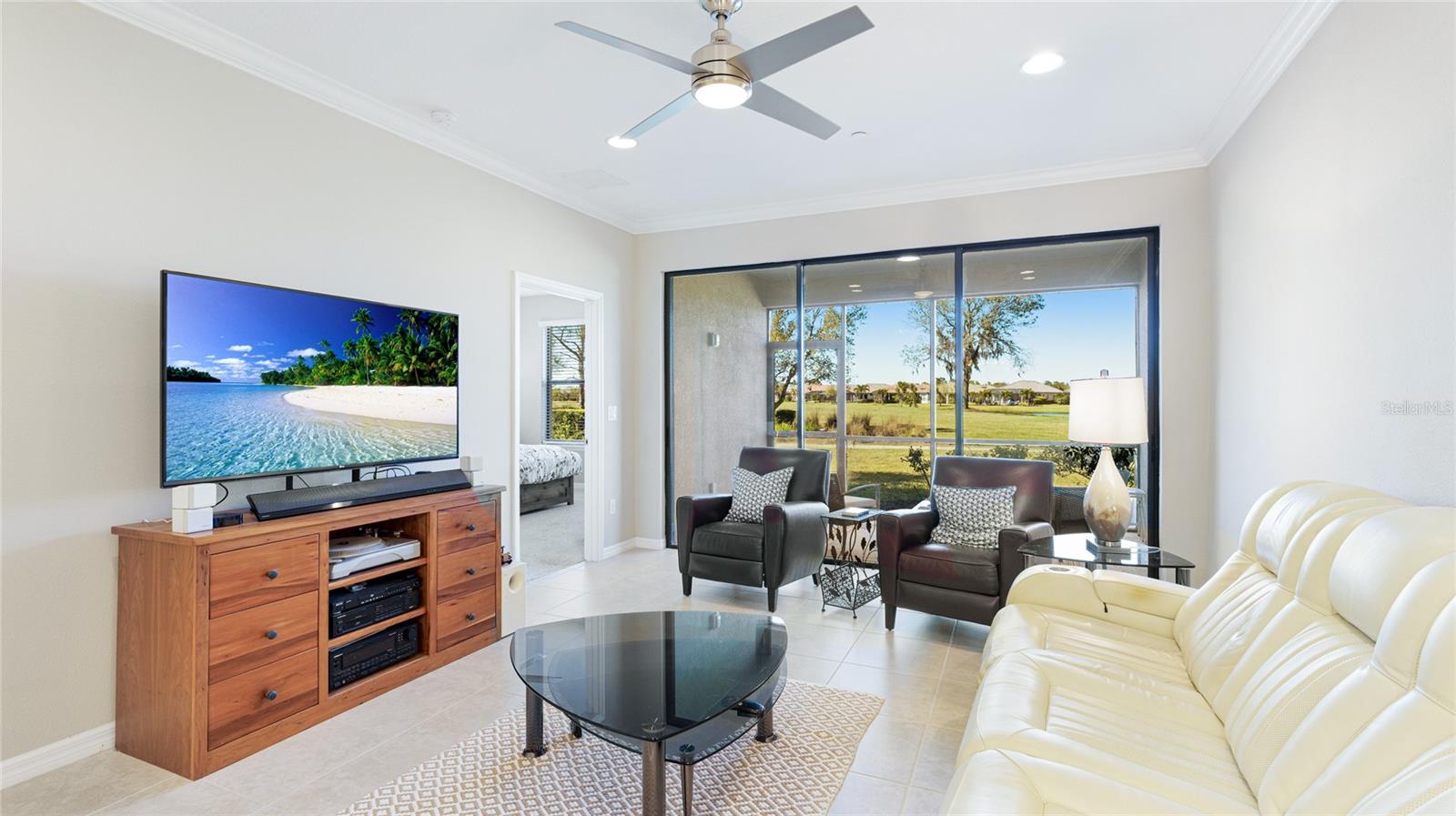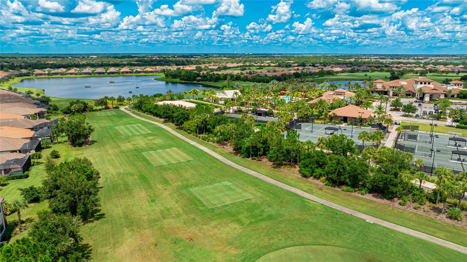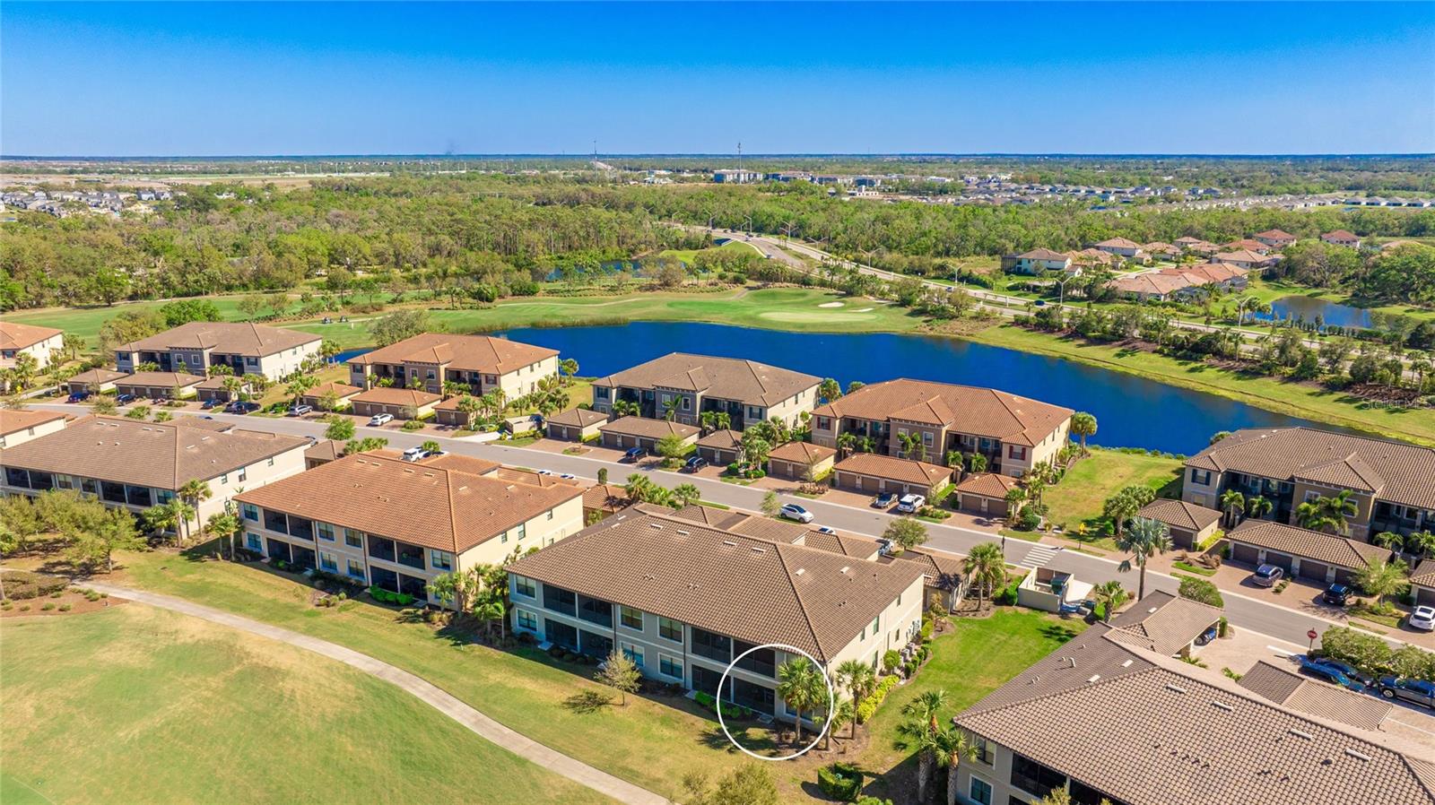 Enjoy the ultimate golf and resort lifestyle in this first-floor, end-unit condo with stunning lake and golf course views in the highly sought-after Esplanade Golf & Country Club at Lakewood Ranch. Unlike other units in the community, this condo is deeded with a FULL GOLF MEMBERSHIP—an exclusive benefit. This perk grants you unlimited access to the championship 18-hole golf course, professional instruction, and a full-service pro shop, offering an exceptional experience for golf enthusiasts. Inside, this 2-bedroom, 2-bathroom condo with a versatile flex space boasts an open-concept layout, high ceilings, crown molding, and an abundance of natural light, creating a bright and airy ambiance. The kitchen showcases 42-inch cabinetry, gleaming granite countertops, a pantry, and premium GE stainless steel appliances. The open concept floor plan flows seamlessly into the living and dining areas, where expansive sliders frame golf course and lake views, setting the perfect scene for relaxation and entertaining. Step outside to your screened-in lanai and take in the serene surroundings—an ideal spot to start your morning with coffee or unwind in the evening while enjoying breathtaking sunset views over the fairways. The primary suite offers two closets and an ensuite bathroom with dual sinks and a spacious walk-in shower. A one-car garage, located just steps from your front door, provides added convenience and security. Located just a stone’s throw from one of the community’s many pools, this condo provides easy access to Esplanade’s world-class amenities. Residents enjoy two grand clubhouses serving as the heart of social and leisure activities, as well as resort-style pools, a luxurious spa, and casual dining at the Tiki Bar. Stay active with tennis, bocce ball, a resistance pool, and a full fitness center, or explore the outdoors with the canoe and kayak launch, adventure playground, and barbecue areas. For dining and entertainment, Esplanade offers on-site options including the Barrel House Bistro, Bahama Bar, and Pizza Café. Beyond the gates, you are just minutes from Lakewood Ranch Main Street, Waterside Place, and the UTC area, where you’ll find upscale shopping, dining, and entertainment. **THIS PROPERTY QUALIFIES FOR A 1% LENDER INCENTIVE IF USING PREFERRED LENDER. INQUIRE FOR MORE DETAILS.**