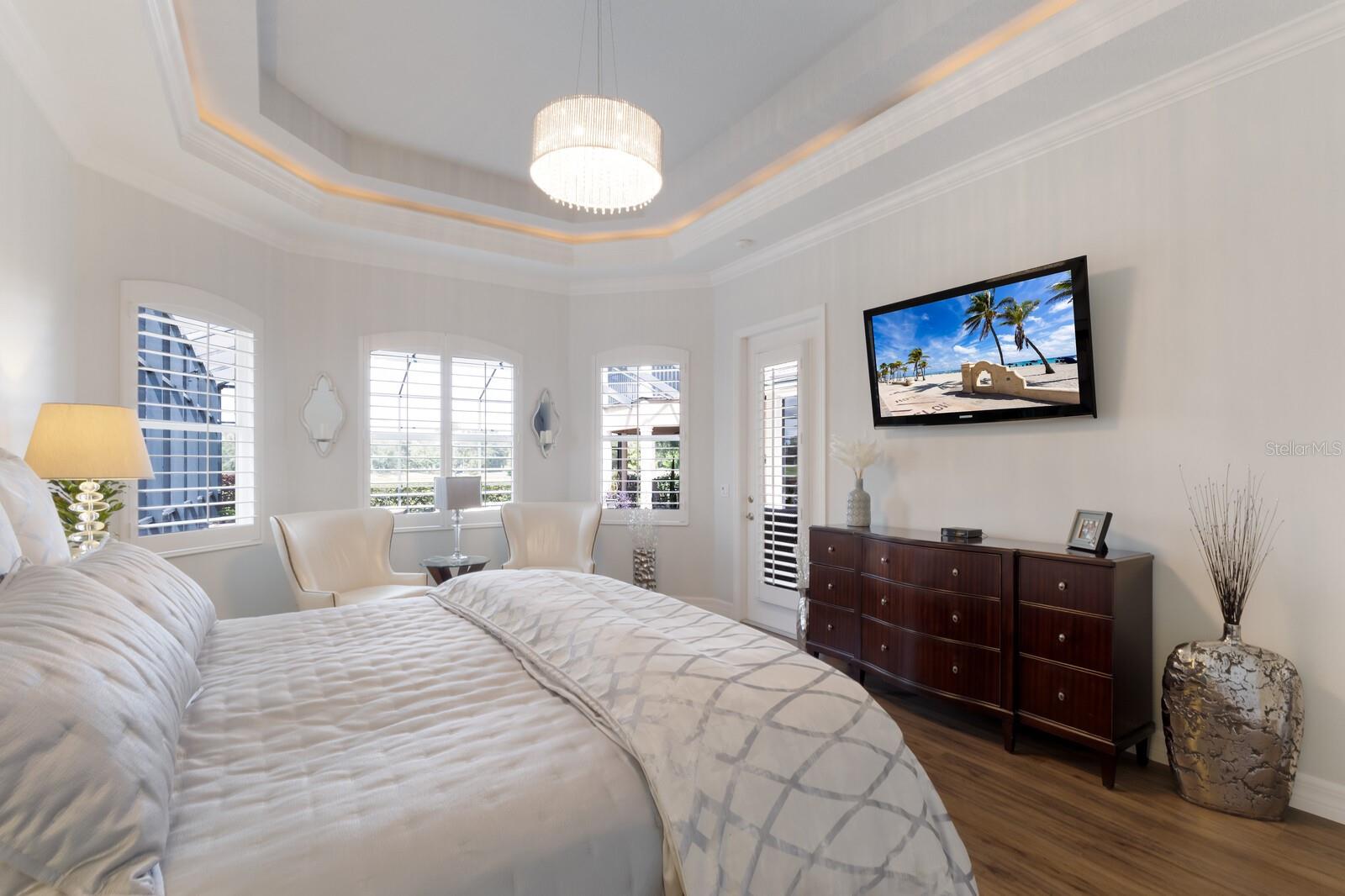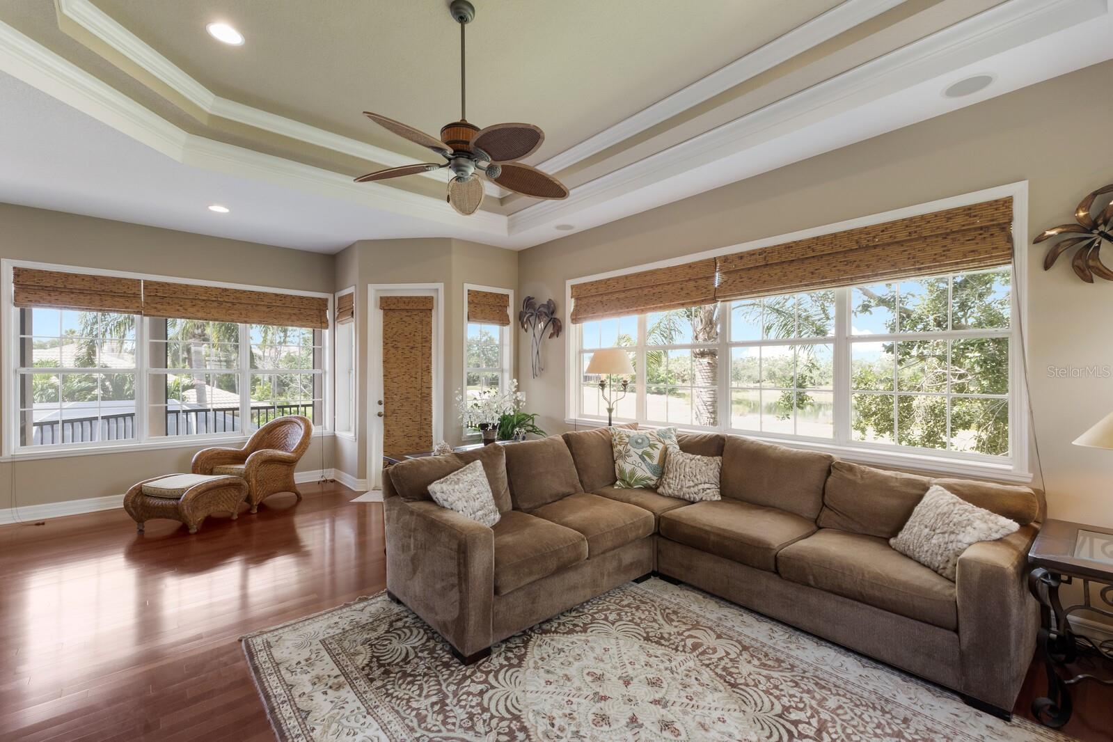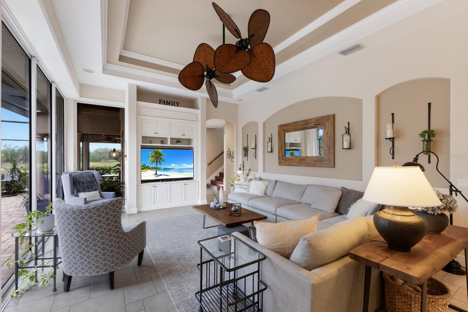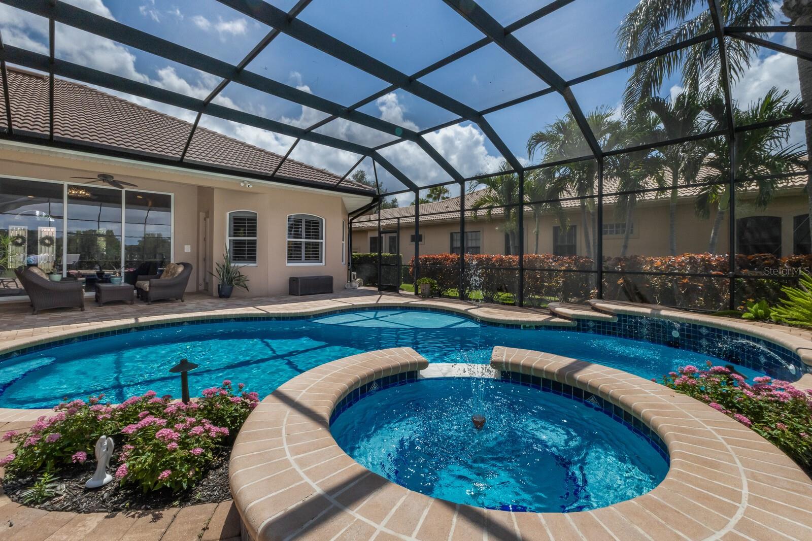 This stunning custom-built Peregrine home is perfectly positioned on one of the most sought-after homesites in Lakewood Ranch Golf & CC! Located on the Arnold Palmer designed Cypress Links #7, it offers breathtaking golf & water views. From the moment you arrive, the impressive curb appeal, circular drive & lush landscape set the stage for the elegance that awaits. Beautiful double glass doors open into a bright & welcoming foyer guiding you to the main living spaces. To the right, you'll find the formal dining area -perfect for hosting elegant dinners & to the left, a private office with French doors, hardwood floors & custom built-ins. Designed for both comfort & sophistication, the living room features a cozy fireplace, tray ceilings & a wall of sliders that draw your eye to the picturesque outdoors. A butler’s pantry with ample storage seamlessly connects the dining room to the newly remodeled kitchen, offering both style & functionality. It features an abundance of solid wood cabinetry, new backsplash, stainless appliances, granite countertops, double ovens, a breakfast bar & a spacious walk-in pantry. It also includes a charming eat-in area with a large aquarium window, offering the perfect spot to enjoy a morning coffee. Off the kitchen, the great room is an inviting space for family gatherings with built-in entertainment wall, tile floors, crown moldings, tray ceilings, architectural niches & sliders that bring the tropical outdoors in! At the rear of the home, a generous sized bonus room (currently used as a home gym) provides endless possibilities & is located next to a convenient pool bath. The luxurious primary suite offers a private retreat with a serene sitting area & windows that frame the amazing views. The recently remodeled ensuite bath is a true spa-like escape, featuring double quartz vanities, a huge walk-in shower & an elegant soaking tub. There are TWO walk-in closets with extensive built-in cabinetry providing ample storage, while glass block windows fill the space with natural light. The home’s 2nd & 3rd bedrooms share a beautifully remodeled Jack-and-Jill bath with dual quartz vanities, seamless glass shower doors & new fixtures. Both bedrooms exude charm with hand-scraped wood floors, built-in window seats & walk-in closets with custom storage solutions. A beautiful hardwood staircase leads to an incredible second-level bonus suite, ideal for an in-law arrangement or private guest retreat. This space features a spacious living area with blackout blinds, a wet bar with fridge, a 4th bedroom & a full bath! A large 2nd floor screened-in balcony offers a peaceful place to sip a glass of wine while overlooking the tranquil natural surroundings. Designed for Florida’s coveted indoor-outdoor lifestyle, this home boasts an expansive outdoor space with 2 covered areas adorned with cypress ceilings, perfect for relaxing or dining al fresco. A stunning heated pool with sun deck & spa create the ultimate backyard oasis. Bonus of a 3-car garage offering ample storage & epoxy flooring. LWR Golf & CC offers Social, Athletic & Golf memberships which are all OPTIONAL. These include FOUR 18-hole championship courses, a state-of-the-art fitness center, a junior Olympic pool, tennis, pickleball, dining, social activities year-round & MORE! Enjoy close proximity to endless shopping, incredible restaurants, vibrant arts, easy access to I-75, top-notch healthcare, A-rated schools & our award-winning area beaches!