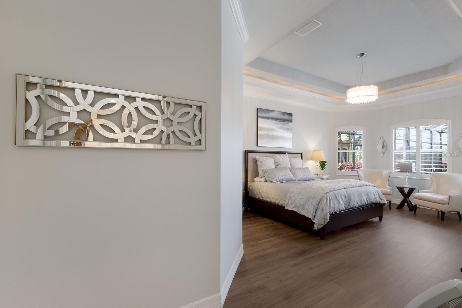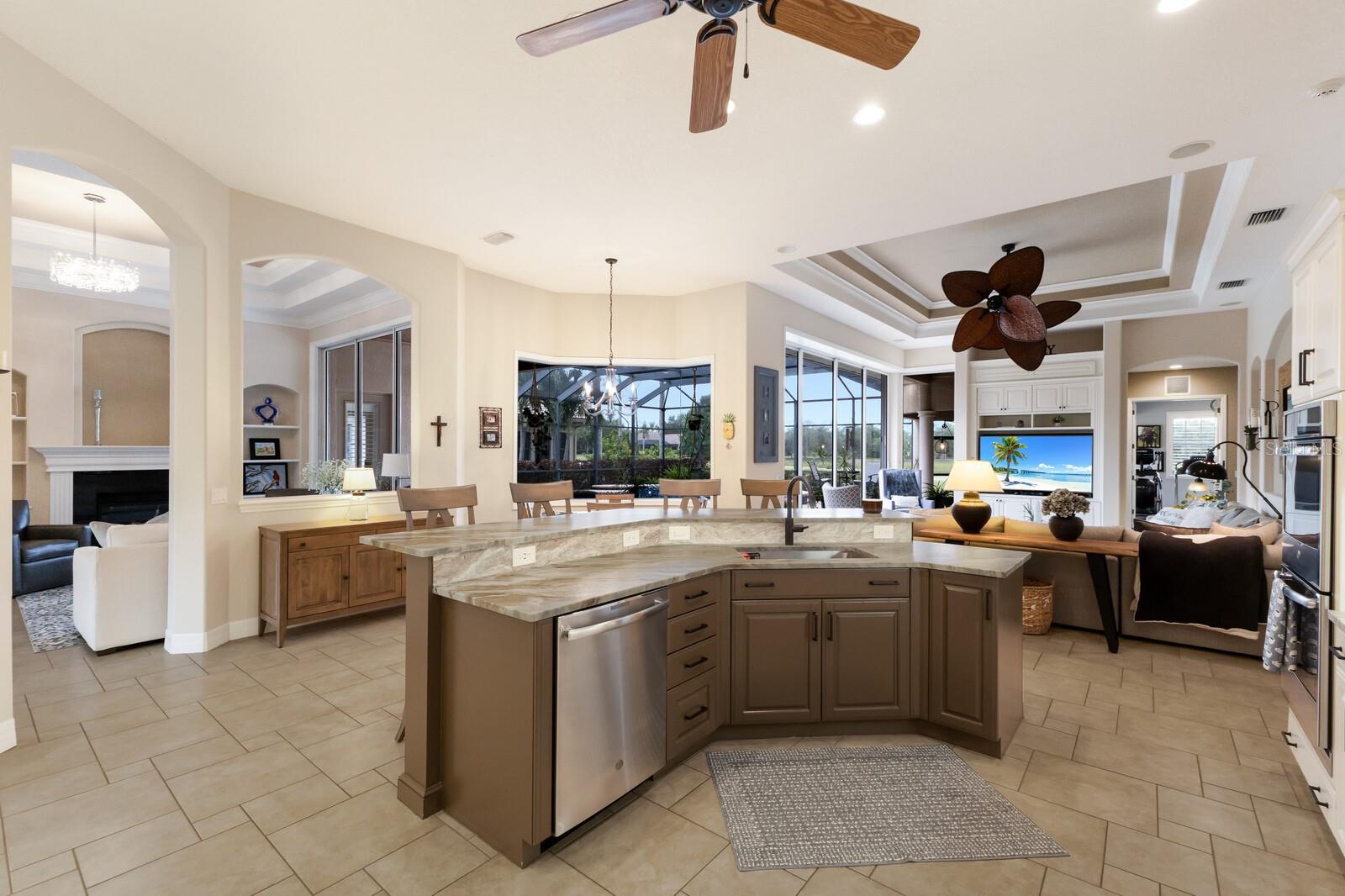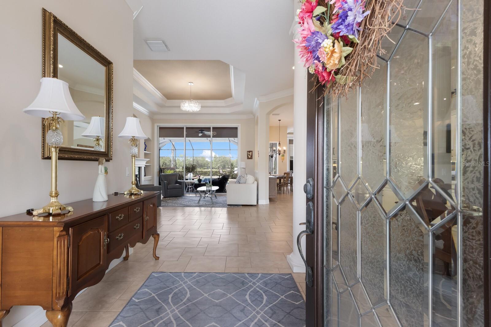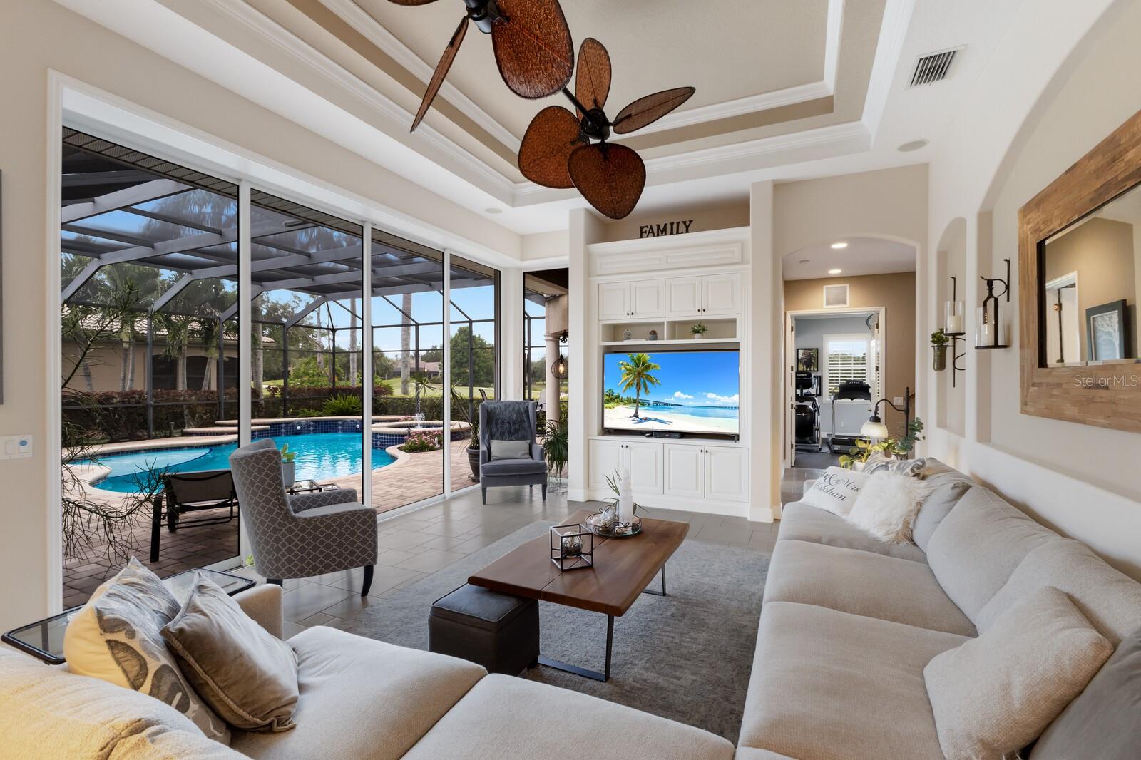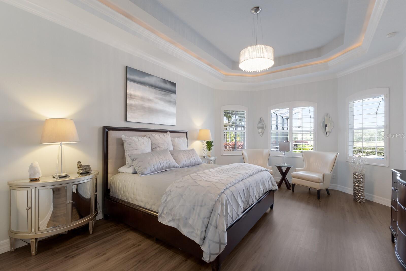 This stunning custom-built Peregrine home is perfectly positioned on one of the most sought-after homesites in Lakewood Ranch Golf & CC! Located on the Arnold Palmer designed Cypress Links #7, it offers breathtaking golf & water views. From the moment you arrive, the impressive curb appeal, circular drive & lush landscape set the stage for the elegance that awaits. Beautiful double glass doors open into a bright & welcoming foyer guiding you to the main living spaces. To the right, you'll find the formal dining area -perfect for hosting elegant dinners & to the left, a private office with French doors, hardwood floors & custom built-ins. Designed for both comfort & sophistication, the living room features a cozy fireplace, tray ceilings & a wall of sliders that draw your eye to the picturesque outdoors. A butler’s pantry with ample storage seamlessly connects the dining room to the newly remodeled kitchen, offering both style & functionality. It features an abundance of solid wood cabinetry, new backsplash, stainless appliances, granite countertops, double ovens, a breakfast bar & a spacious walk-in pantry. It also includes a charming eat-in area with a large aquarium window, offering the perfect spot to enjoy a morning coffee. Off the kitchen, the great room is an inviting space for family gatherings with built-in entertainment wall, tile floors, crown moldings, tray ceilings, architectural niches & sliders that bring the tropical outdoors in! At the rear of the home, a generous sized bonus room (currently used as a home gym) provides endless possibilities & is located next to a convenient pool bath. The luxurious primary suite offers a private retreat with a serene sitting area & windows that frame the amazing views. The recently remodeled ensuite bath is a true spa-like escape, featuring double quartz vanities, a huge walk-in shower & an elegant soaking tub. There are TWO walk-in closets with extensive built-in cabinetry providing ample storage, while glass block windows fill the space with natural light. The home’s 2nd & 3rd bedrooms share a beautifully remodeled Jack-and-Jill bath with dual quartz vanities, seamless glass shower doors & new fixtures. Both bedrooms exude charm with hand-scraped wood floors, built-in window seats & walk-in closets with custom storage solutions. A beautiful hardwood staircase leads to an incredible second-level bonus suite, ideal for an in-law arrangement or private guest retreat. This space features a spacious living area with blackout blinds, a wet bar with fridge, a 4th bedroom & a full bath! A large 2nd floor screened-in balcony offers a peaceful place to sip a glass of wine while overlooking the tranquil natural surroundings. Designed for Florida’s coveted indoor-outdoor lifestyle, this home boasts an expansive outdoor space with 2 covered areas adorned with cypress ceilings, perfect for relaxing or dining al fresco. A stunning heated pool with sun deck & spa create the ultimate backyard oasis. Bonus of a 3-car garage offering ample storage & epoxy flooring. LWR Golf & CC offers Social, Athletic & Golf memberships which are all OPTIONAL. These include FOUR 18-hole championship courses, a state-of-the-art fitness center, a junior Olympic pool, tennis, pickleball, dining, social activities year-round & MORE! Enjoy close proximity to endless shopping, incredible restaurants, vibrant arts, easy access to I-75, top-notch healthcare, A-rated schools & our award-winning area beaches!