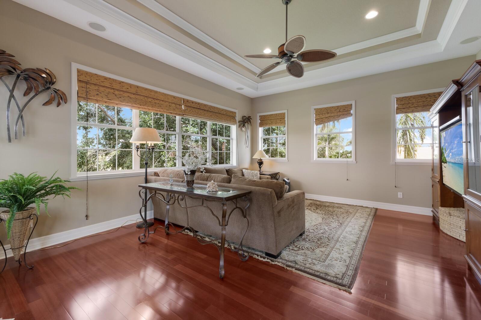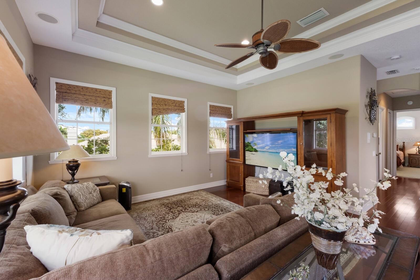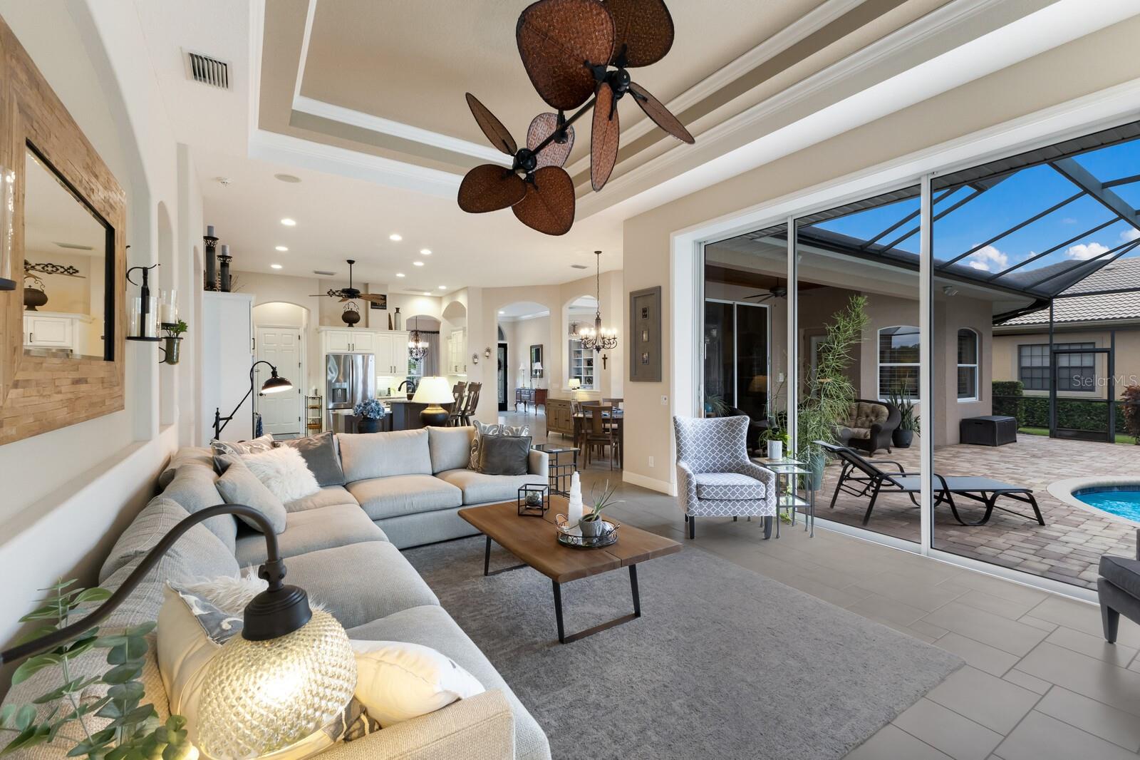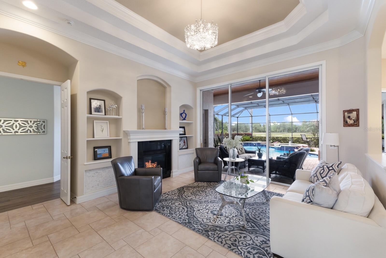 This stunning custom-built Peregrine home is perfectly positioned on one of the most sought-after homesites in Lakewood Ranch Golf & CC! Located on the Arnold Palmer designed Cypress Links #7, it offers breathtaking golf & water views. From the moment you arrive, the impressive curb appeal, circular drive & lush landscape set the stage for the elegance that awaits. Beautiful double glass doors open into a bright & welcoming foyer guiding you to the main living spaces. To the right, you'll find the formal dining area -perfect for hosting elegant dinners & to the left, a private office with French doors, hardwood floors & custom built-ins. Designed for both comfort & sophistication, the living room features a cozy fireplace, tray ceilings & a wall of sliders that draw your eye to the picturesque outdoors. A butler’s pantry with ample storage seamlessly connects the dining room to the newly remodeled kitchen, offering both style & functionality. It features an abundance of solid wood cabinetry, new backsplash, stainless appliances, granite countertops, double ovens, a breakfast bar & a spacious walk-in pantry. It also includes a charming eat-in area with a large aquarium window, offering the perfect spot to enjoy a morning coffee. Off the kitchen, the great room is an inviting space for family gatherings with built-in entertainment wall, tile floors, crown moldings, tray ceilings, architectural niches & sliders that bring the tropical outdoors in! At the rear of the home, a generous sized bonus room (currently used as a home gym) provides endless possibilities & is located next to a convenient pool bath. The luxurious primary suite offers a private retreat with a serene sitting area & windows that frame the amazing views. The recently remodeled ensuite bath is a true spa-like escape, featuring double quartz vanities, a huge walk-in shower & an elegant soaking tub. There are TWO walk-in closets with extensive built-in cabinetry providing ample storage, while glass block windows fill the space with natural light. The home’s 2nd & 3rd bedrooms share a beautifully remodeled Jack-and-Jill bath with dual quartz vanities, seamless glass shower doors & new fixtures. Both bedrooms exude charm with hand-scraped wood floors, built-in window seats & walk-in closets with custom storage solutions. A beautiful hardwood staircase leads to an incredible second-level bonus suite, ideal for an in-law arrangement or private guest retreat. This space features a spacious living area with blackout blinds, a wet bar with fridge, a 4th bedroom & a full bath! A large 2nd floor screened-in balcony offers a peaceful place to sip a glass of wine while overlooking the tranquil natural surroundings. Designed for Florida’s coveted indoor-outdoor lifestyle, this home boasts an expansive outdoor space with 2 covered areas adorned with cypress ceilings, perfect for relaxing or dining al fresco. A stunning heated pool with sun deck & spa create the ultimate backyard oasis. Bonus of a 3-car garage offering ample storage & epoxy flooring. LWR Golf & CC offers Social, Athletic & Golf memberships which are all OPTIONAL. These include FOUR 18-hole championship courses, a state-of-the-art fitness center, a junior Olympic pool, tennis, pickleball, dining, social activities year-round & MORE! Enjoy close proximity to endless shopping, incredible restaurants, vibrant arts, easy access to I-75, top-notch healthcare, A-rated schools & our award-winning area beaches!