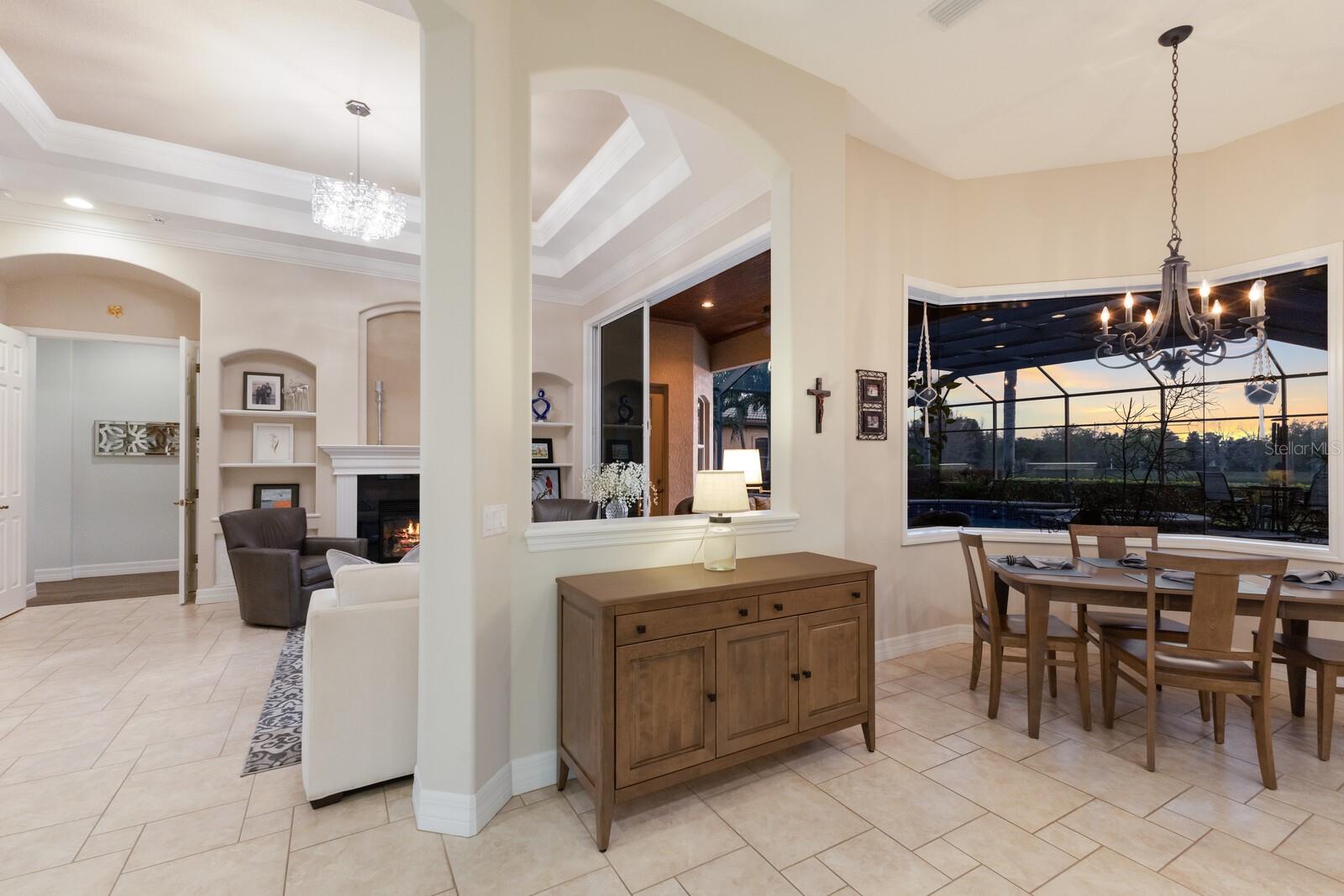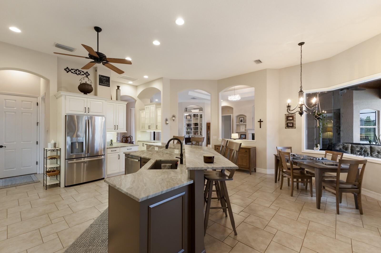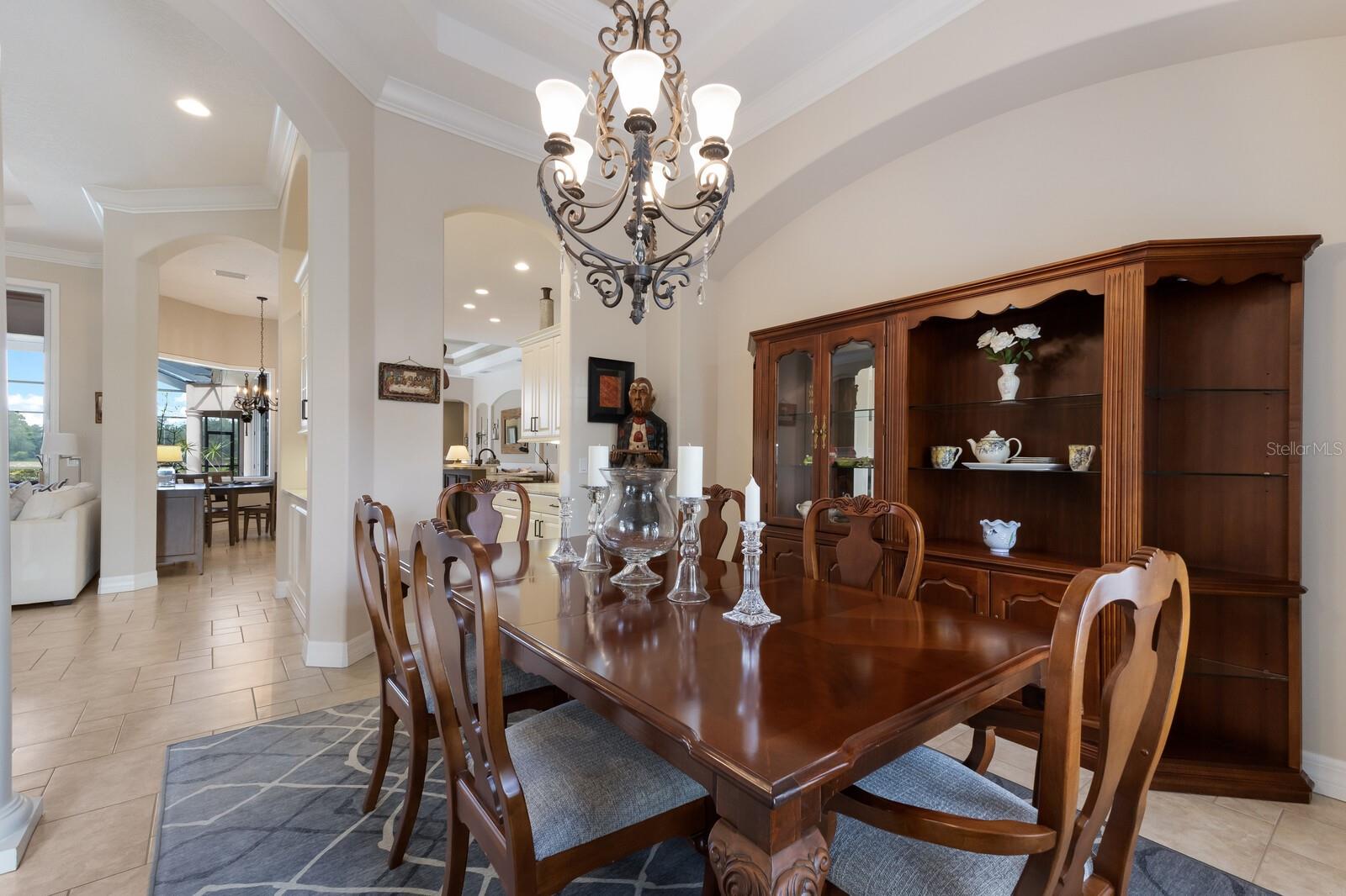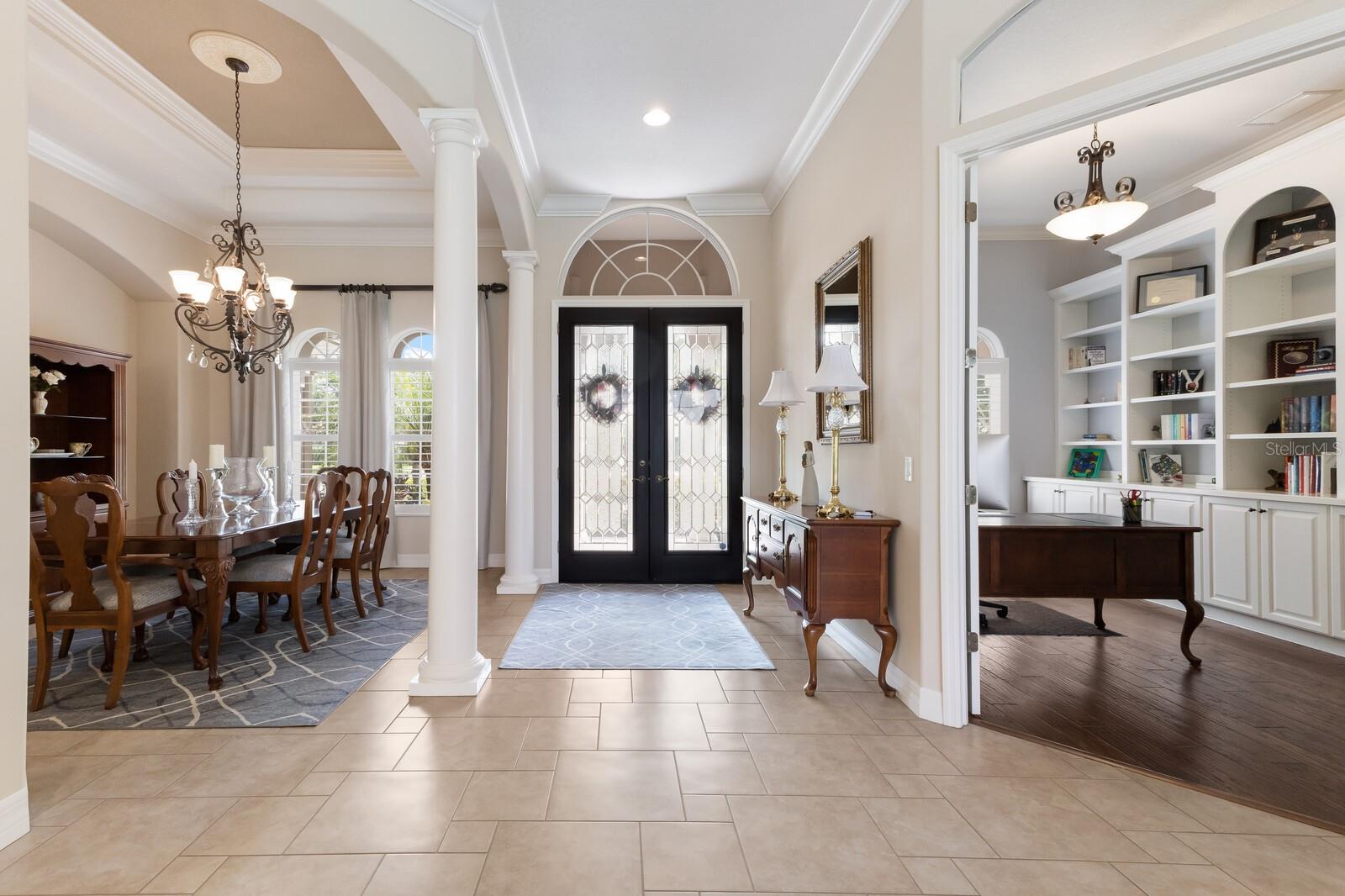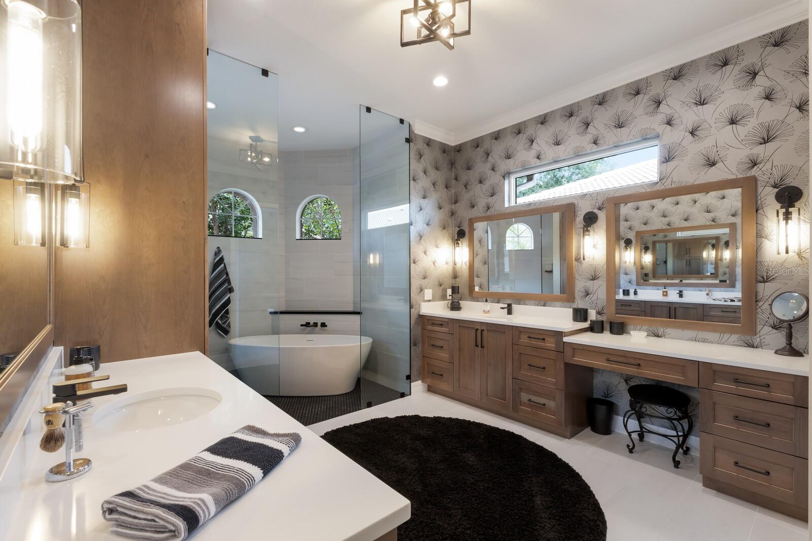 This stunning custom-built Peregrine home is perfectly positioned on one of the most sought-after homesites in Lakewood Ranch Golf & CC! Located on the Arnold Palmer designed Cypress Links #7, it offers breathtaking golf & water views. From the moment you arrive, the impressive curb appeal, circular drive & lush landscape set the stage for the elegance that awaits. Beautiful double glass doors open into a bright & welcoming foyer guiding you to the main living spaces. To the right, you'll find the formal dining area -perfect for hosting elegant dinners & to the left, a private office with French doors, hardwood floors & custom built-ins. Designed for both comfort & sophistication, the living room features a cozy fireplace, tray ceilings & a wall of sliders that draw your eye to the picturesque outdoors. A butler’s pantry with ample storage seamlessly connects the dining room to the newly remodeled kitchen, offering both style & functionality. It features an abundance of solid wood cabinetry, new backsplash, stainless appliances, granite countertops, double ovens, a breakfast bar & a spacious walk-in pantry. It also includes a charming eat-in area with a large aquarium window, offering the perfect spot to enjoy a morning coffee. Off the kitchen, the great room is an inviting space for family gatherings with built-in entertainment wall, tile floors, crown moldings, tray ceilings, architectural niches & sliders that bring the tropical outdoors in! At the rear of the home, a generous sized bonus room (currently used as a home gym) provides endless possibilities & is located next to a convenient pool bath. The luxurious primary suite offers a private retreat with a serene sitting area & windows that frame the amazing views. The recently remodeled ensuite bath is a true spa-like escape, featuring double quartz vanities, a huge walk-in shower & an elegant soaking tub. There are TWO walk-in closets with extensive built-in cabinetry providing ample storage, while glass block windows fill the space with natural light. The home’s 2nd & 3rd bedrooms share a beautifully remodeled Jack-and-Jill bath with dual quartz vanities, seamless glass shower doors & new fixtures. Both bedrooms exude charm with hand-scraped wood floors, built-in window seats & walk-in closets with custom storage solutions. A beautiful hardwood staircase leads to an incredible second-level bonus suite, ideal for an in-law arrangement or private guest retreat. This space features a spacious living area with blackout blinds, a wet bar with fridge, a 4th bedroom & a full bath! A large 2nd floor screened-in balcony offers a peaceful place to sip a glass of wine while overlooking the tranquil natural surroundings. Designed for Florida’s coveted indoor-outdoor lifestyle, this home boasts an expansive outdoor space with 2 covered areas adorned with cypress ceilings, perfect for relaxing or dining al fresco. A stunning heated pool with sun deck & spa create the ultimate backyard oasis. Bonus of a 3-car garage offering ample storage & epoxy flooring. LWR Golf & CC offers Social, Athletic & Golf memberships which are all OPTIONAL. These include FOUR 18-hole championship courses, a state-of-the-art fitness center, a junior Olympic pool, tennis, pickleball, dining, social activities year-round & MORE! Enjoy close proximity to endless shopping, incredible restaurants, vibrant arts, easy access to I-75, top-notch healthcare, A-rated schools & our award-winning area beaches!