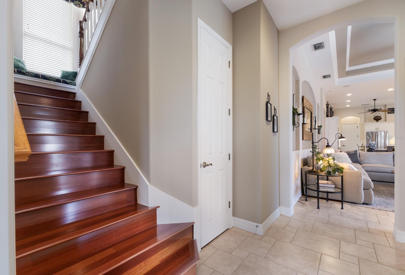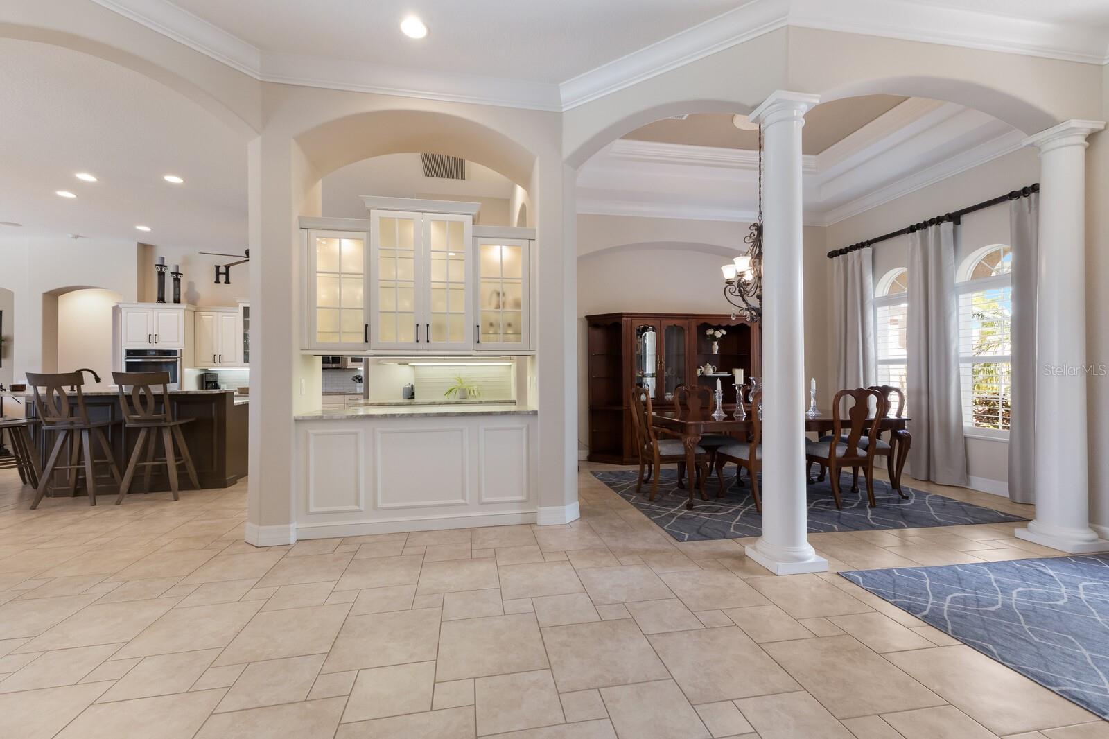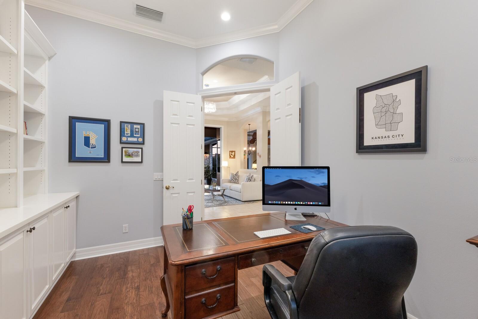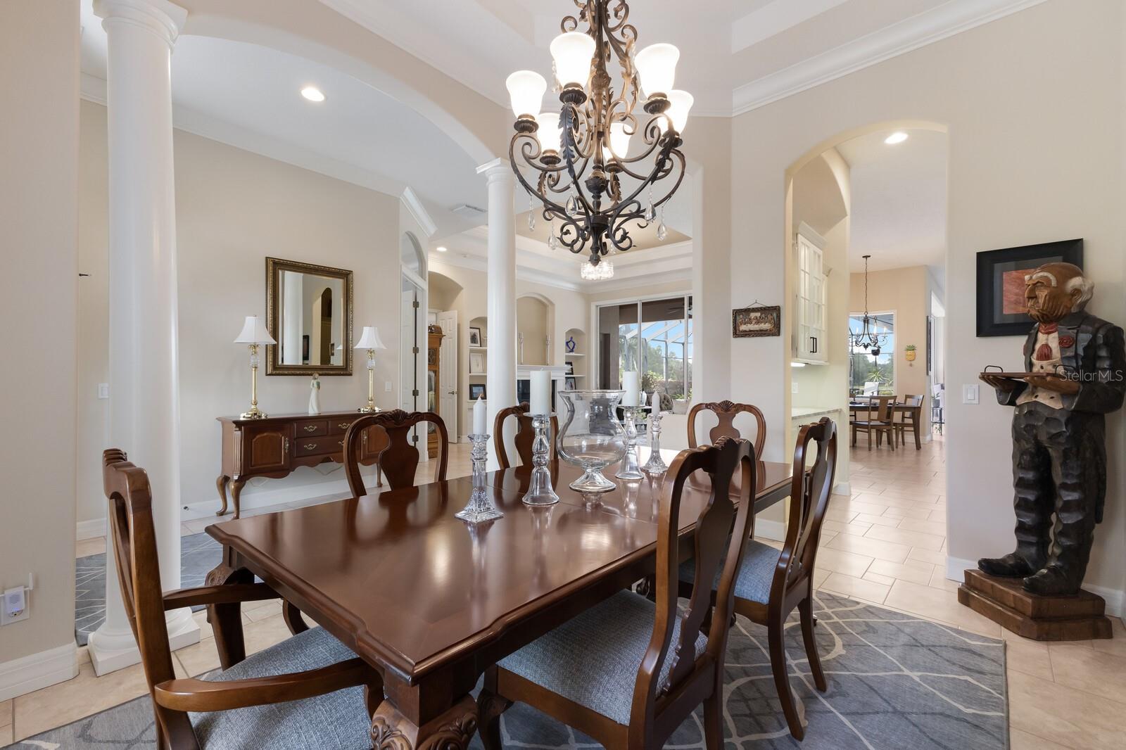 This stunning custom-built Peregrine home is perfectly positioned on one of the most sought-after homesites in Lakewood Ranch Golf & CC! Located on the Arnold Palmer designed Cypress Links #7, it offers breathtaking golf & water views. From the moment you arrive, the impressive curb appeal, circular drive & lush landscape set the stage for the elegance that awaits. Beautiful double glass doors open into a bright & welcoming foyer guiding you to the main living spaces. To the right, you'll find the formal dining area -perfect for hosting elegant dinners & to the left, a private office with French doors, hardwood floors & custom built-ins. Designed for both comfort & sophistication, the living room features a cozy fireplace, tray ceilings & a wall of sliders that draw your eye to the picturesque outdoors. A butler’s pantry with ample storage seamlessly connects the dining room to the newly remodeled kitchen, offering both style & functionality. It features an abundance of solid wood cabinetry, new backsplash, stainless appliances, granite countertops, double ovens, a breakfast bar & a spacious walk-in pantry. It also includes a charming eat-in area with a large aquarium window, offering the perfect spot to enjoy a morning coffee. Off the kitchen, the great room is an inviting space for family gatherings with built-in entertainment wall, tile floors, crown moldings, tray ceilings, architectural niches & sliders that bring the tropical outdoors in! At the rear of the home, a generous sized bonus room (currently used as a home gym) provides endless possibilities & is located next to a convenient pool bath. The luxurious primary suite offers a private retreat with a serene sitting area & windows that frame the amazing views. The recently remodeled ensuite bath is a true spa-like escape, featuring double quartz vanities, a huge walk-in shower & an elegant soaking tub. There are TWO walk-in closets with extensive built-in cabinetry providing ample storage, while glass block windows fill the space with natural light. The home’s 2nd & 3rd bedrooms share a beautifully remodeled Jack-and-Jill bath with dual quartz vanities, seamless glass shower doors & new fixtures. Both bedrooms exude charm with hand-scraped wood floors, built-in window seats & walk-in closets with custom storage solutions. A beautiful hardwood staircase leads to an incredible second-level bonus suite, ideal for an in-law arrangement or private guest retreat. This space features a spacious living area with blackout blinds, a wet bar with fridge, a 4th bedroom & a full bath! A large 2nd floor screened-in balcony offers a peaceful place to sip a glass of wine while overlooking the tranquil natural surroundings. Designed for Florida’s coveted indoor-outdoor lifestyle, this home boasts an expansive outdoor space with 2 covered areas adorned with cypress ceilings, perfect for relaxing or dining al fresco. A stunning heated pool with sun deck & spa create the ultimate backyard oasis. Bonus of a 3-car garage offering ample storage & epoxy flooring. LWR Golf & CC offers Social, Athletic & Golf memberships which are all OPTIONAL. These include FOUR 18-hole championship courses, a state-of-the-art fitness center, a junior Olympic pool, tennis, pickleball, dining, social activities year-round & MORE! Enjoy close proximity to endless shopping, incredible restaurants, vibrant arts, easy access to I-75, top-notch healthcare, A-rated schools & our award-winning area beaches!