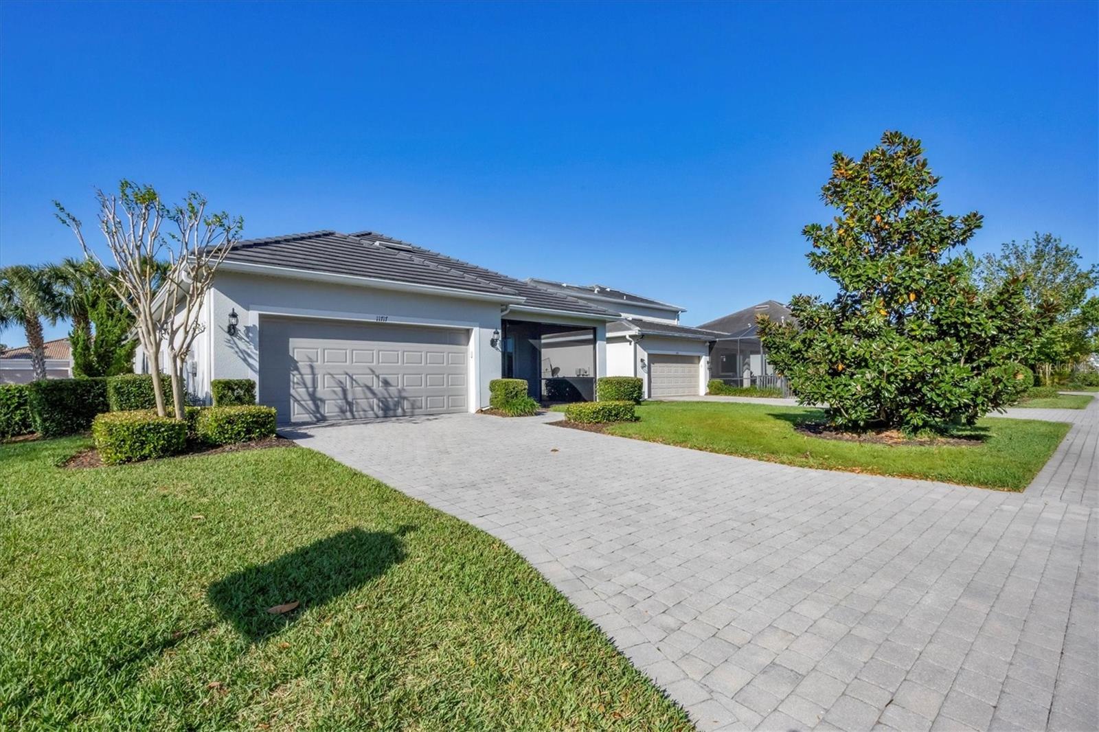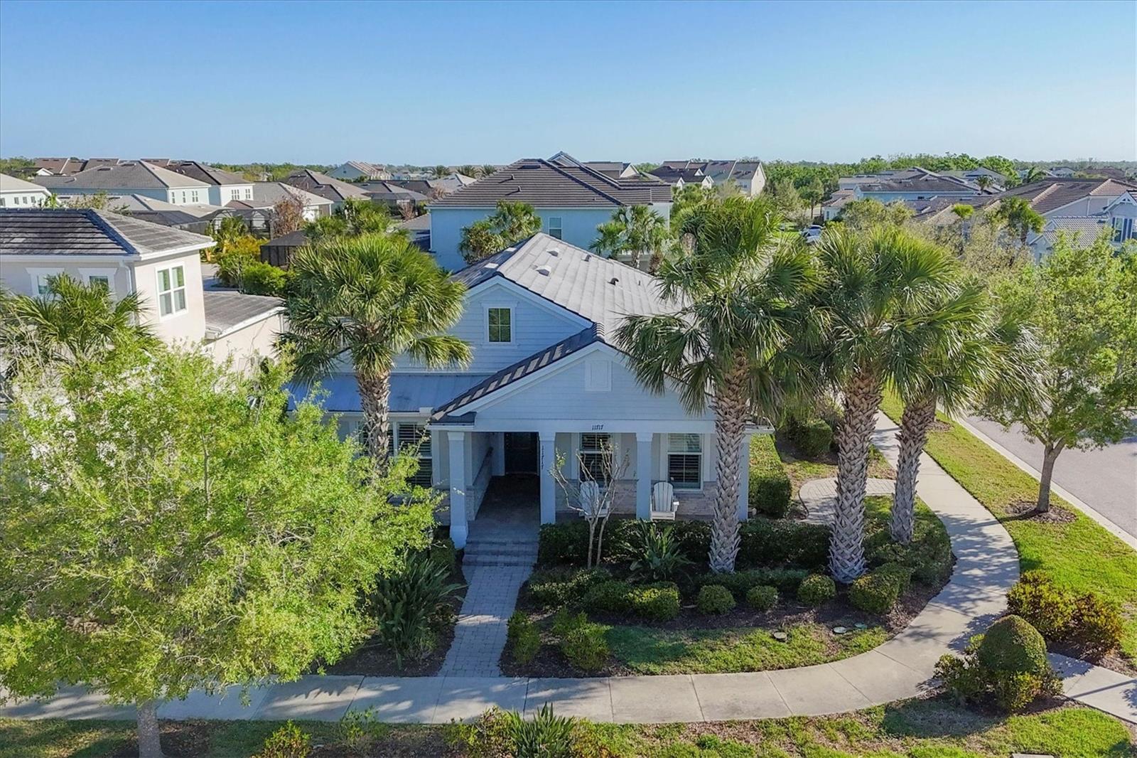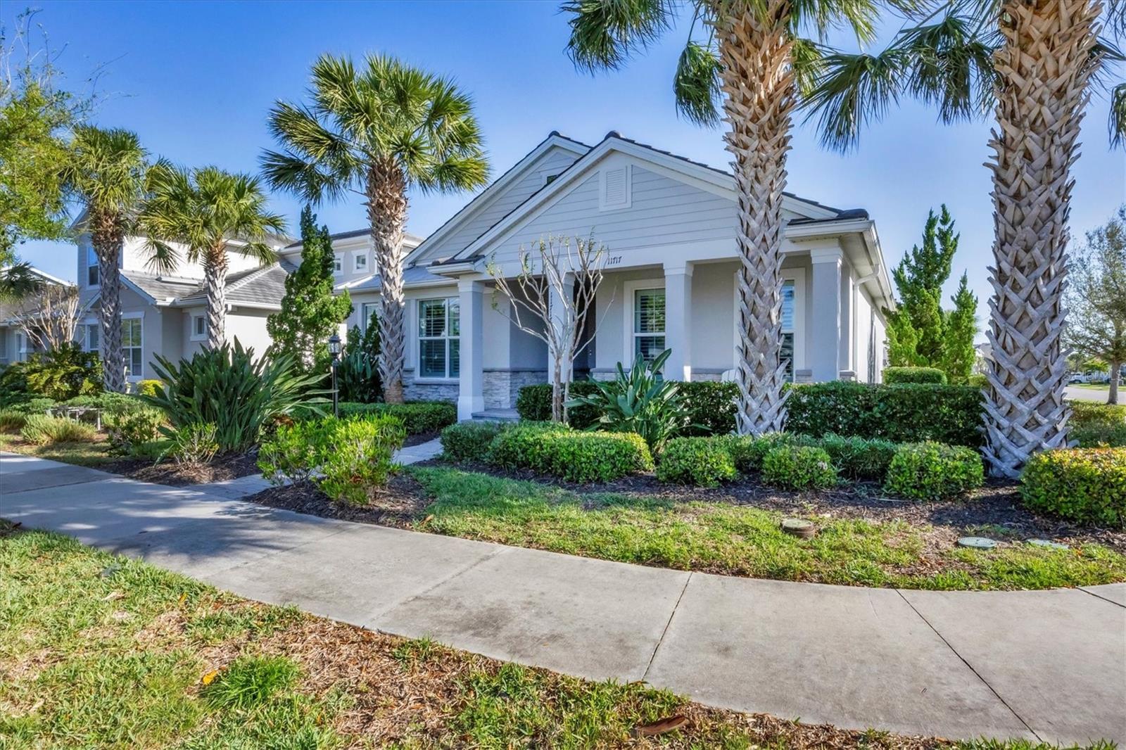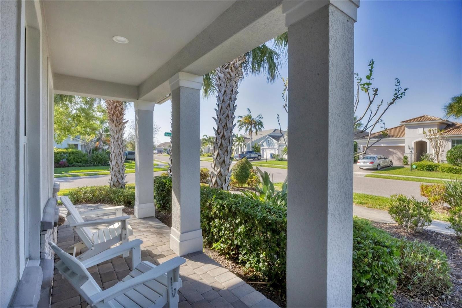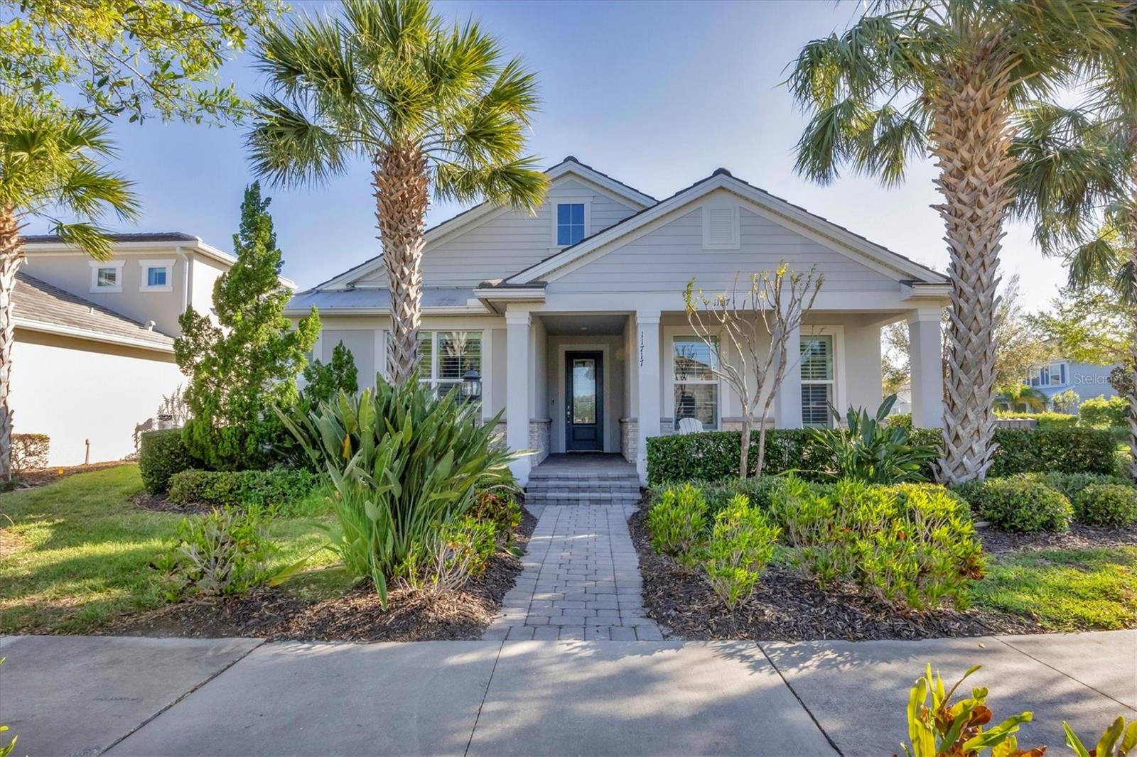 One or more photo(s) has been virtually staged. WELCOME TO LUXURY LIVING IN THE HIGHLY DESIRABLE MALLORY PARK neighborhood of LAKEWOOD RANCH! This BEAUTIFULLY DESIGNED FORMER MODEL HOME was UPDATED and REFINISHED by the BUILDER in 2022 with UPSCALE FINISHES and includes IMPACT GLASS WINDOWS and DOORS throughout. Surrounded by the beauty of tropical landscaping on a corner homesite, this welcoming Craftsman style residence features a delightful front porch, paver walkway and paver ramp to the sidewalk providing additional accessibility. As you step inside this redesigned open concept home, you'll be drawn to the expansive great room, which seamlessly blends the dining and kitchen areas. Perfect for the relaxed Florida lifestyle, this space is ideal for hosting gatherings with family and friends. The exquisite interior finishes include porcelain tile floors, quartz countertops, 8-foot doors, upscale lights and fixtures and NEWLY ADDED PLANTATION SHUTTERS and versatile SmartDrape on the sliders providing easy indoor-outdoor living from the great room to your paver lanai and yard to enjoy stunning sunsets. The chef-inspired kitchen boasts Shaker-style cabinets, quartz counters, a tile backsplash, under-cabinet accent lighting, and a single-level cabinet-wrapped island with breakfast bar for casual dining. It also features KitchenAid stainless steel 36" gas cooktop, vented hood, built-in convection oven and microwave, dishwasher, French door refrigerator, single bowl Silgranit sink, Culligan RO drinking water system, and an optimal walk-in pantry. A built-in desk alcove just off the kitchen is ideal as a computer workspace, drop zone or all purpose station. Retreat to the owner's suite with two roomy walk-in closets and an ensuite bath featuring an expansive tiled shower with a built-in seat, dual bowl quartz top vanity, linen closet, and a private water closet. The split plan design features two additional spacious bedrooms and bath, ideal for family and guests. Interior laundry room includes Whirlpool washer, dryer, storage shelves and adjacent closet. The rear-load garage with a paver driveway and 4-foot extension includes an additional refrigerator, utility sink, attic access drop-down stairs, a 240-volt EV charger, surge protector, an epoxy paint floor, and convenient side access door. Additional features include a Culligan Water Softener, Ring doorbell and alarm, whole-house gutters, a 2022 installed tankless hot water heater and a Lennox HVAC system. Enjoy maintenance-free landscaping and a short stroll to the resort style community amenities, including a resident clubhouse with fitness and gathering room, a heated pool and spa, sports courts, playground and entry from Mallory Park to the highly-rated elementary and middle schools and adjacent Bob Gardner Park. Live in the #1 multi-generational community in the country, where you will enjoy recreational pursuits, boutique shopping and dining, a farmer's market, and an abundance of events at Lakewood Main Street and Waterside Place. You're also just minutes from the UTC Shopping Mall, Nathan Benderson Rowing Park, and I-75, with close proximity to downtown Sarasota cultural venues, diverse cuisine, and our gorgeous Gulf Coast beaches.