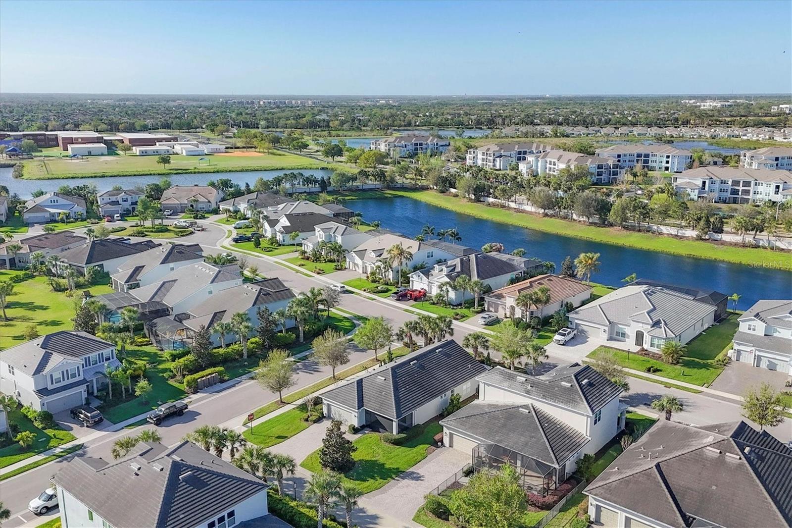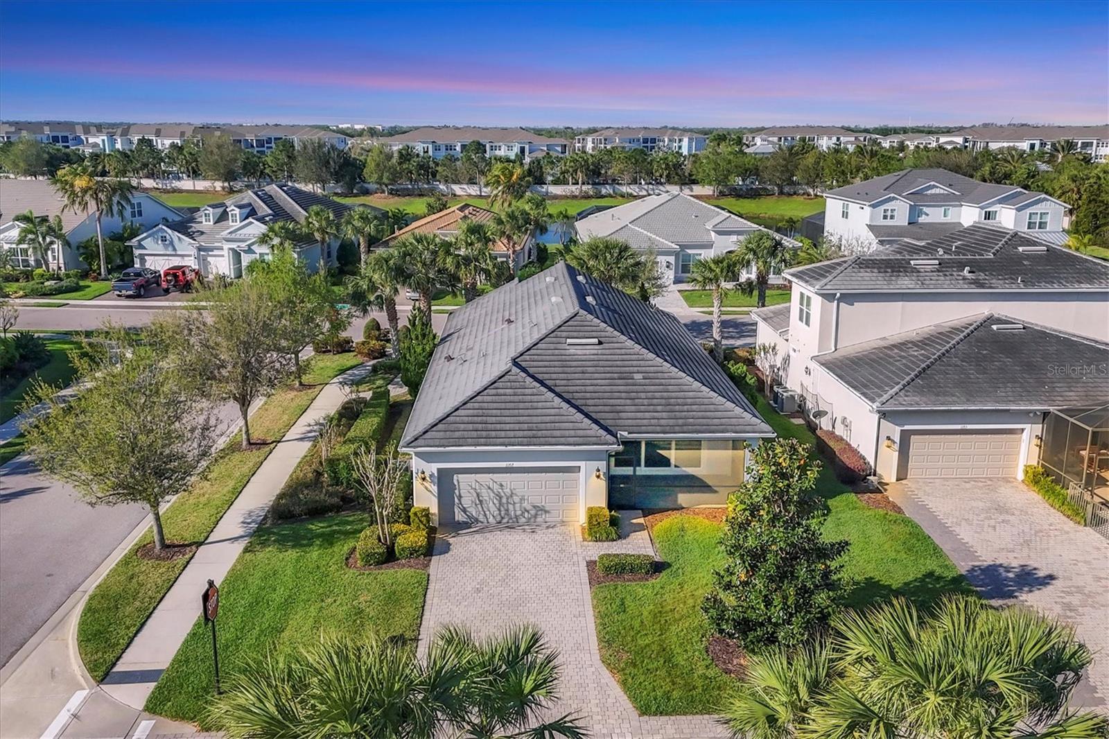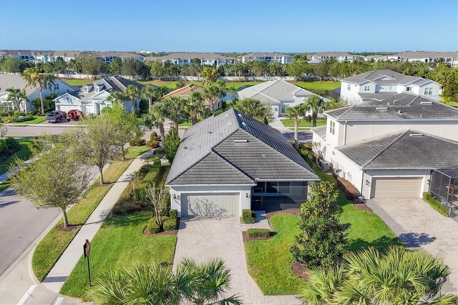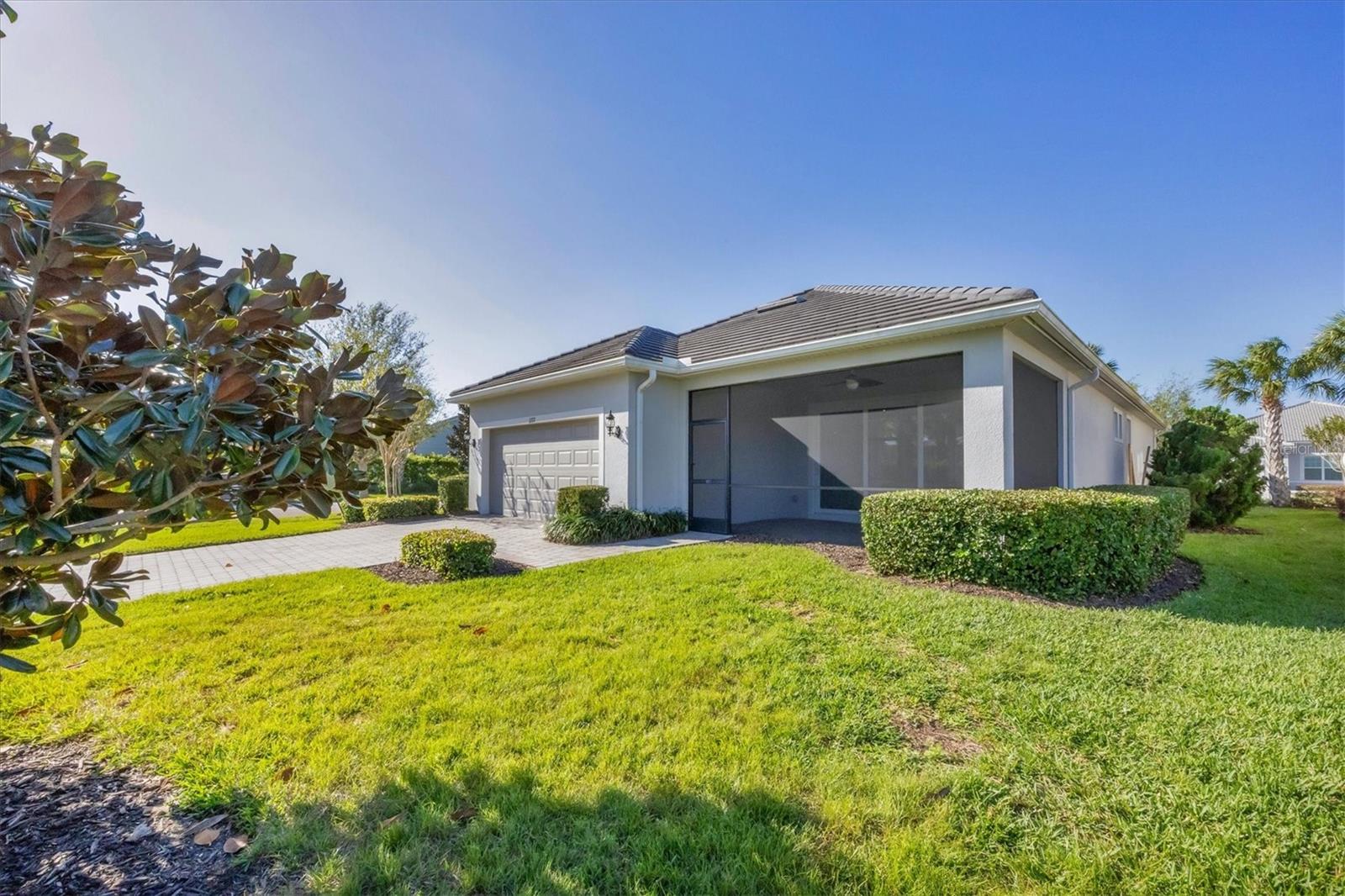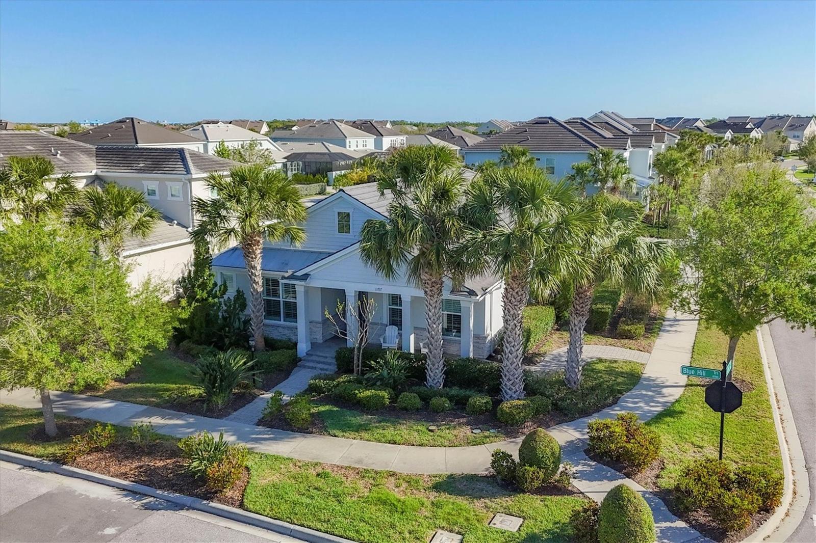 One or more photo(s) has been virtually staged. WELCOME TO LUXURY LIVING IN THE HIGHLY DESIRABLE MALLORY PARK neighborhood of LAKEWOOD RANCH! This BEAUTIFULLY DESIGNED FORMER MODEL HOME was UPDATED and REFINISHED by the BUILDER in 2022 with UPSCALE FINISHES and includes IMPACT GLASS WINDOWS and DOORS throughout. Surrounded by the beauty of tropical landscaping on a corner homesite, this welcoming Craftsman style residence features a delightful front porch, paver walkway and paver ramp to the sidewalk providing additional accessibility. As you step inside this redesigned open concept home, you'll be drawn to the expansive great room, which seamlessly blends the dining and kitchen areas. Perfect for the relaxed Florida lifestyle, this space is ideal for hosting gatherings with family and friends. The exquisite interior finishes include porcelain tile floors, quartz countertops, 8-foot doors, upscale lights and fixtures and NEWLY ADDED PLANTATION SHUTTERS and versatile SmartDrape on the sliders providing easy indoor-outdoor living from the great room to your paver lanai and yard to enjoy stunning sunsets. The chef-inspired kitchen boasts Shaker-style cabinets, quartz counters, a tile backsplash, under-cabinet accent lighting, and a single-level cabinet-wrapped island with breakfast bar for casual dining. It also features KitchenAid stainless steel 36" gas cooktop, vented hood, built-in convection oven and microwave, dishwasher, French door refrigerator, single bowl Silgranit sink, Culligan RO drinking water system, and an optimal walk-in pantry. A built-in desk alcove just off the kitchen is ideal as a computer workspace, drop zone or all purpose station. Retreat to the owner's suite with two roomy walk-in closets and an ensuite bath featuring an expansive tiled shower with a built-in seat, dual bowl quartz top vanity, linen closet, and a private water closet. The split plan design features two additional spacious bedrooms and bath, ideal for family and guests. Interior laundry room includes Whirlpool washer, dryer, storage shelves and adjacent closet. The rear-load garage with a paver driveway and 4-foot extension includes an additional refrigerator, utility sink, attic access drop-down stairs, a 240-volt EV charger, surge protector, an epoxy paint floor, and convenient side access door. Additional features include a Culligan Water Softener, Ring doorbell and alarm, whole-house gutters, a 2022 installed tankless hot water heater and a Lennox HVAC system. Enjoy maintenance-free landscaping and a short stroll to the resort style community amenities, including a resident clubhouse with fitness and gathering room, a heated pool and spa, sports courts, playground and entry from Mallory Park to the highly-rated elementary and middle schools and adjacent Bob Gardner Park. Live in the #1 multi-generational community in the country, where you will enjoy recreational pursuits, boutique shopping and dining, a farmer's market, and an abundance of events at Lakewood Main Street and Waterside Place. You're also just minutes from the UTC Shopping Mall, Nathan Benderson Rowing Park, and I-75, with close proximity to downtown Sarasota cultural venues, diverse cuisine, and our gorgeous Gulf Coast beaches.