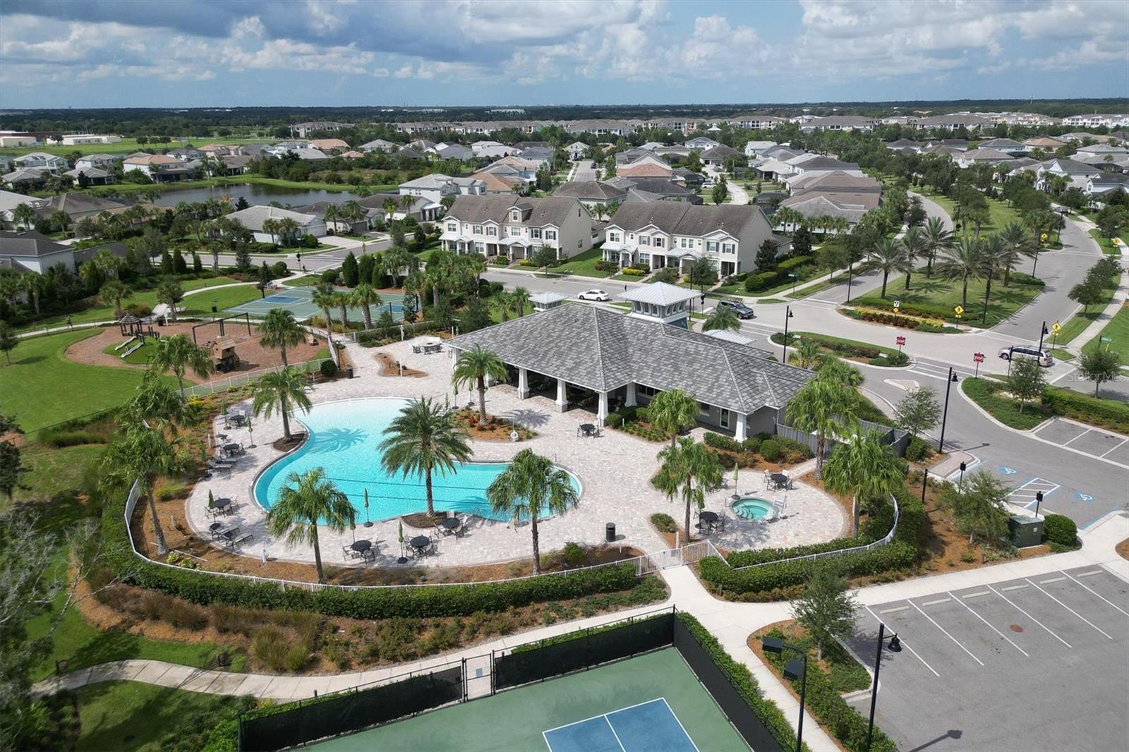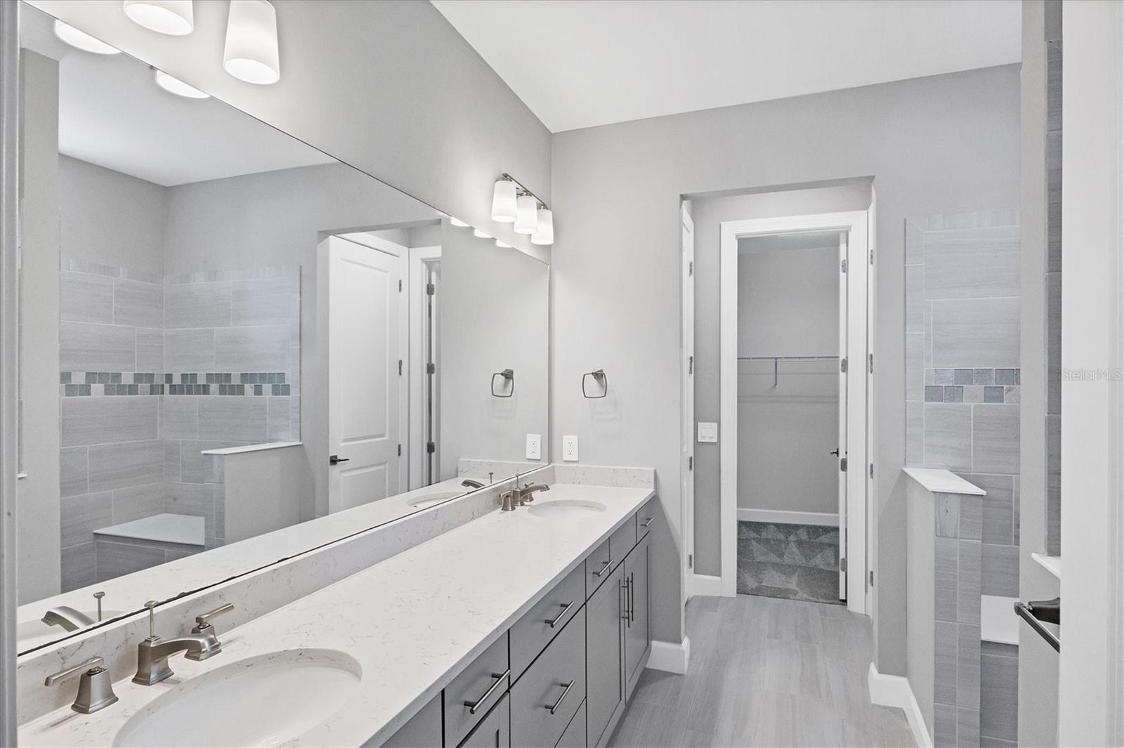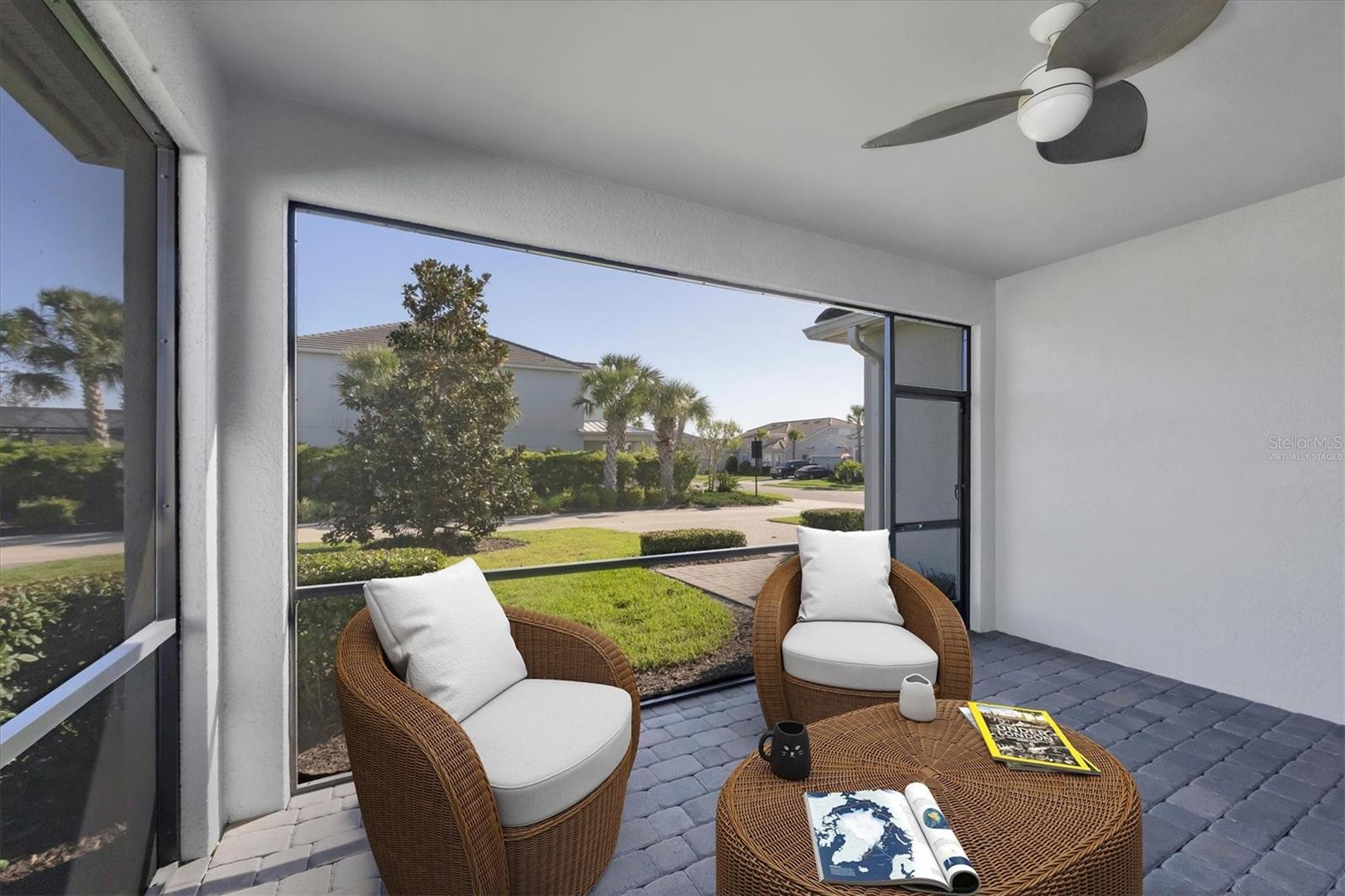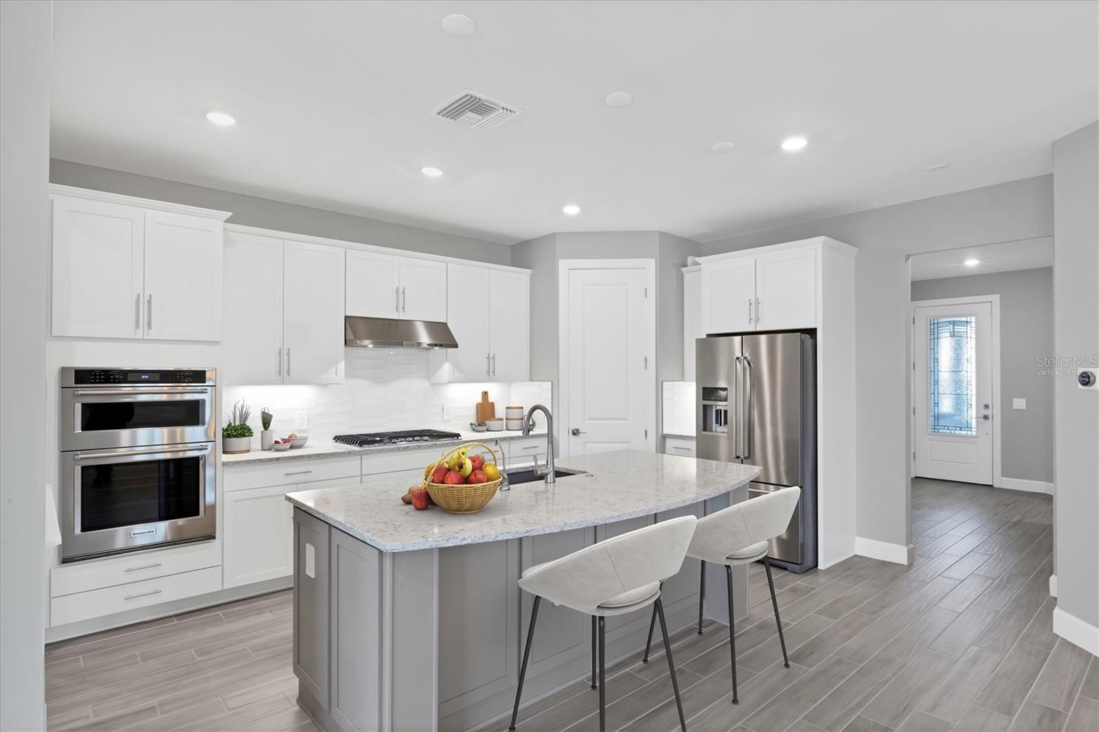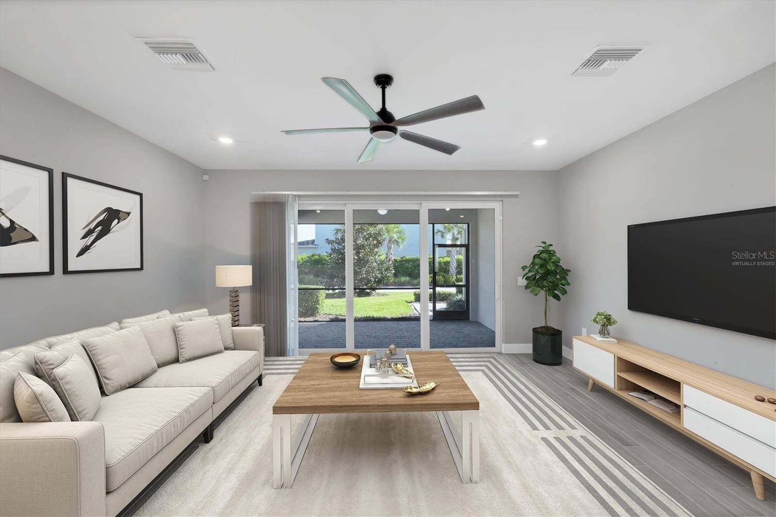 One or more photo(s) has been virtually staged. WELCOME TO LUXURY LIVING IN THE HIGHLY DESIRABLE MALLORY PARK neighborhood of LAKEWOOD RANCH! This BEAUTIFULLY DESIGNED FORMER MODEL HOME was UPDATED and REFINISHED by the BUILDER in 2022 with UPSCALE FINISHES and includes IMPACT GLASS WINDOWS and DOORS throughout. Surrounded by the beauty of tropical landscaping on a corner homesite, this welcoming Craftsman style residence features a delightful front porch, paver walkway and paver ramp to the sidewalk providing additional accessibility. As you step inside this redesigned open concept home, you'll be drawn to the expansive great room, which seamlessly blends the dining and kitchen areas. Perfect for the relaxed Florida lifestyle, this space is ideal for hosting gatherings with family and friends. The exquisite interior finishes include porcelain tile floors, quartz countertops, 8-foot doors, upscale lights and fixtures and NEWLY ADDED PLANTATION SHUTTERS and versatile SmartDrape on the sliders providing easy indoor-outdoor living from the great room to your paver lanai and yard to enjoy stunning sunsets. The chef-inspired kitchen boasts Shaker-style cabinets, quartz counters, a tile backsplash, under-cabinet accent lighting, and a single-level cabinet-wrapped island with breakfast bar for casual dining. It also features KitchenAid stainless steel 36" gas cooktop, vented hood, built-in convection oven and microwave, dishwasher, French door refrigerator, single bowl Silgranit sink, Culligan RO drinking water system, and an optimal walk-in pantry. A built-in desk alcove just off the kitchen is ideal as a computer workspace, drop zone or all purpose station. Retreat to the owner's suite with two roomy walk-in closets and an ensuite bath featuring an expansive tiled shower with a built-in seat, dual bowl quartz top vanity, linen closet, and a private water closet. The split plan design features two additional spacious bedrooms and bath, ideal for family and guests. Interior laundry room includes Whirlpool washer, dryer, storage shelves and adjacent closet. The rear-load garage with a paver driveway and 4-foot extension includes an additional refrigerator, utility sink, attic access drop-down stairs, a 240-volt EV charger, surge protector, an epoxy paint floor, and convenient side access door. Additional features include a Culligan Water Softener, Ring doorbell and alarm, whole-house gutters, a 2022 installed tankless hot water heater and a Lennox HVAC system. Enjoy maintenance-free landscaping and a short stroll to the resort style community amenities, including a resident clubhouse with fitness and gathering room, a heated pool and spa, sports courts, playground and entry from Mallory Park to the highly-rated elementary and middle schools and adjacent Bob Gardner Park. Live in the #1 multi-generational community in the country, where you will enjoy recreational pursuits, boutique shopping and dining, a farmer's market, and an abundance of events at Lakewood Main Street and Waterside Place. You're also just minutes from the UTC Shopping Mall, Nathan Benderson Rowing Park, and I-75, with close proximity to downtown Sarasota cultural venues, diverse cuisine, and our gorgeous Gulf Coast beaches.