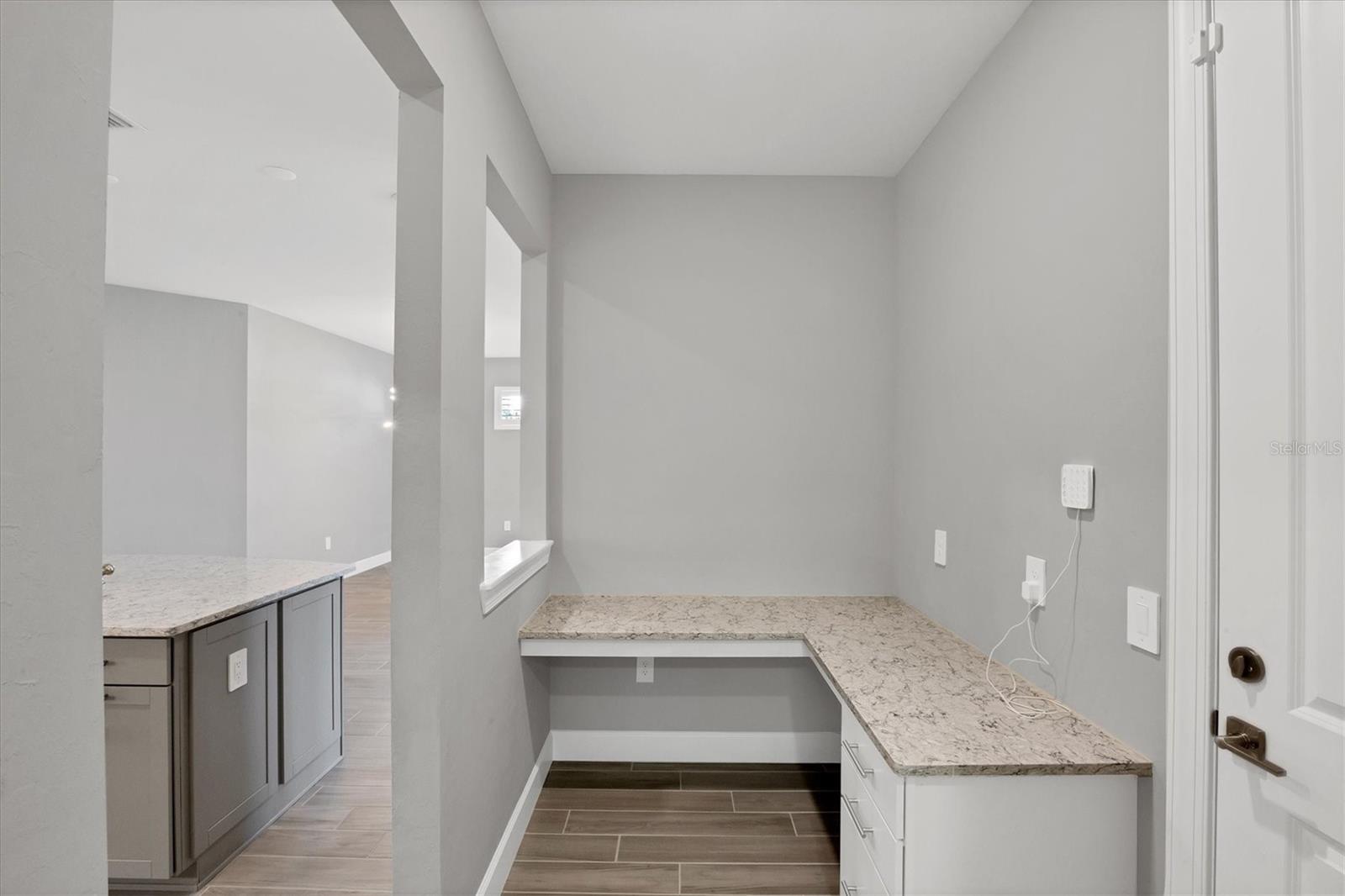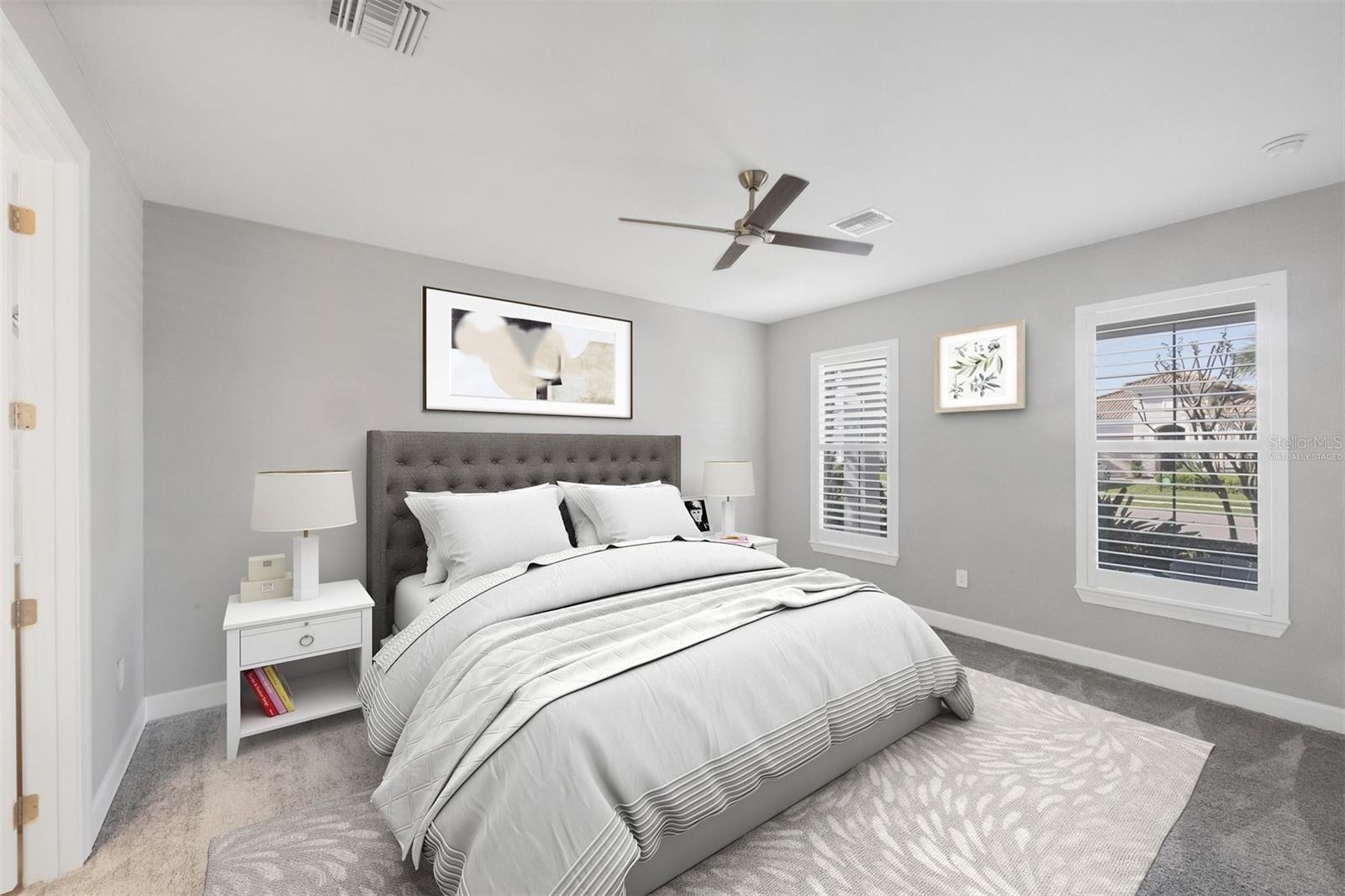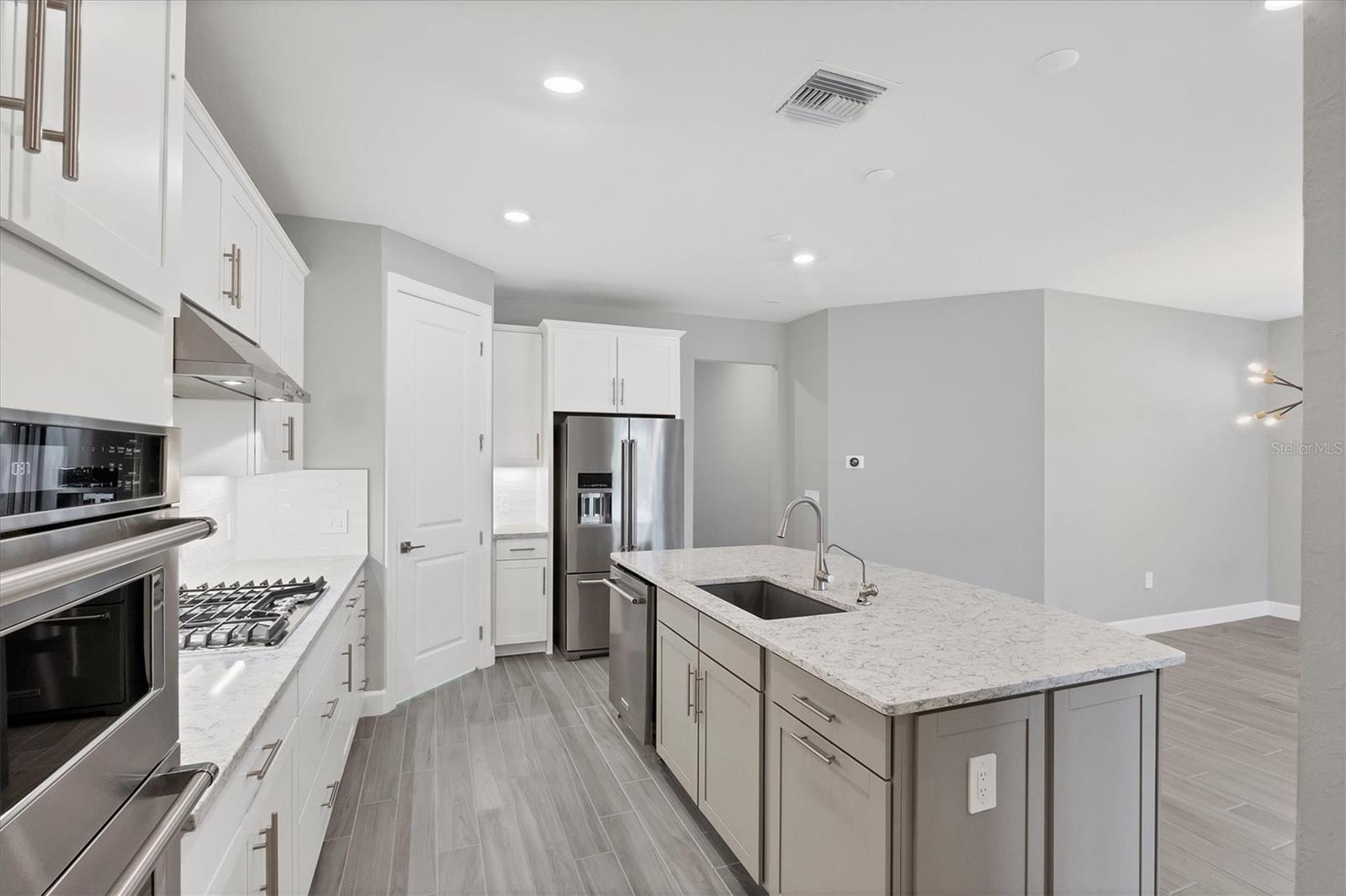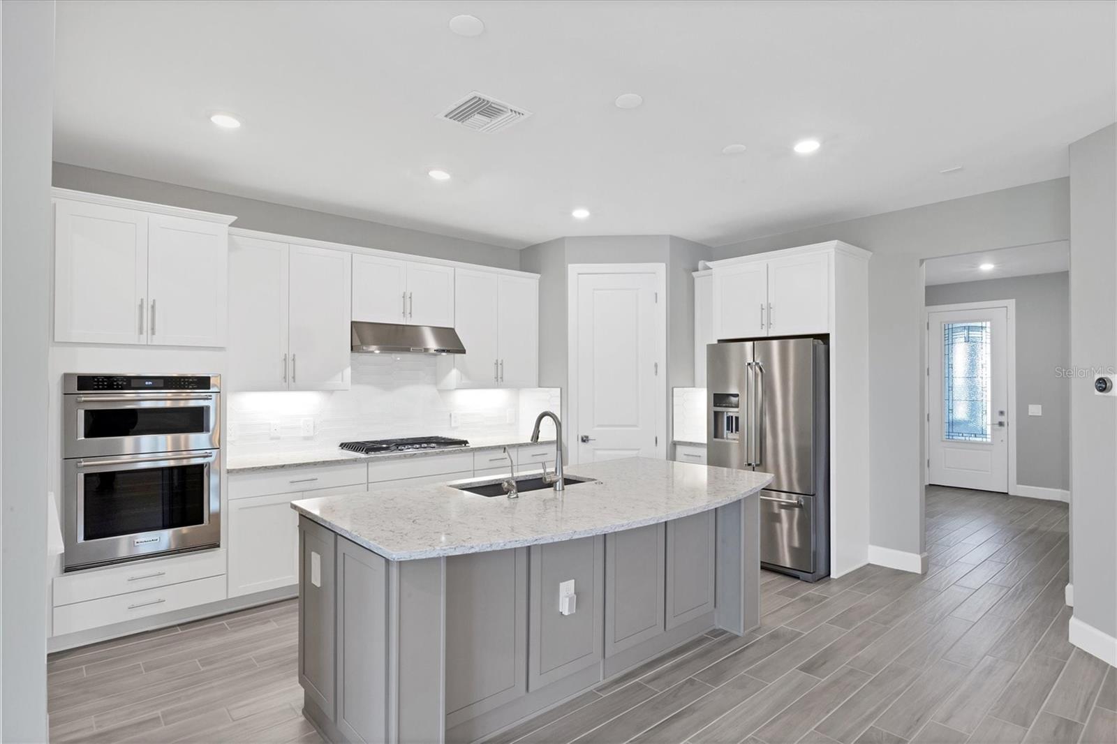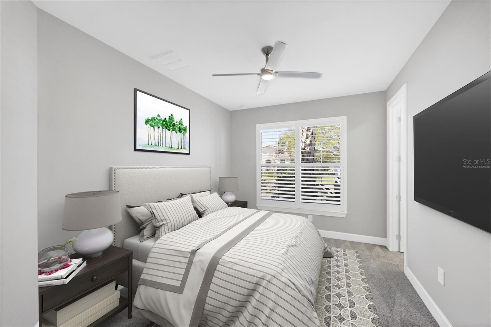 One or more photo(s) has been virtually staged. WELCOME TO LUXURY LIVING IN THE HIGHLY DESIRABLE MALLORY PARK neighborhood of LAKEWOOD RANCH! This BEAUTIFULLY DESIGNED FORMER MODEL HOME was UPDATED and REFINISHED by the BUILDER in 2022 with UPSCALE FINISHES and includes IMPACT GLASS WINDOWS and DOORS throughout. Surrounded by the beauty of tropical landscaping on a corner homesite, this welcoming Craftsman style residence features a delightful front porch, paver walkway and paver ramp to the sidewalk providing additional accessibility. As you step inside this redesigned open concept home, you'll be drawn to the expansive great room, which seamlessly blends the dining and kitchen areas. Perfect for the relaxed Florida lifestyle, this space is ideal for hosting gatherings with family and friends. The exquisite interior finishes include porcelain tile floors, quartz countertops, 8-foot doors, upscale lights and fixtures and NEWLY ADDED PLANTATION SHUTTERS and versatile SmartDrape on the sliders providing easy indoor-outdoor living from the great room to your paver lanai and yard to enjoy stunning sunsets. The chef-inspired kitchen boasts Shaker-style cabinets, quartz counters, a tile backsplash, under-cabinet accent lighting, and a single-level cabinet-wrapped island with breakfast bar for casual dining. It also features KitchenAid stainless steel 36" gas cooktop, vented hood, built-in convection oven and microwave, dishwasher, French door refrigerator, single bowl Silgranit sink, Culligan RO drinking water system, and an optimal walk-in pantry. A built-in desk alcove just off the kitchen is ideal as a computer workspace, drop zone or all purpose station. Retreat to the owner's suite with two roomy walk-in closets and an ensuite bath featuring an expansive tiled shower with a built-in seat, dual bowl quartz top vanity, linen closet, and a private water closet. The split plan design features two additional spacious bedrooms and bath, ideal for family and guests. Interior laundry room includes Whirlpool washer, dryer, storage shelves and adjacent closet. The rear-load garage with a paver driveway and 4-foot extension includes an additional refrigerator, utility sink, attic access drop-down stairs, a 240-volt EV charger, surge protector, an epoxy paint floor, and convenient side access door. Additional features include a Culligan Water Softener, Ring doorbell and alarm, whole-house gutters, a 2022 installed tankless hot water heater and a Lennox HVAC system. Enjoy maintenance-free landscaping and a short stroll to the resort style community amenities, including a resident clubhouse with fitness and gathering room, a heated pool and spa, sports courts, playground and entry from Mallory Park to the highly-rated elementary and middle schools and adjacent Bob Gardner Park. Live in the #1 multi-generational community in the country, where you will enjoy recreational pursuits, boutique shopping and dining, a farmer's market, and an abundance of events at Lakewood Main Street and Waterside Place. You're also just minutes from the UTC Shopping Mall, Nathan Benderson Rowing Park, and I-75, with close proximity to downtown Sarasota cultural venues, diverse cuisine, and our gorgeous Gulf Coast beaches.