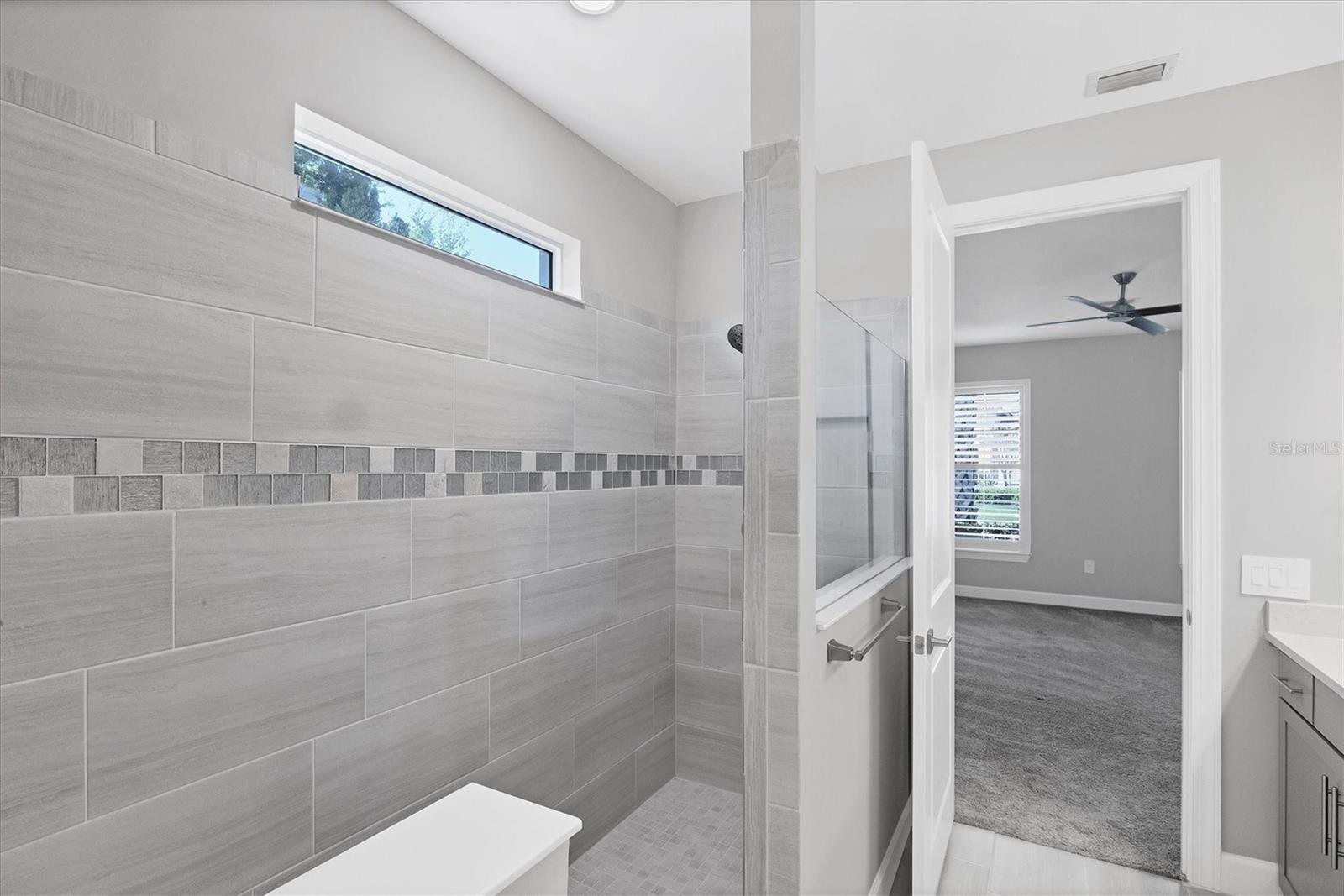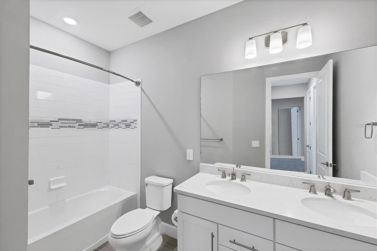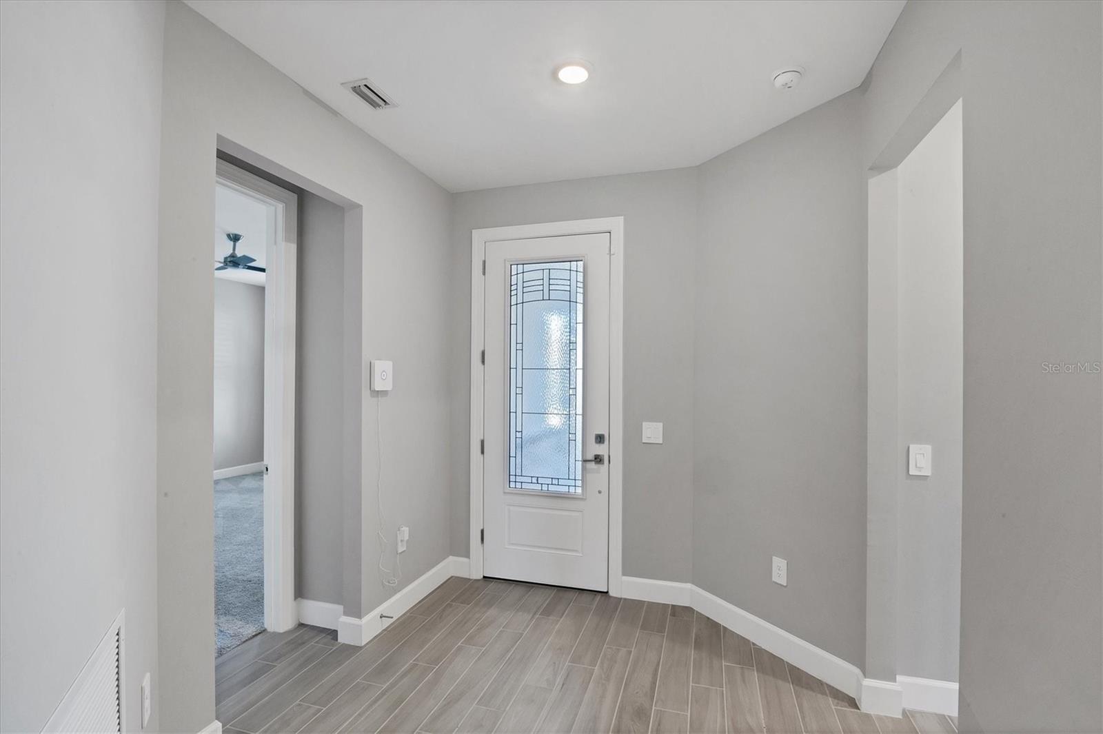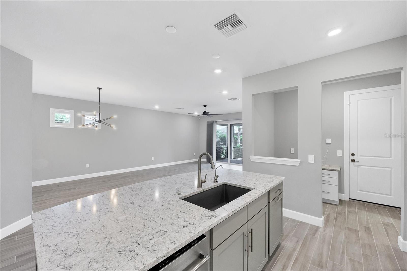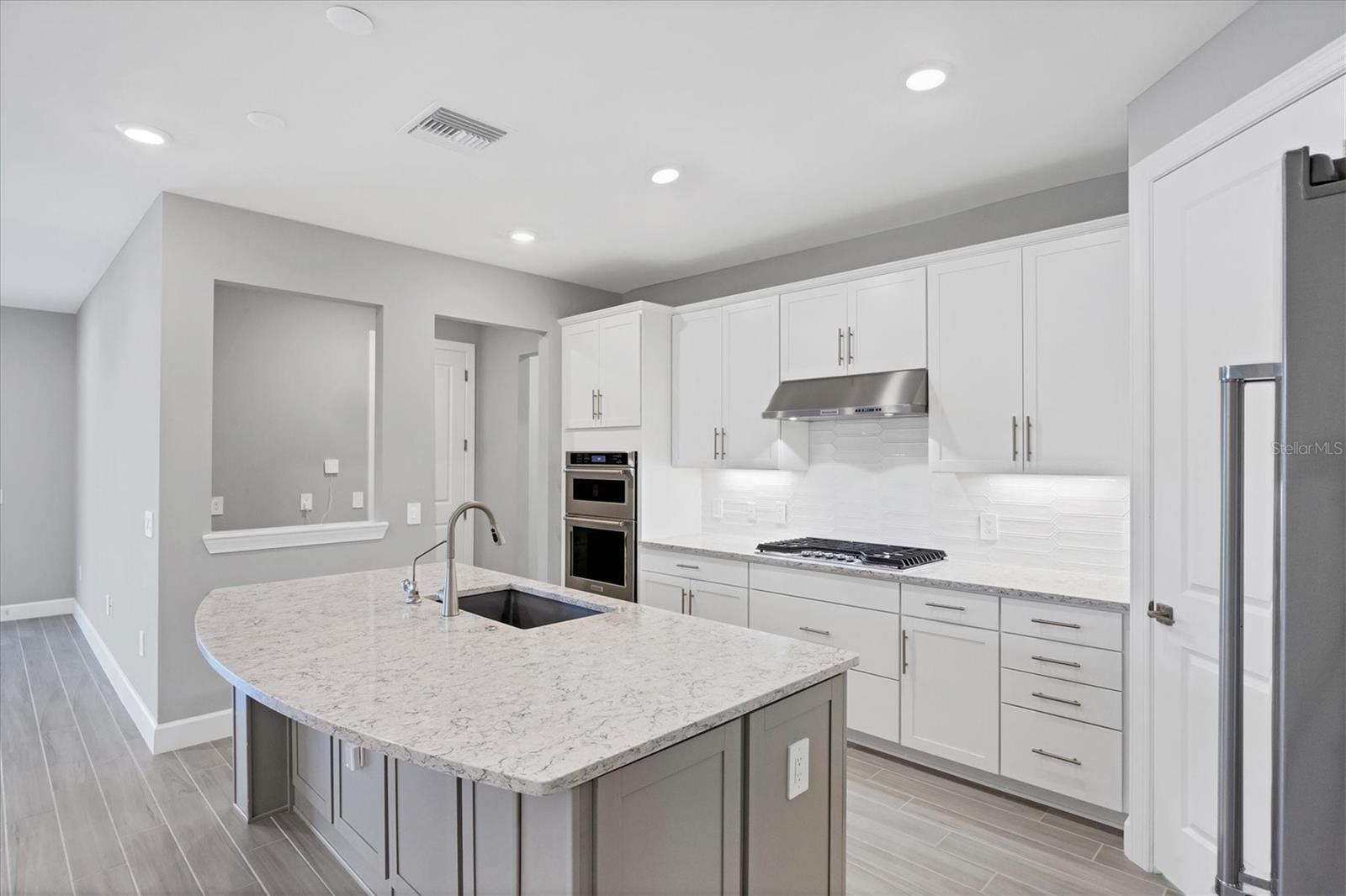 One or more photo(s) has been virtually staged. WELCOME TO LUXURY LIVING IN THE HIGHLY DESIRABLE MALLORY PARK neighborhood of LAKEWOOD RANCH! This BEAUTIFULLY DESIGNED FORMER MODEL HOME was UPDATED and REFINISHED by the BUILDER in 2022 with UPSCALE FINISHES and includes IMPACT GLASS WINDOWS and DOORS throughout. Surrounded by the beauty of tropical landscaping on a corner homesite, this welcoming Craftsman style residence features a delightful front porch, paver walkway and paver ramp to the sidewalk providing additional accessibility. As you step inside this redesigned open concept home, you'll be drawn to the expansive great room, which seamlessly blends the dining and kitchen areas. Perfect for the relaxed Florida lifestyle, this space is ideal for hosting gatherings with family and friends. The exquisite interior finishes include porcelain tile floors, quartz countertops, 8-foot doors, upscale lights and fixtures and NEWLY ADDED PLANTATION SHUTTERS and versatile SmartDrape on the sliders providing easy indoor-outdoor living from the great room to your paver lanai and yard to enjoy stunning sunsets. The chef-inspired kitchen boasts Shaker-style cabinets, quartz counters, a tile backsplash, under-cabinet accent lighting, and a single-level cabinet-wrapped island with breakfast bar for casual dining. It also features KitchenAid stainless steel 36" gas cooktop, vented hood, built-in convection oven and microwave, dishwasher, French door refrigerator, single bowl Silgranit sink, Culligan RO drinking water system, and an optimal walk-in pantry. A built-in desk alcove just off the kitchen is ideal as a computer workspace, drop zone or all purpose station. Retreat to the owner's suite with two roomy walk-in closets and an ensuite bath featuring an expansive tiled shower with a built-in seat, dual bowl quartz top vanity, linen closet, and a private water closet. The split plan design features two additional spacious bedrooms and bath, ideal for family and guests. Interior laundry room includes Whirlpool washer, dryer, storage shelves and adjacent closet. The rear-load garage with a paver driveway and 4-foot extension includes an additional refrigerator, utility sink, attic access drop-down stairs, a 240-volt EV charger, surge protector, an epoxy paint floor, and convenient side access door. Additional features include a Culligan Water Softener, Ring doorbell and alarm, whole-house gutters, a 2022 installed tankless hot water heater and a Lennox HVAC system. Enjoy maintenance-free landscaping and a short stroll to the resort style community amenities, including a resident clubhouse with fitness and gathering room, a heated pool and spa, sports courts, playground and entry from Mallory Park to the highly-rated elementary and middle schools and adjacent Bob Gardner Park. Live in the #1 multi-generational community in the country, where you will enjoy recreational pursuits, boutique shopping and dining, a farmer's market, and an abundance of events at Lakewood Main Street and Waterside Place. You're also just minutes from the UTC Shopping Mall, Nathan Benderson Rowing Park, and I-75, with close proximity to downtown Sarasota cultural venues, diverse cuisine, and our gorgeous Gulf Coast beaches.