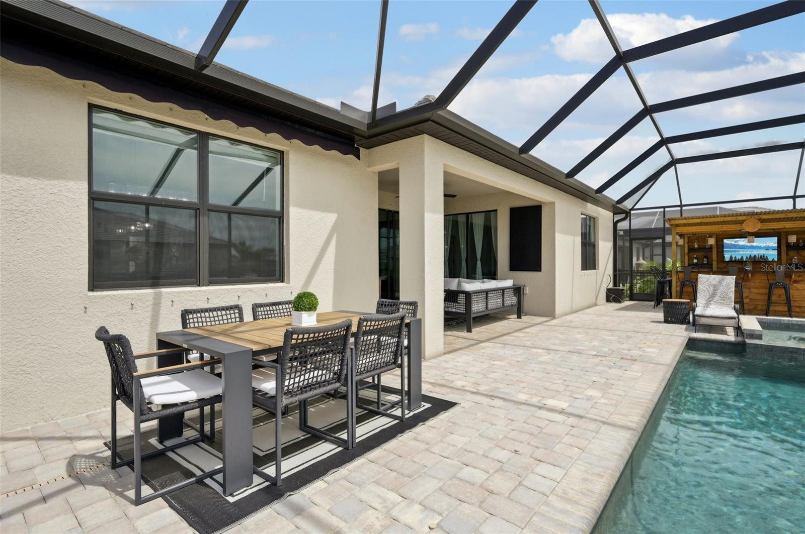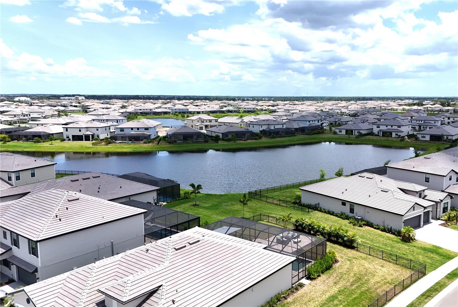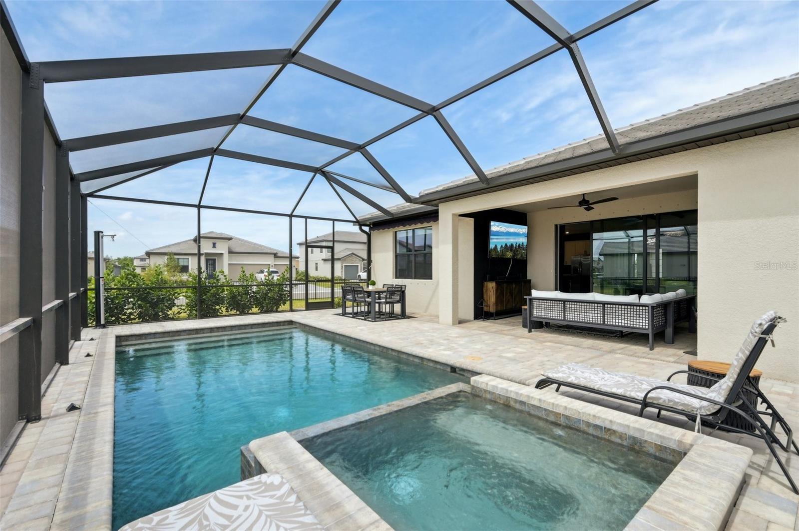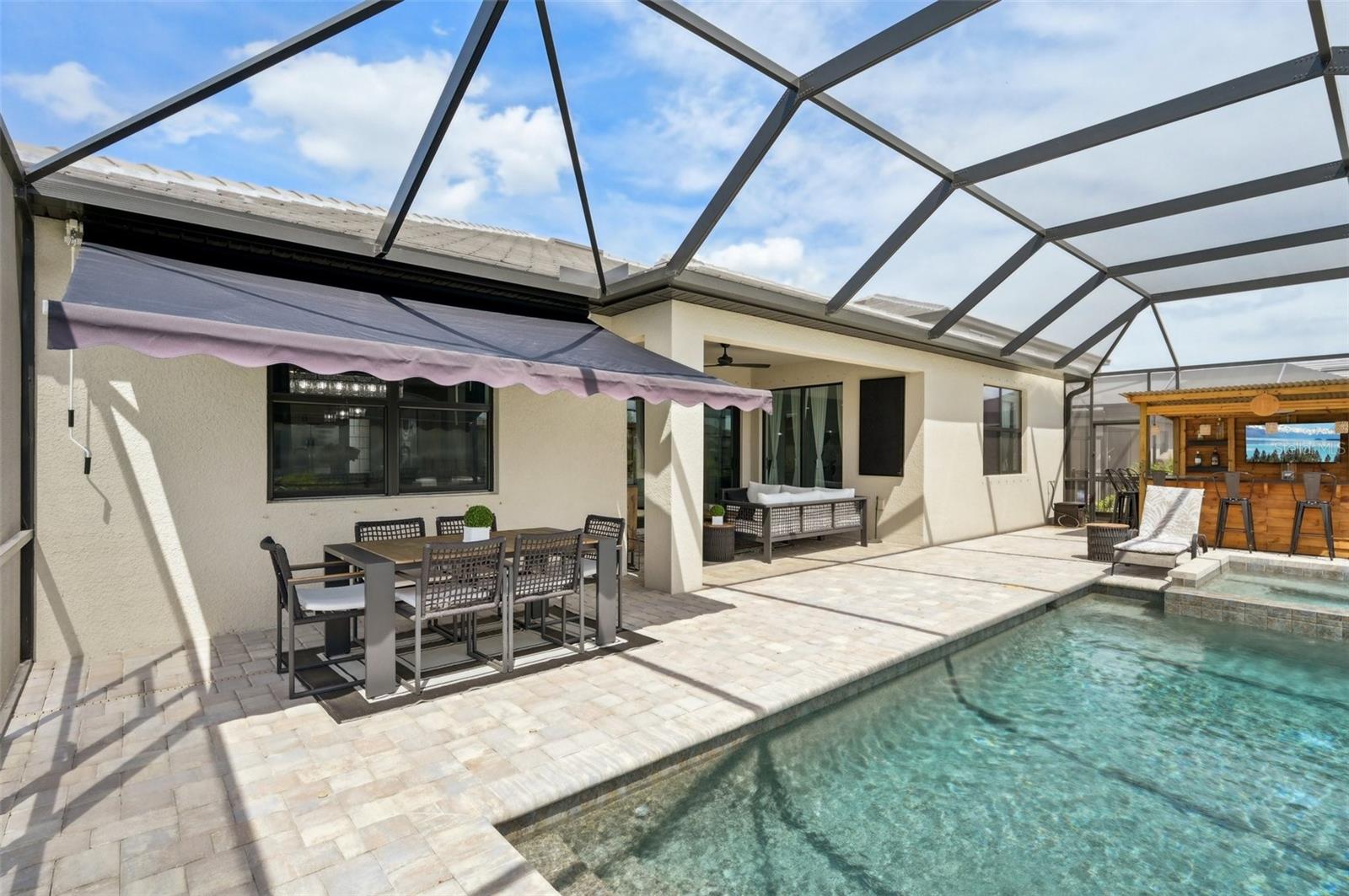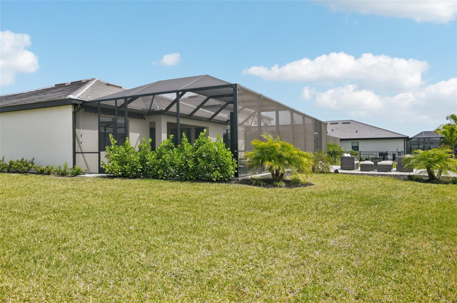 2024 Summerville Model | 3 Bed + Den | 3 Bath | 3-Car Garage | Pool & Spa | Oversized Lot. Beautifully upgraded and move-in ready, this newly built Summerville model in Lorraine Lakes at Lakewood Ranch is perfectly positioned on an oversized, fenced corner lot on a quiet cul-de-sac. This popular single-level floor plan features 3 bedrooms, 3 full baths, a den, and a 3-car garage, centered around a spacious open-concept great room, kitchen, and dining area—ideal for everyday living and entertaining. Upgrades include wood ceiling beams, a custom wood feature wall with a 100" electric fireplace, plank tile flooring throughout, barn doors on the den and laundry room, quartz countertops, tile backsplash, stainless steel appliances, single-bowl sink, touchless kitchen faucet, and designer hardware and lighting. The spacious primary suite offers serene water views, two custom built-in walk-in closets, and a spa-style bath with dual vanities and a large walk-in shower. Step outside to your private backyard oasis featuring a heated pool, spa, outdoor shower, covered lanai with seating and dining area, retractable awning, and an expanded paver patio beyond the screened enclosure—ideal for entertaining or relaxing. Full builder warranty through August 2025. Resort-style amenities at Lorraine Lakes include gated entry, lawn care, high-speed internet and cable, resort and lap pools, splash zone, clubhouse with tiki bar and restaurant, state-of-the-art fitness center, indoor basketball and volleyball courts, arcade, tennis and pickleball courts, putting green, and more. Located in Lakewood Ranch, a #1 multi-generational community in the U.S., you'll enjoy top-rated schools, shopping, dining, golf, parks, and events just minutes away. This home offers the perfect blend of luxury, convenience, and vibrant community living. Furniture package pricing available upon request. Outdoor tiki bar and drapery do not convey. Flexible closing date with option for short-term seller rent-back ideal for buyers desiring a summer move in date.
