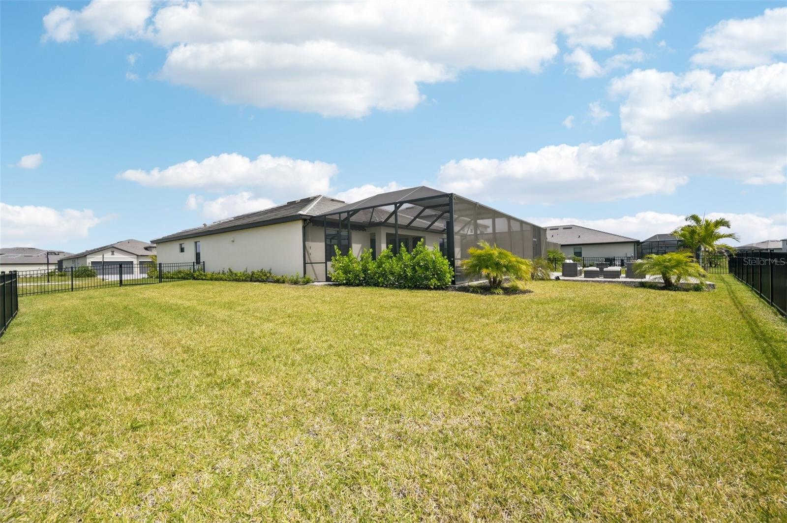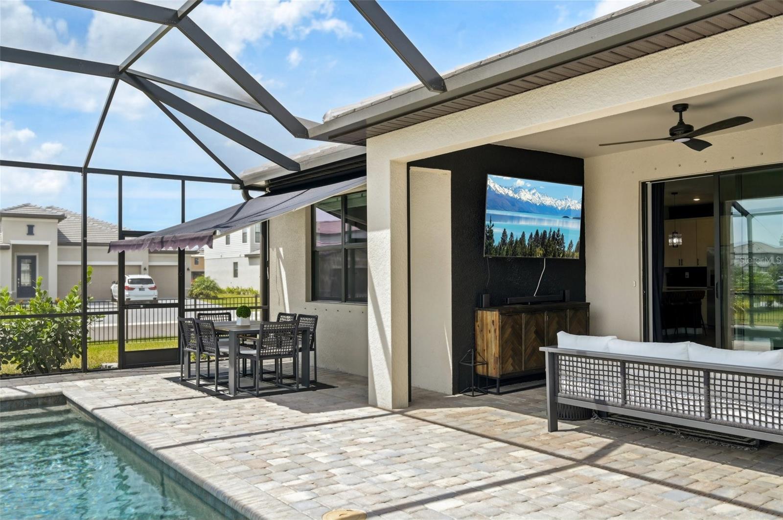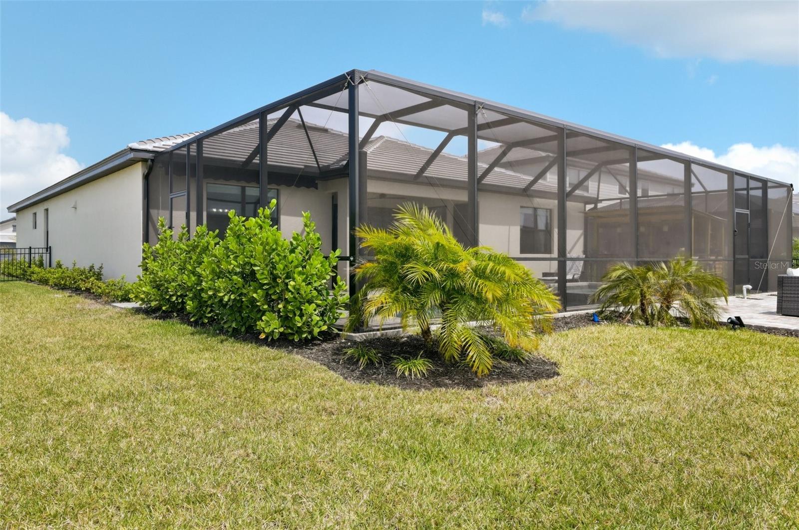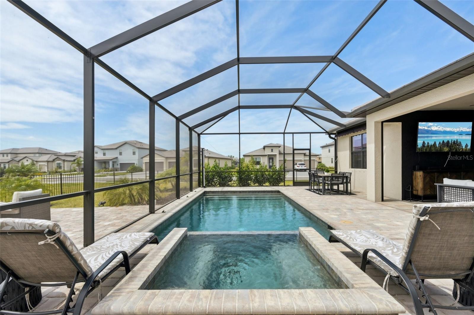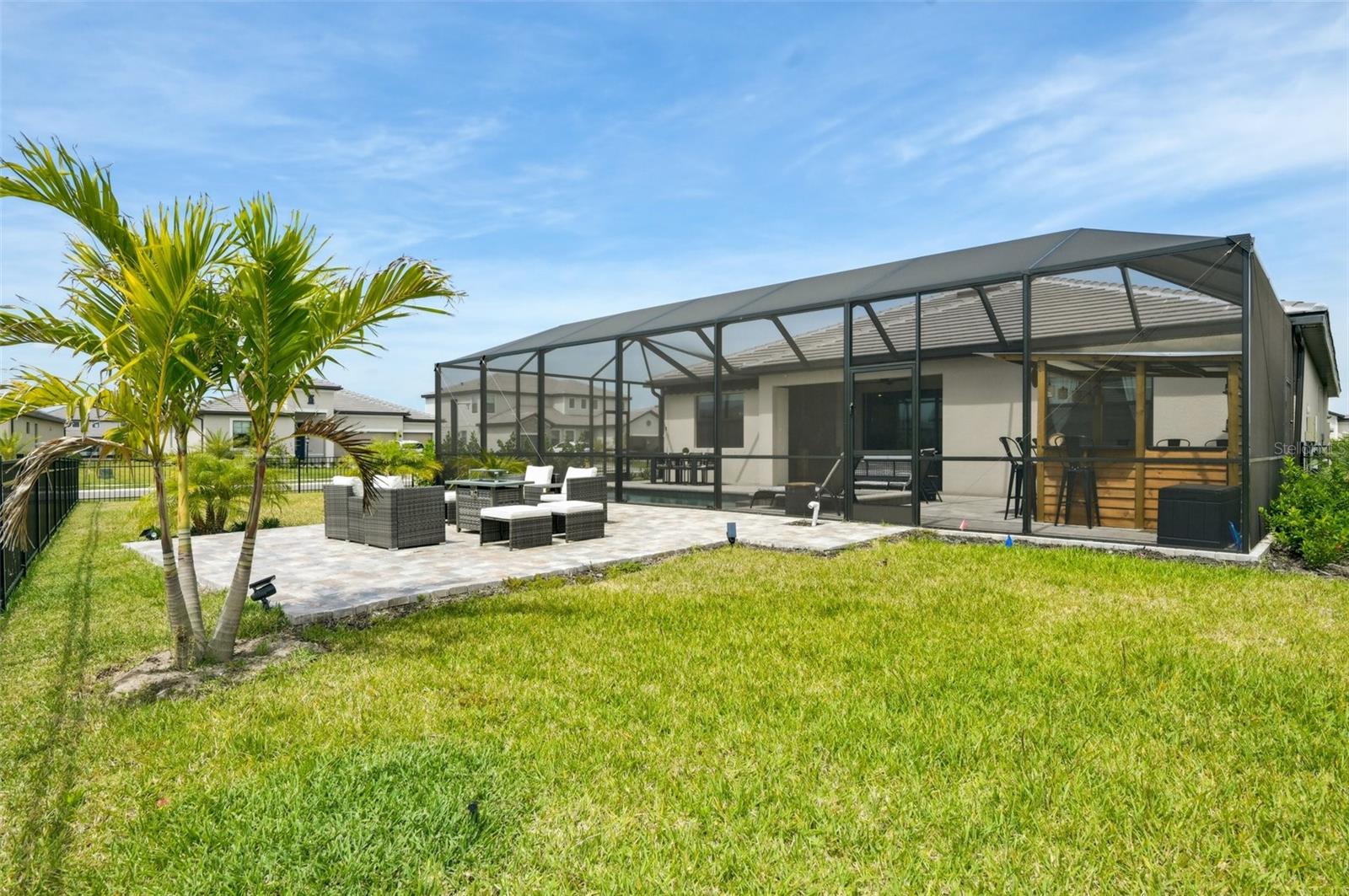 2024 Summerville Model | 3 Bed + Den | 3 Bath | 3-Car Garage | Pool & Spa | Oversized Lot. Beautifully upgraded and move-in ready, this newly built Summerville model in Lorraine Lakes at Lakewood Ranch is perfectly positioned on an oversized, fenced corner lot on a quiet cul-de-sac. This popular single-level floor plan features 3 bedrooms, 3 full baths, a den, and a 3-car garage, centered around a spacious open-concept great room, kitchen, and dining area—ideal for everyday living and entertaining. Upgrades include wood ceiling beams, a custom wood feature wall with a 100" electric fireplace, plank tile flooring throughout, barn doors on the den and laundry room, quartz countertops, tile backsplash, stainless steel appliances, single-bowl sink, touchless kitchen faucet, and designer hardware and lighting. The spacious primary suite offers serene water views, two custom built-in walk-in closets, and a spa-style bath with dual vanities and a large walk-in shower. Step outside to your private backyard oasis featuring a heated pool, spa, outdoor shower, covered lanai with seating and dining area, retractable awning, and an expanded paver patio beyond the screened enclosure—ideal for entertaining or relaxing. Full builder warranty through August 2025. Resort-style amenities at Lorraine Lakes include gated entry, lawn care, high-speed internet and cable, resort and lap pools, splash zone, clubhouse with tiki bar and restaurant, state-of-the-art fitness center, indoor basketball and volleyball courts, arcade, tennis and pickleball courts, putting green, and more. Located in Lakewood Ranch, a #1 multi-generational community in the U.S., you'll enjoy top-rated schools, shopping, dining, golf, parks, and events just minutes away. This home offers the perfect blend of luxury, convenience, and vibrant community living. Furniture package pricing available upon request. Outdoor tiki bar and drapery do not convey. Flexible closing date with option for short-term seller rent-back ideal for buyers desiring a summer move in date.