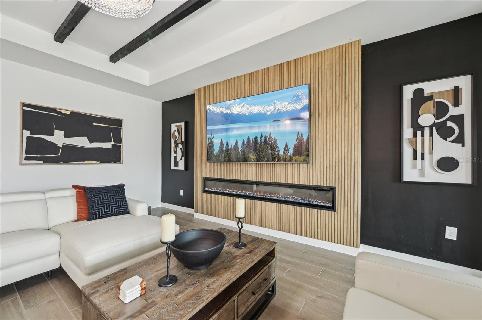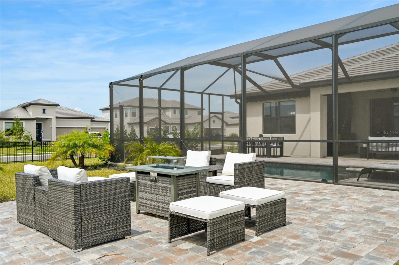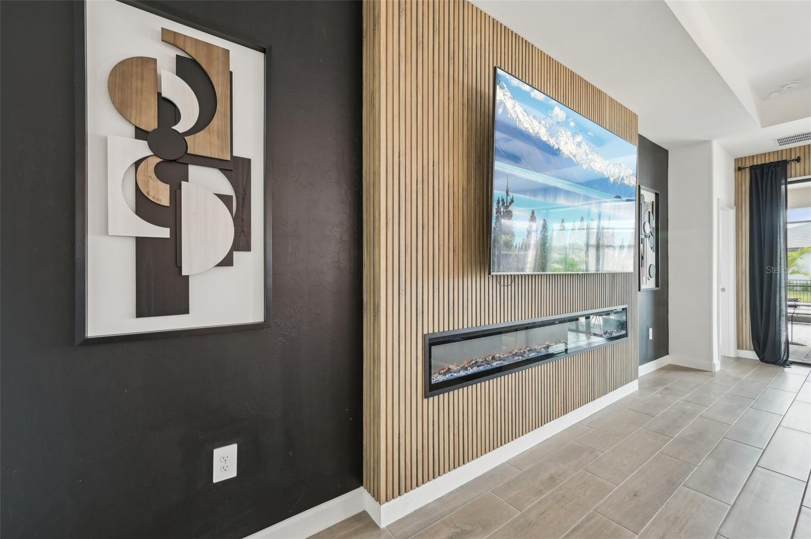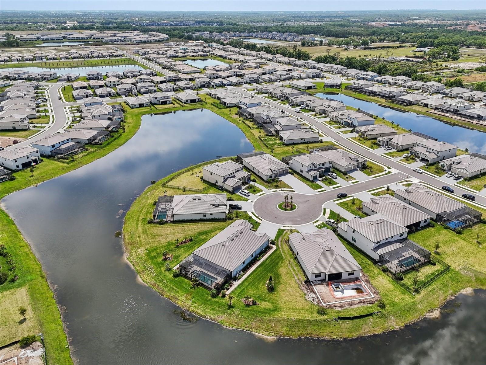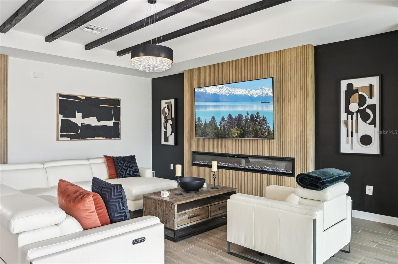 2024 Summerville Model | 3 Bed + Den | 3 Bath | 3-Car Garage | Pool & Spa | Oversized Lot. Beautifully upgraded and move-in ready, this newly built Summerville model in Lorraine Lakes at Lakewood Ranch is perfectly positioned on an oversized, fenced corner lot on a quiet cul-de-sac. This popular single-level floor plan features 3 bedrooms, 3 full baths, a den, and a 3-car garage, centered around a spacious open-concept great room, kitchen, and dining area—ideal for everyday living and entertaining. Upgrades include wood ceiling beams, a custom wood feature wall with a 100" electric fireplace, plank tile flooring throughout, barn doors on the den and laundry room, quartz countertops, tile backsplash, stainless steel appliances, single-bowl sink, touchless kitchen faucet, and designer hardware and lighting. The spacious primary suite offers serene water views, two custom built-in walk-in closets, and a spa-style bath with dual vanities and a large walk-in shower. Step outside to your private backyard oasis featuring a heated pool, spa, outdoor shower, covered lanai with seating and dining area, retractable awning, and an expanded paver patio beyond the screened enclosure—ideal for entertaining or relaxing. Full builder warranty through August 2025. Resort-style amenities at Lorraine Lakes include gated entry, lawn care, high-speed internet and cable, resort and lap pools, splash zone, clubhouse with tiki bar and restaurant, state-of-the-art fitness center, indoor basketball and volleyball courts, arcade, tennis and pickleball courts, putting green, and more. Located in Lakewood Ranch, a #1 multi-generational community in the U.S., you'll enjoy top-rated schools, shopping, dining, golf, parks, and events just minutes away. This home offers the perfect blend of luxury, convenience, and vibrant community living. Furniture package pricing available upon request. Outdoor tiki bar and drapery do not convey. Flexible closing date with option for short-term seller rent-back ideal for buyers desiring a summer move in date.