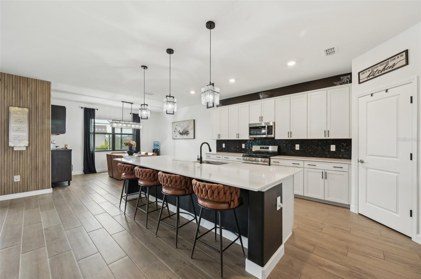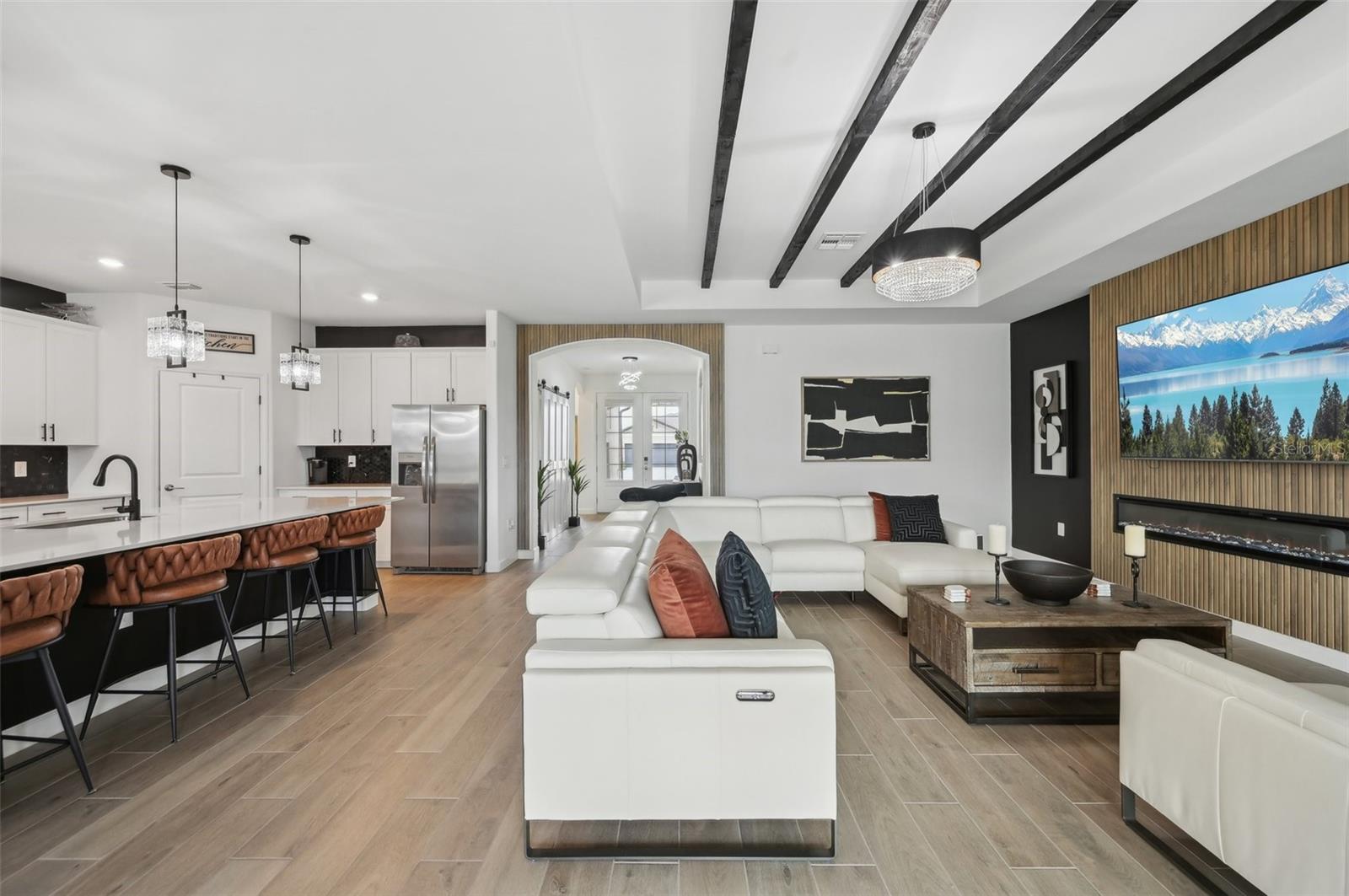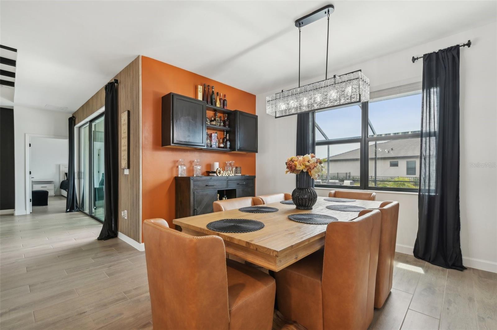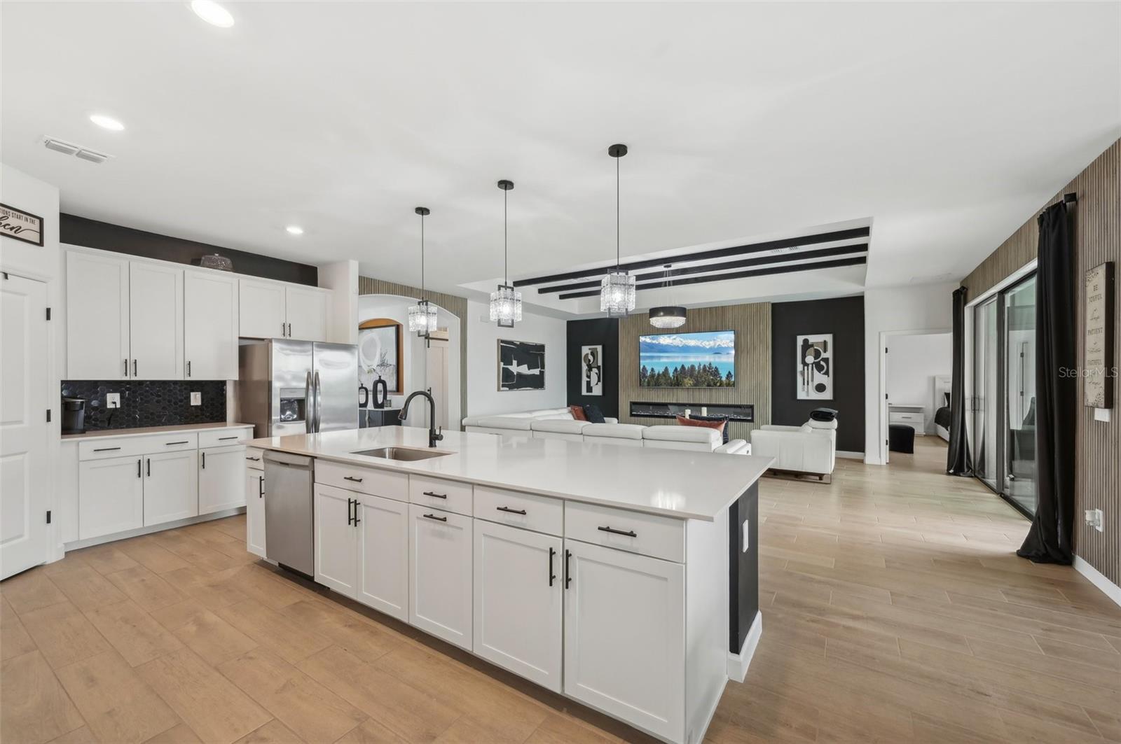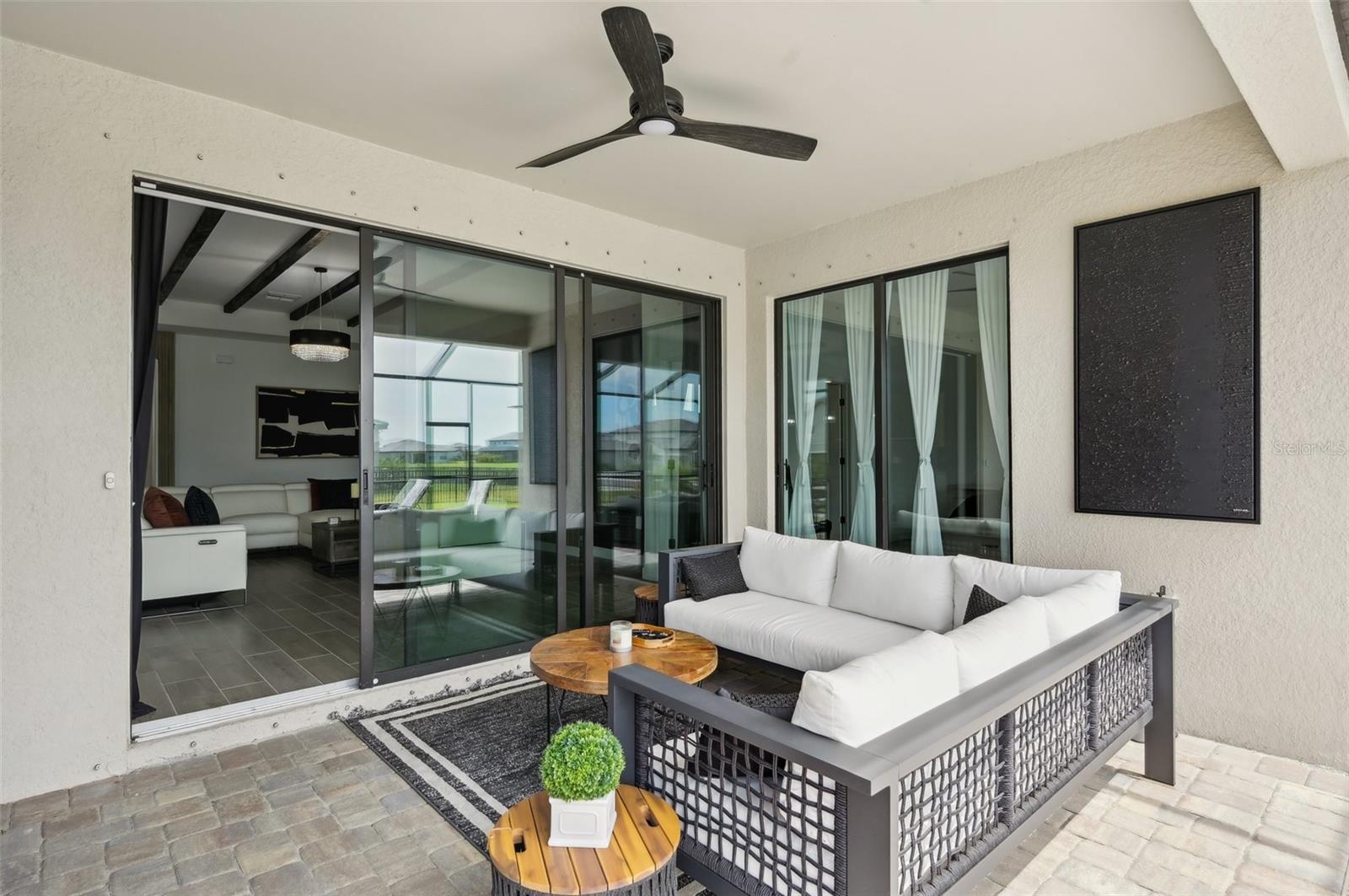 2024 Summerville Model | 3 Bed + Den | 3 Bath | 3-Car Garage | Pool & Spa | Oversized Lot. Beautifully upgraded and move-in ready, this newly built Summerville model in Lorraine Lakes at Lakewood Ranch is perfectly positioned on an oversized, fenced corner lot on a quiet cul-de-sac. This popular single-level floor plan features 3 bedrooms, 3 full baths, a den, and a 3-car garage, centered around a spacious open-concept great room, kitchen, and dining area—ideal for everyday living and entertaining. Upgrades include wood ceiling beams, a custom wood feature wall with a 100" electric fireplace, plank tile flooring throughout, barn doors on the den and laundry room, quartz countertops, tile backsplash, stainless steel appliances, single-bowl sink, touchless kitchen faucet, and designer hardware and lighting. The spacious primary suite offers serene water views, two custom built-in walk-in closets, and a spa-style bath with dual vanities and a large walk-in shower. Step outside to your private backyard oasis featuring a heated pool, spa, outdoor shower, covered lanai with seating and dining area, retractable awning, and an expanded paver patio beyond the screened enclosure—ideal for entertaining or relaxing. Full builder warranty through August 2025. Resort-style amenities at Lorraine Lakes include gated entry, lawn care, high-speed internet and cable, resort and lap pools, splash zone, clubhouse with tiki bar and restaurant, state-of-the-art fitness center, indoor basketball and volleyball courts, arcade, tennis and pickleball courts, putting green, and more. Located in Lakewood Ranch, a #1 multi-generational community in the U.S., you'll enjoy top-rated schools, shopping, dining, golf, parks, and events just minutes away. This home offers the perfect blend of luxury, convenience, and vibrant community living. Furniture package pricing available upon request. Outdoor tiki bar and drapery do not convey. Flexible closing date with option for short-term seller rent-back ideal for buyers desiring a summer move in date.