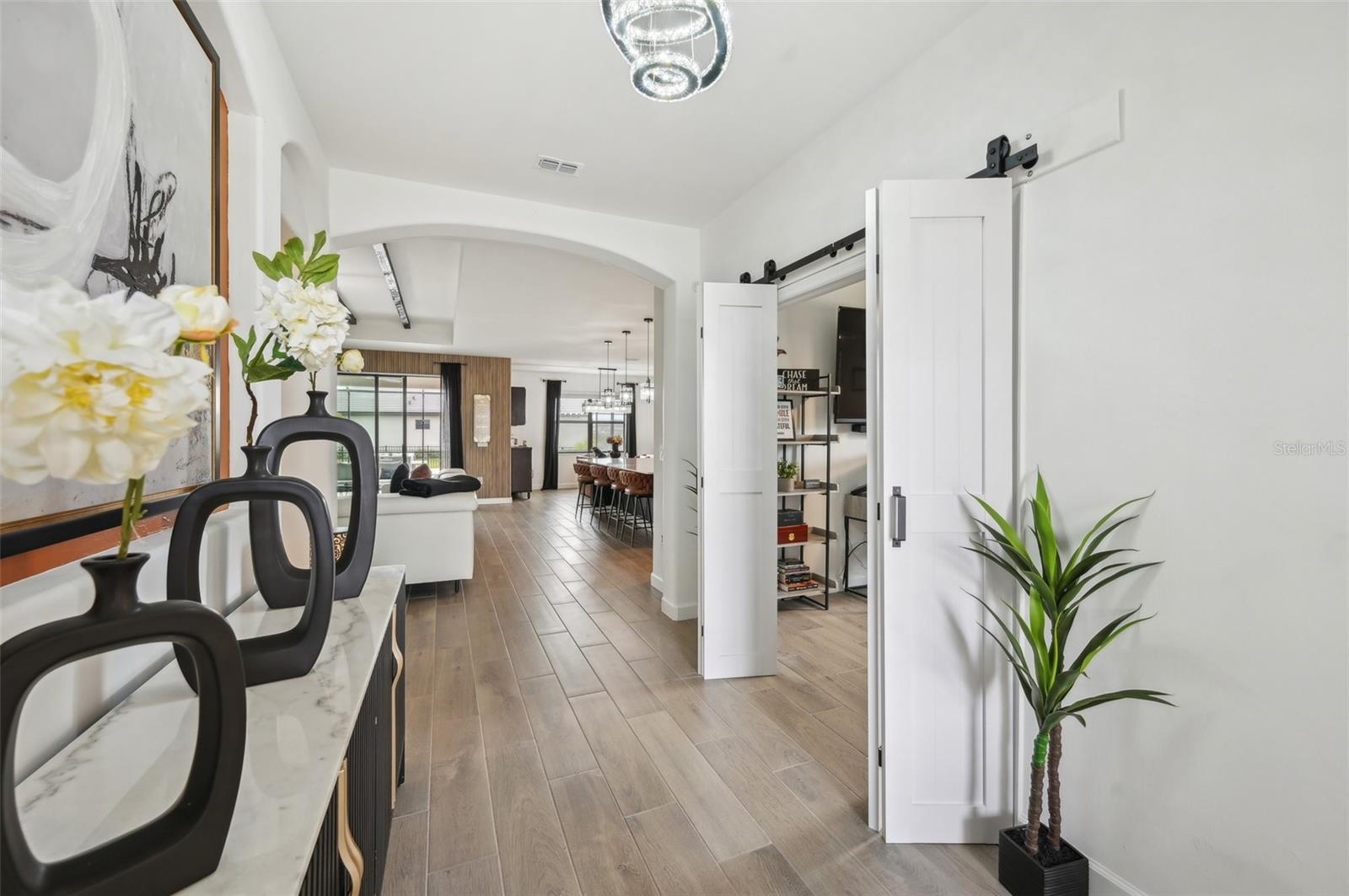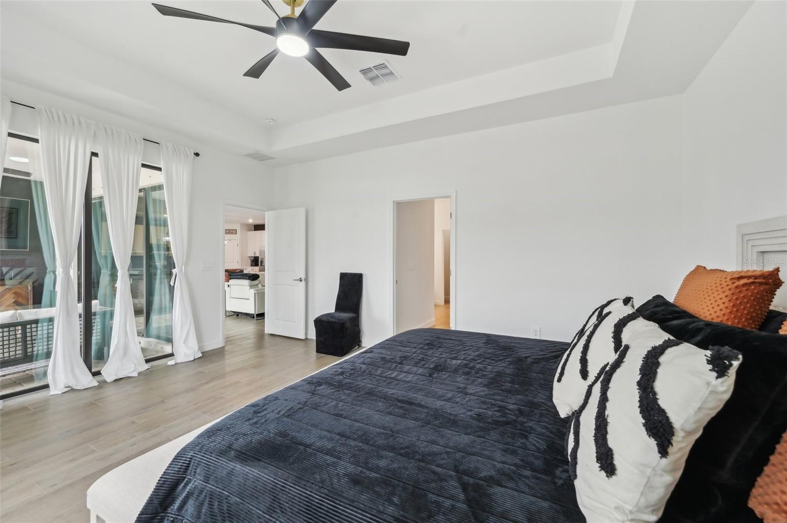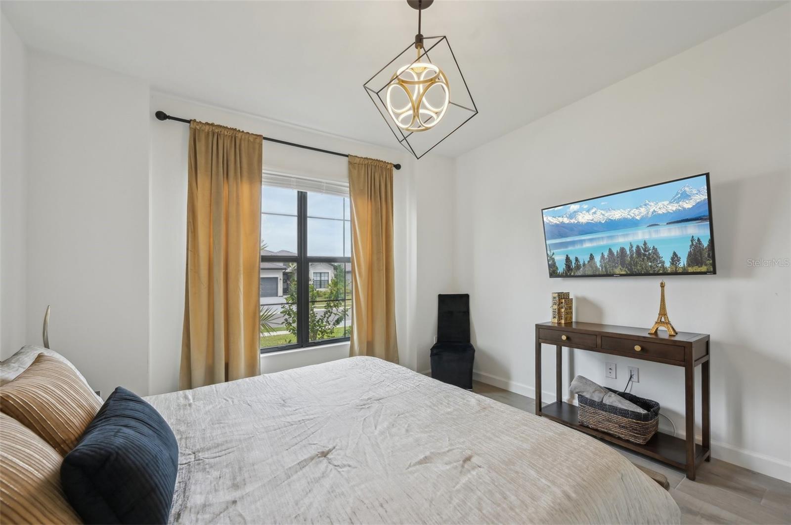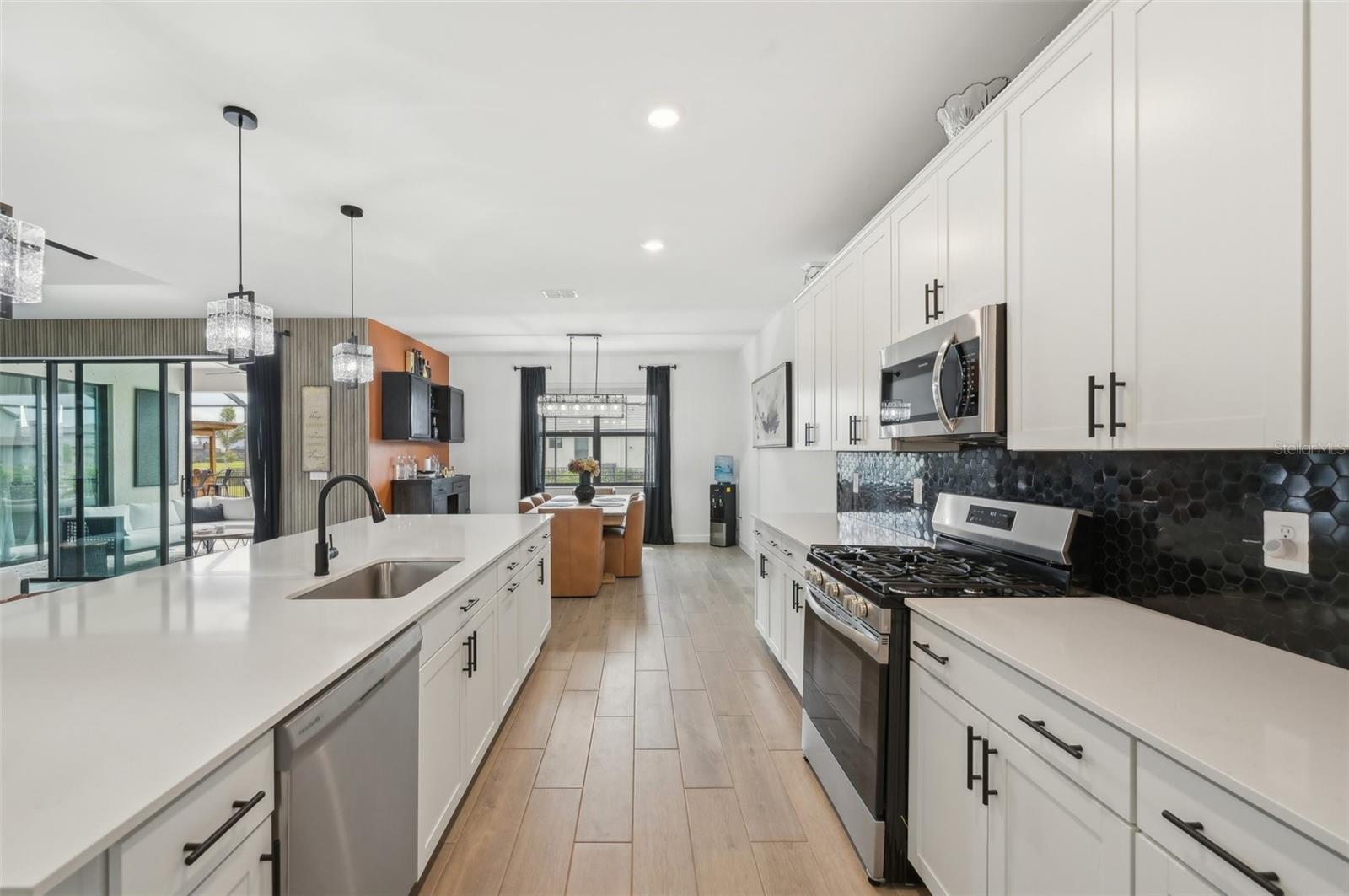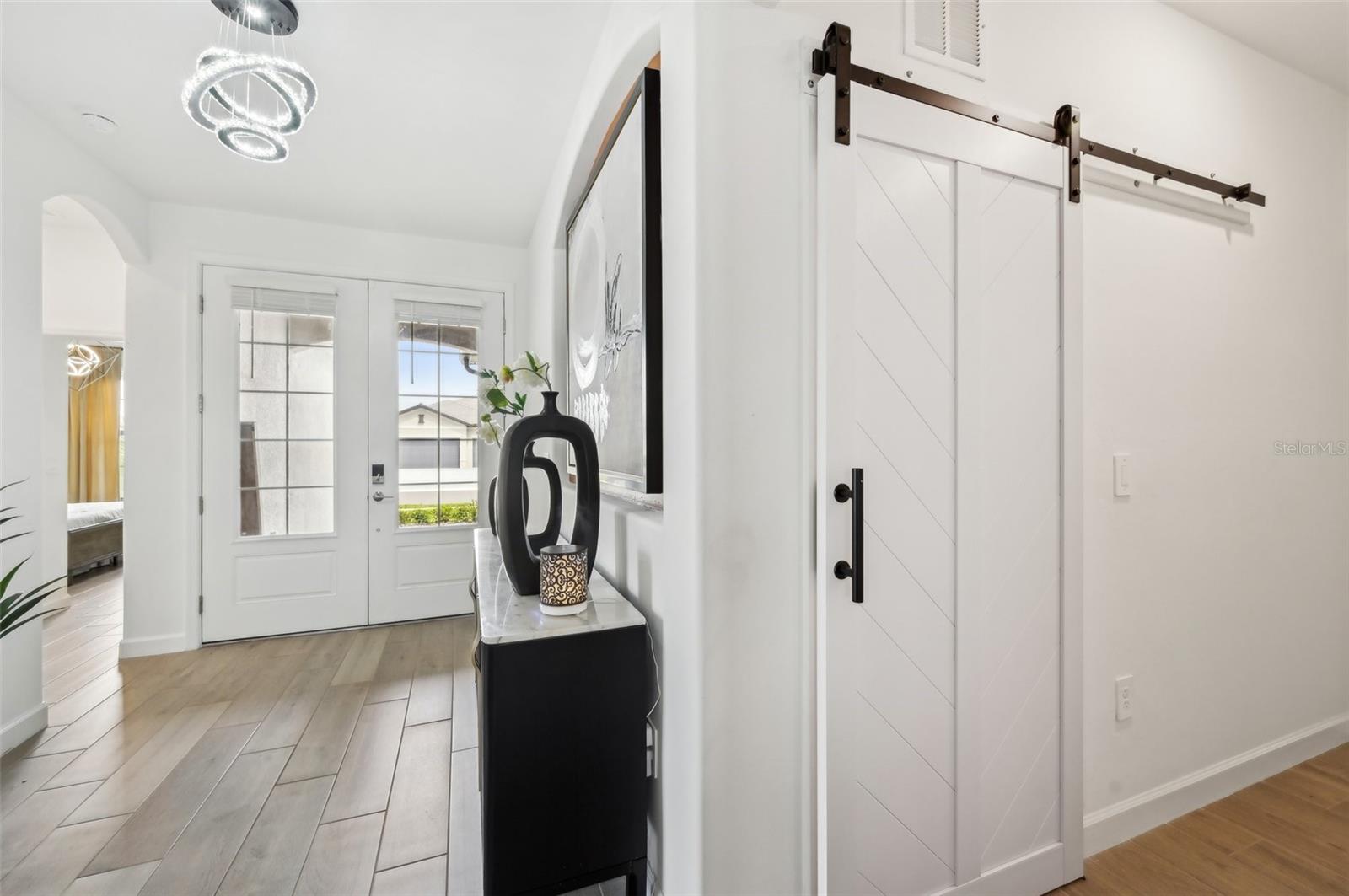 2024 Summerville Model | 3 Bed + Den | 3 Bath | 3-Car Garage | Pool & Spa | Oversized Lot. Beautifully upgraded and move-in ready, this newly built Summerville model in Lorraine Lakes at Lakewood Ranch is perfectly positioned on an oversized, fenced corner lot on a quiet cul-de-sac. This popular single-level floor plan features 3 bedrooms, 3 full baths, a den, and a 3-car garage, centered around a spacious open-concept great room, kitchen, and dining area—ideal for everyday living and entertaining. Upgrades include wood ceiling beams, a custom wood feature wall with a 100" electric fireplace, plank tile flooring throughout, barn doors on the den and laundry room, quartz countertops, tile backsplash, stainless steel appliances, single-bowl sink, touchless kitchen faucet, and designer hardware and lighting. The spacious primary suite offers serene water views, two custom built-in walk-in closets, and a spa-style bath with dual vanities and a large walk-in shower. Step outside to your private backyard oasis featuring a heated pool, spa, outdoor shower, covered lanai with seating and dining area, retractable awning, and an expanded paver patio beyond the screened enclosure—ideal for entertaining or relaxing. Full builder warranty through August 2025. Resort-style amenities at Lorraine Lakes include gated entry, lawn care, high-speed internet and cable, resort and lap pools, splash zone, clubhouse with tiki bar and restaurant, state-of-the-art fitness center, indoor basketball and volleyball courts, arcade, tennis and pickleball courts, putting green, and more. Located in Lakewood Ranch, a #1 multi-generational community in the U.S., you'll enjoy top-rated schools, shopping, dining, golf, parks, and events just minutes away. This home offers the perfect blend of luxury, convenience, and vibrant community living. Furniture package pricing available upon request. Outdoor tiki bar and drapery do not convey. Flexible closing date with option for short-term seller rent-back ideal for buyers desiring a summer move in date.